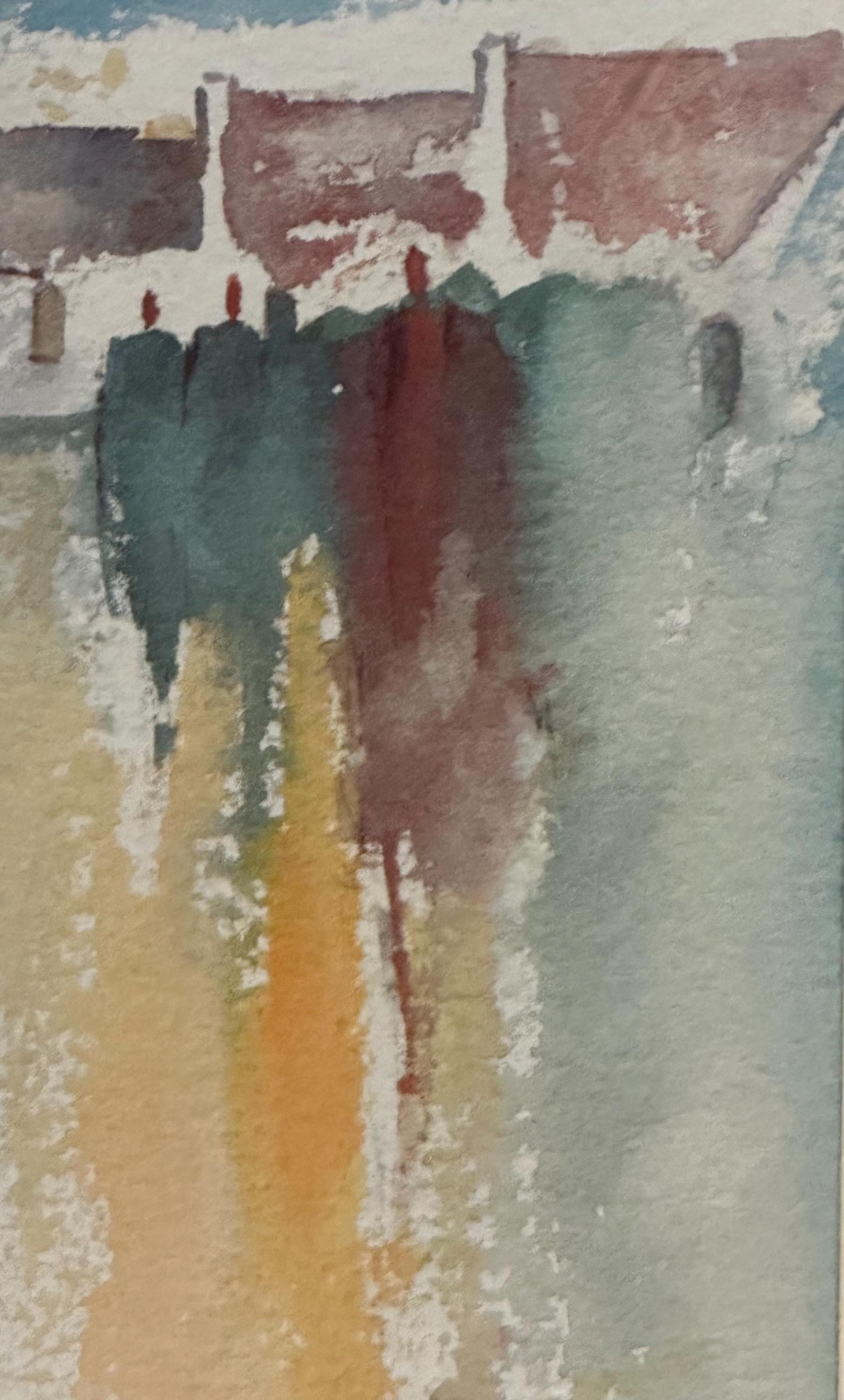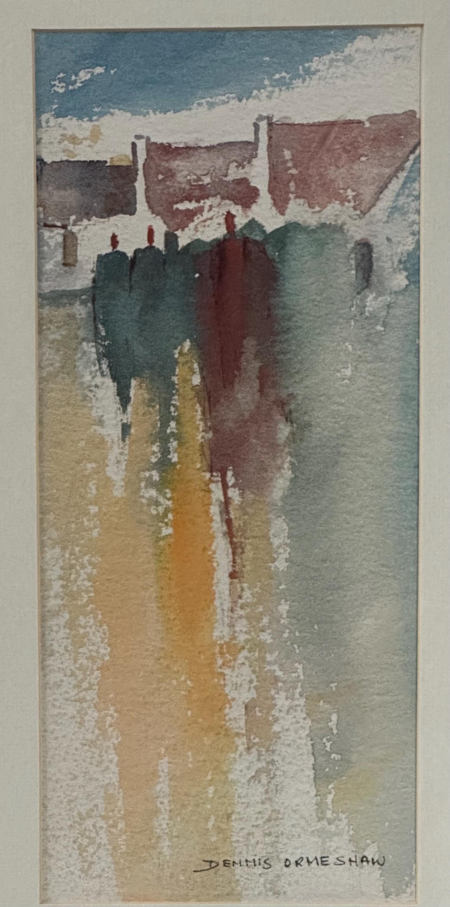 The palette features gentle blues, ochres, creams and rich reds, creating a sense of depth, light and reflection – typical of Orme-Shaw’s evocative, semi-abstract style. Each print is signed by the artist in the lower margin.