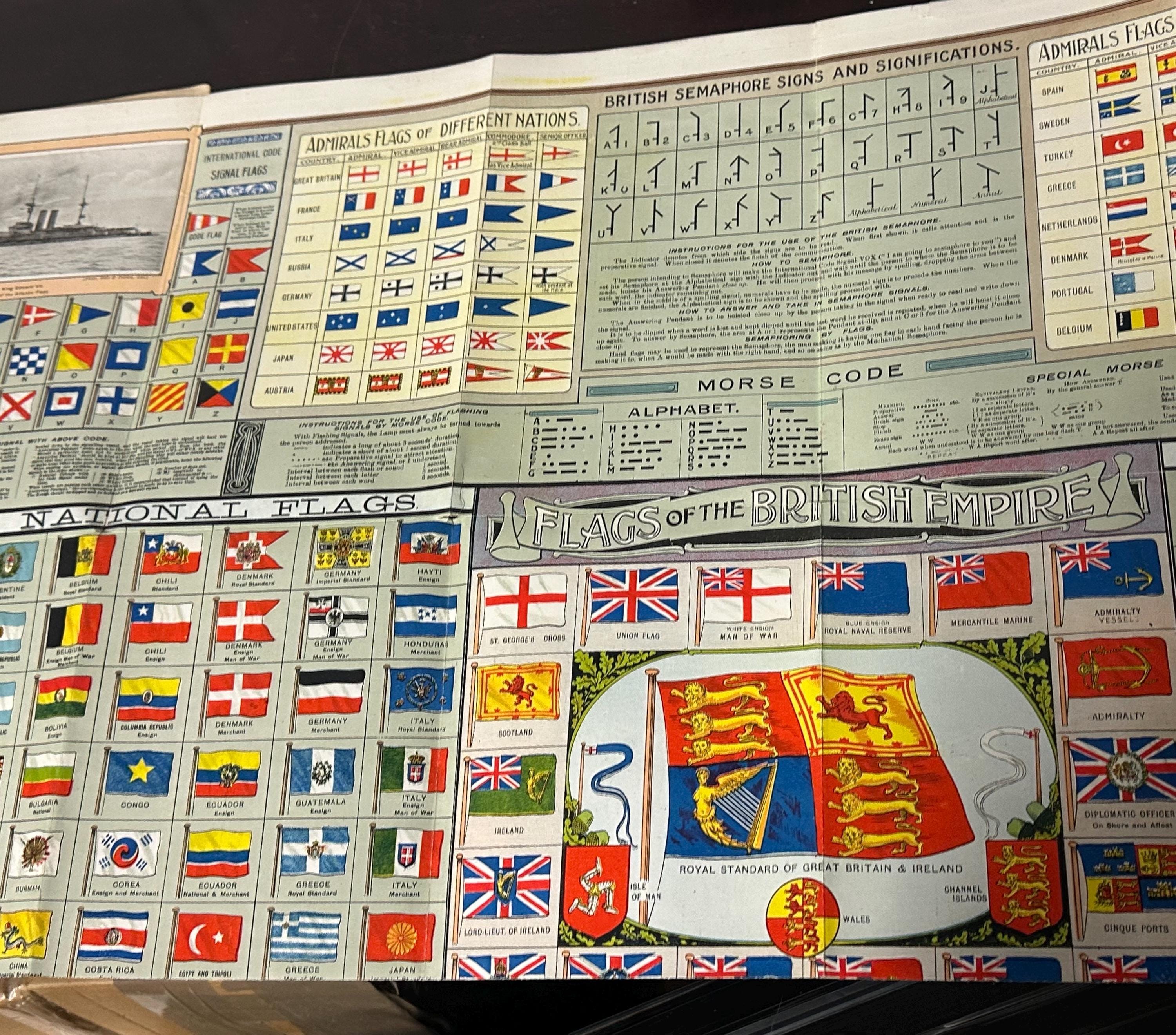 In essence, the "Flags of the British Empire" chart offers an intriguing insight into Britain's maritime heritage. It reveals the crucial role that flags played in communication, identification, and maintaining a sense of shared identity during the onset of World War I, a time when naval power played a significant role in global affairs.