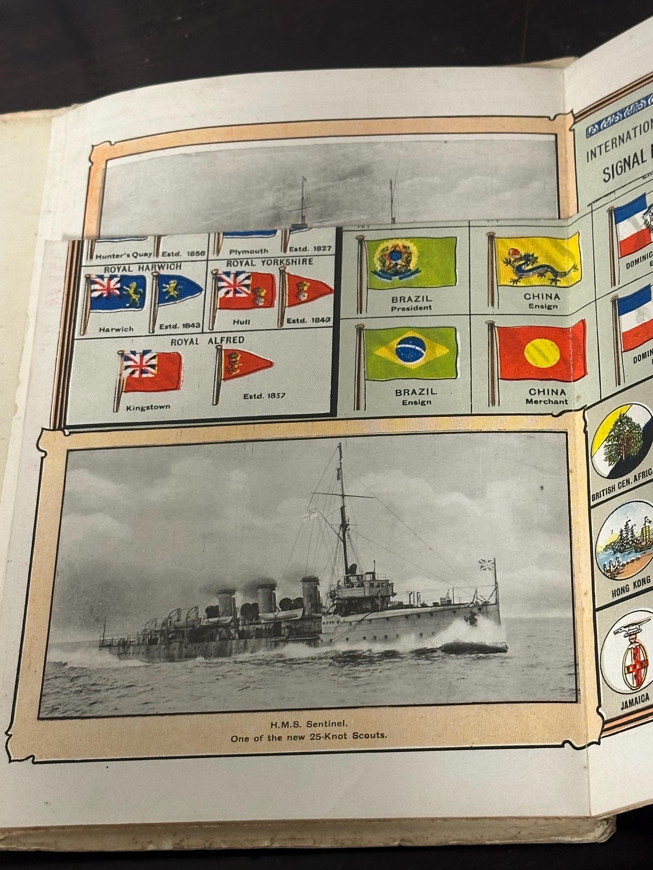 As World War I broke out just two months prior to the chart's publication, the flags carried an enhanced significance. They facilitated communication between ships, shore, and fleet in the absence of advanced technology. Moreover, the flags were essential in identifying the nationality of vessels on the high seas, a factor of immense importance during wartime.