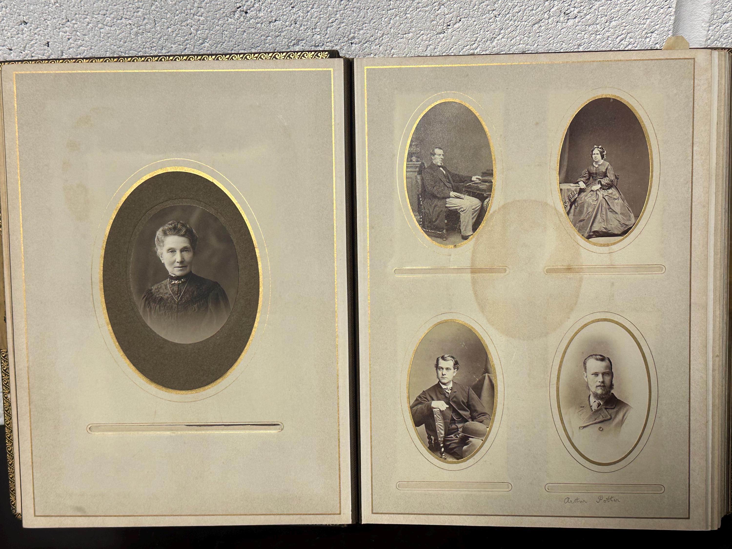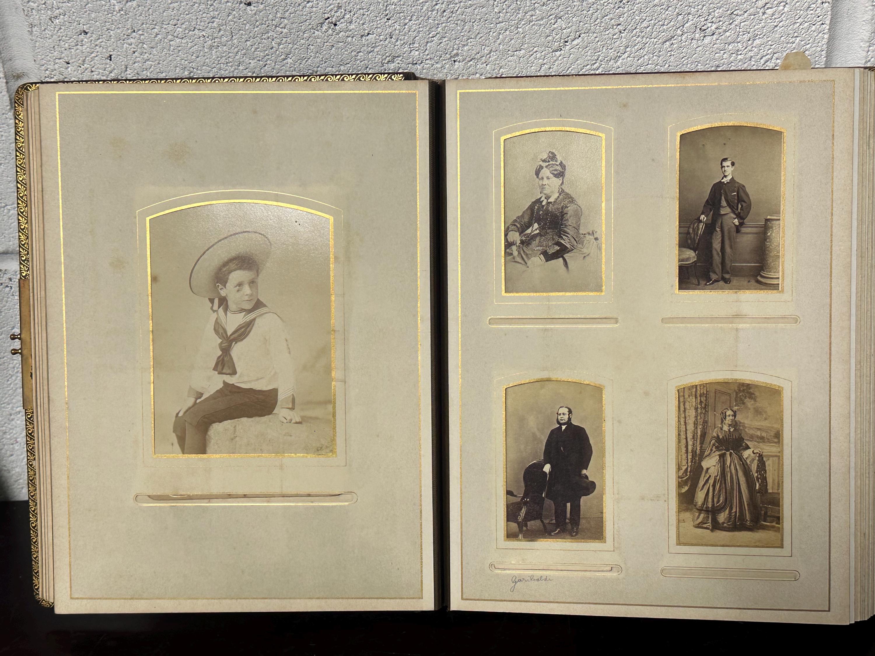 Antique Victorian / Edwardian Leather-Bound Photograph Album – Approx 49 Original Photos
