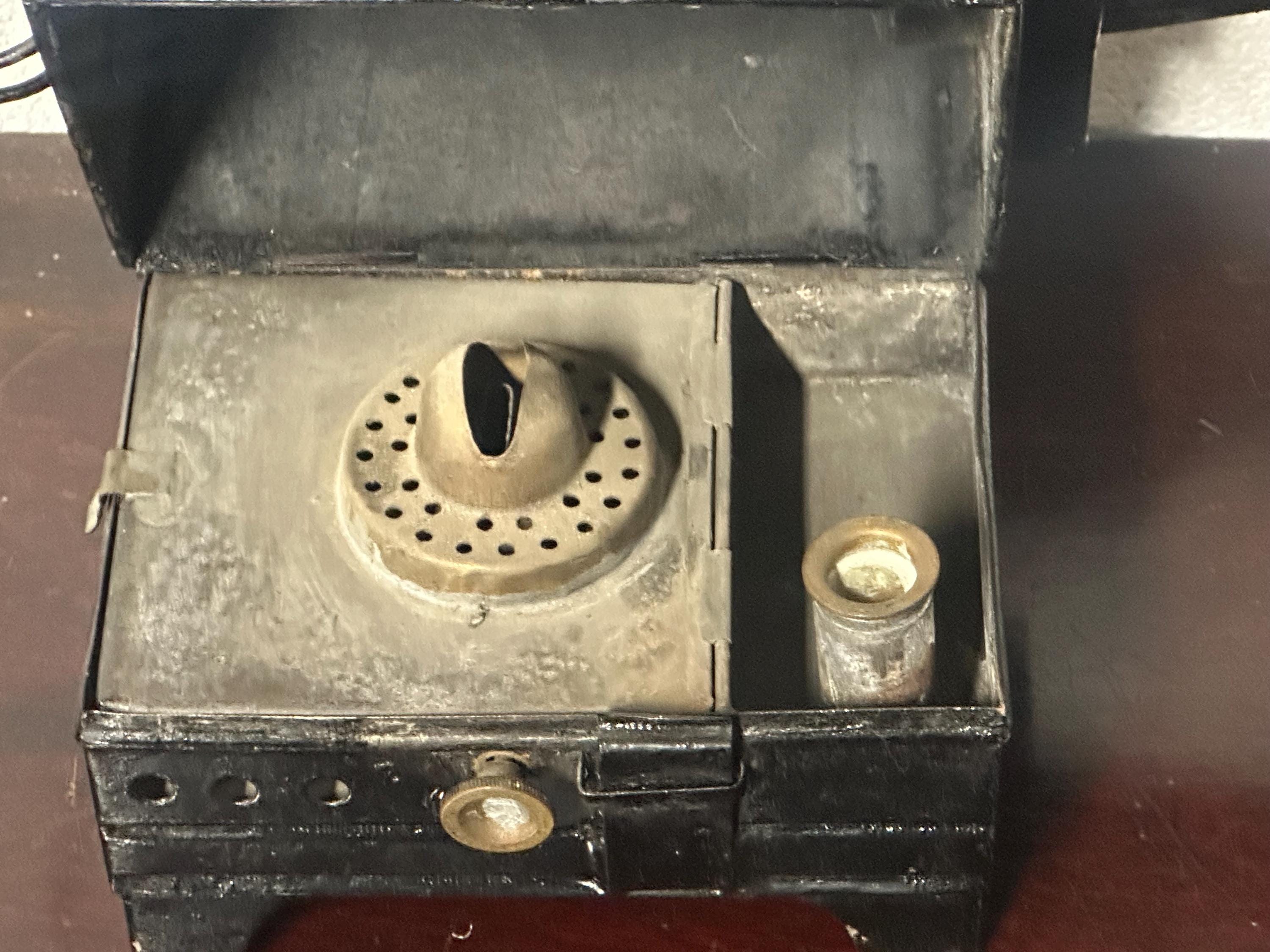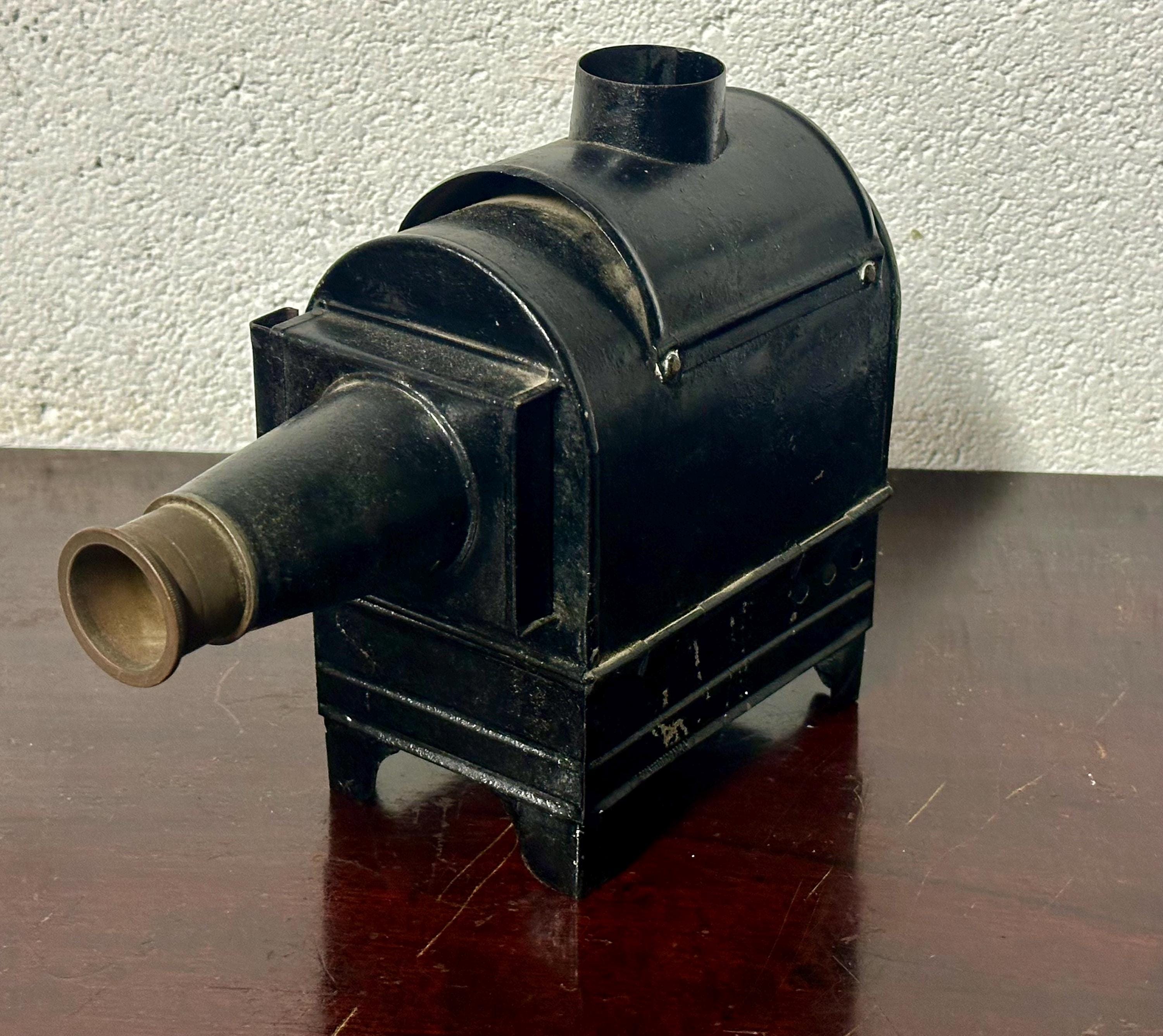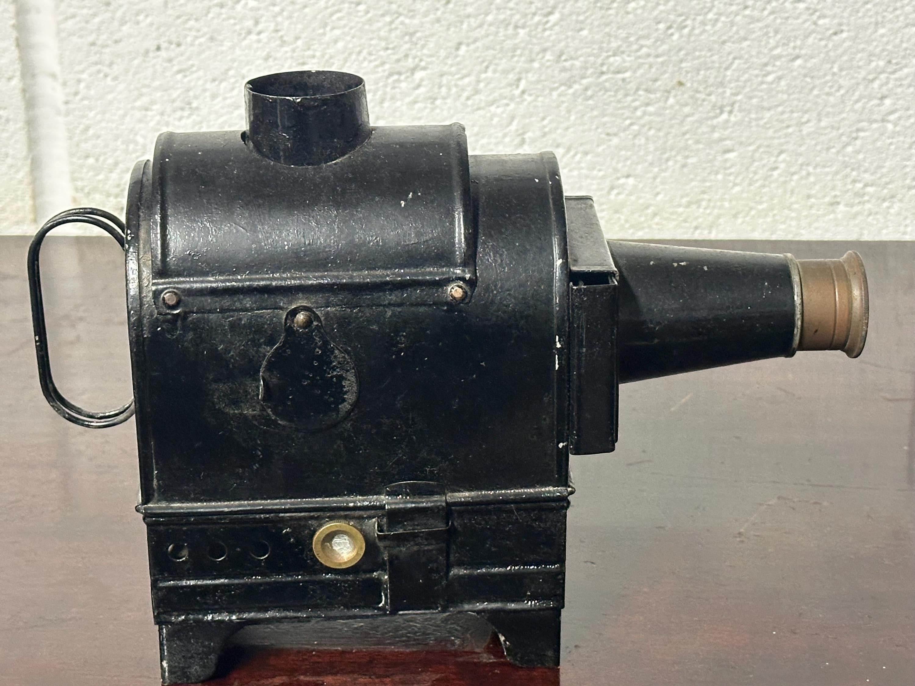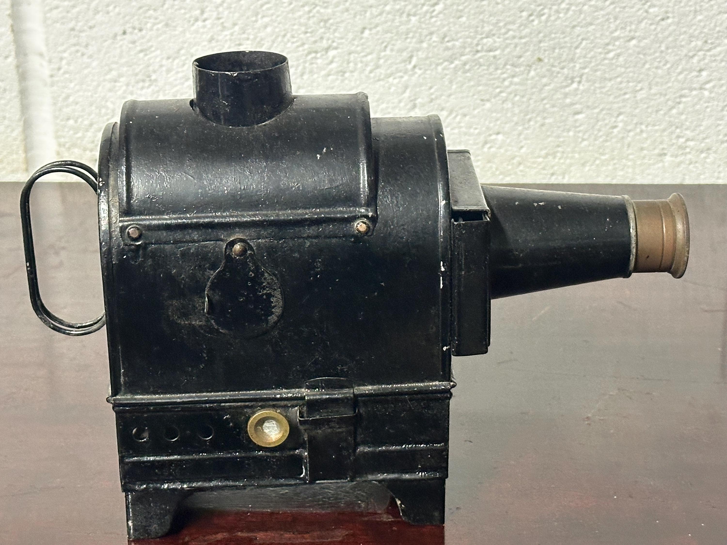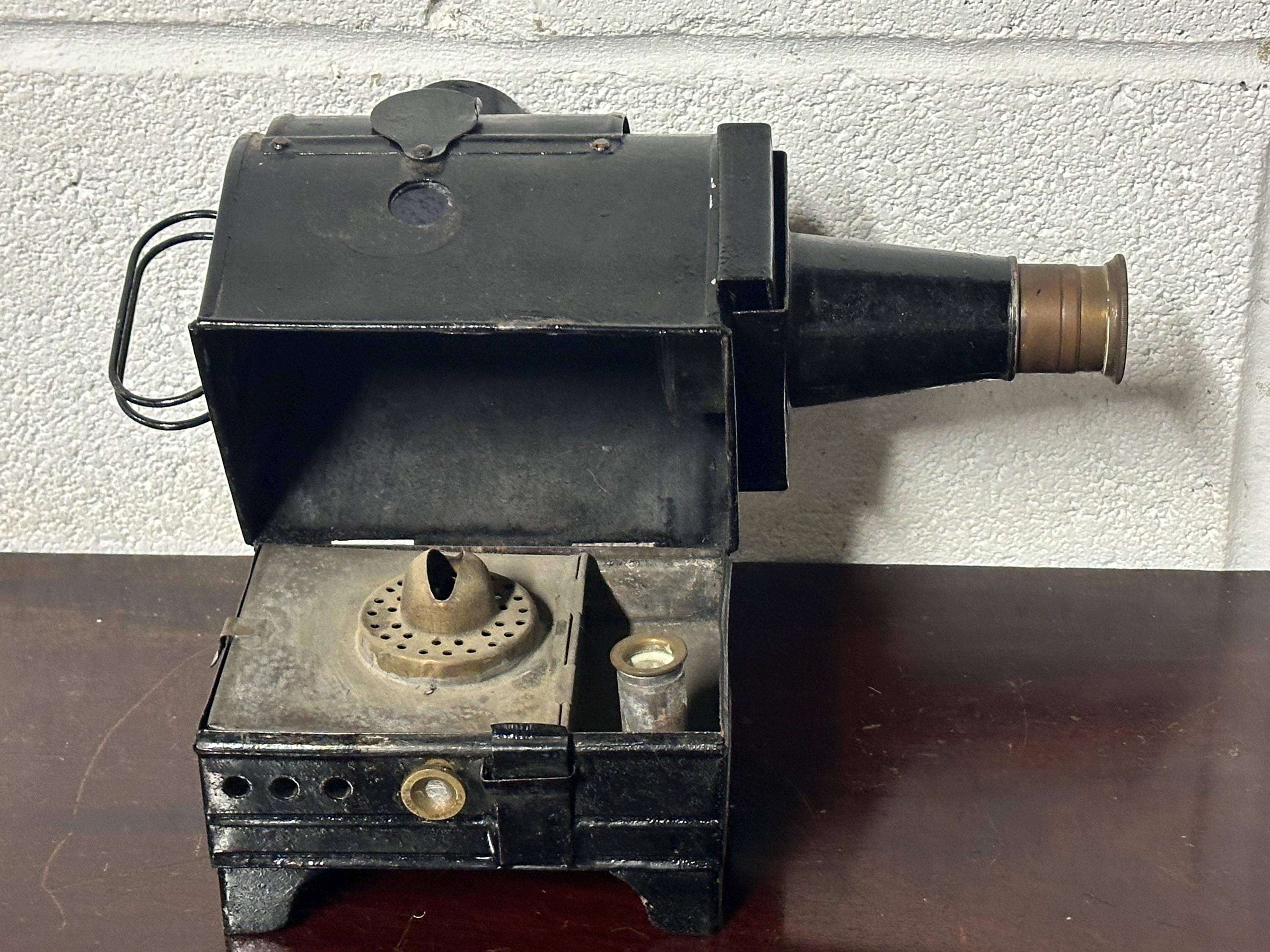 Vintage condition with surface wear, paint losses, marks and patina consistent with age and use. Interior burner present. Lens present. Untested and sold as a collectible/display item only. Please study photographs carefully as they form part of the description.