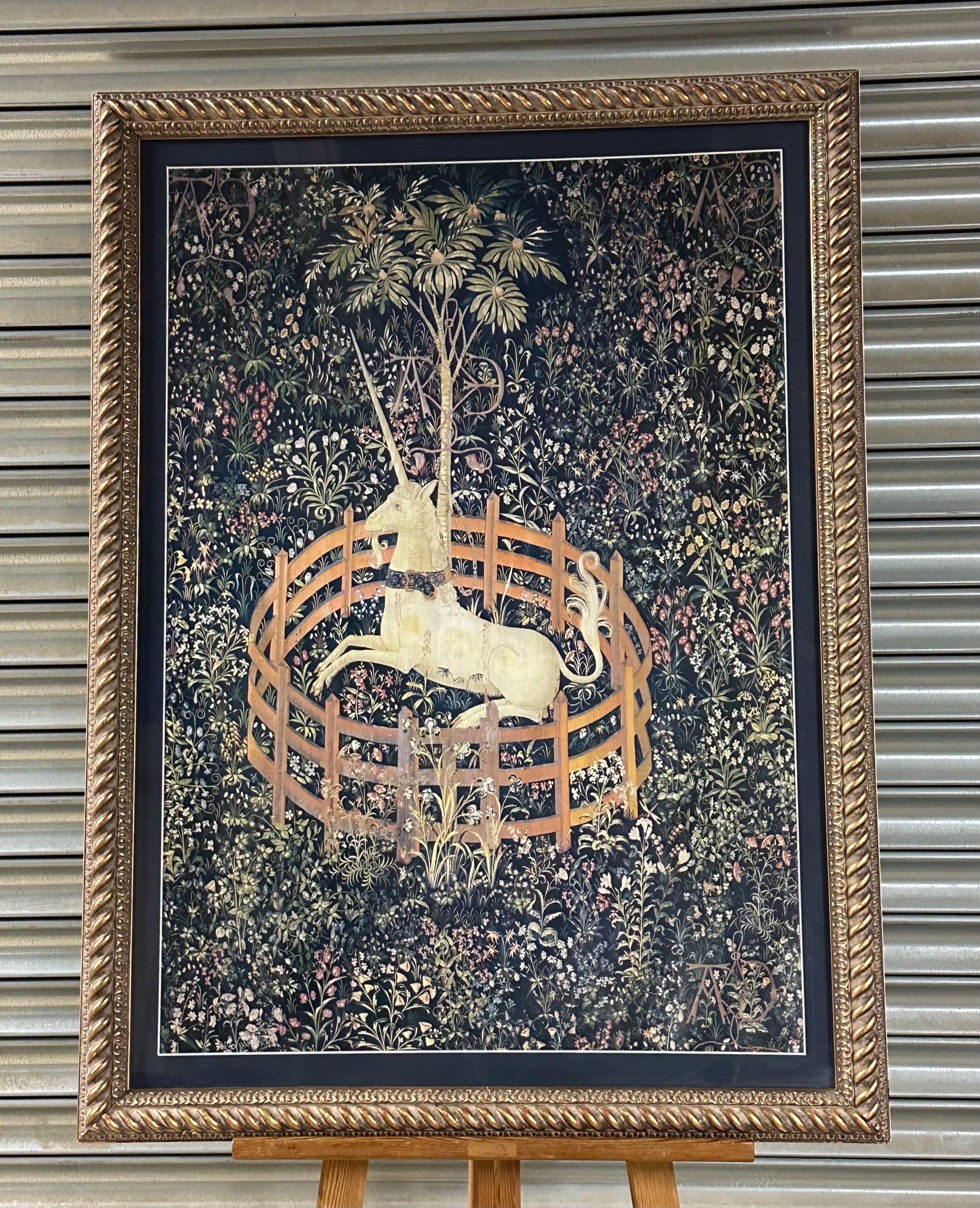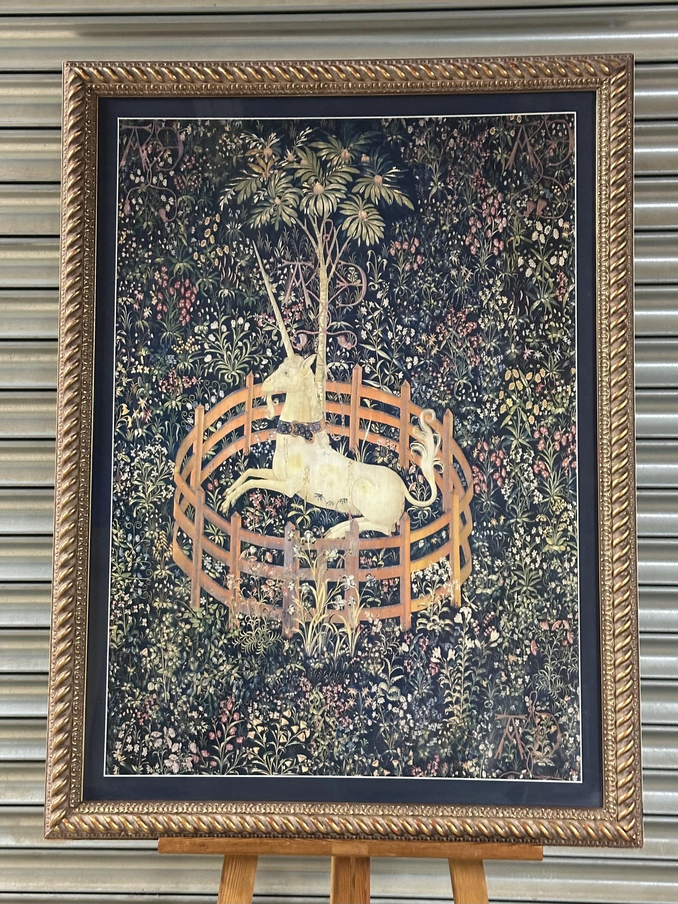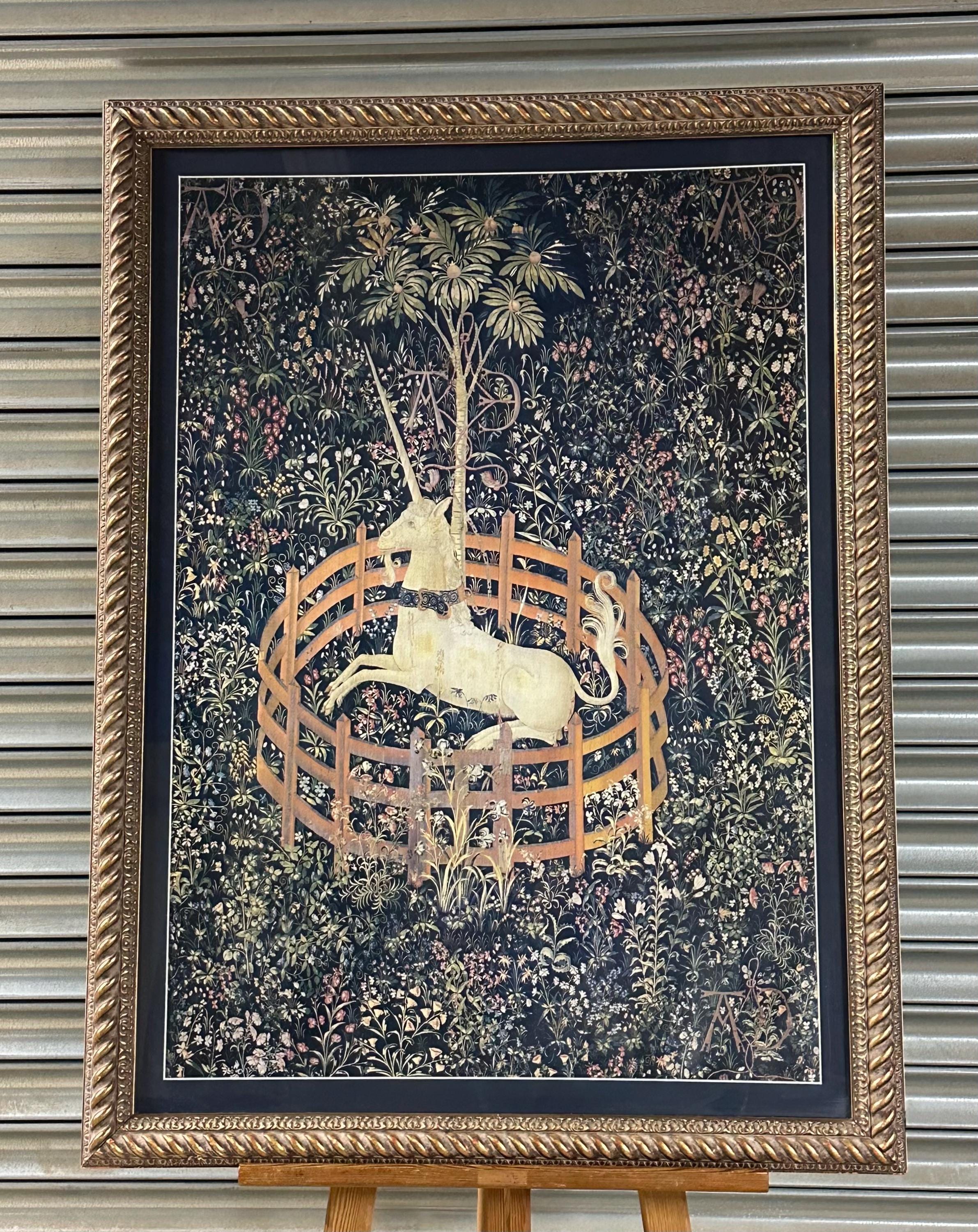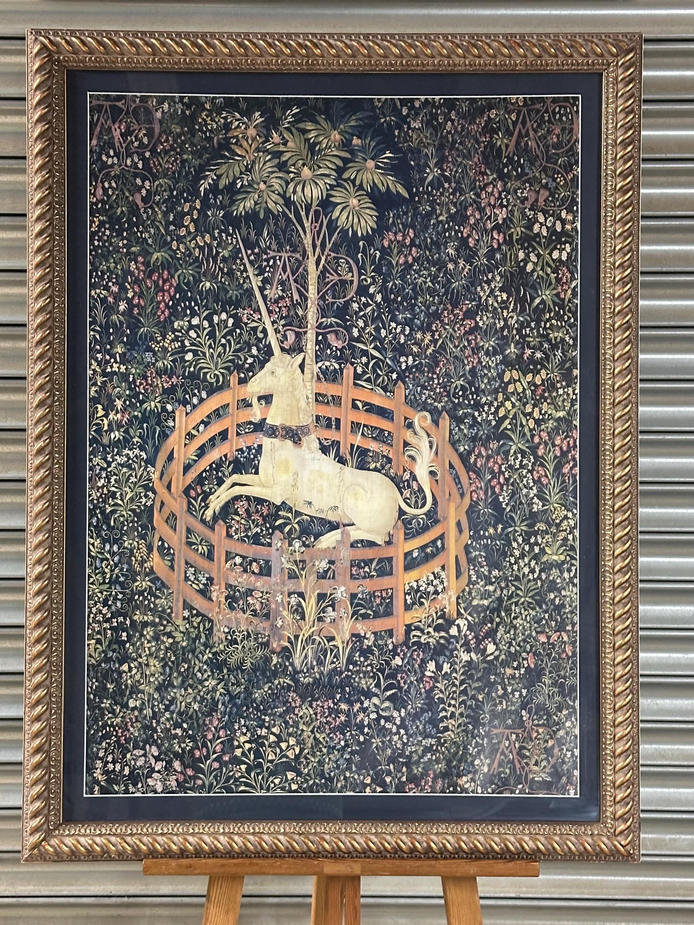 A beautifully presented framed print of The Unicorn Rests in a Garden (also known as The Unicorn in Captivity), the most celebrated panel from the legendary The Unicorn Tapestries.