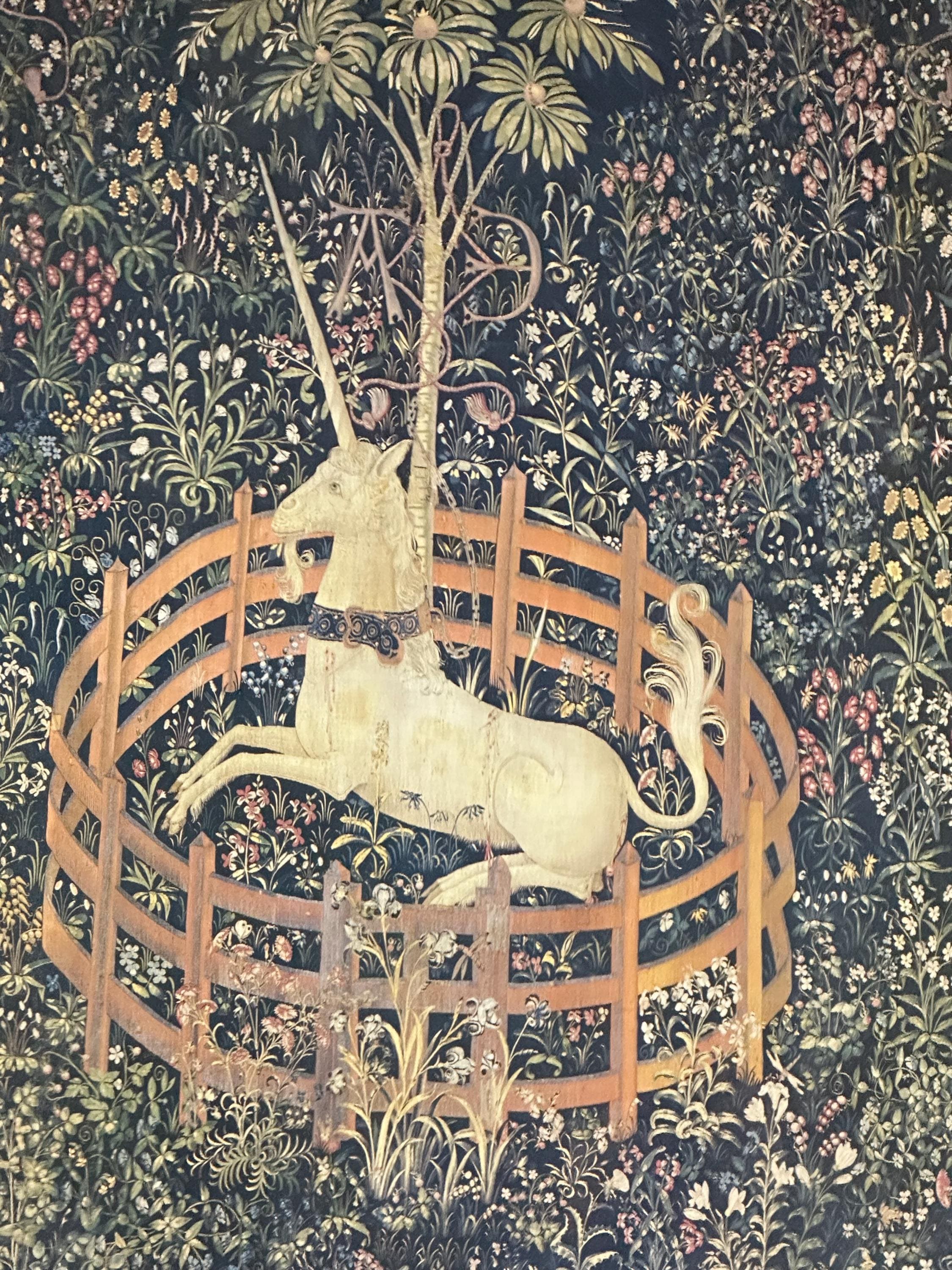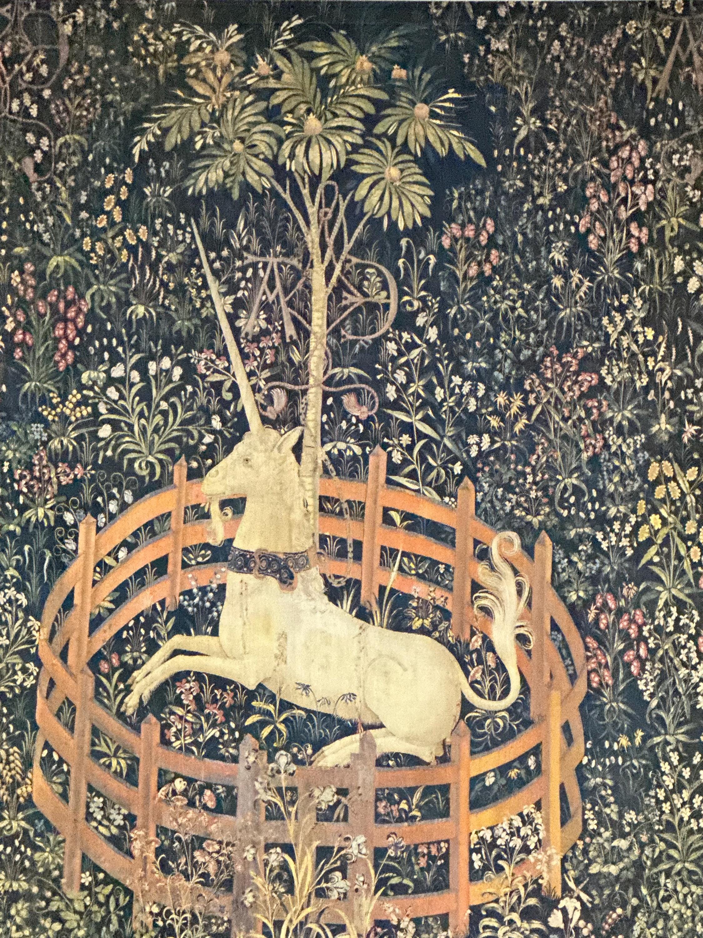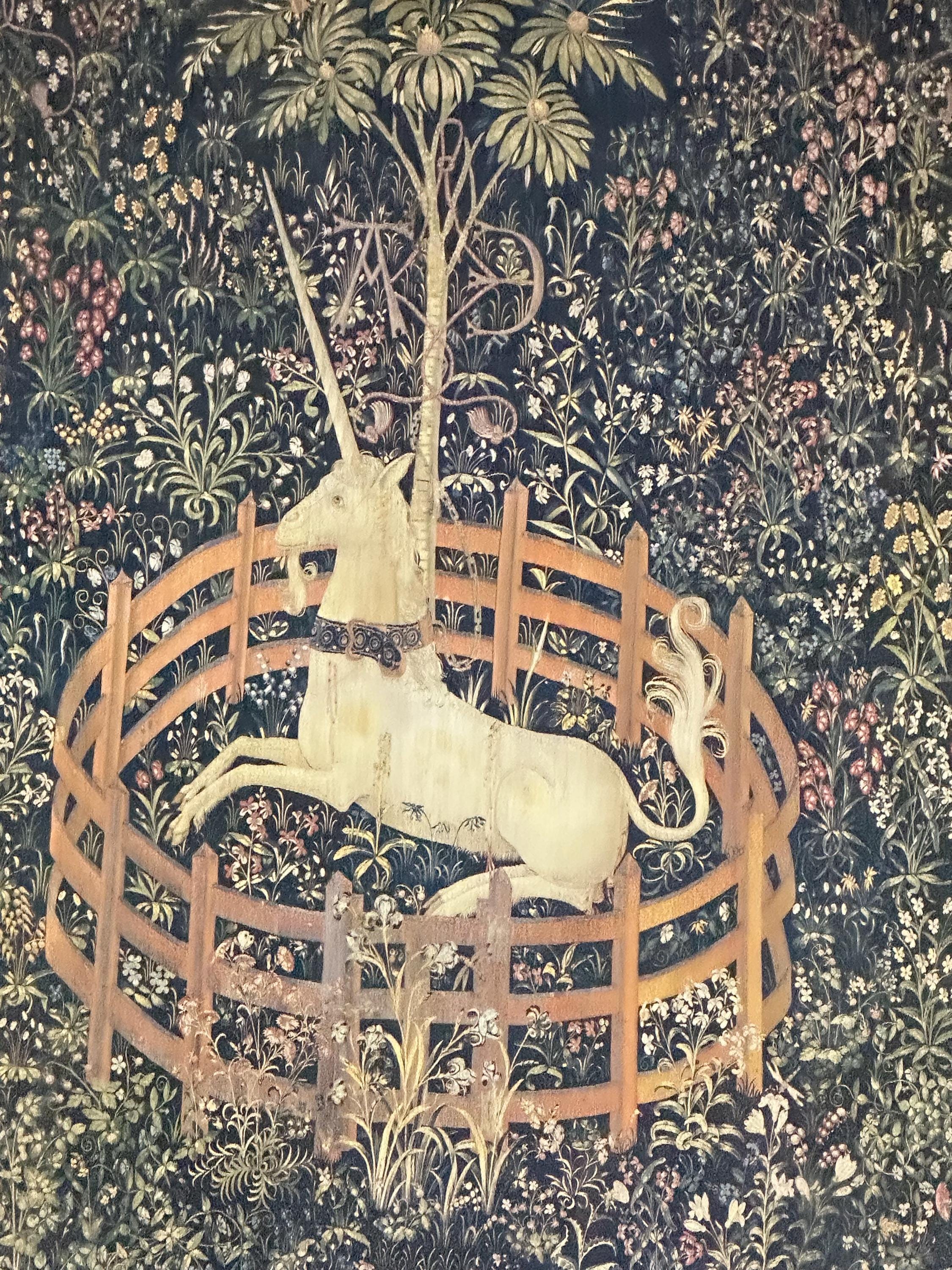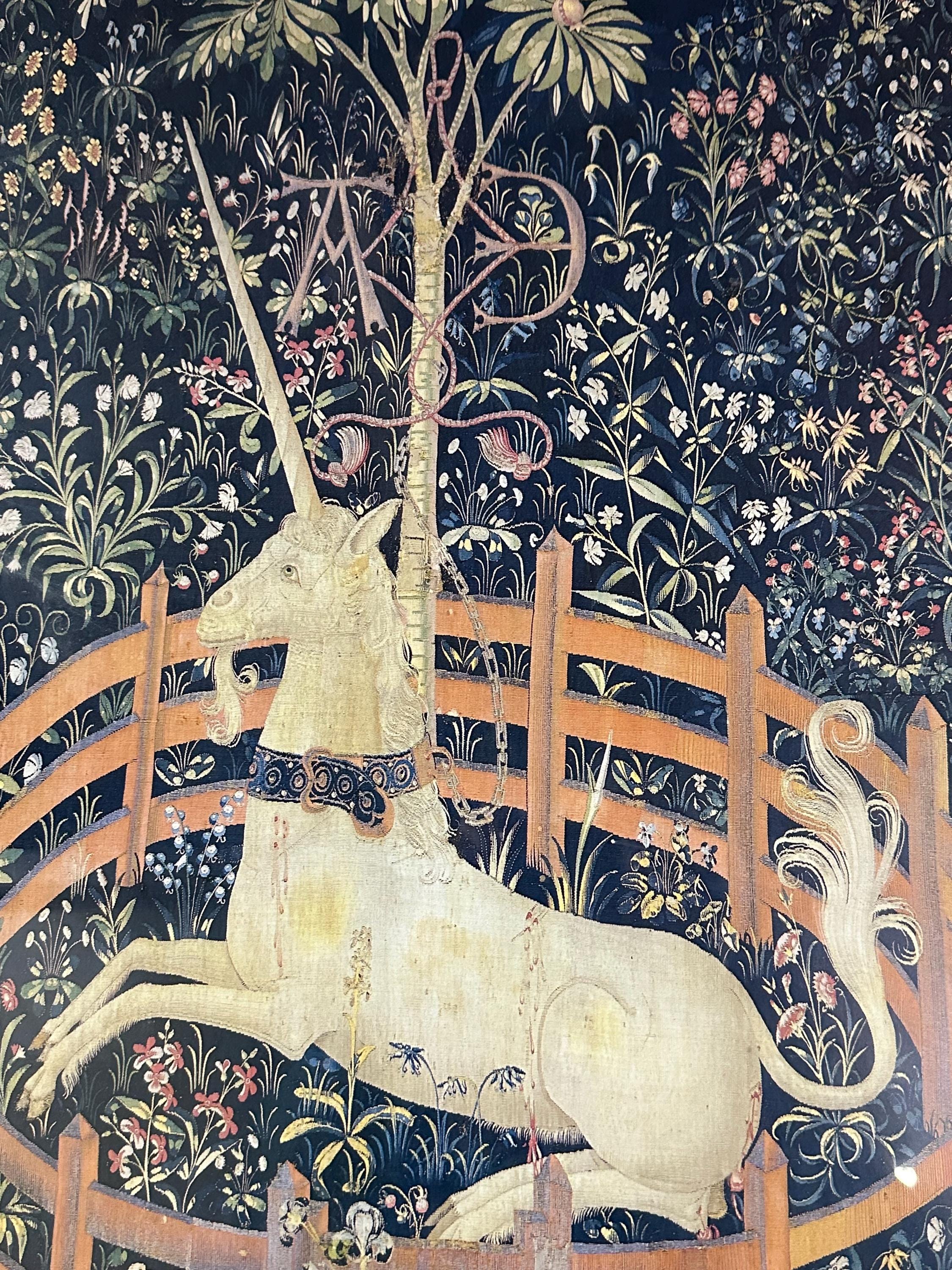 The original medieval tapestry dates to the late 15th century and is part of the permanent collection of The Metropolitan Museum of Art, displayed at The Cloisters, New York.