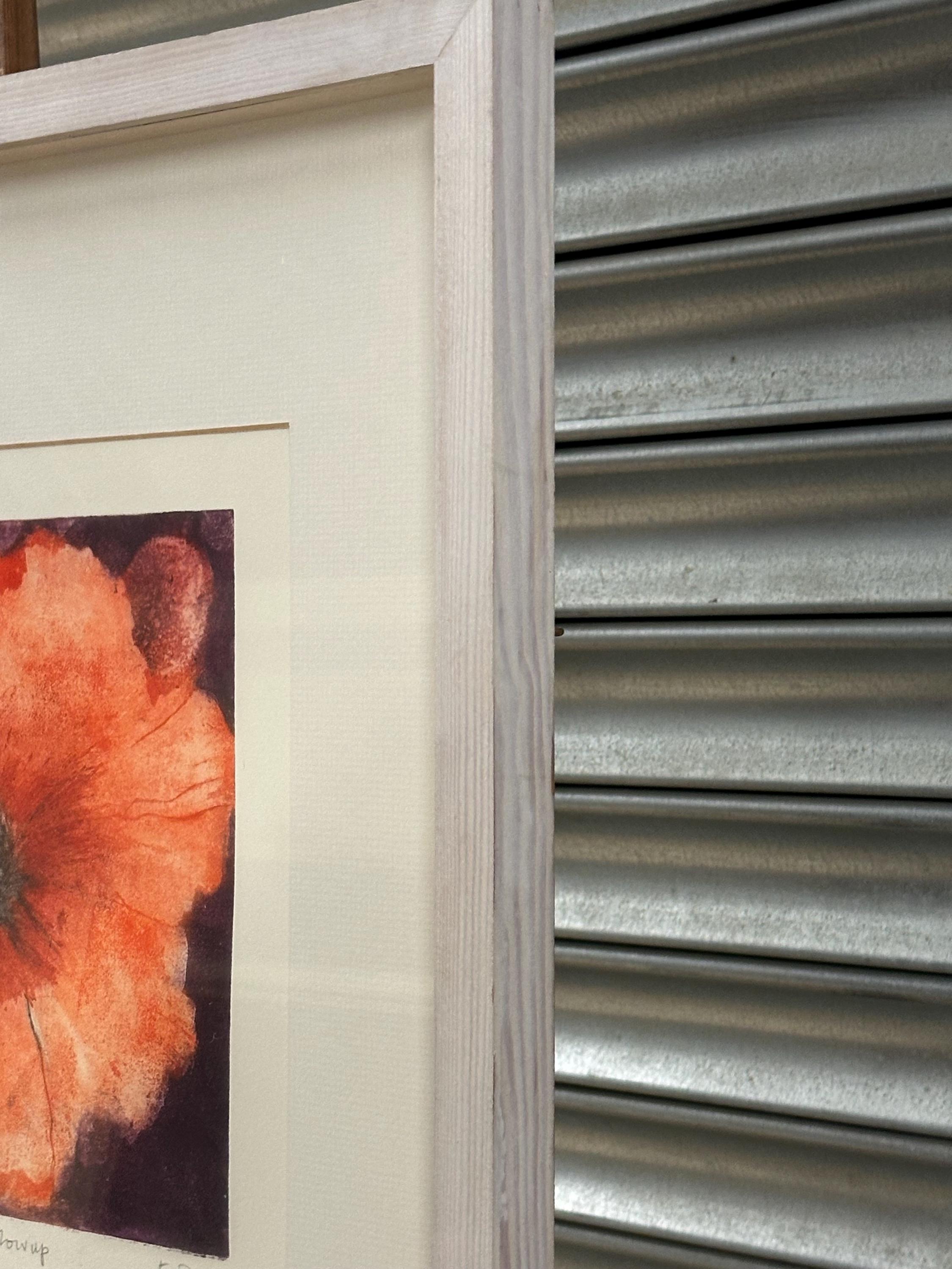 The etching is professionally mounted and framed in a pale wood frame with a wide neutral mount, which beautifully complements the artwork and allows it to be displayed immediately.
