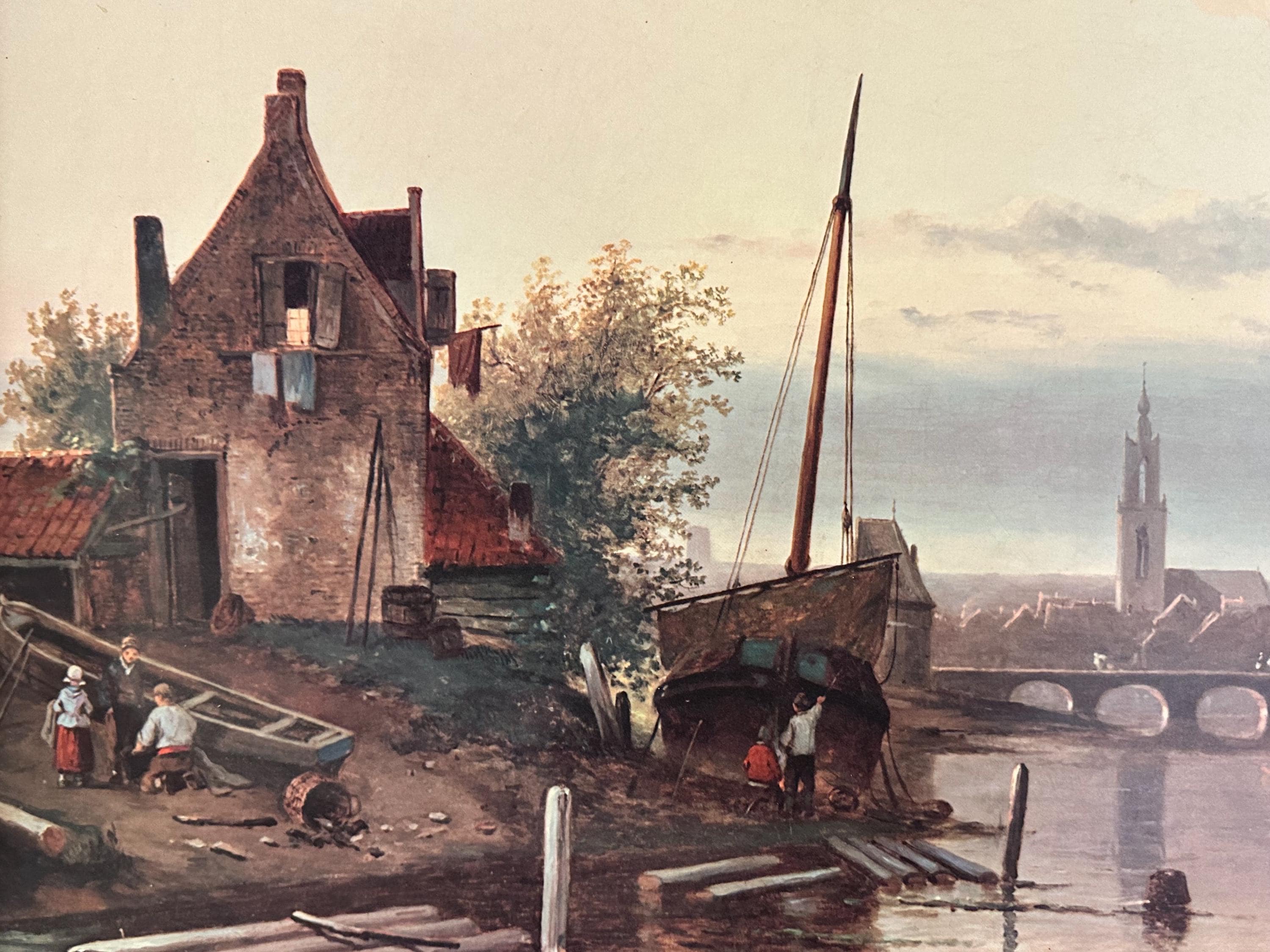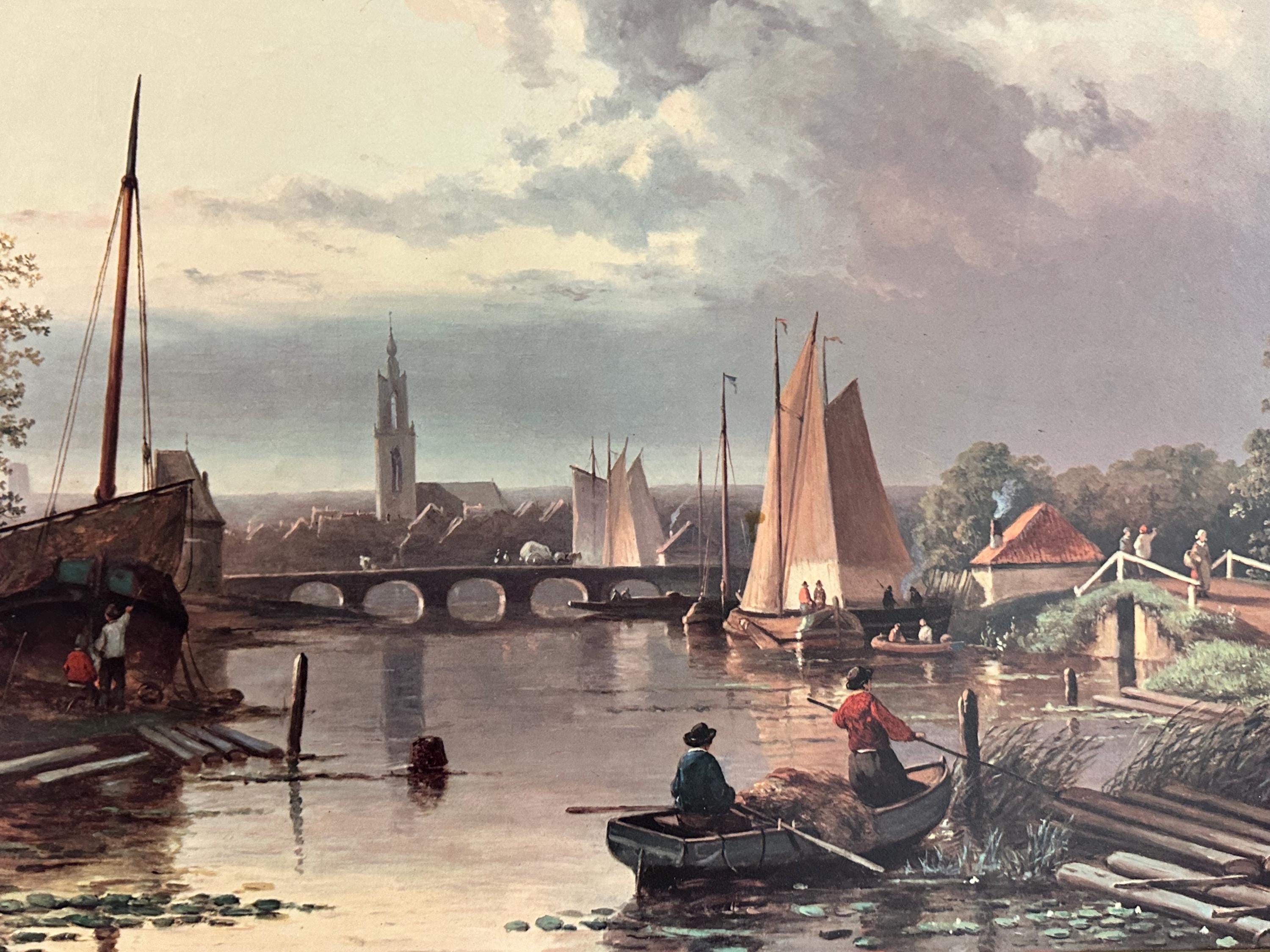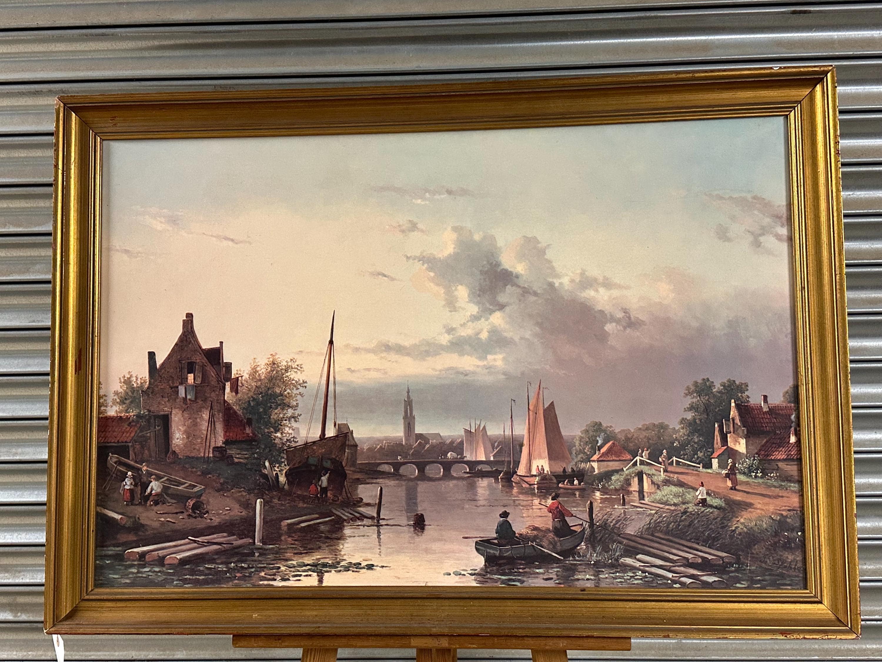 Very Large Gilt Framed Print "Quiet Evening Hour" Signed by Jan Spohler - Dutch