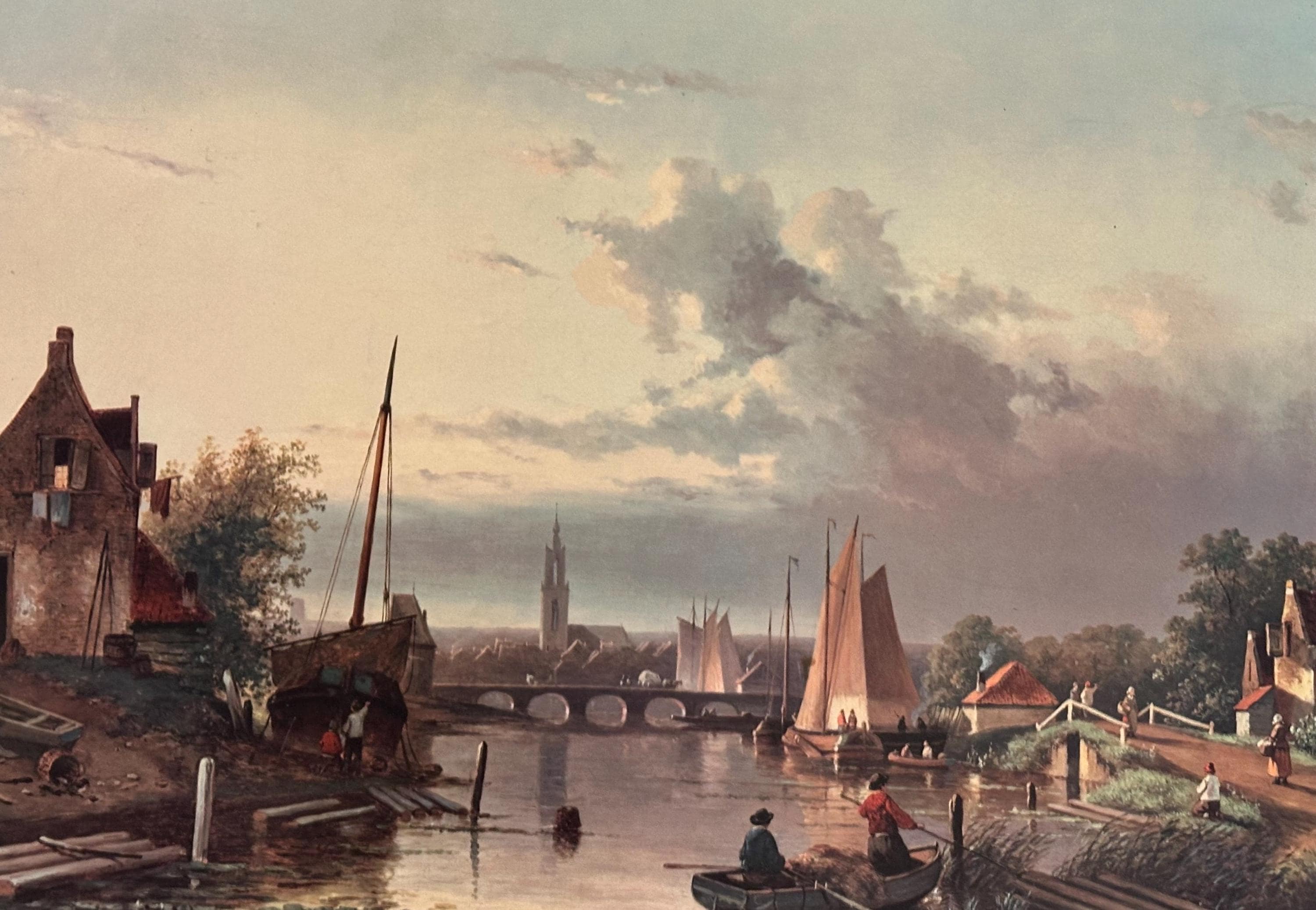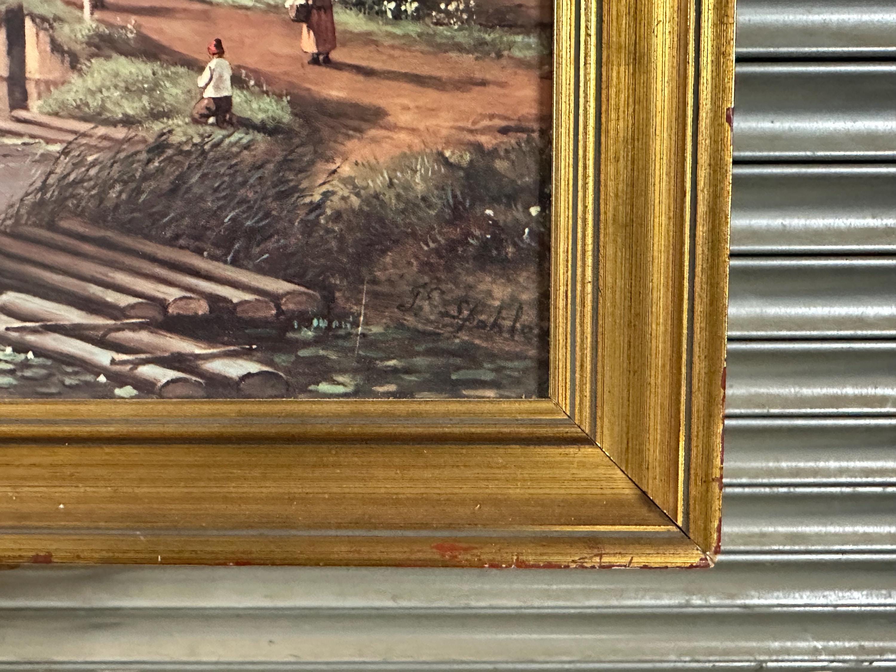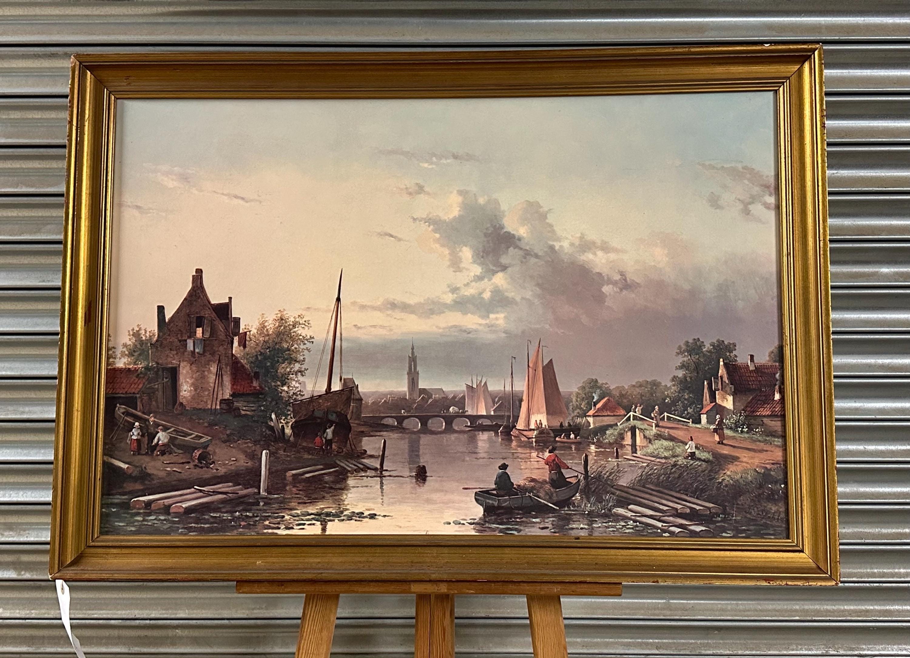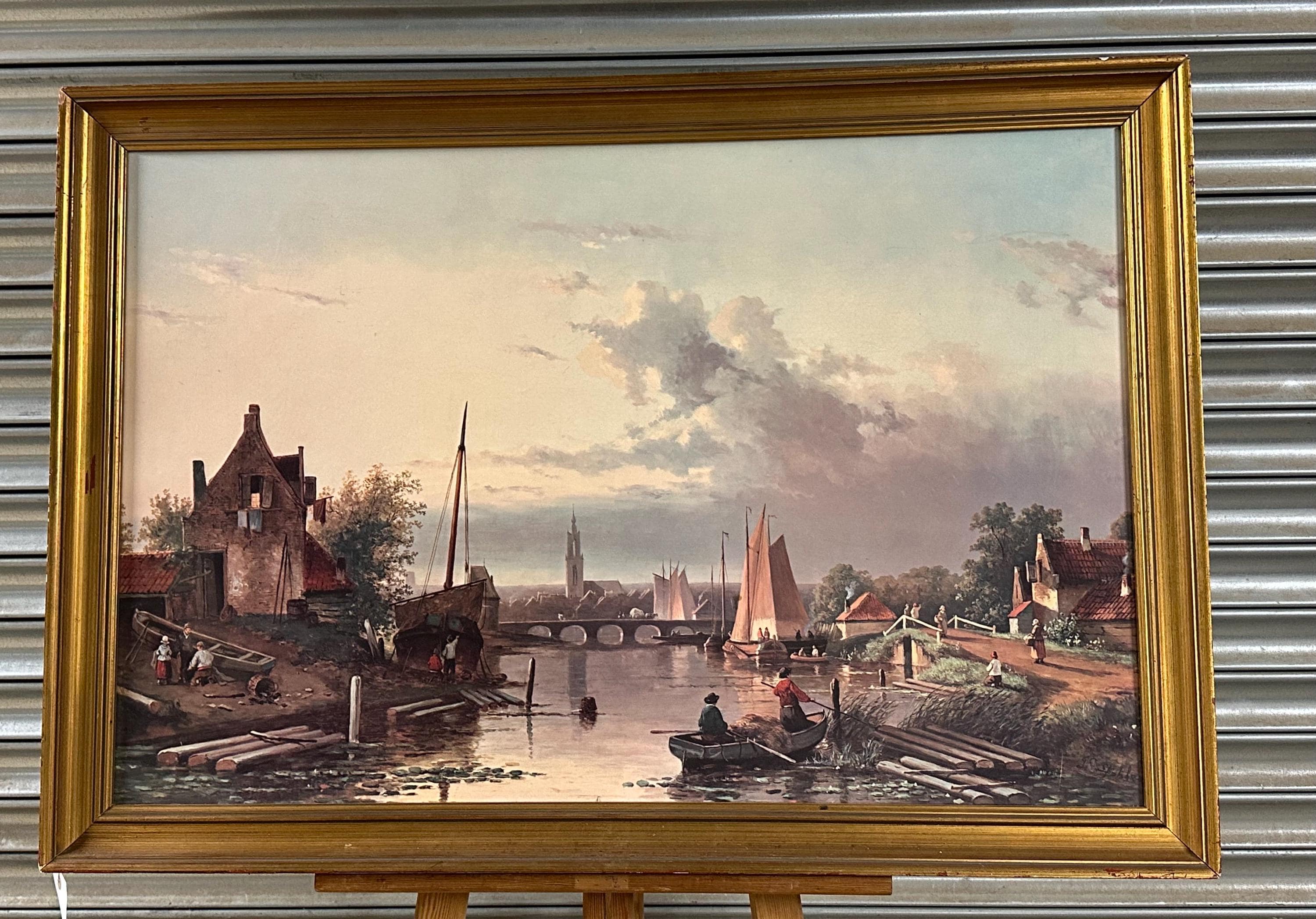 Very Large Gilt Framed Print "Quiet Evening Hour" Signed by Jan Spohler - Dutch