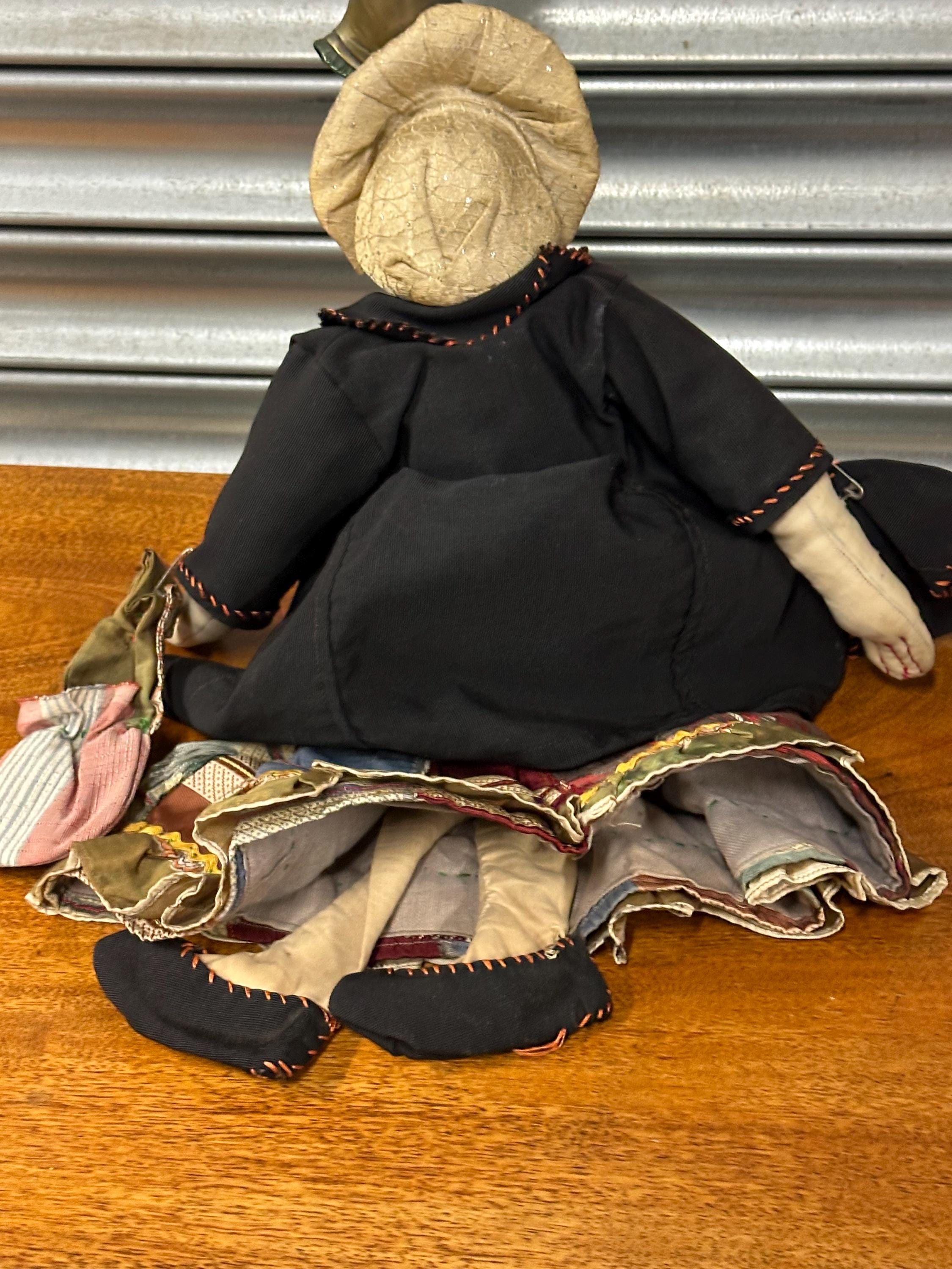 Vintage Papier Mâché & Cloth Rag Doll with Miniature Doll in her hand bag – Handmade Folk Art