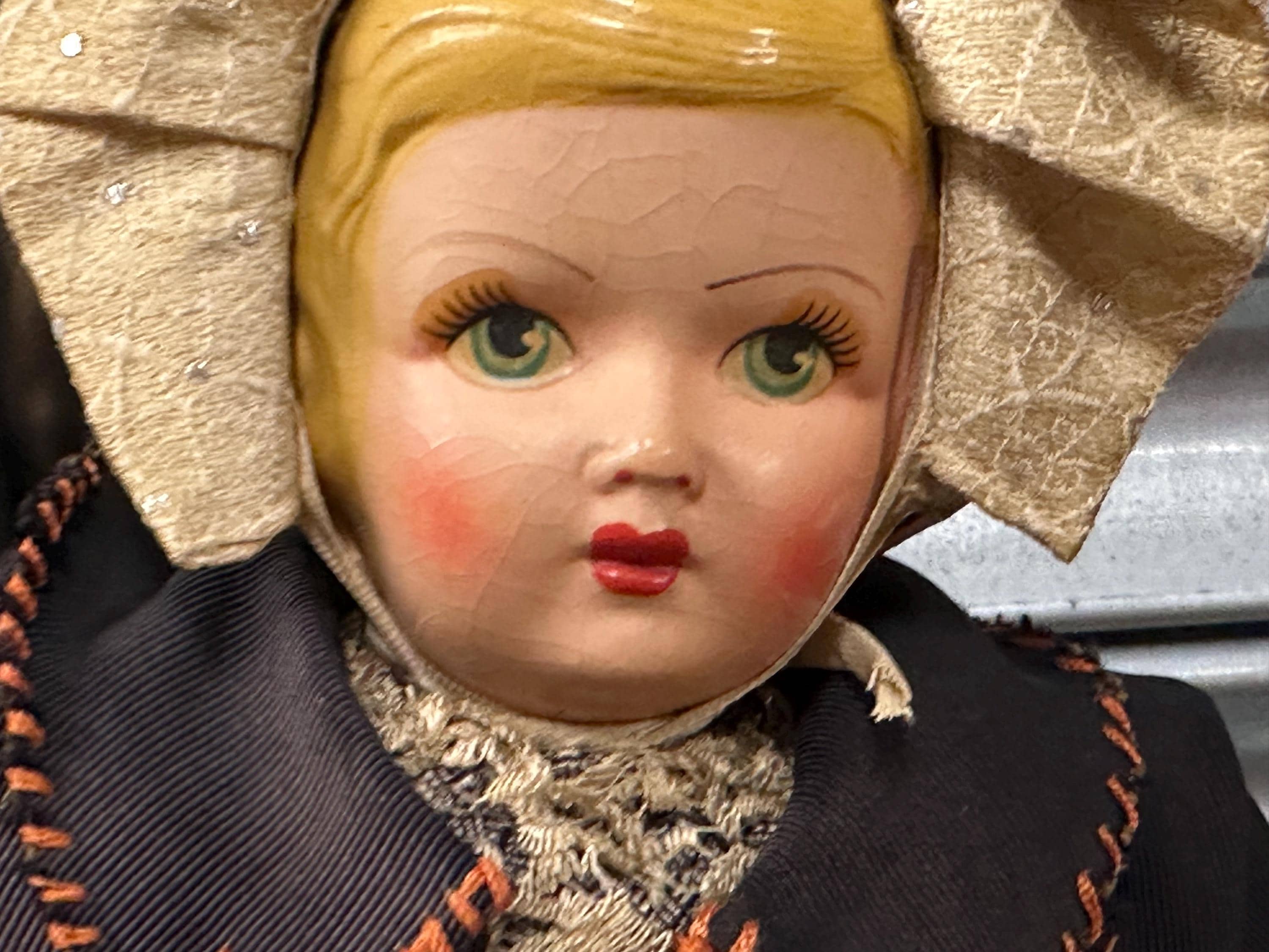 • Vintage papier mâché head with painted eyes and features