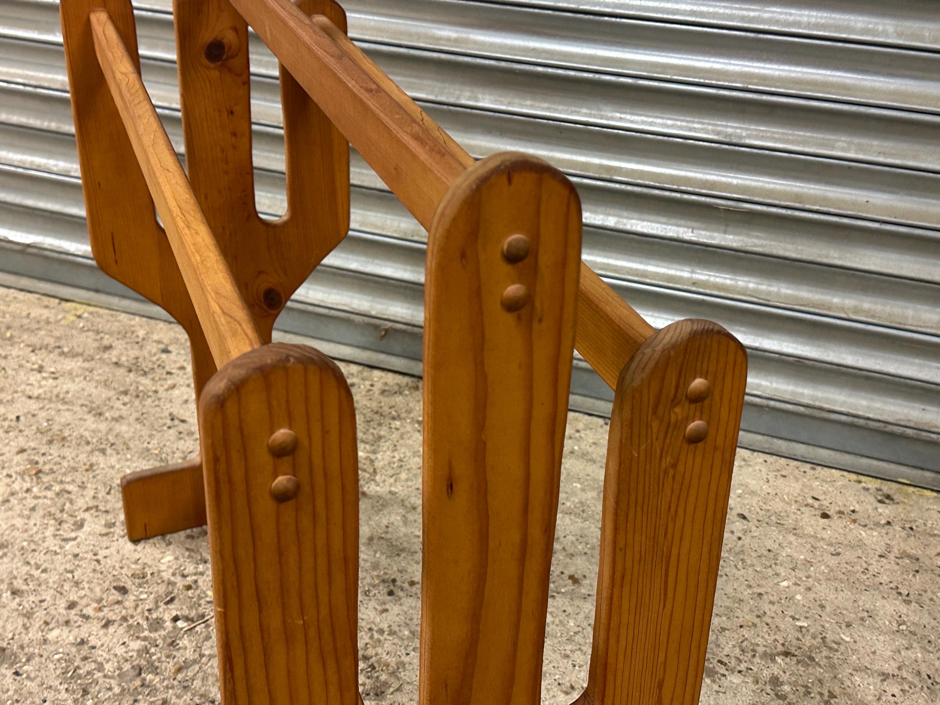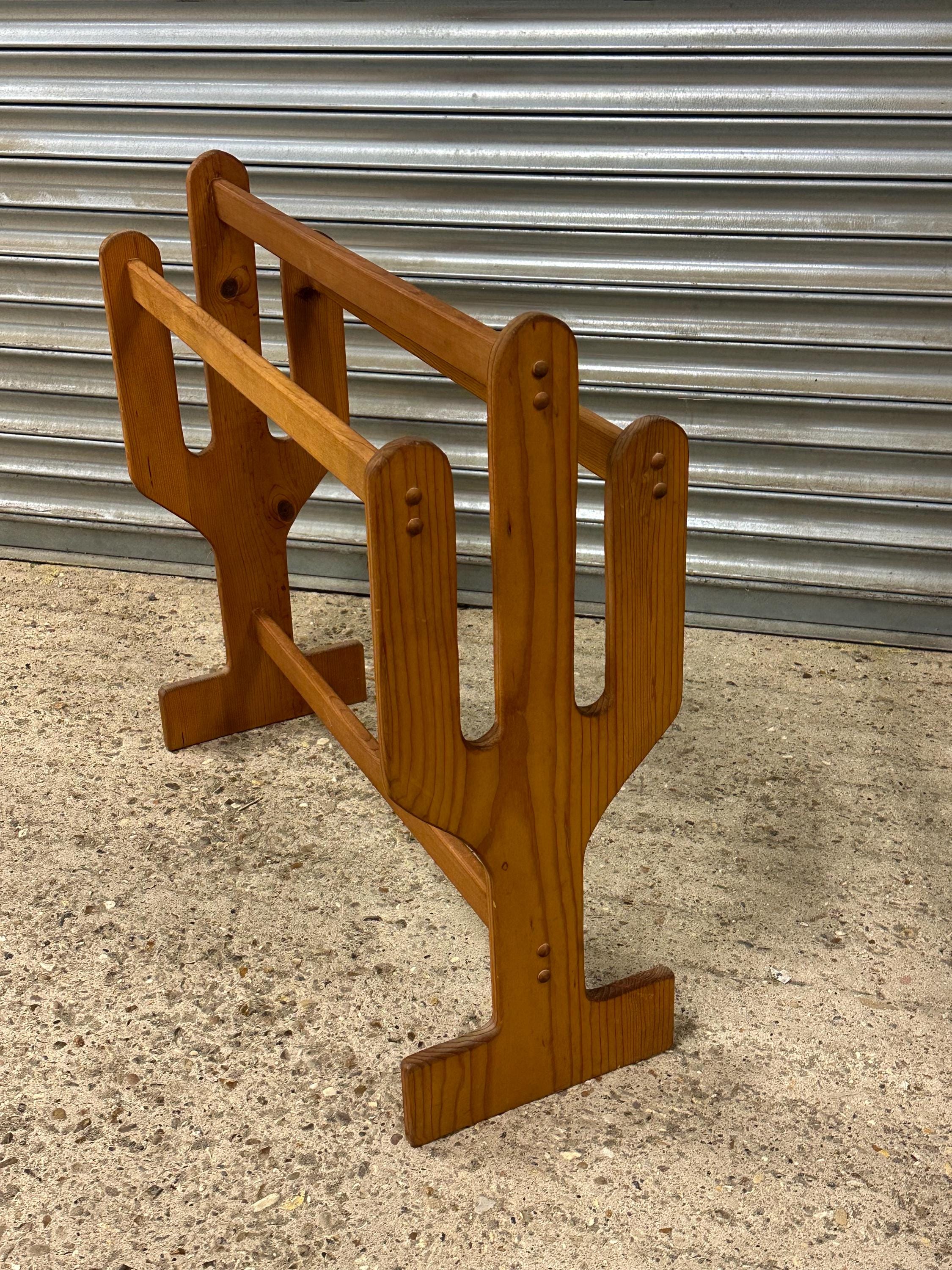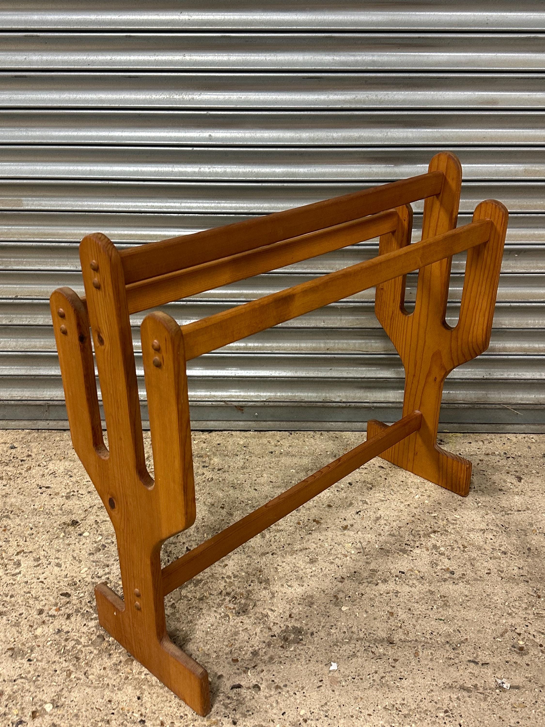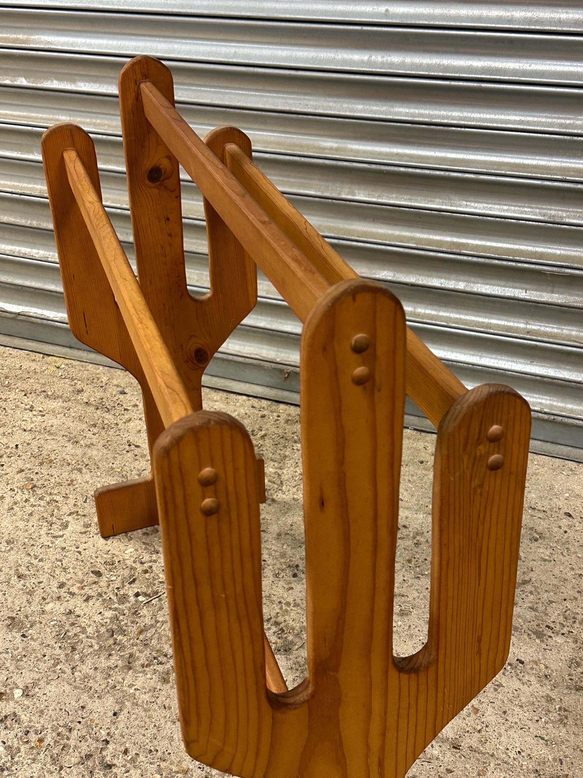 Sturdy and well constructed, the rack stands firmly and presents beautifully as a functional decorative piece. A great example of vintage pine furniture that fits effortlessly into mid-century, rustic or Scandinavian-inspired interiors.