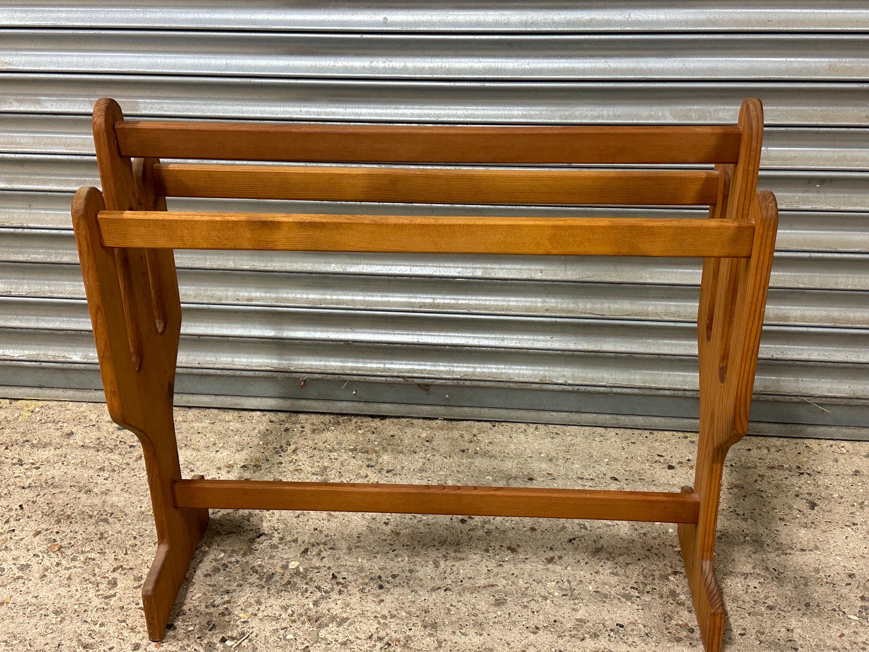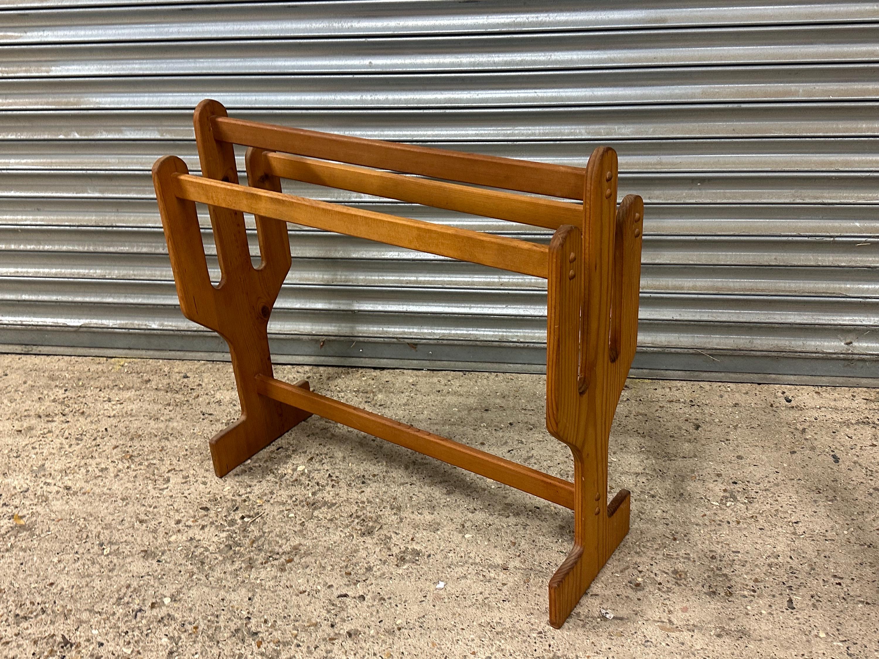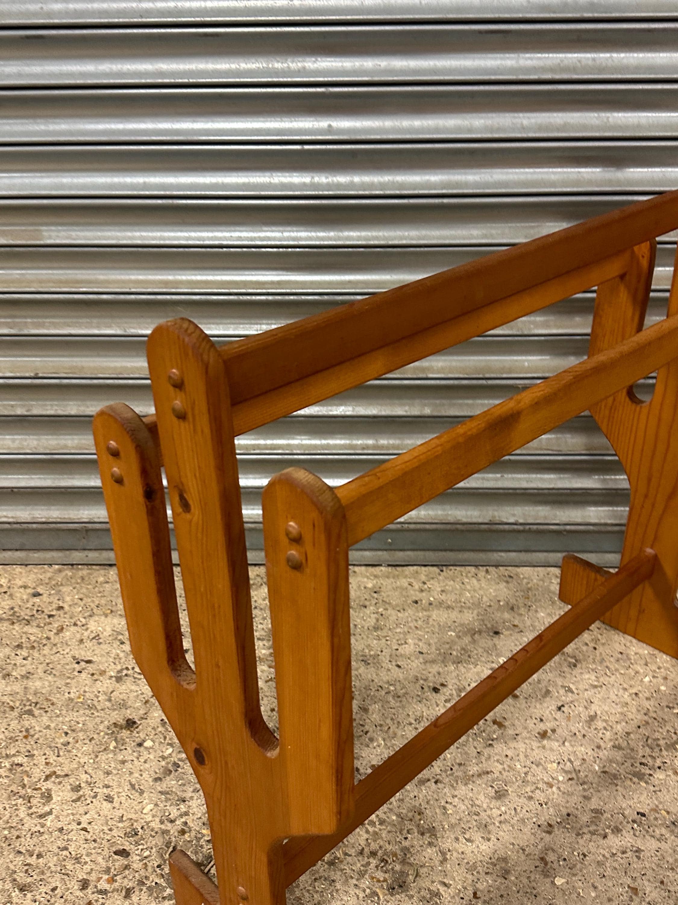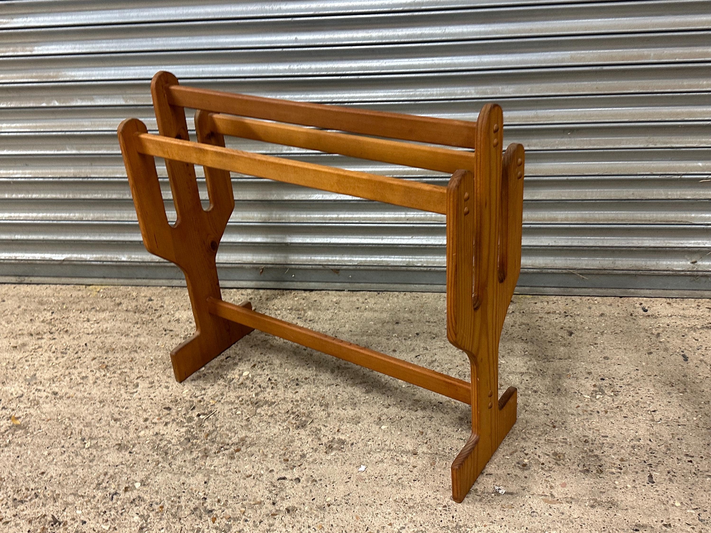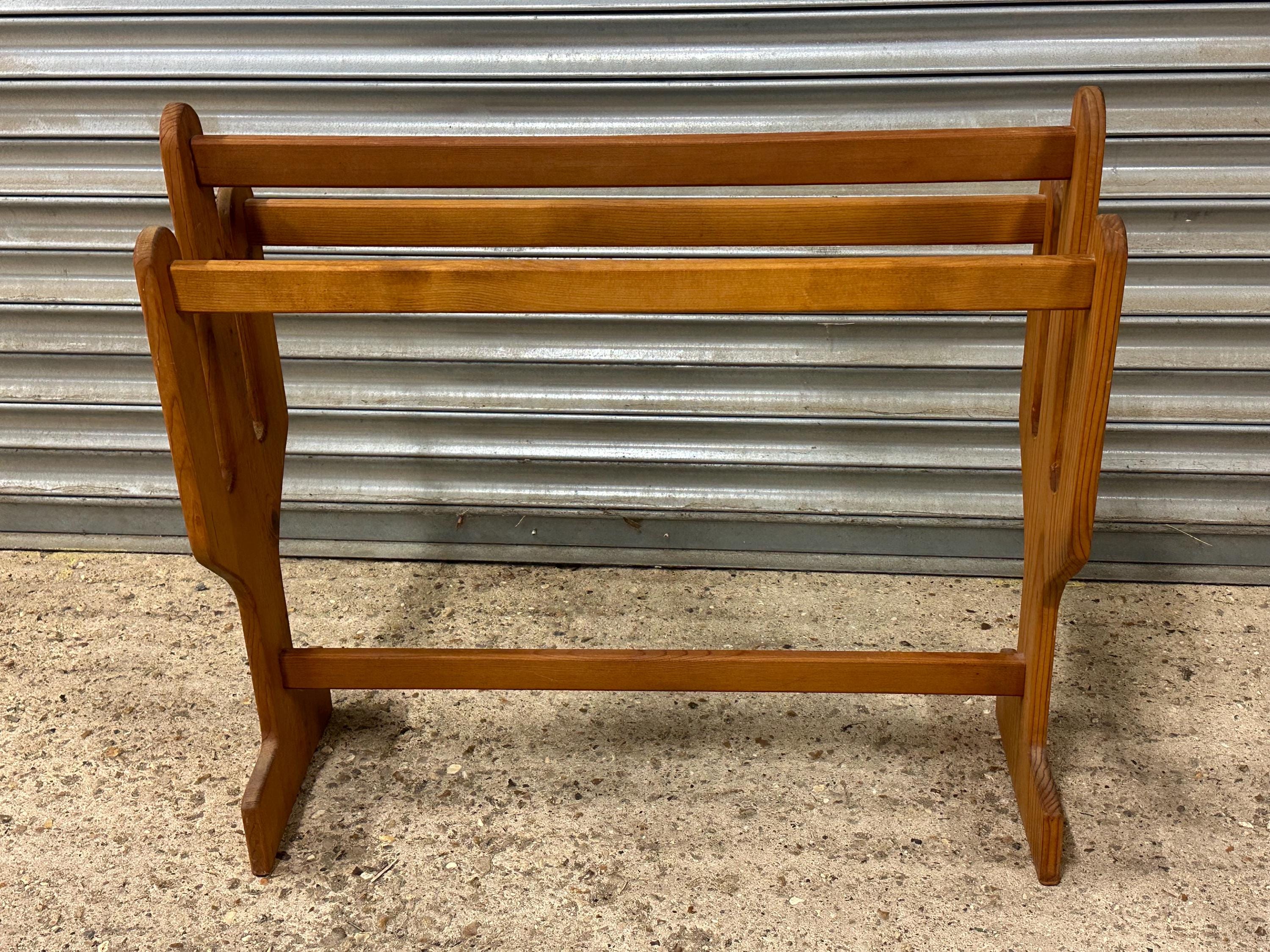 Sturdy and well constructed, the rack stands firmly and presents beautifully as a functional decorative piece. A great example of vintage pine furniture that fits effortlessly into mid-century, rustic or Scandinavian-inspired interiors.