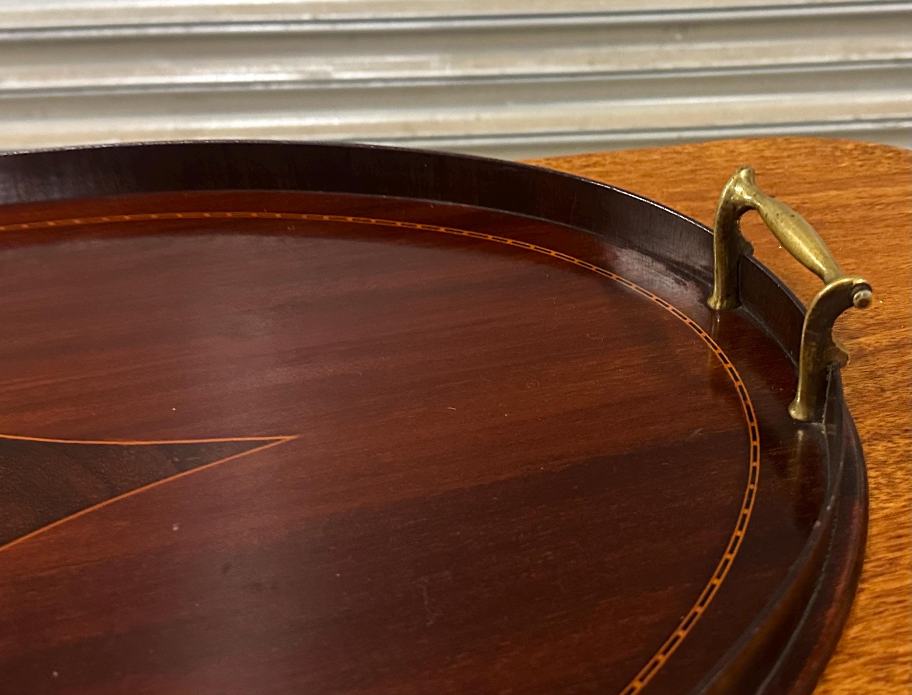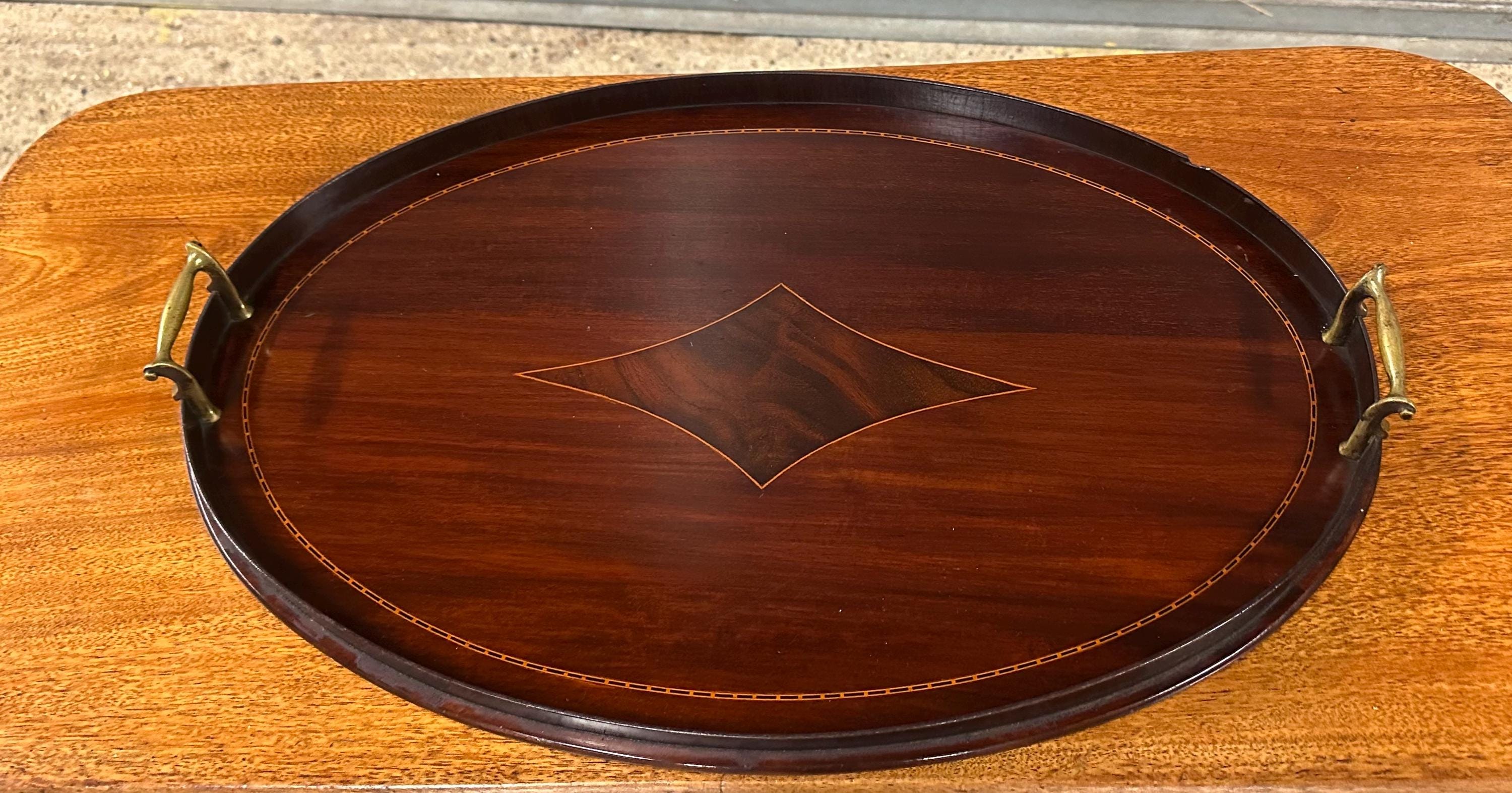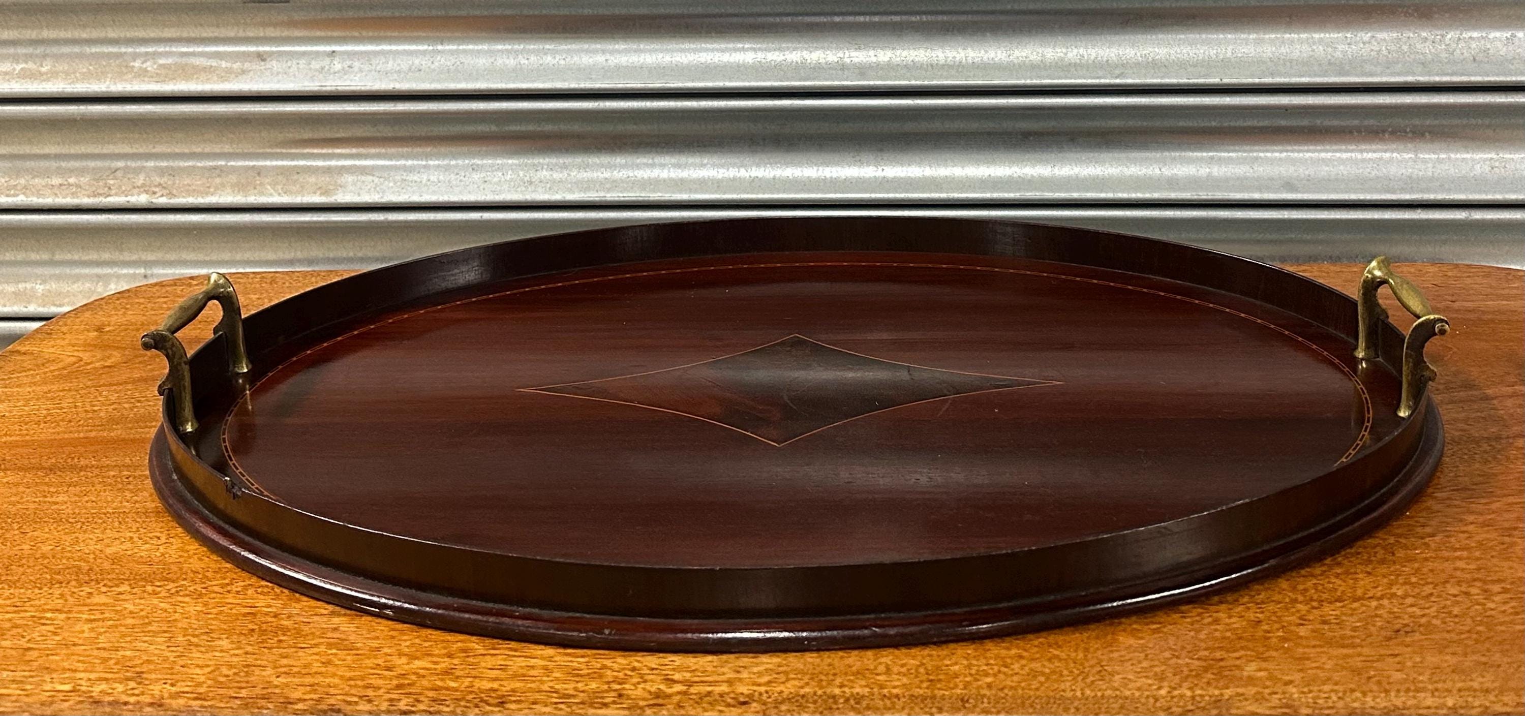 Antique Edwardian Mahogany Oval Serving / Drinks Tray