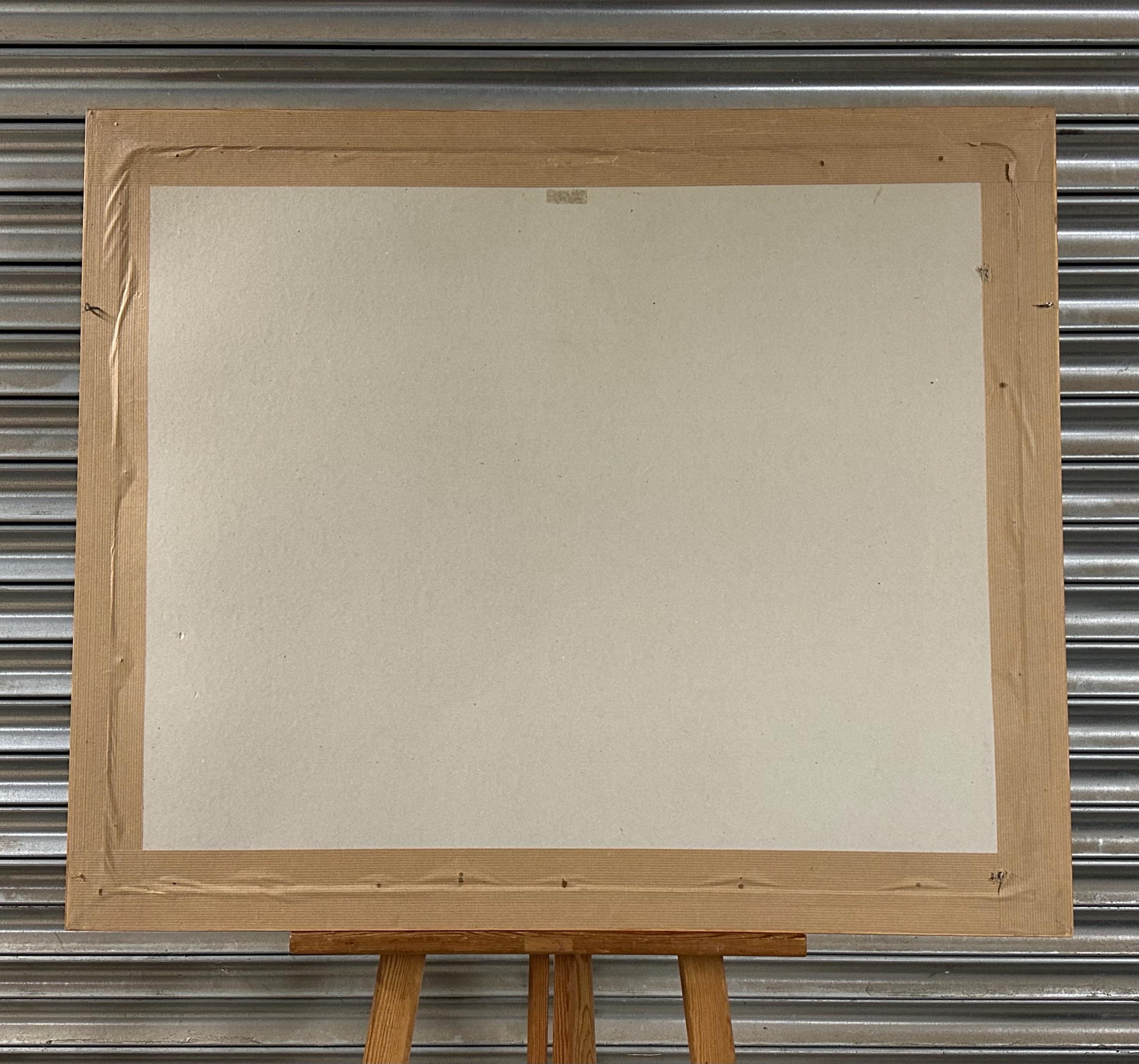 Frame size is approx 97cm x 80.5cm, slight lifting to print within the frame to the right hand side but not really noticeable when displayed on the wall and you may wish to reframe it anyway at which time the framers can re mount it.