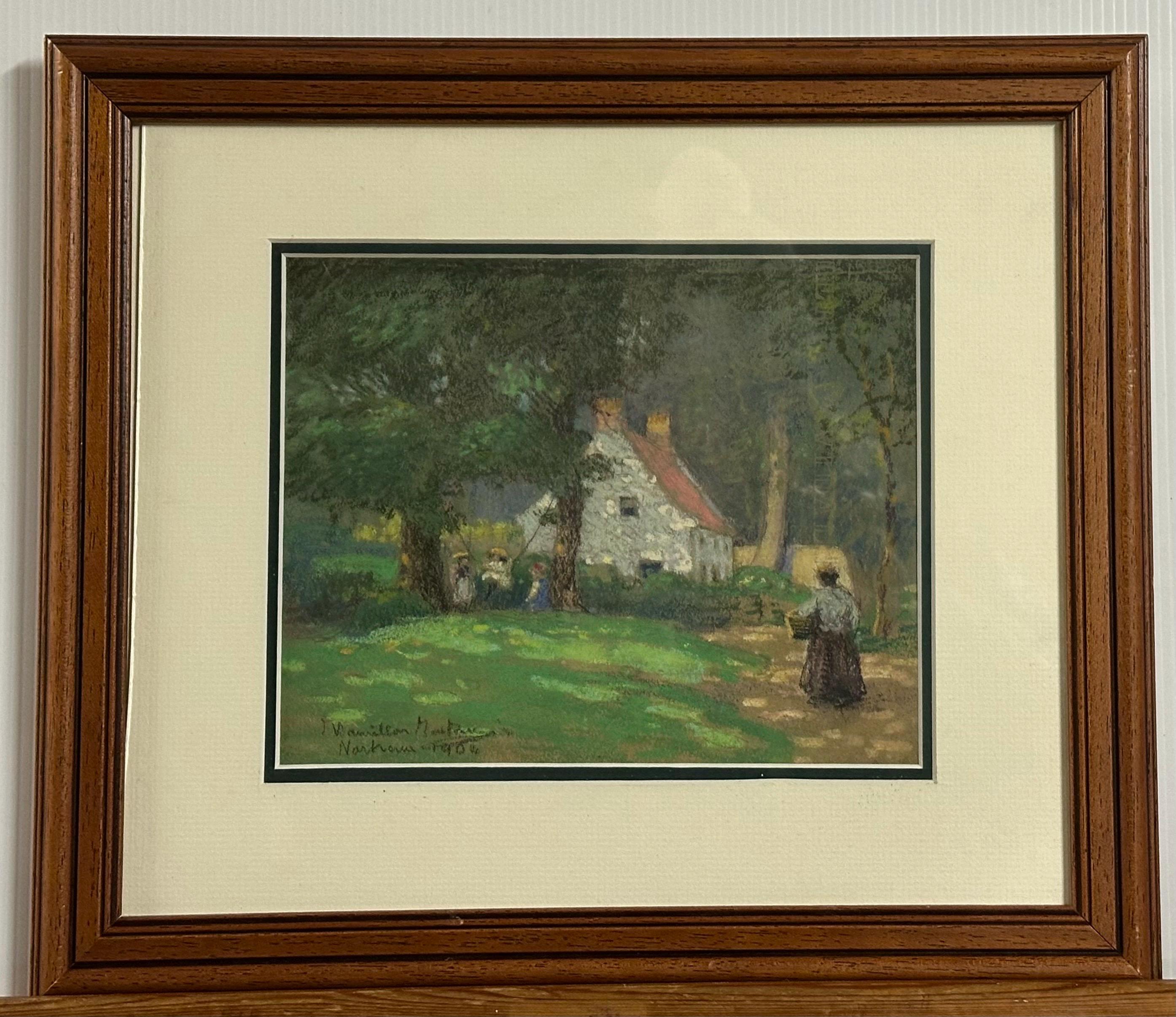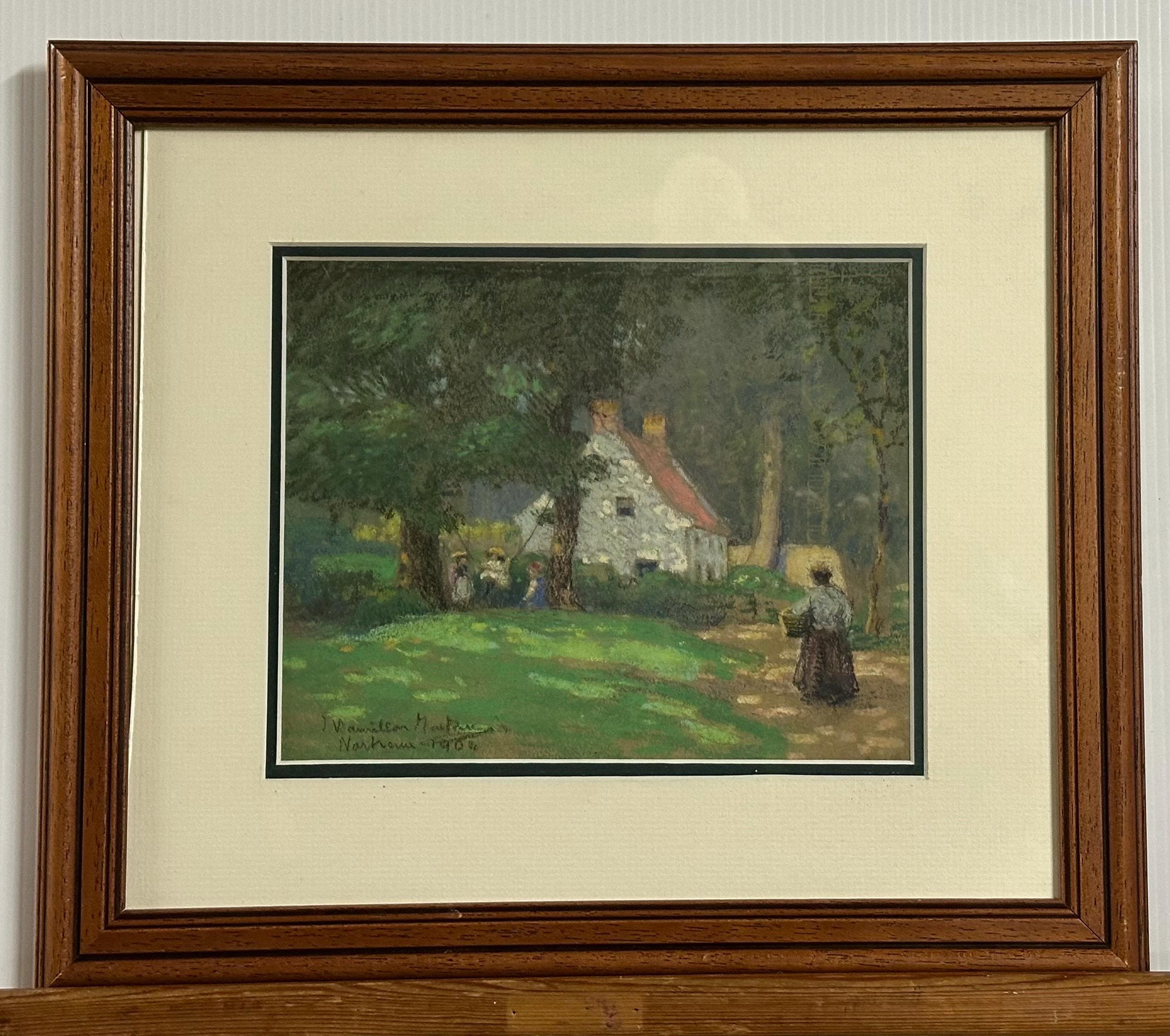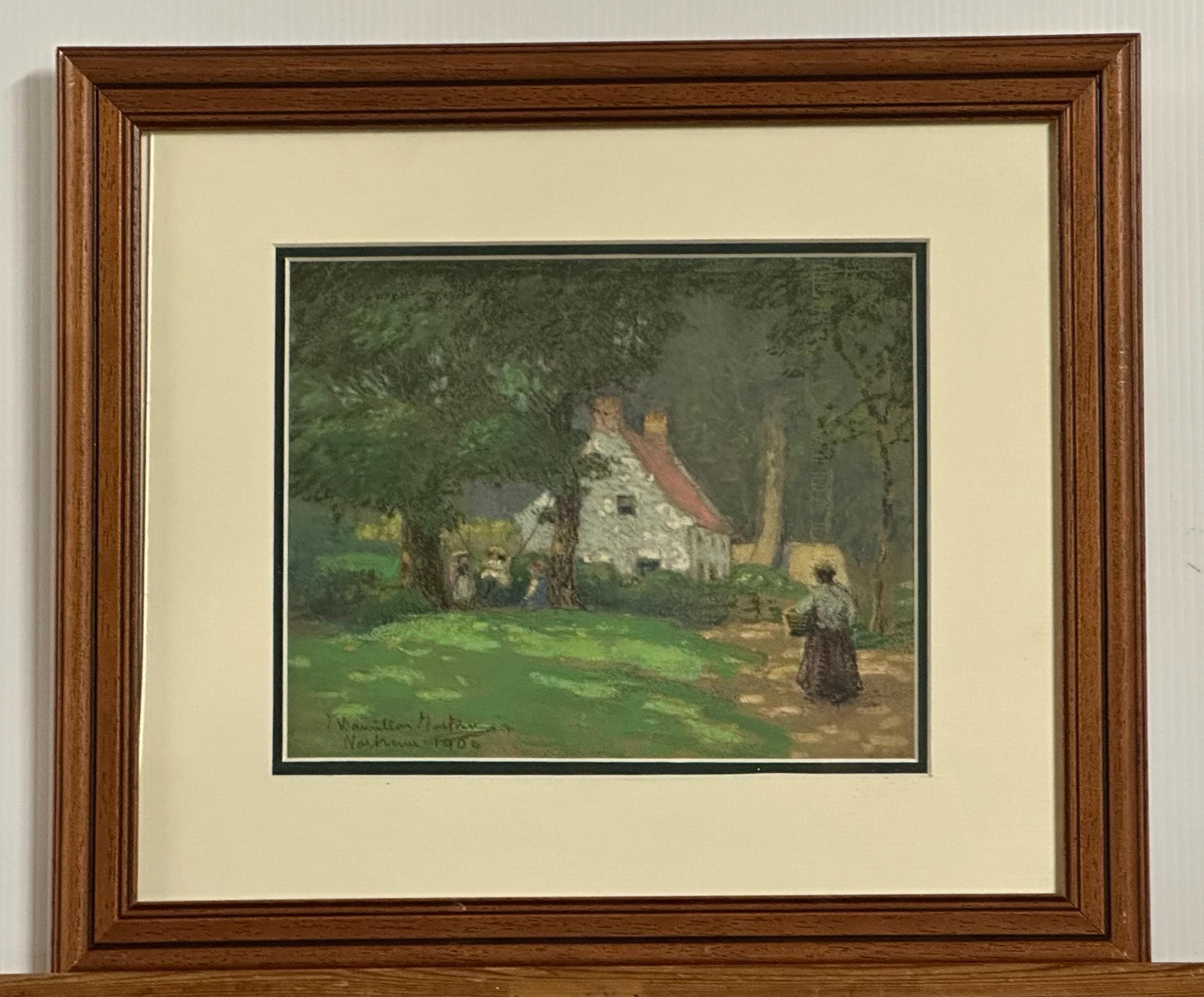 Original Antique 1904 Pastel Artwork Of An English Country Cottage – Signed
