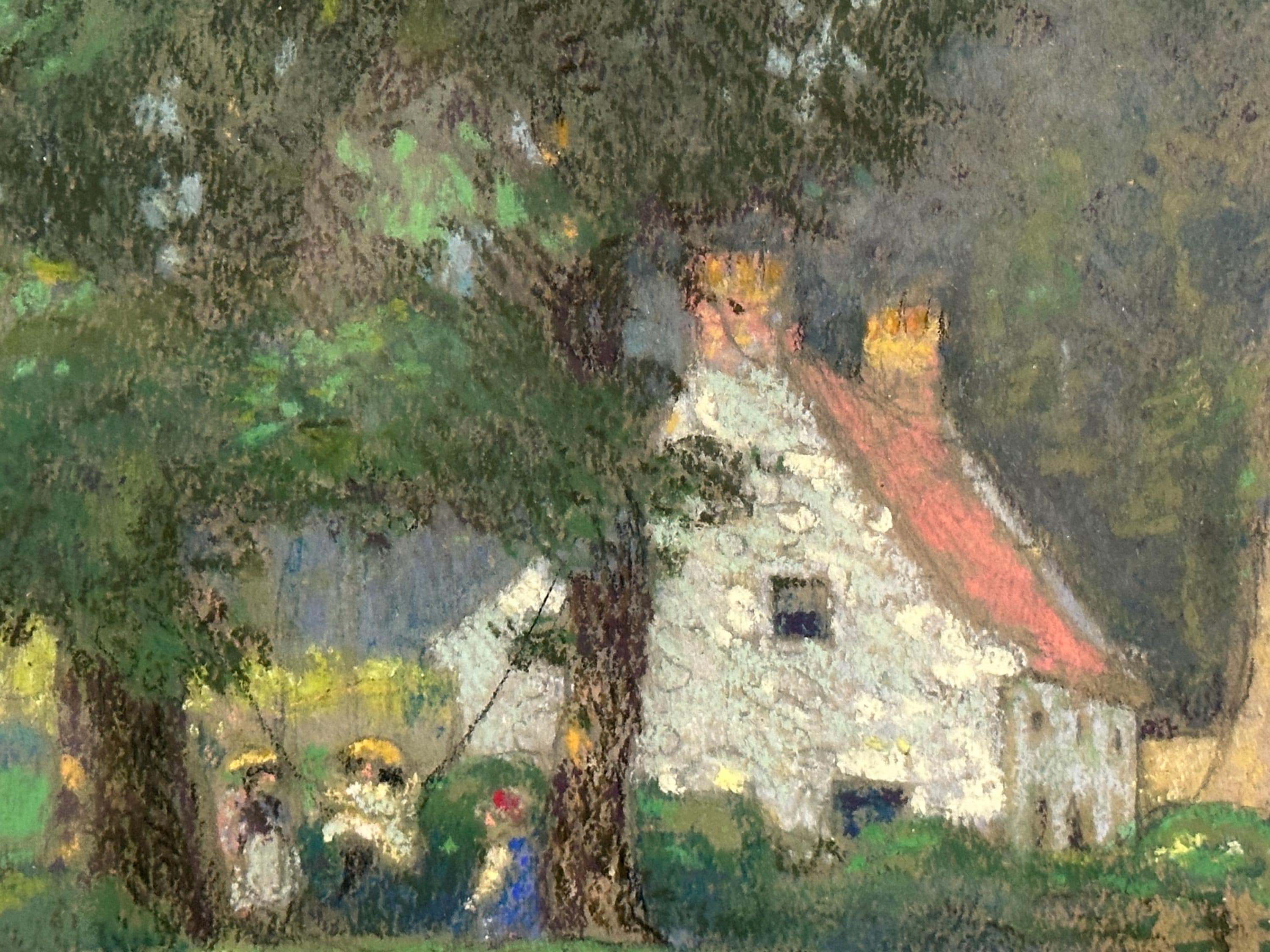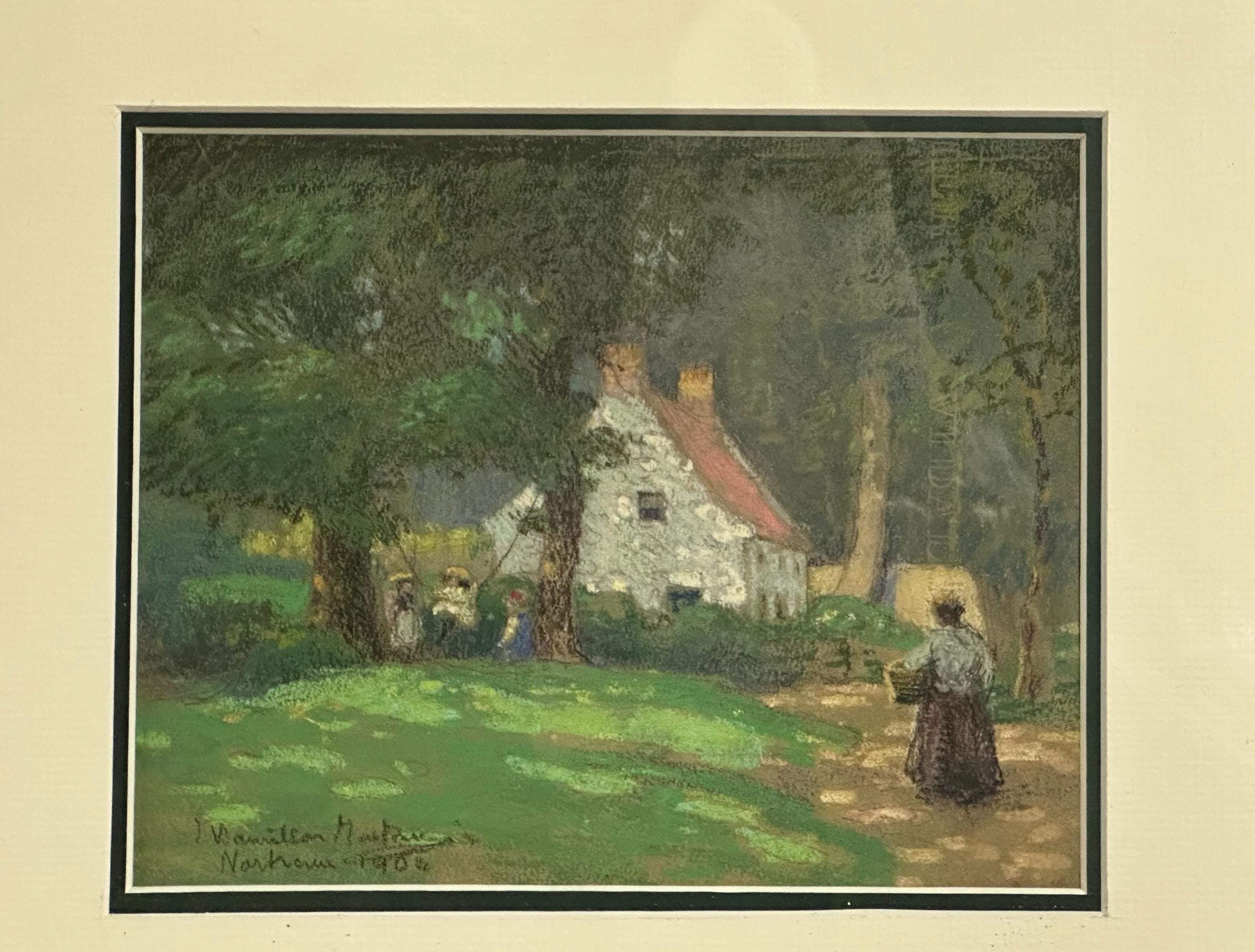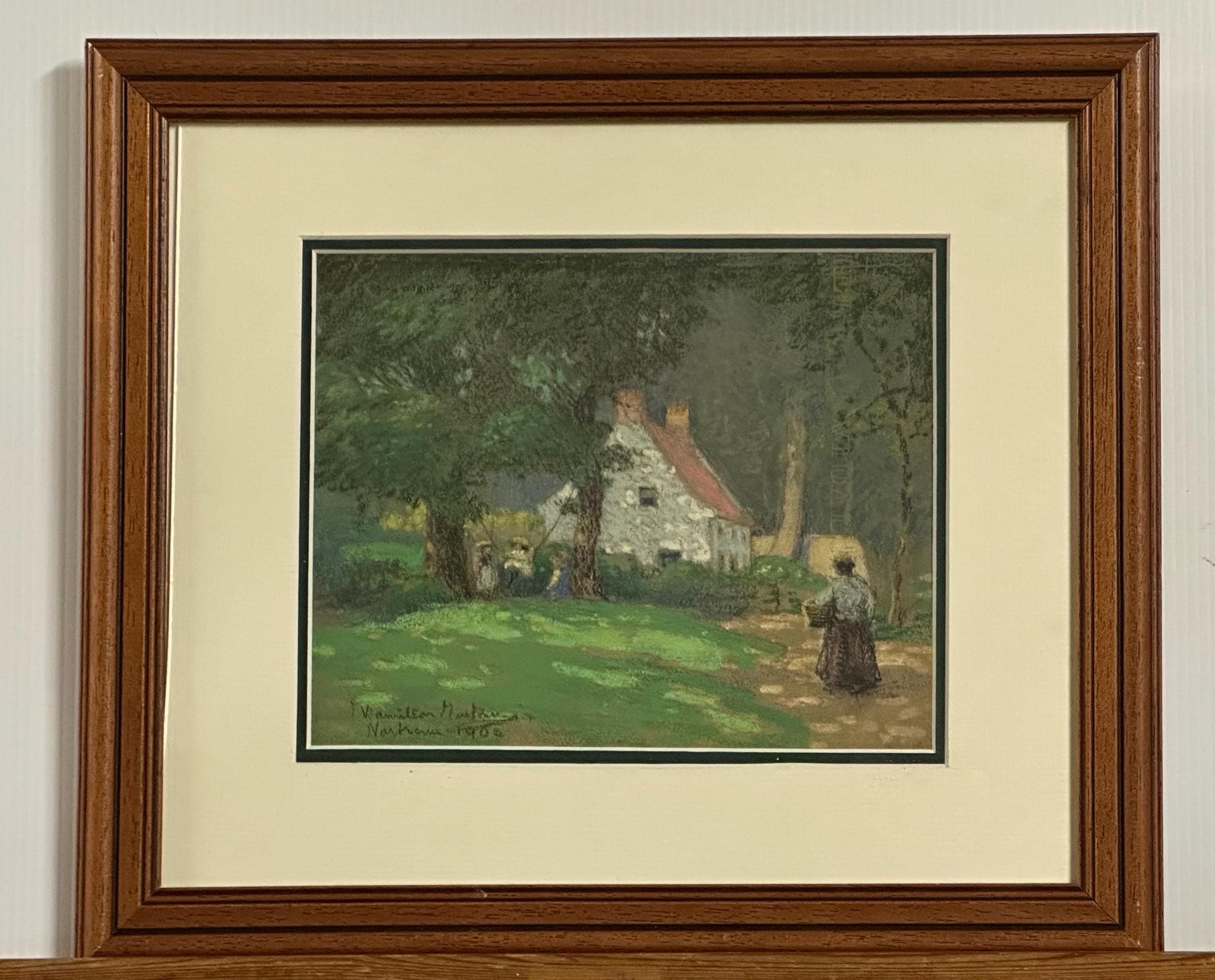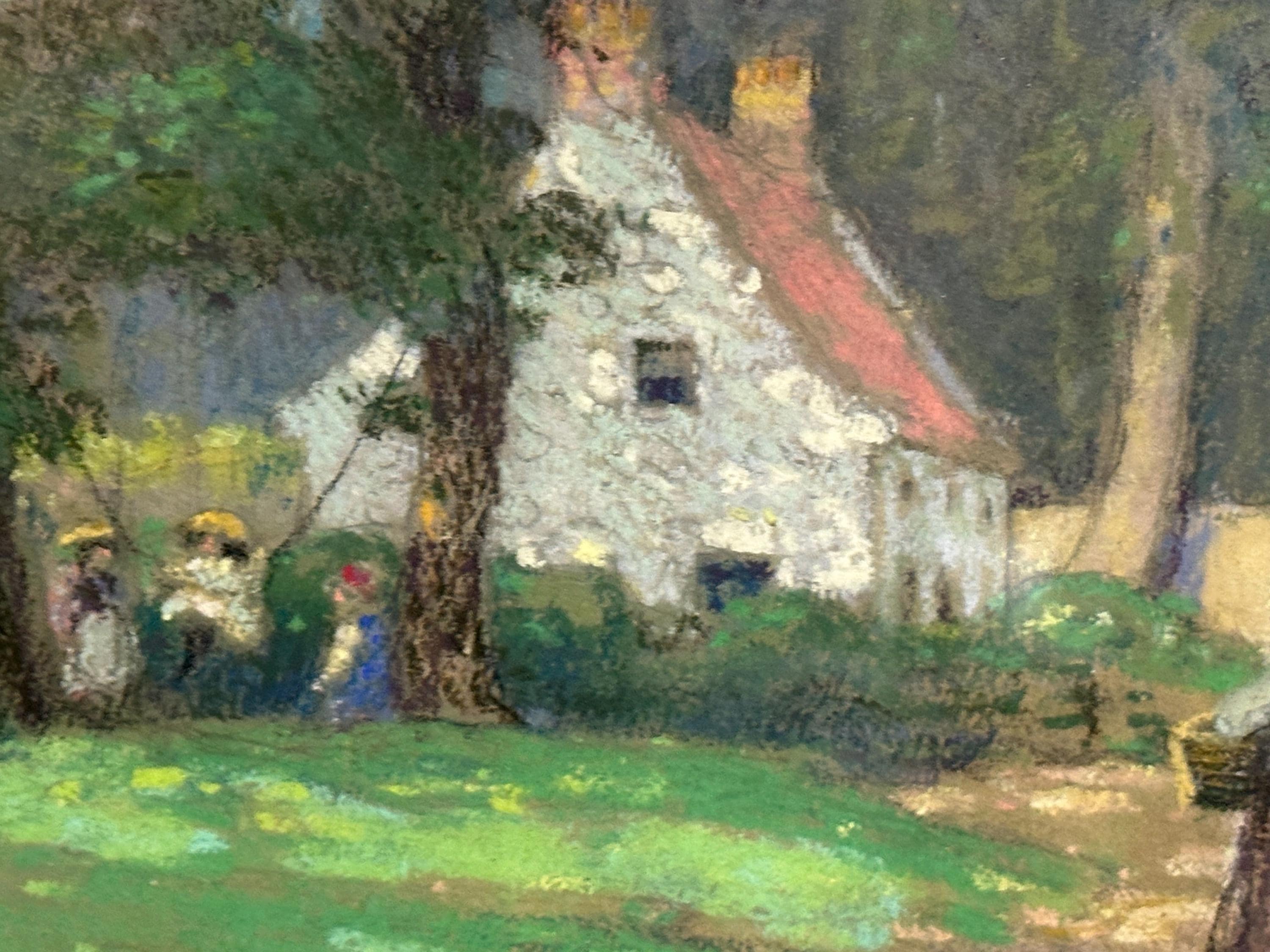 Original Antique 1904 Pastel Artwork Of An English Country Cottage – Signed