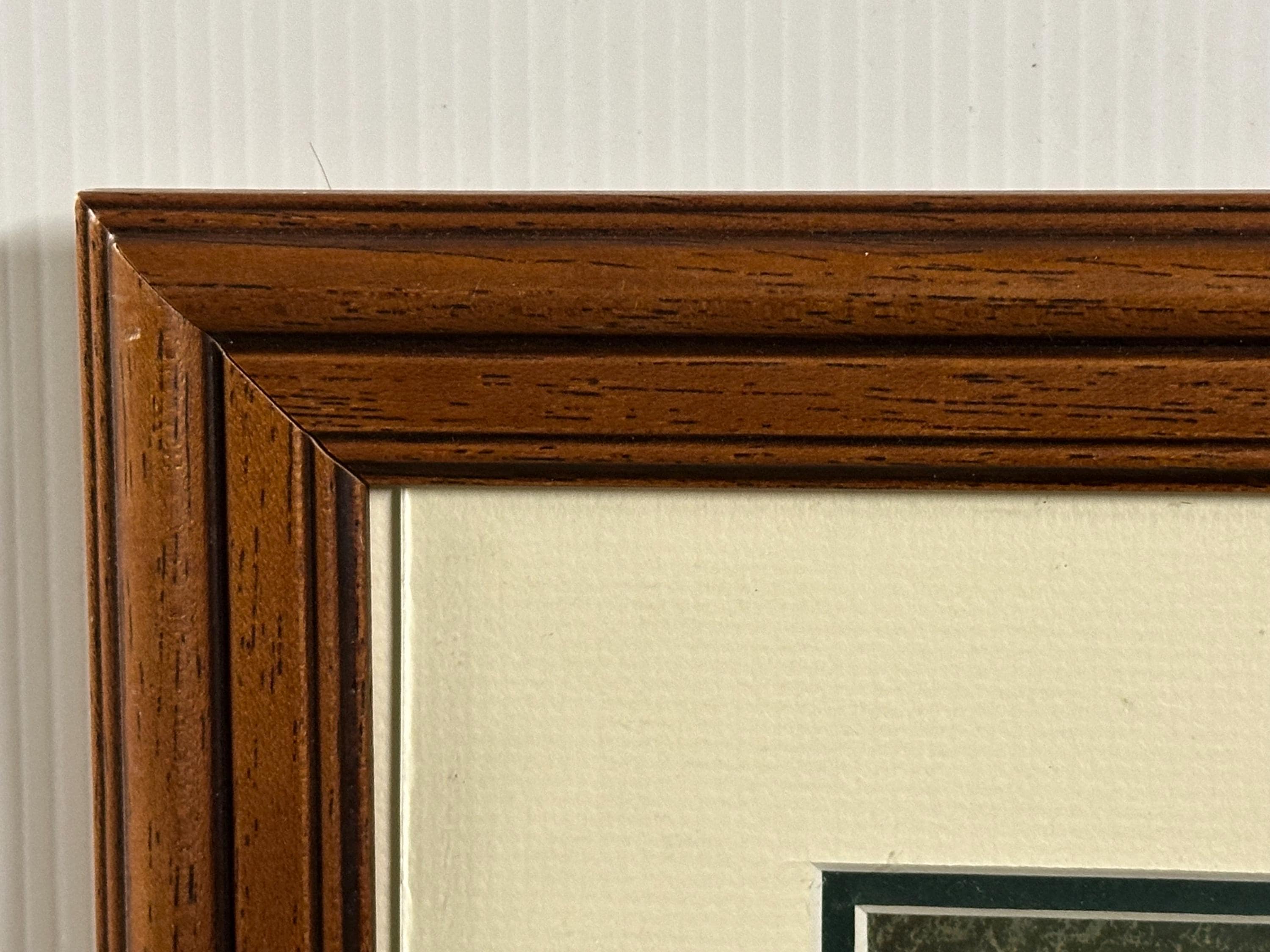 Beautifully presented in a quality wooden frame with a wide cream mount and dark green inner slip, complementing the artwork perfectly and making it ready to hang.