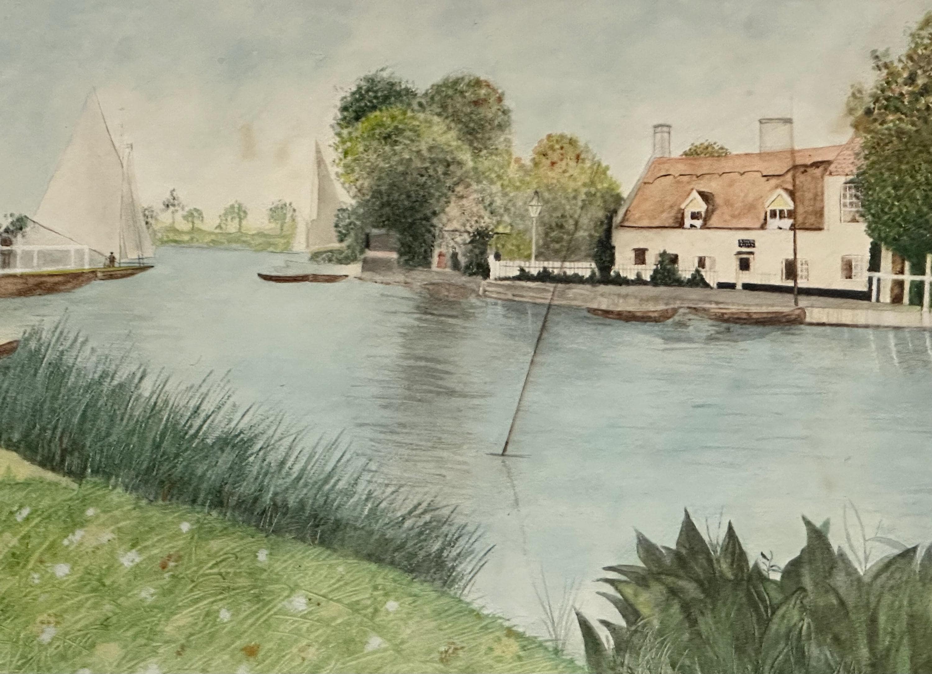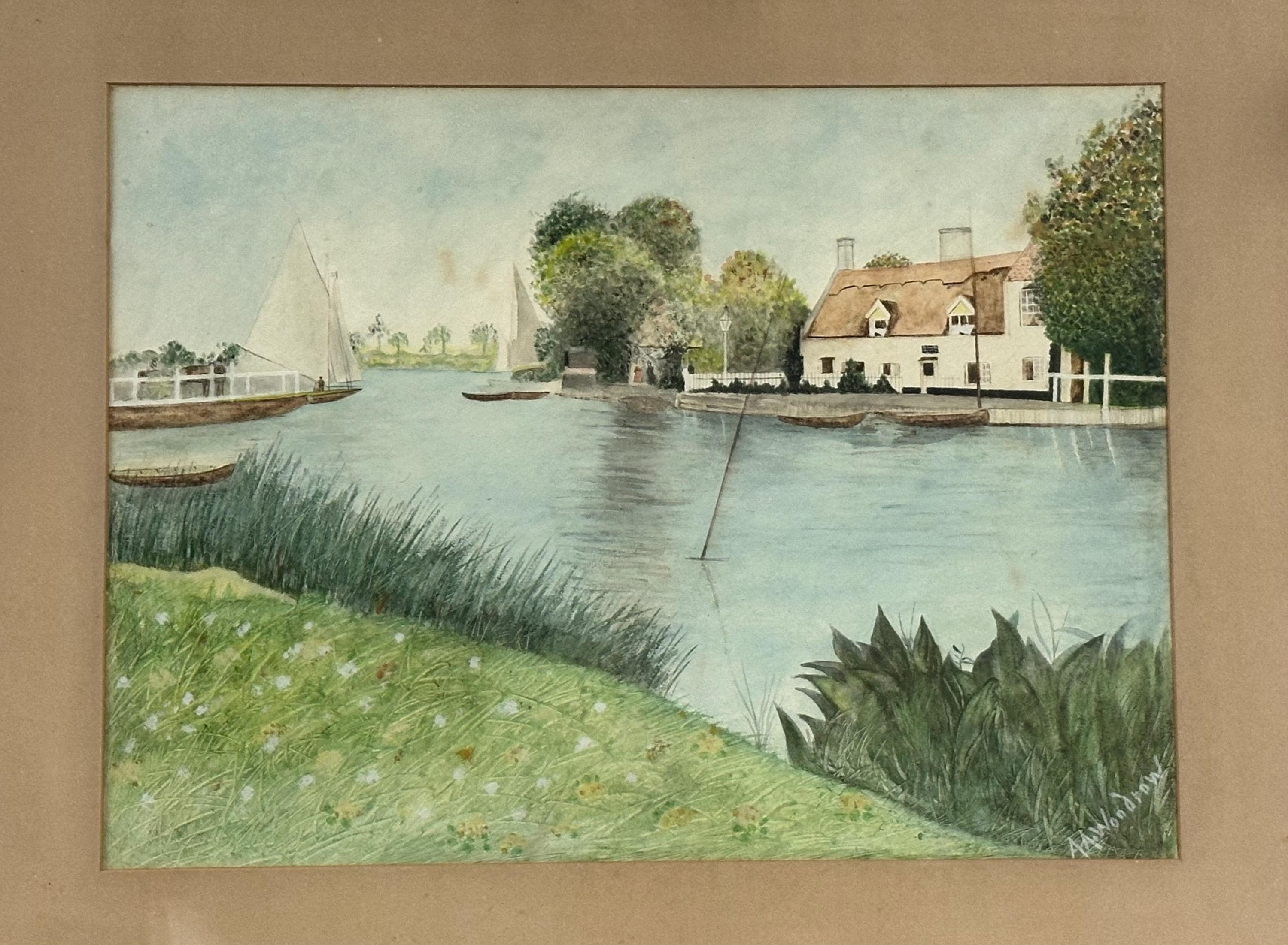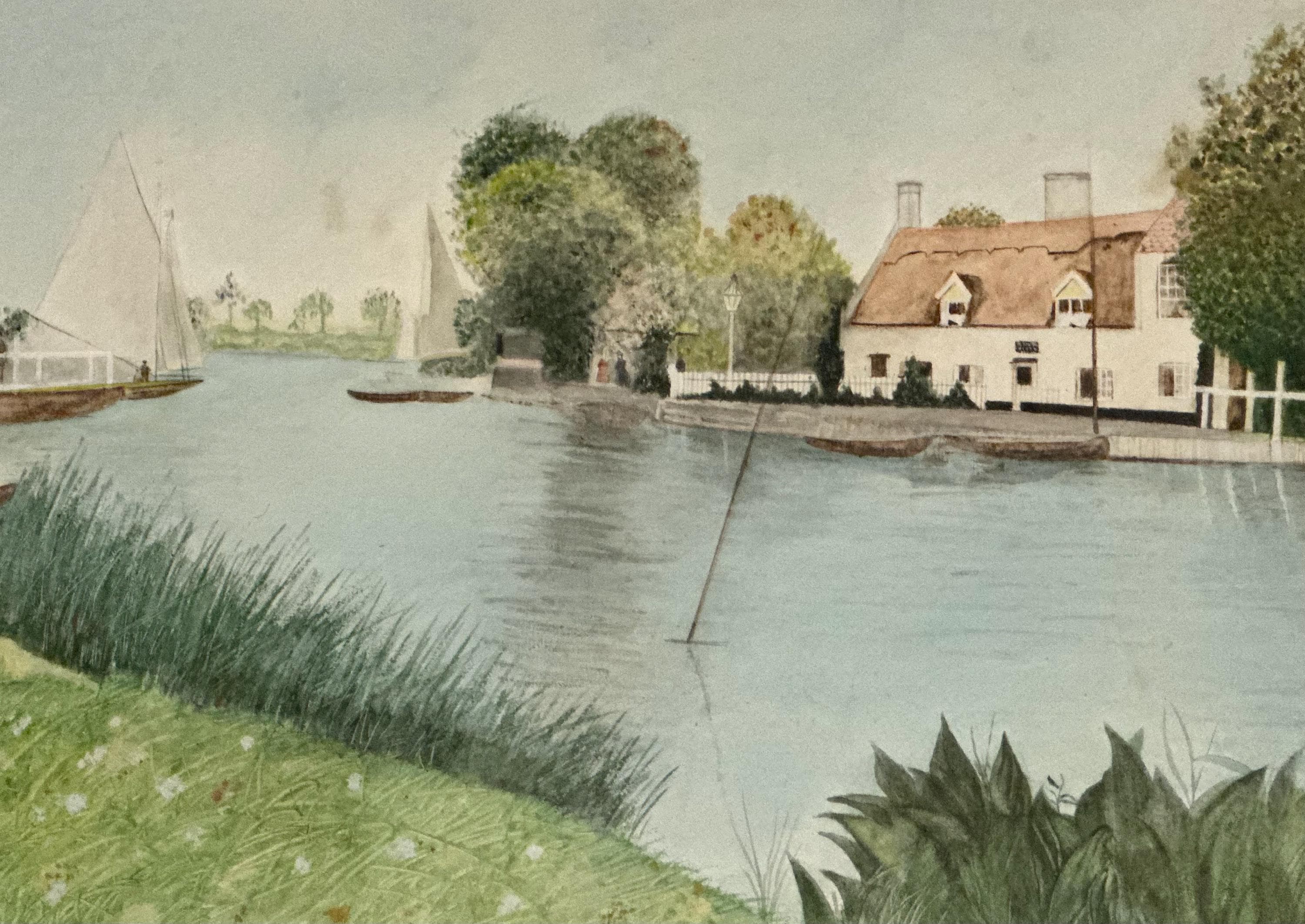 Vintage Original Watercolour – Ferry Inn at Horning, Norfolk, on the River Bure – Signed A A Woodrow