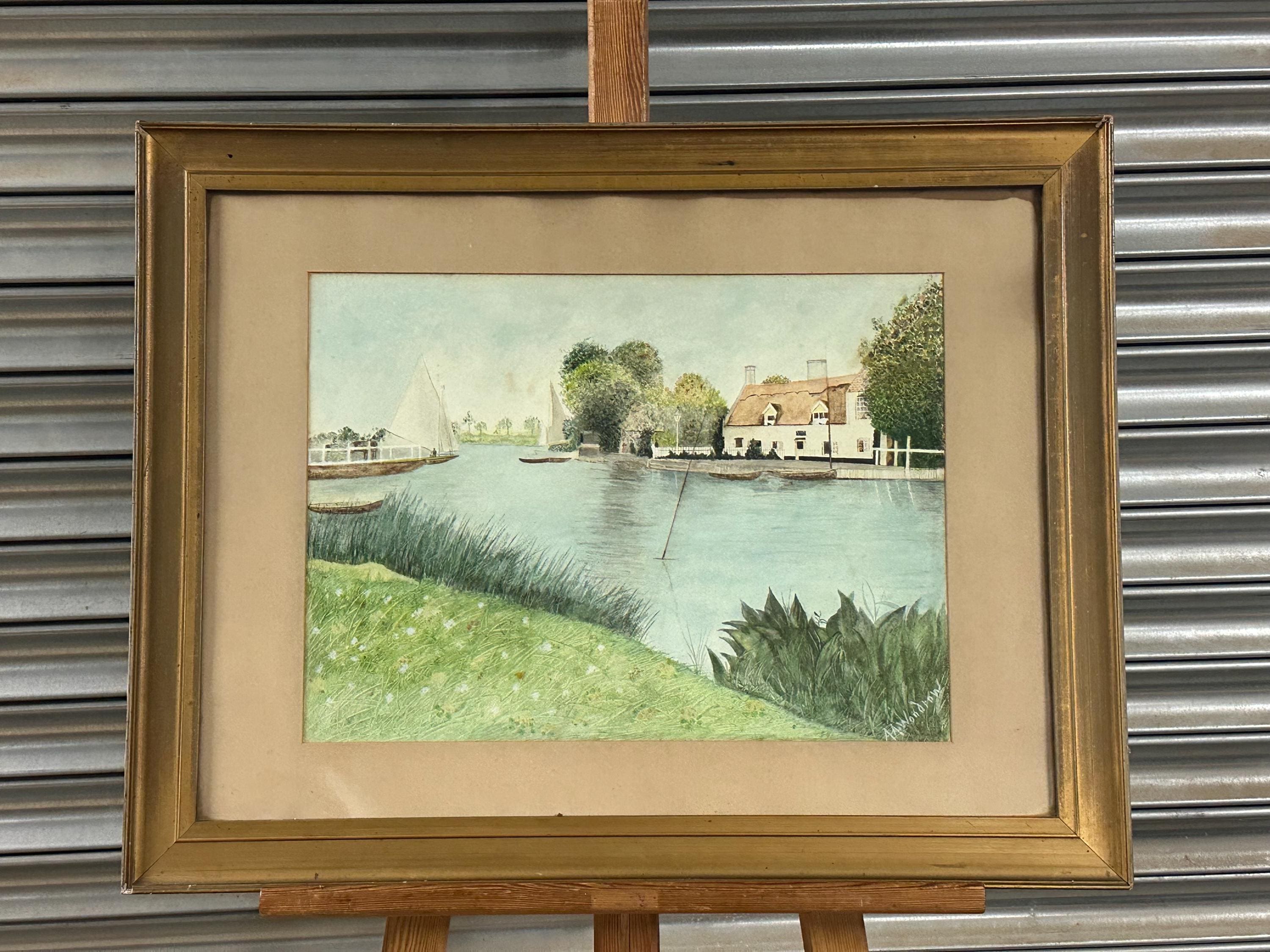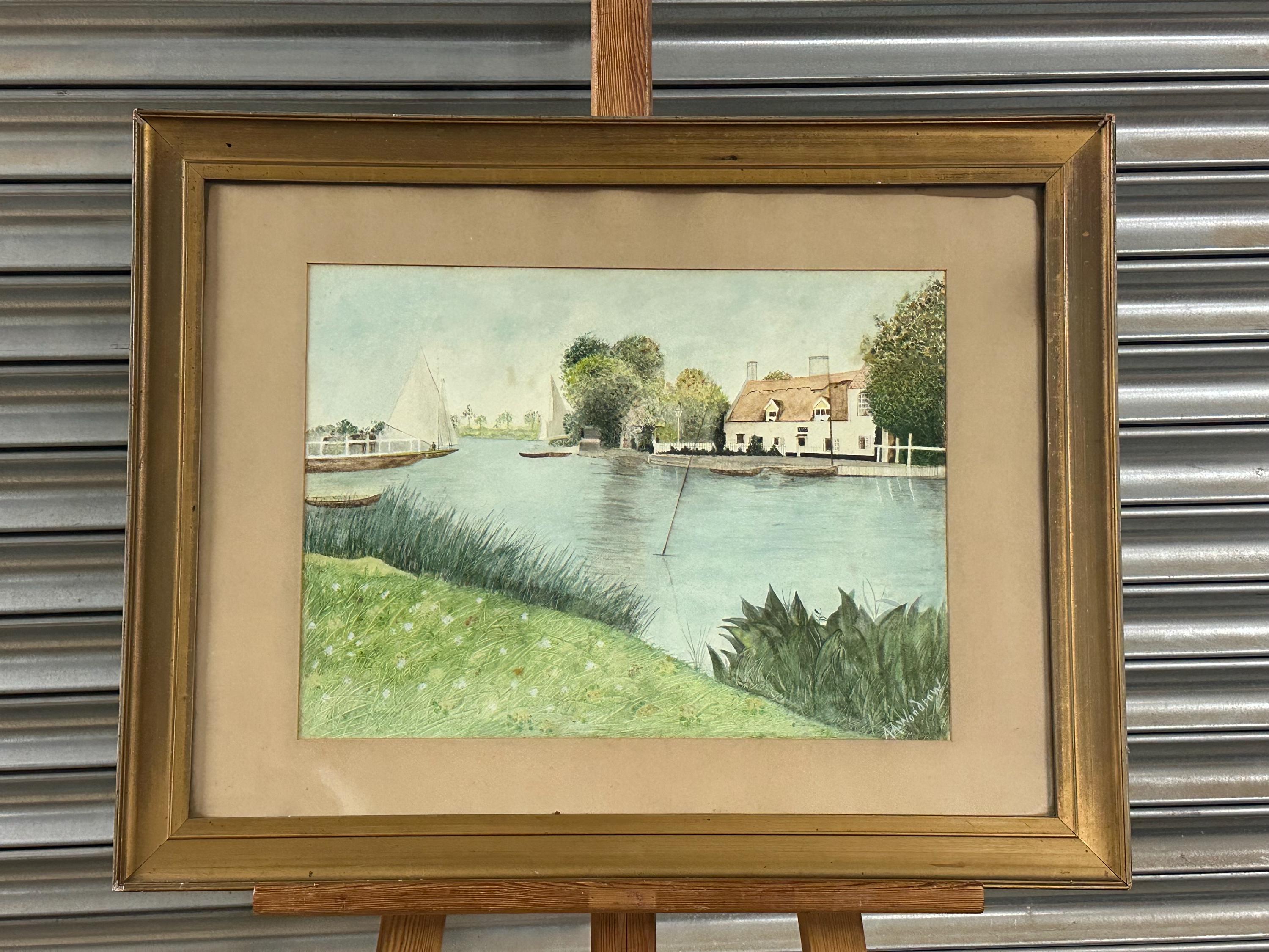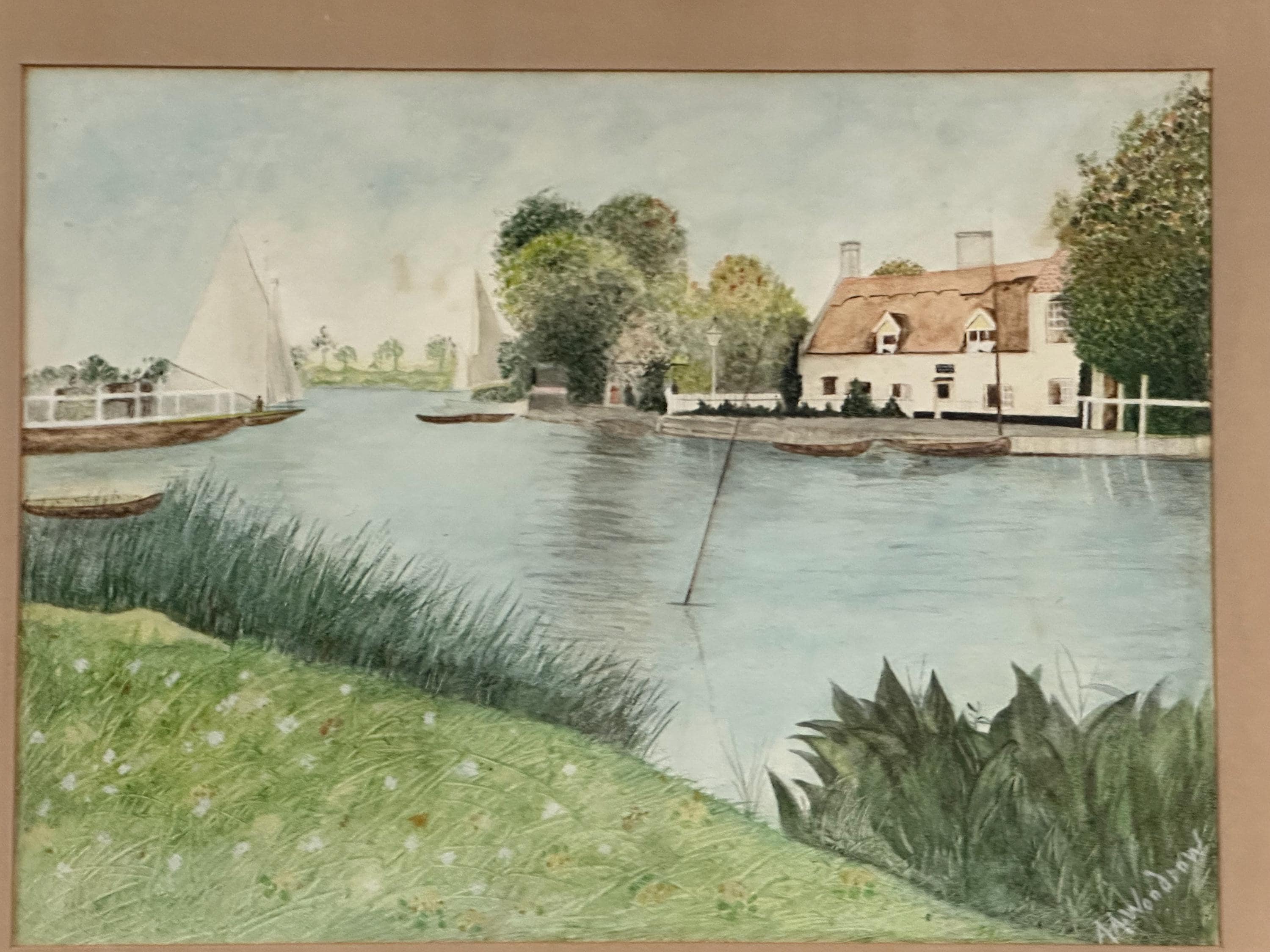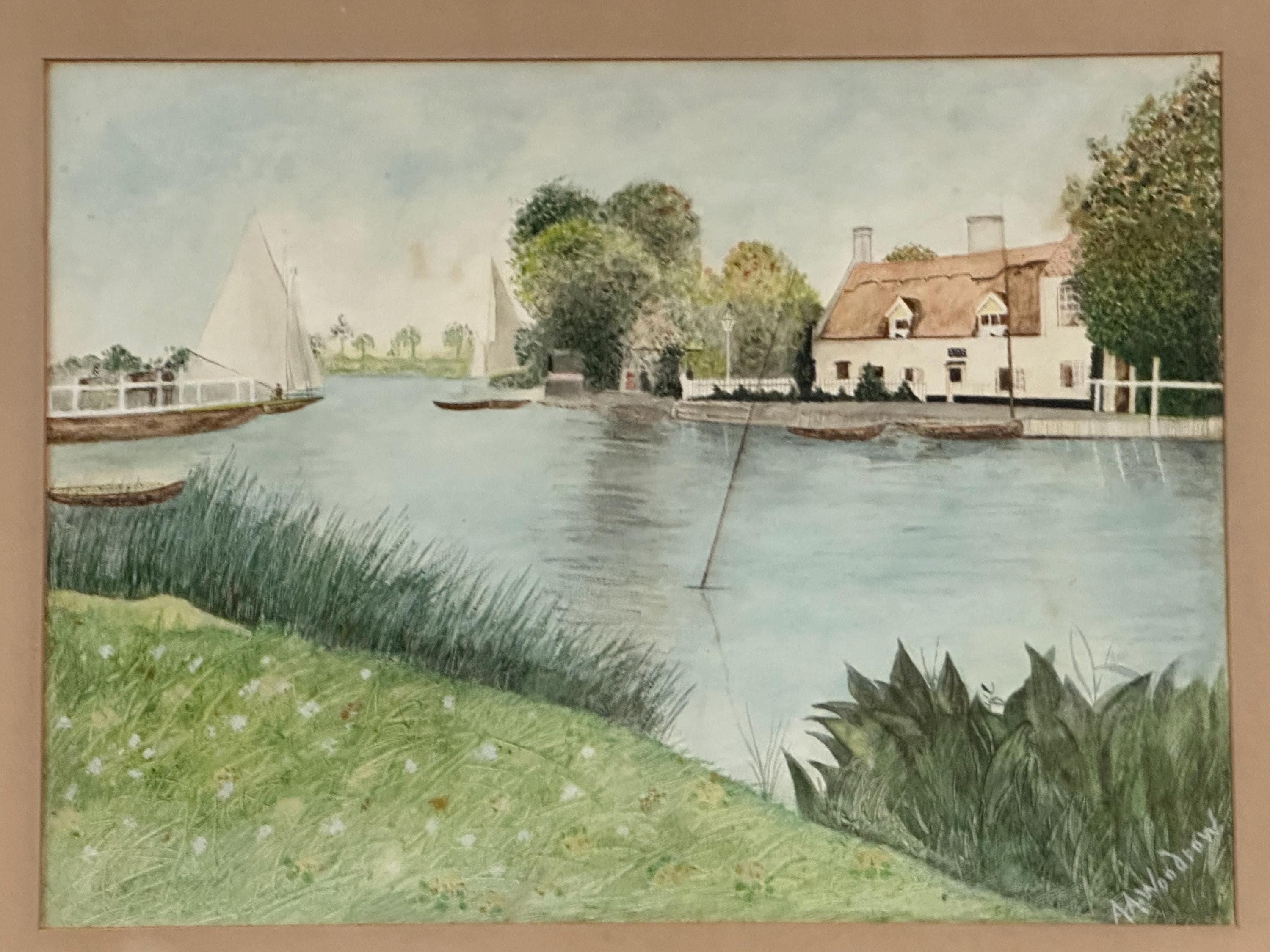 Vintage Original Watercolour – Ferry Inn at Horning, Norfolk, on the River Bure – Signed A A Woodrow