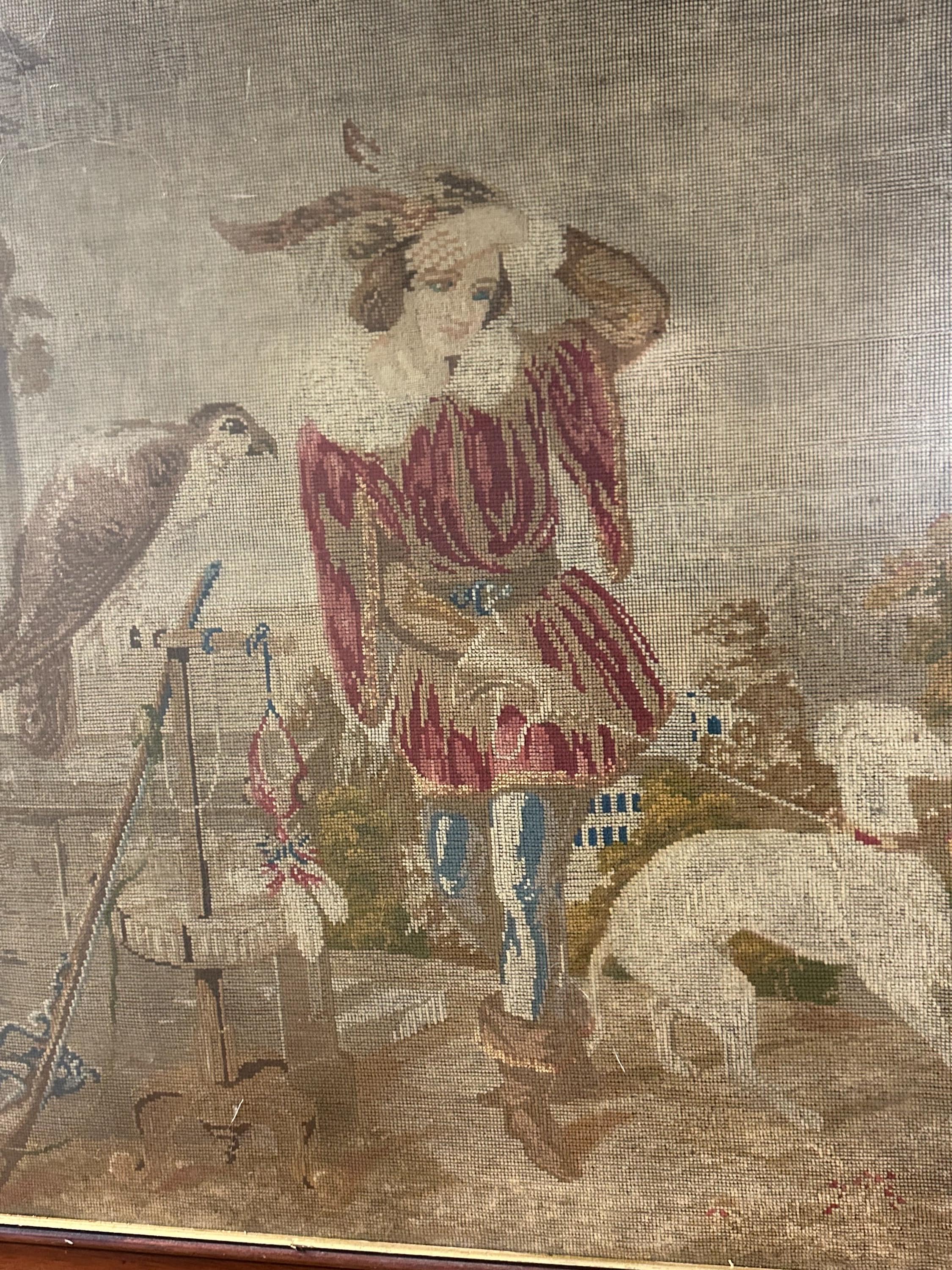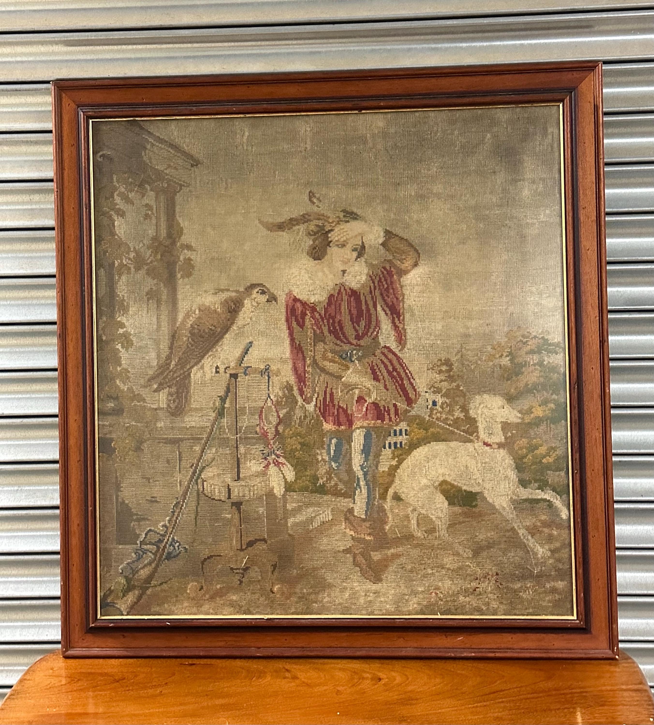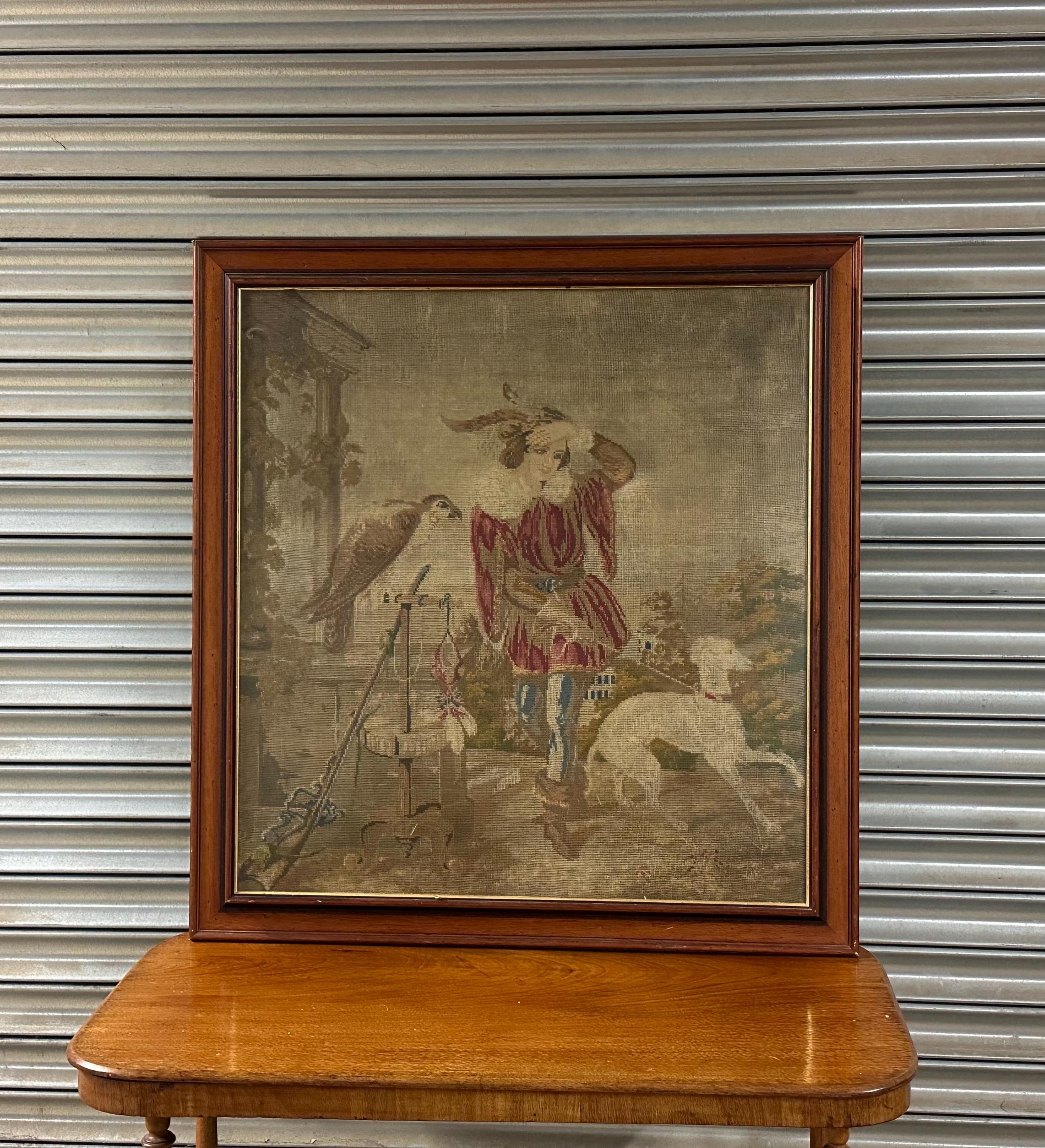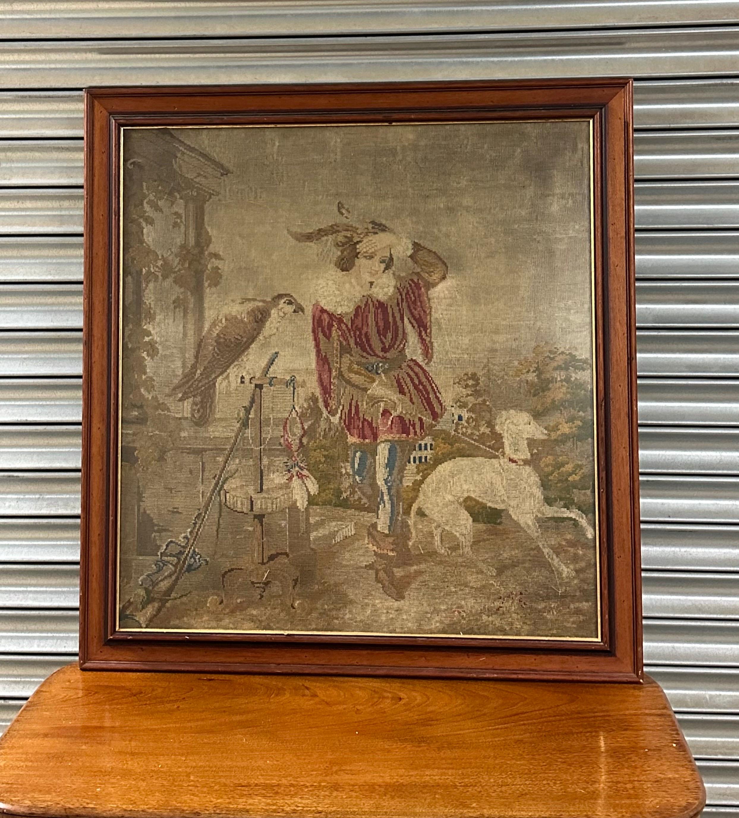 Antique Victorian Wool Work Tapestry Artwork β Falconer & Greyhound Hunting Scene