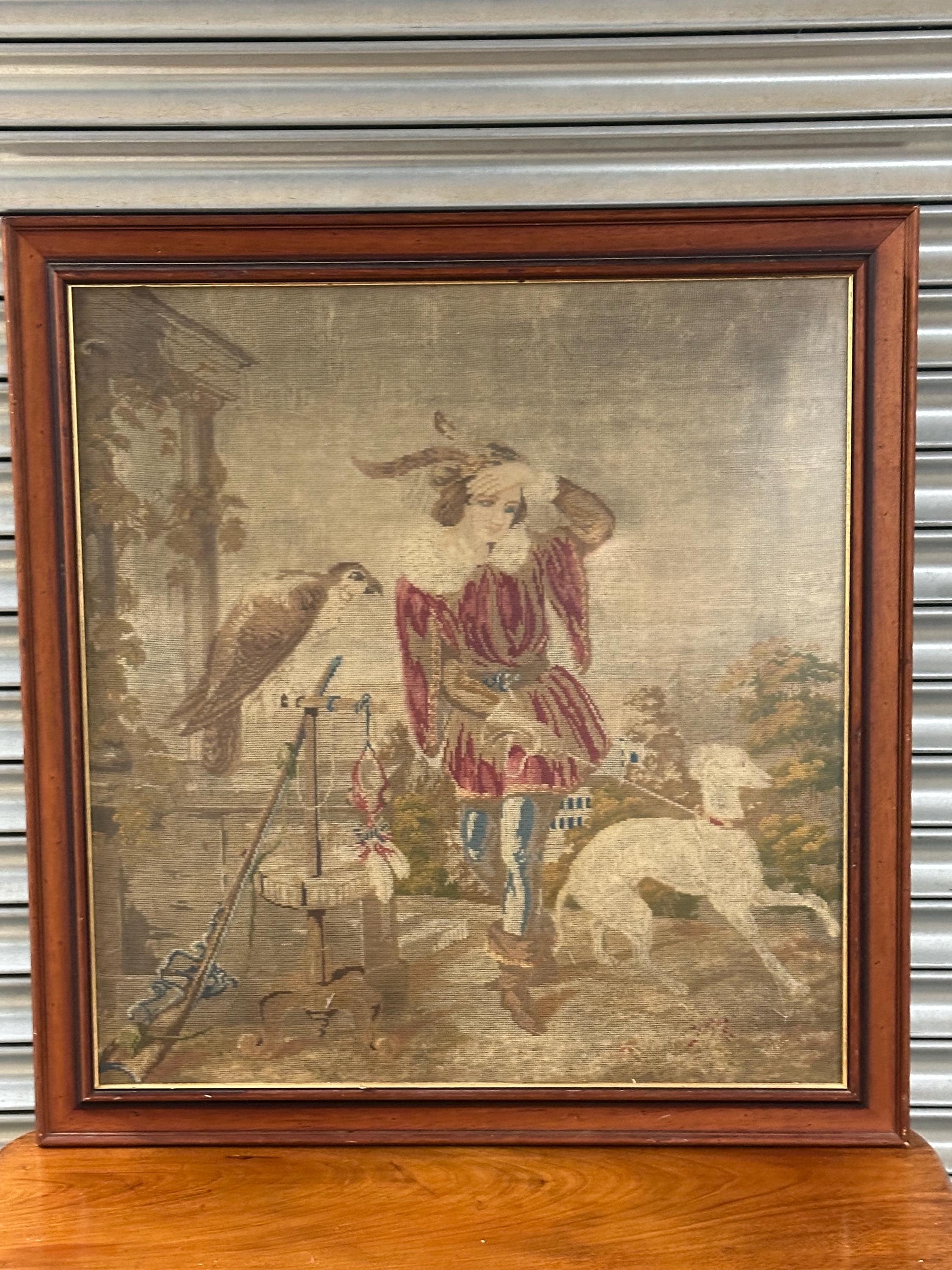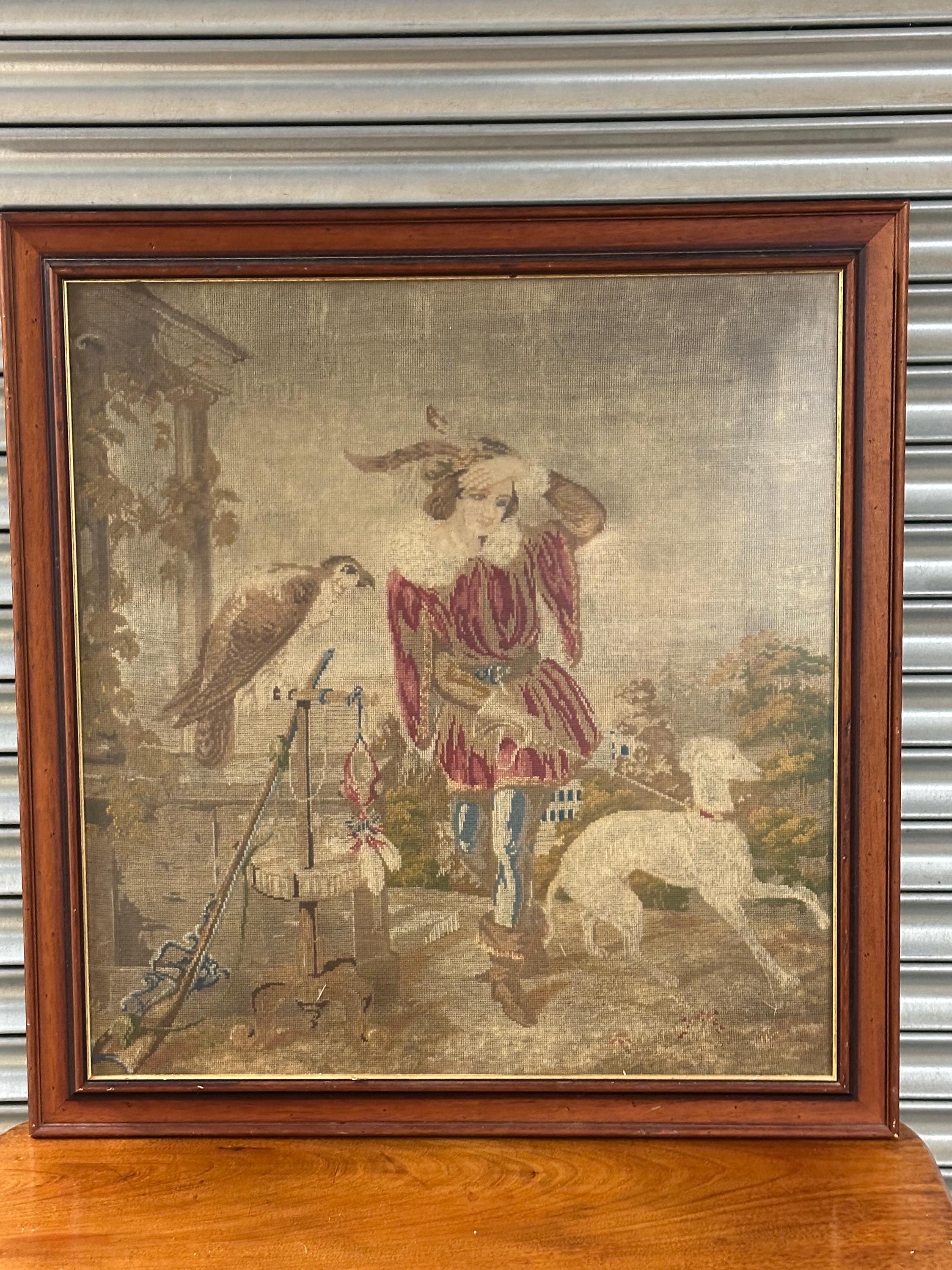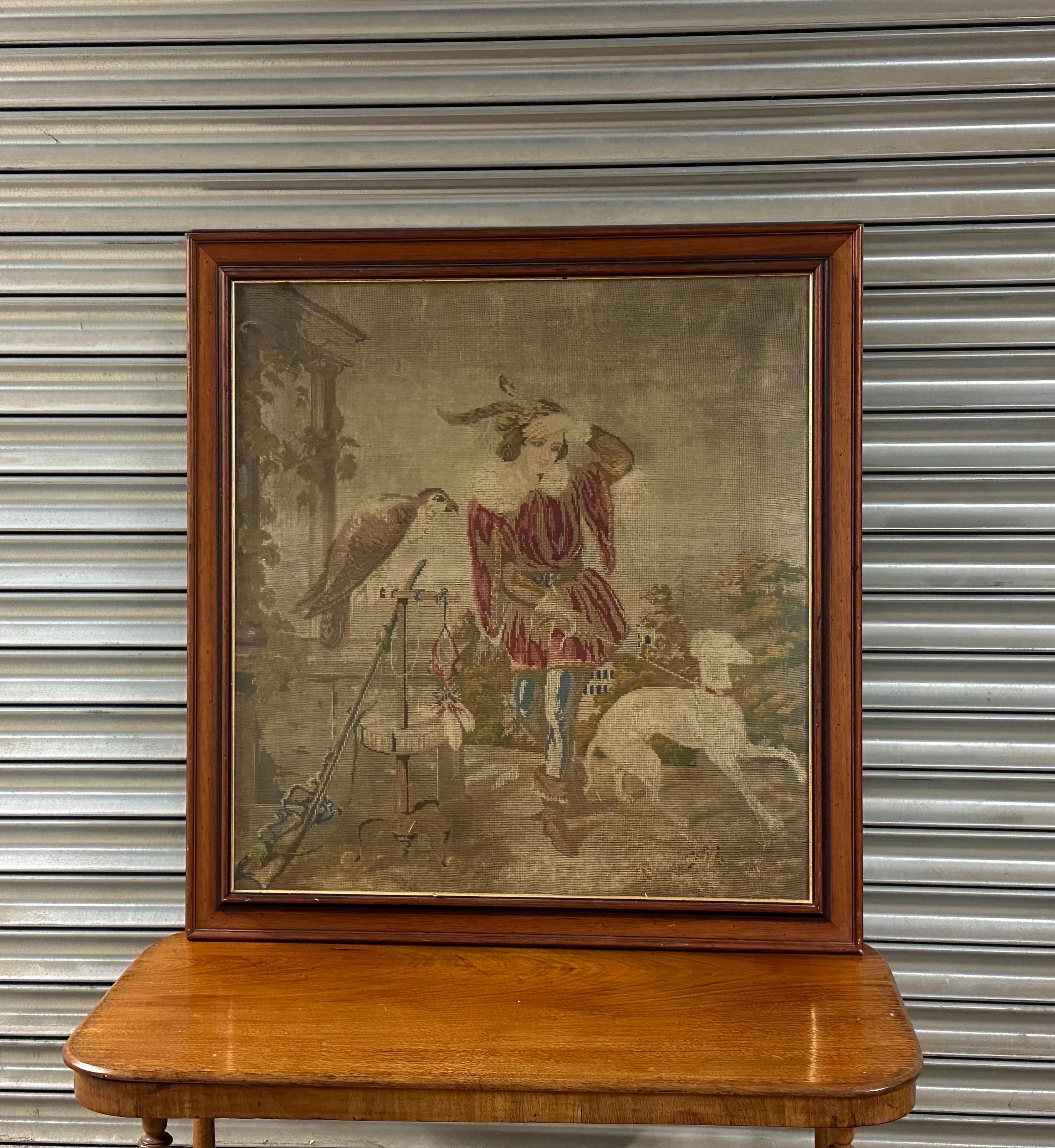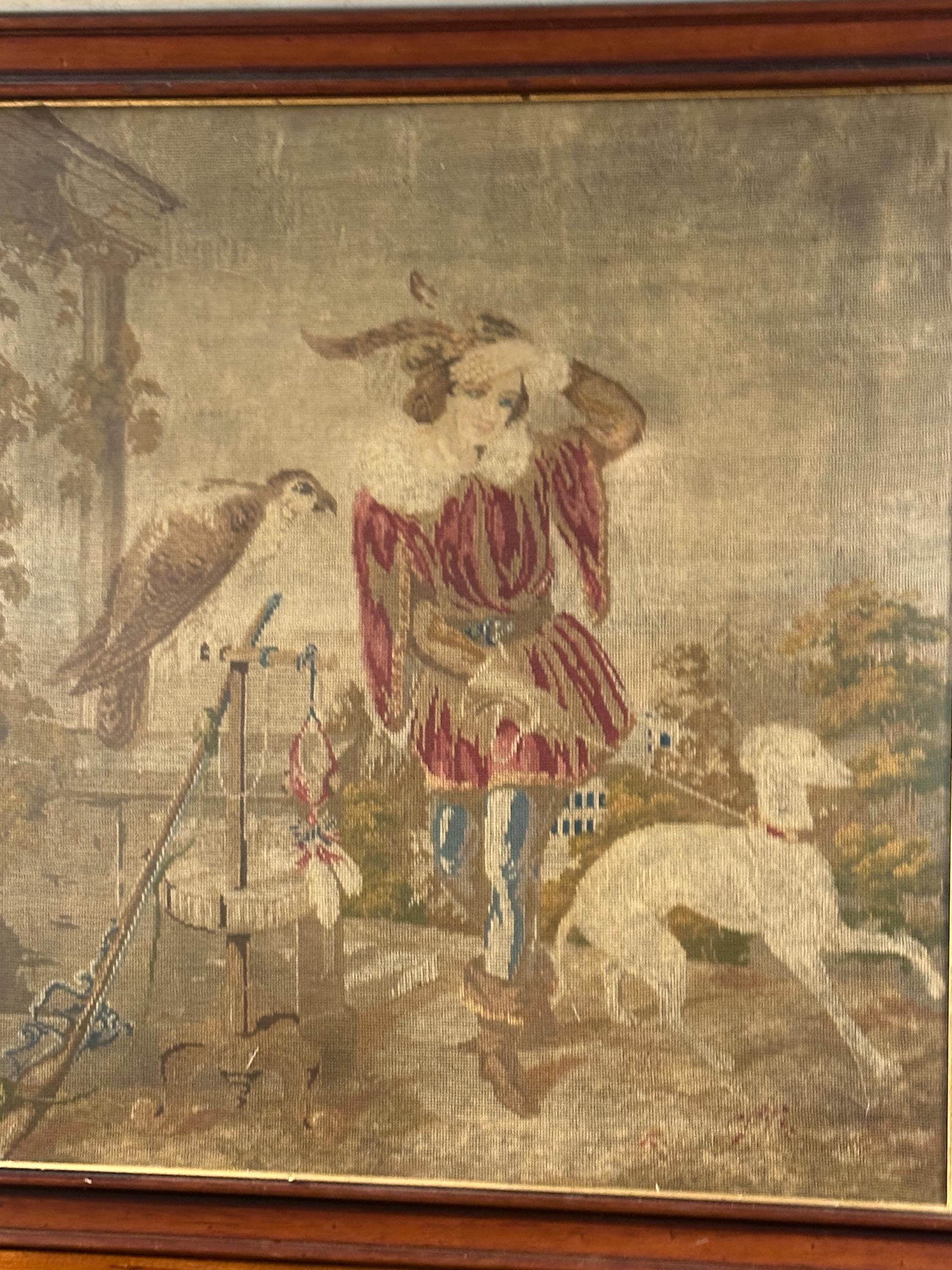 Antique Victorian Wool Work Tapestry Artwork β Falconer & Greyhound Hunting Scene