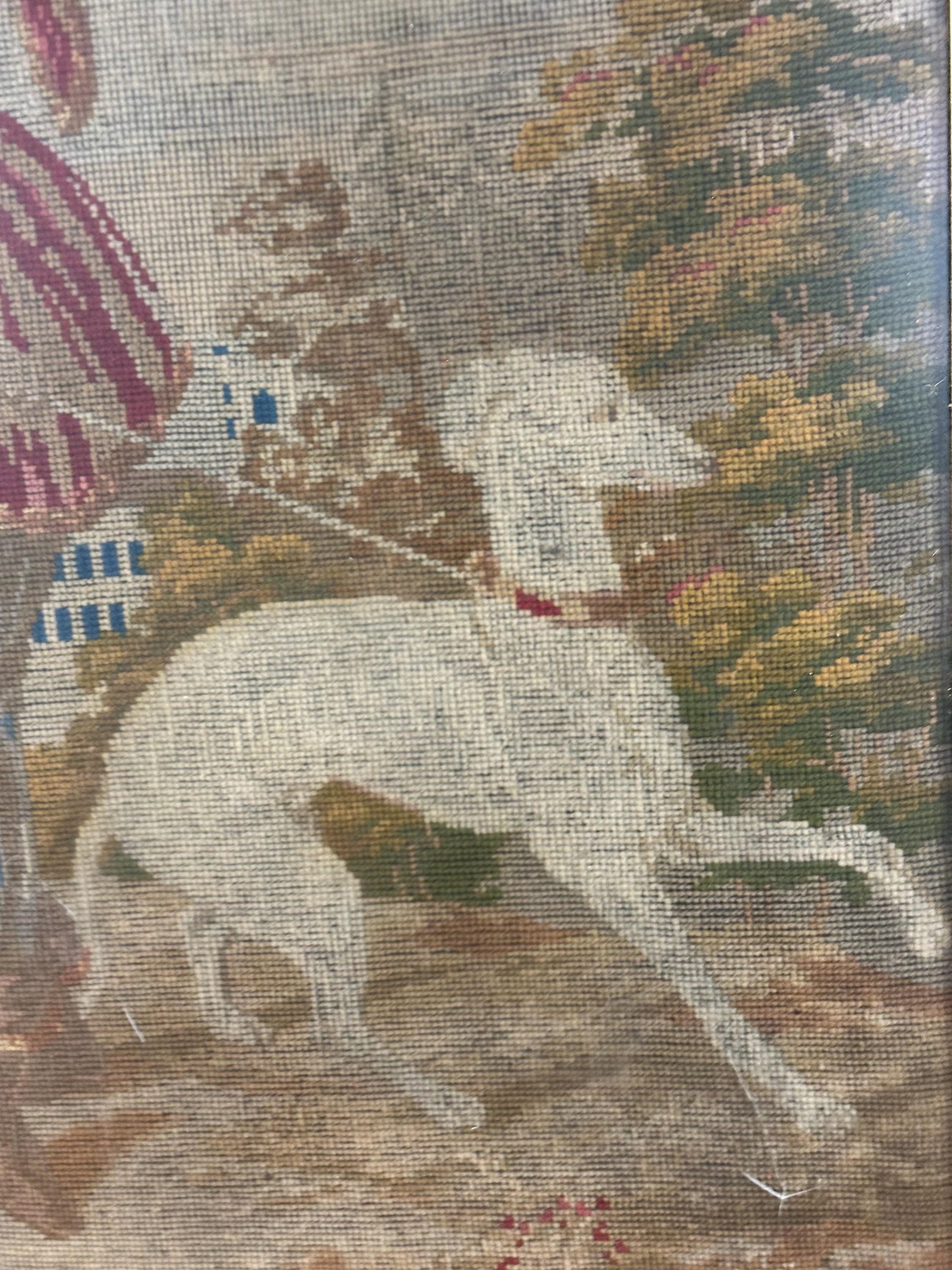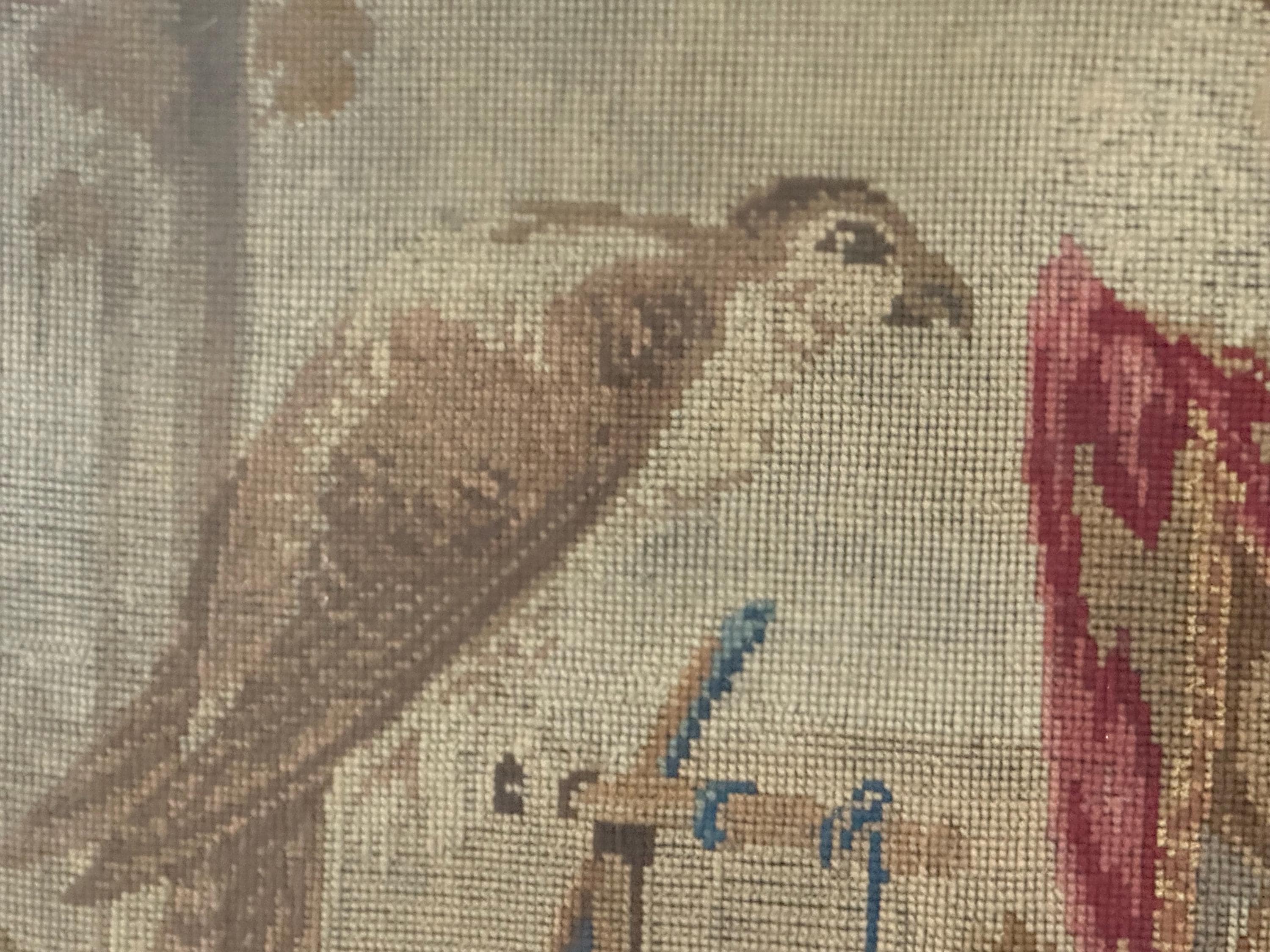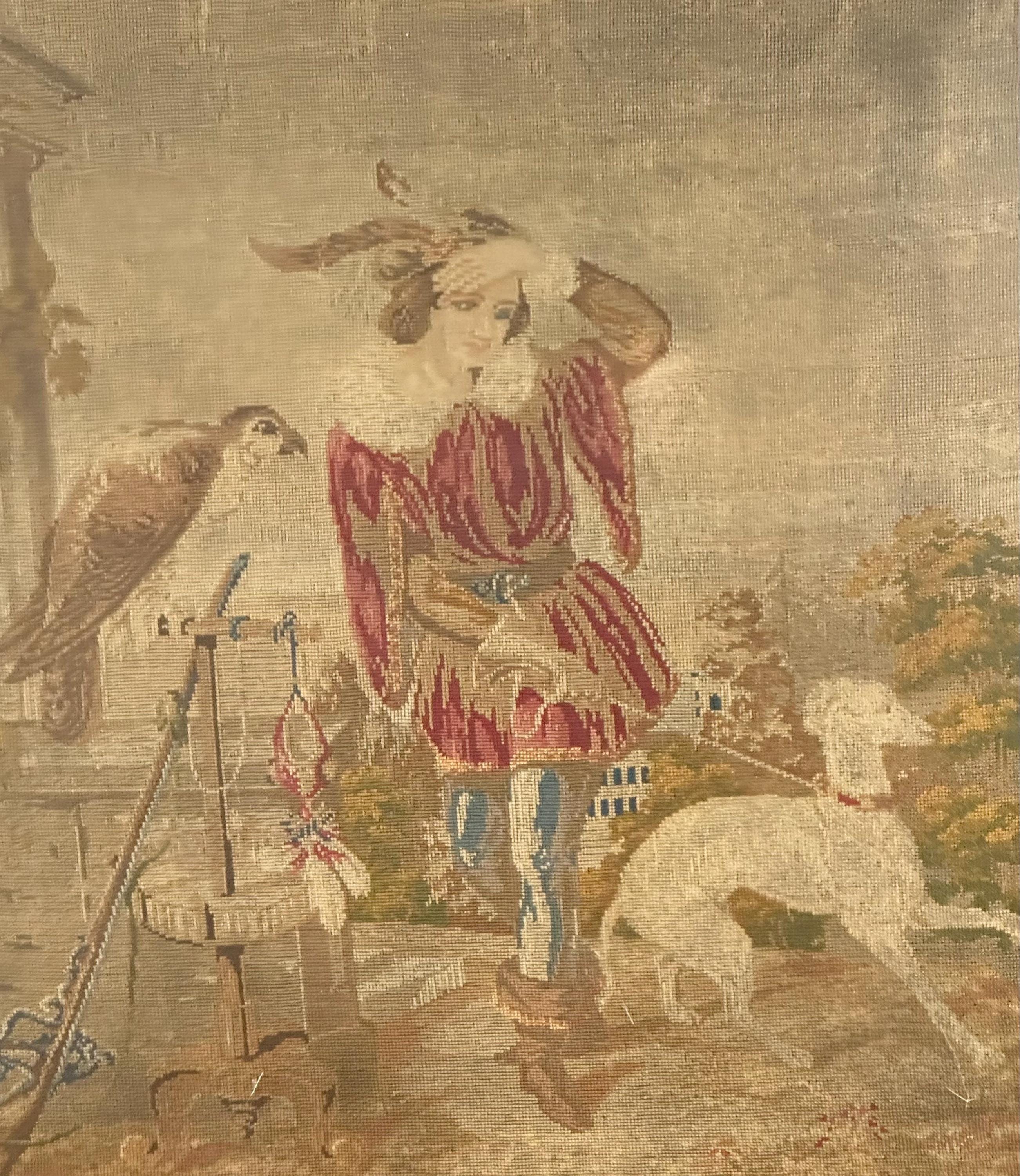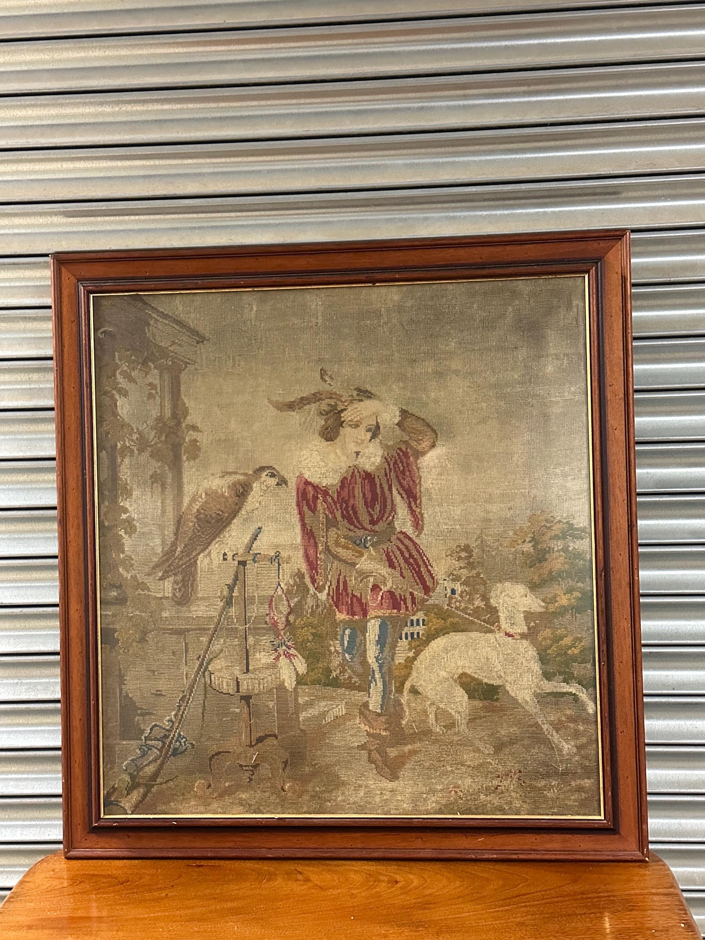 Antique Victorian Wool Work Tapestry Artwork β Falconer & Greyhound Hunting Scene