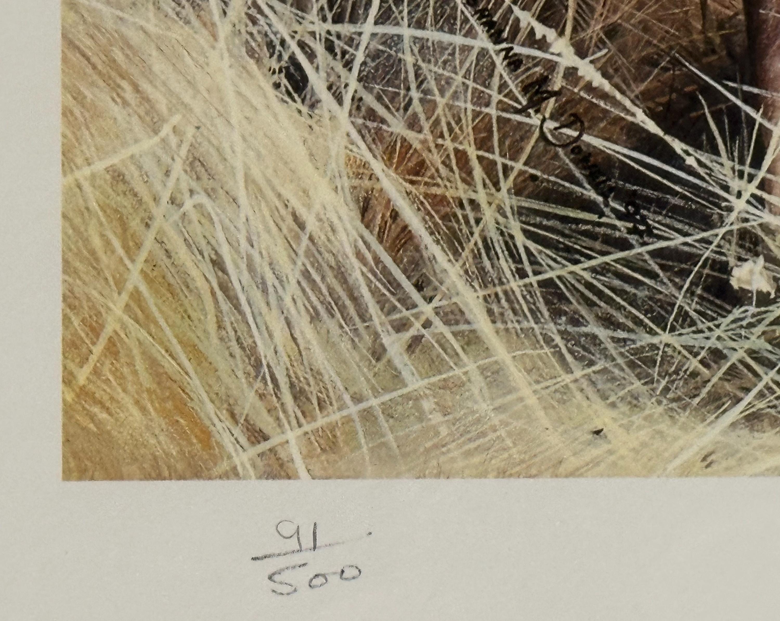 The print is hand-signed in pencil by the artist and numbered, confirming its limited edition status. To the lower margin is a small pencil sketch of a dog, a charming detail often associated with Dowell’s work and highly appealing to collectors.