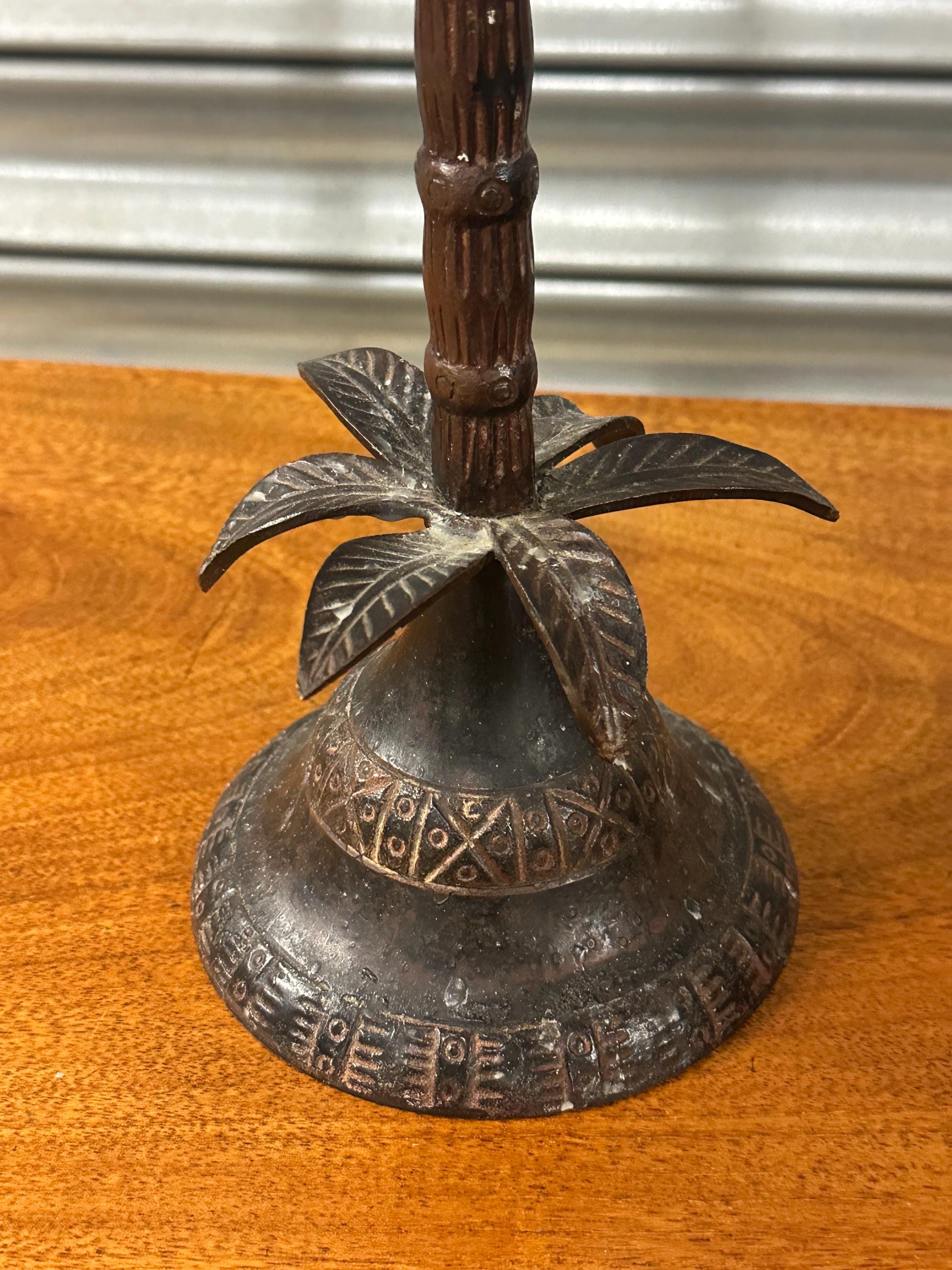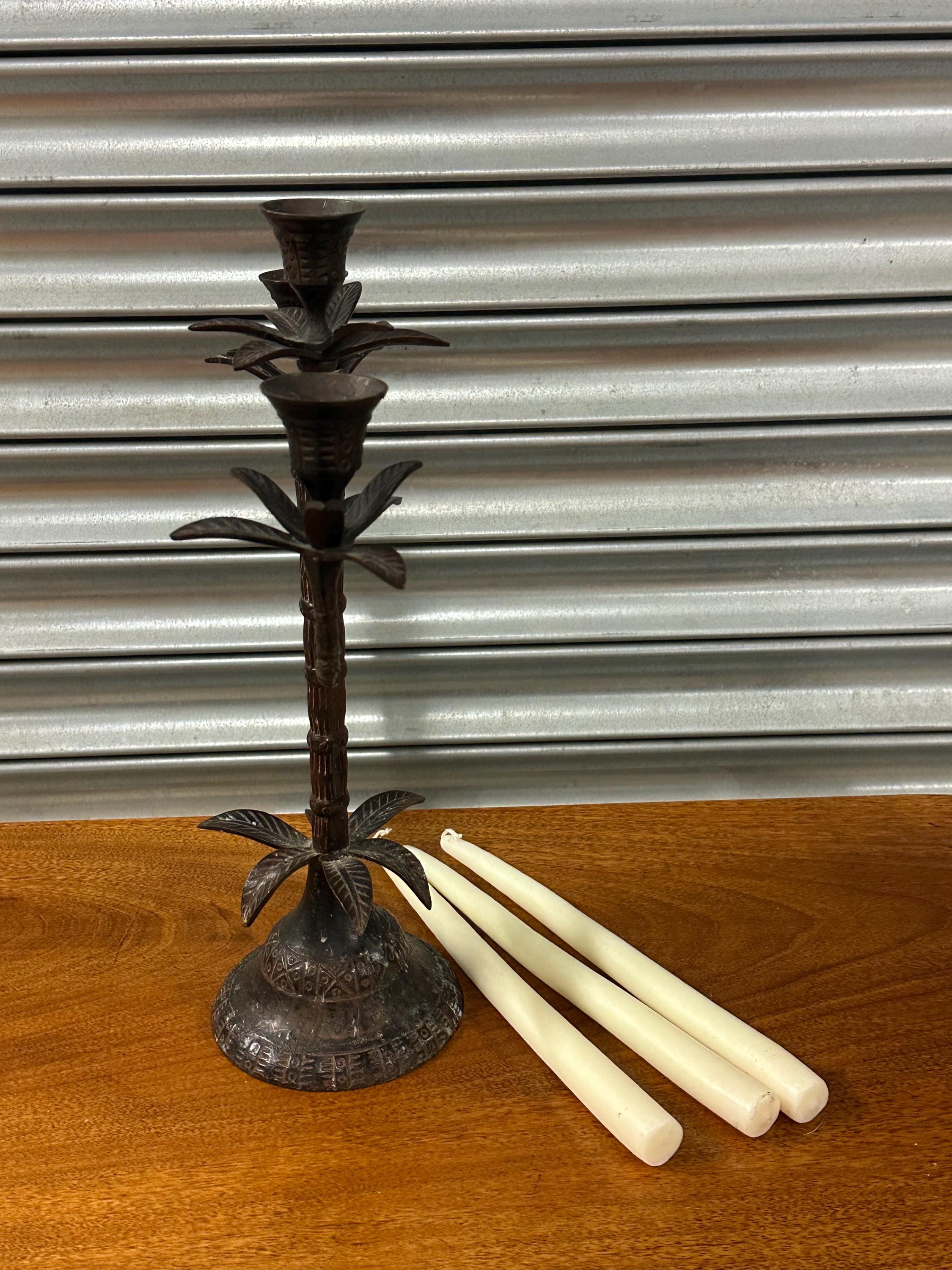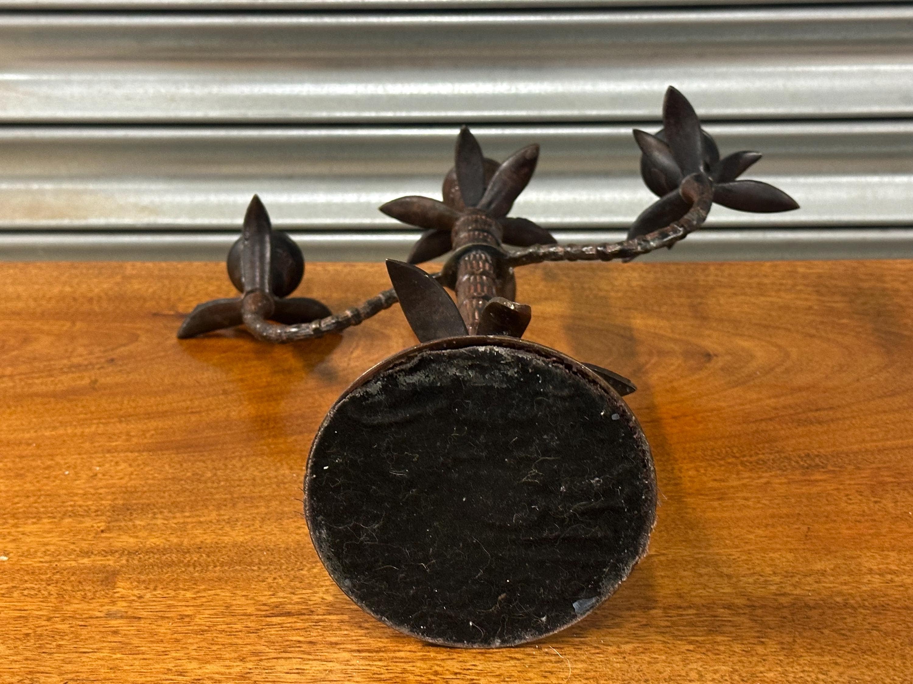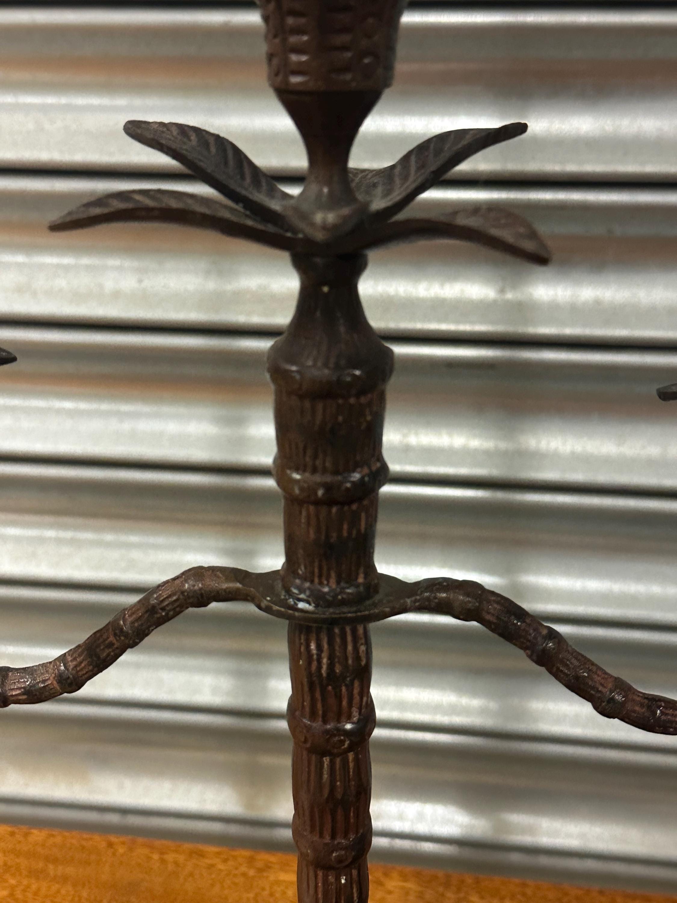 🌿 Antique Circa 1920’s Bronze Three-Arm Candelabra, Decorative Palm Leaf Design