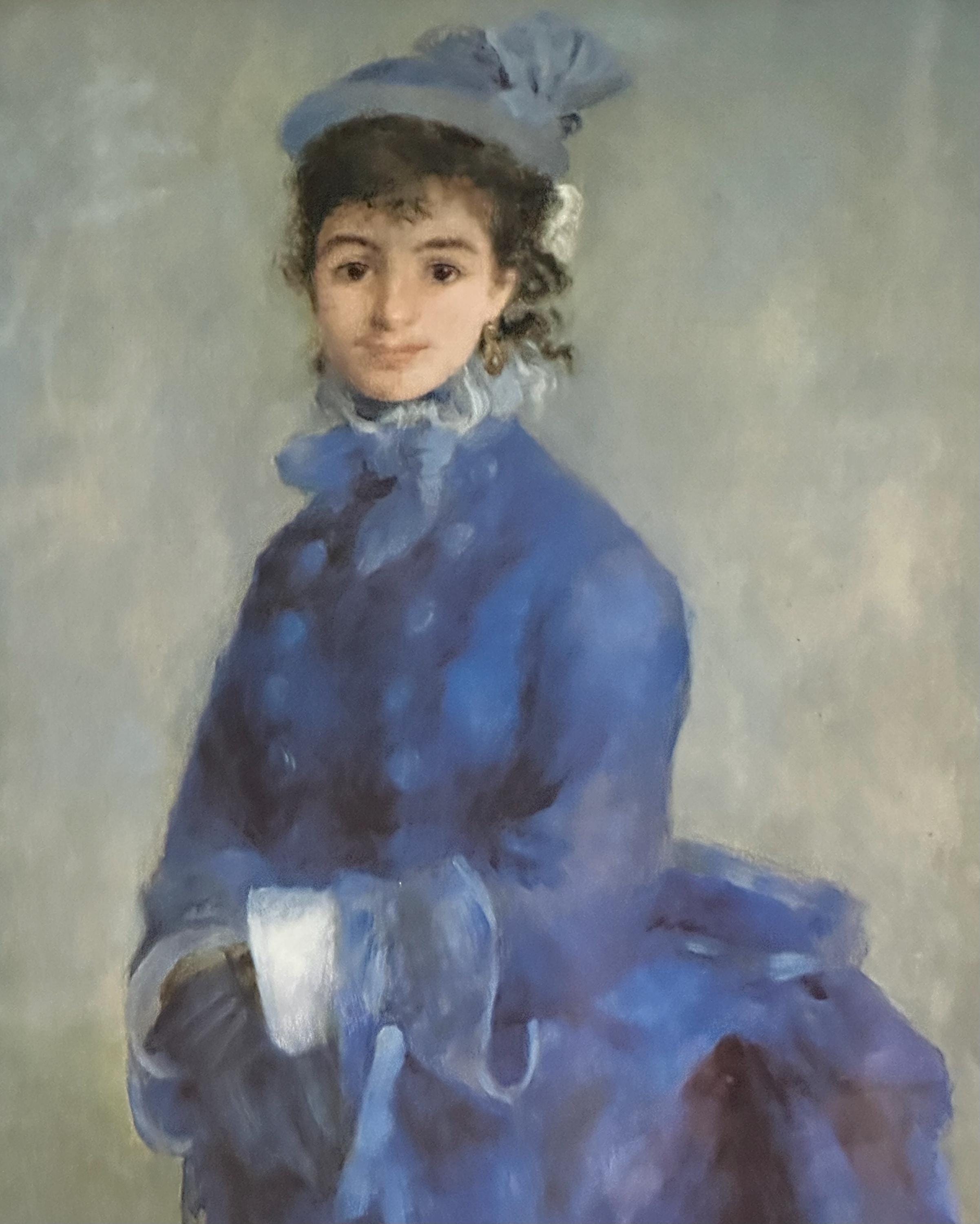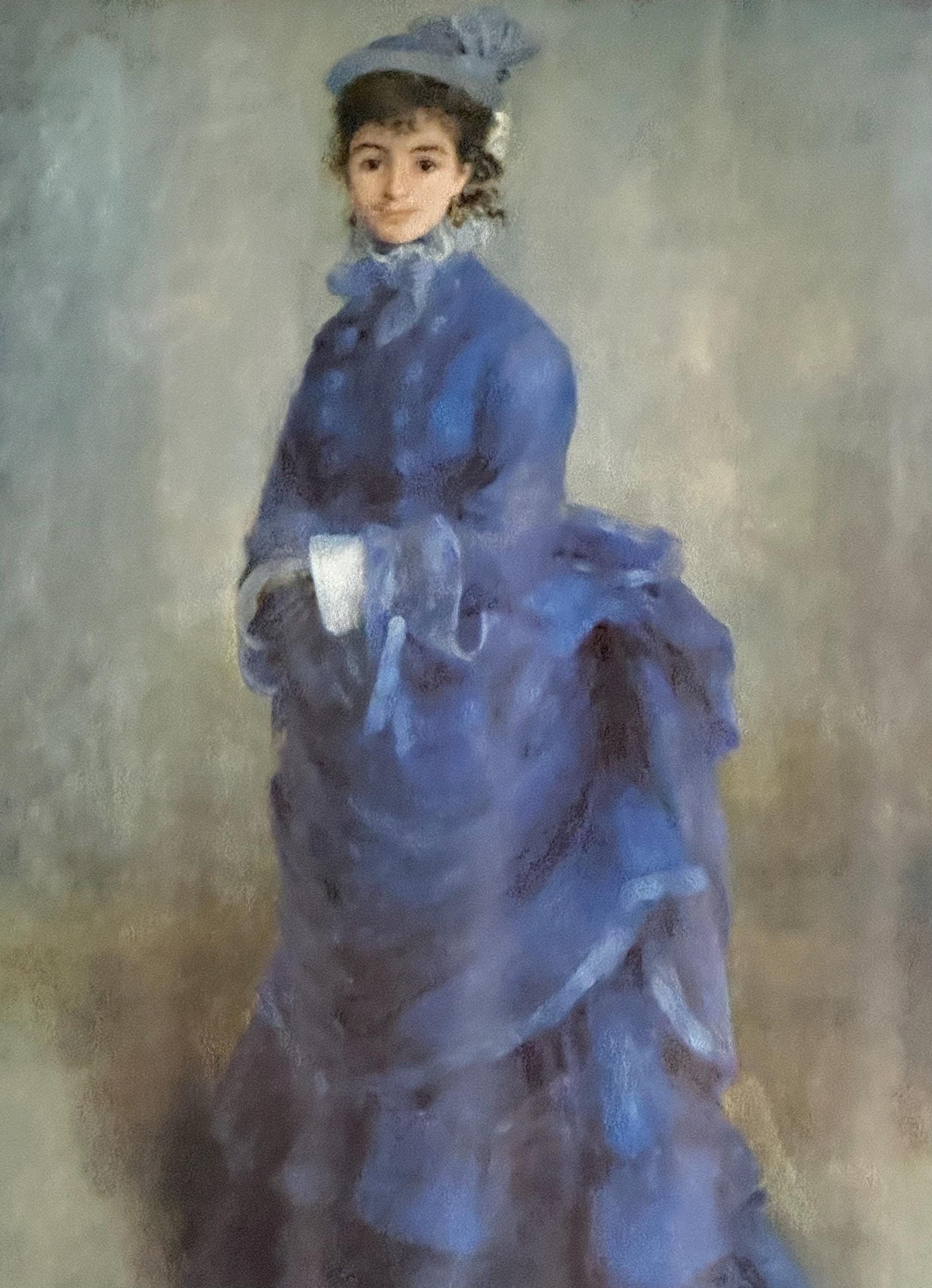 Beautiful After Pierre-Auguste Renoir – Elegant Lady in Blue, Framed Art Print