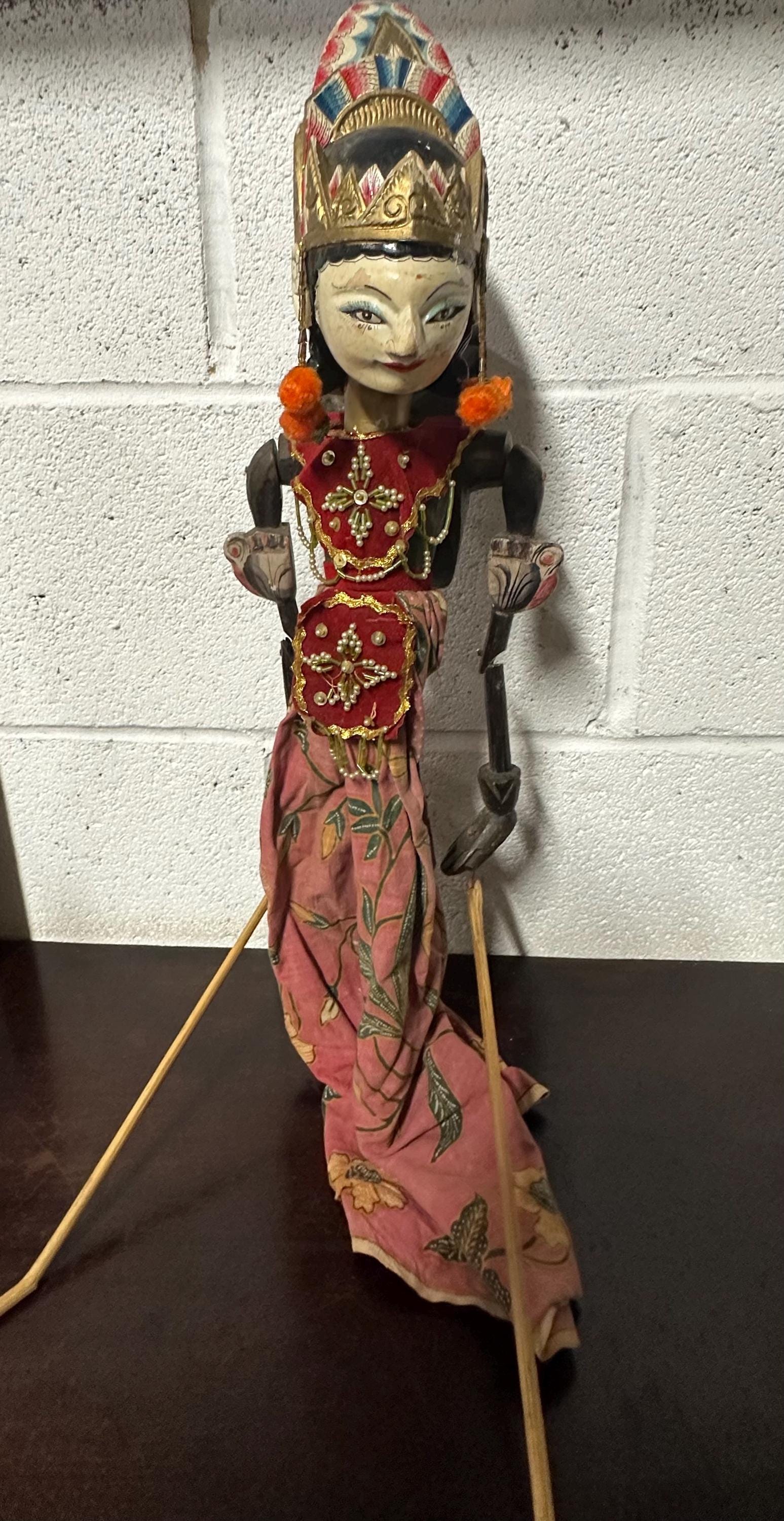 Indonesian Hand-carved & Painted Wooden Rod Puppet (Wayang Golek) Lady
