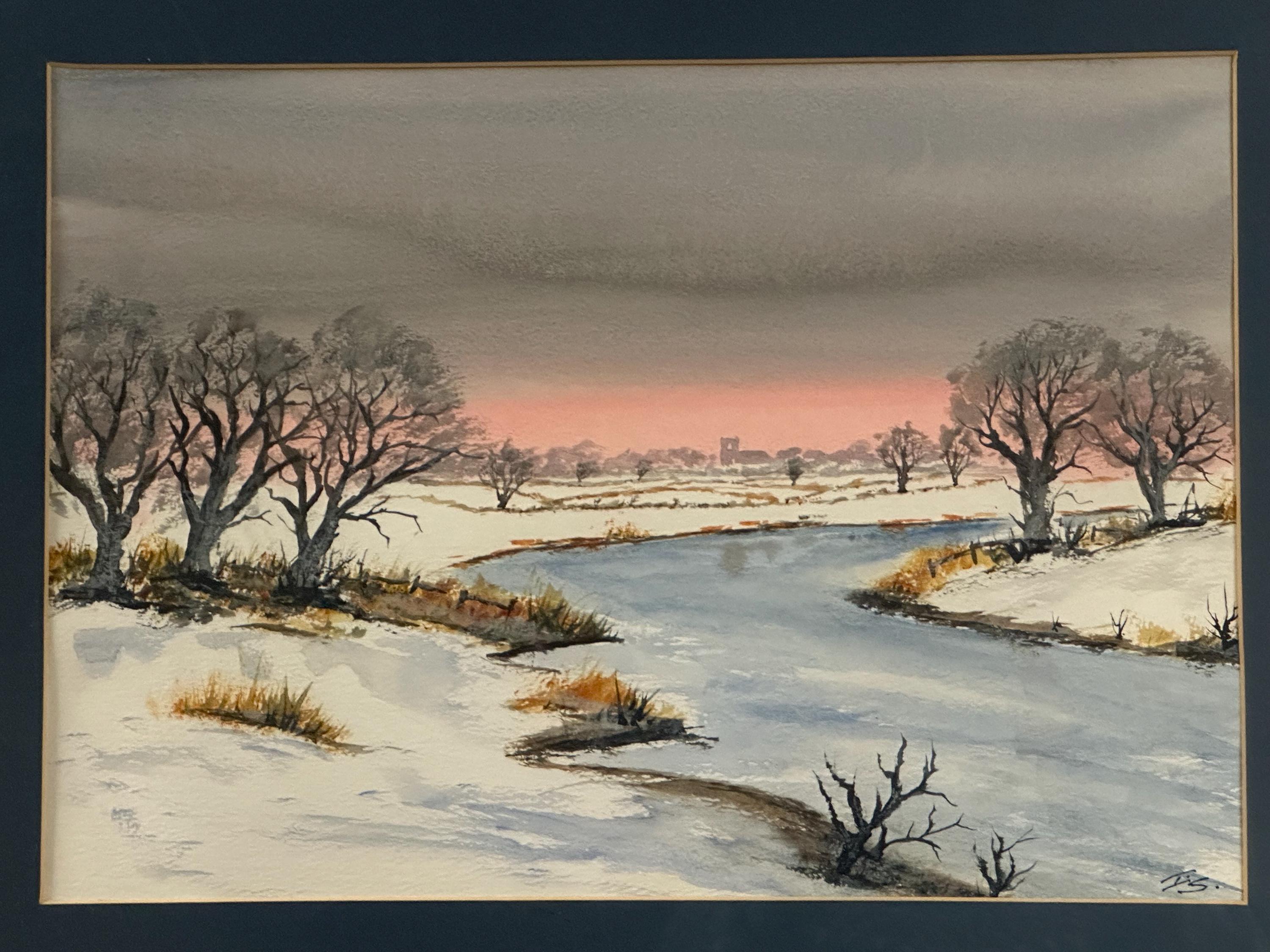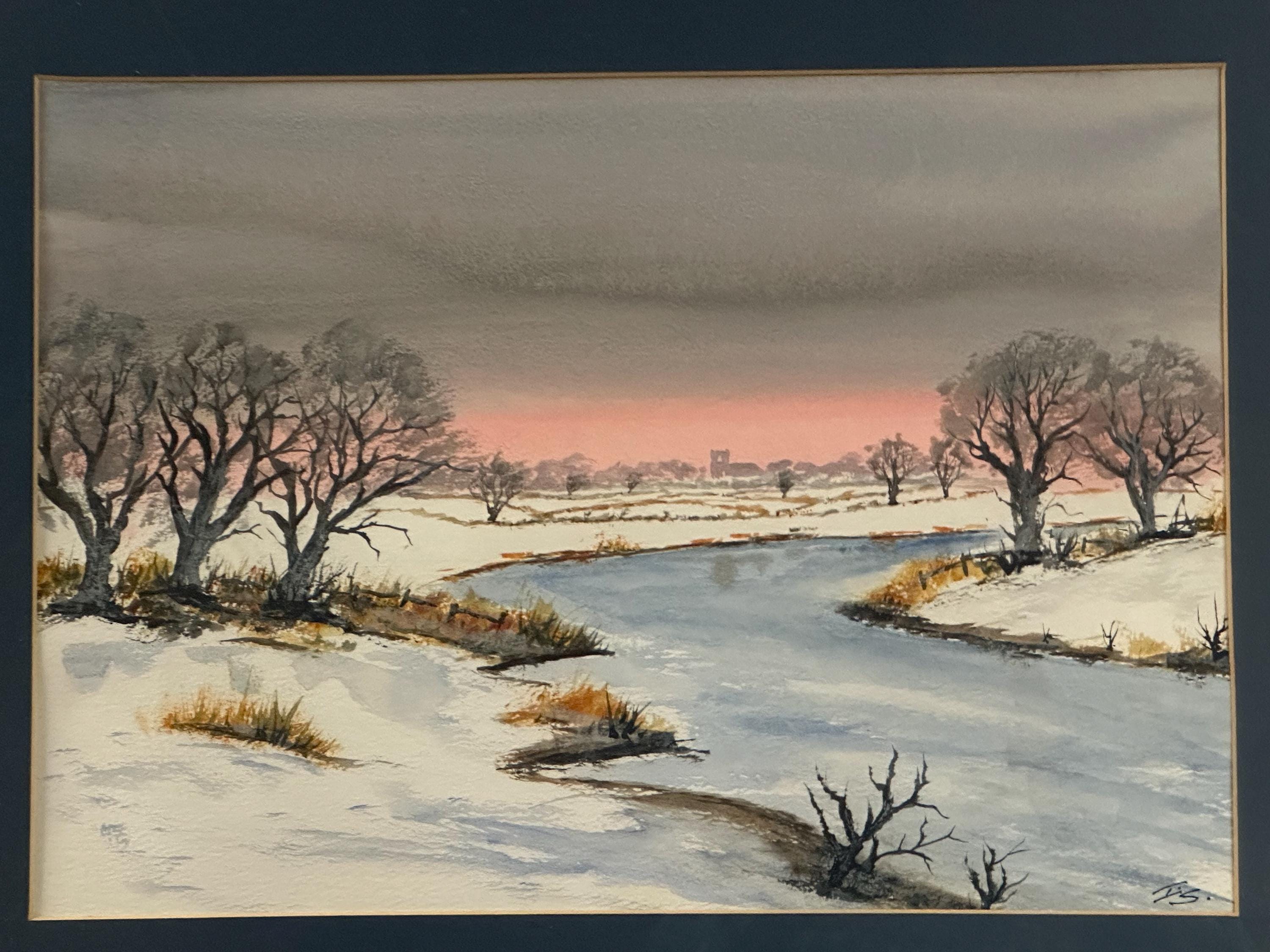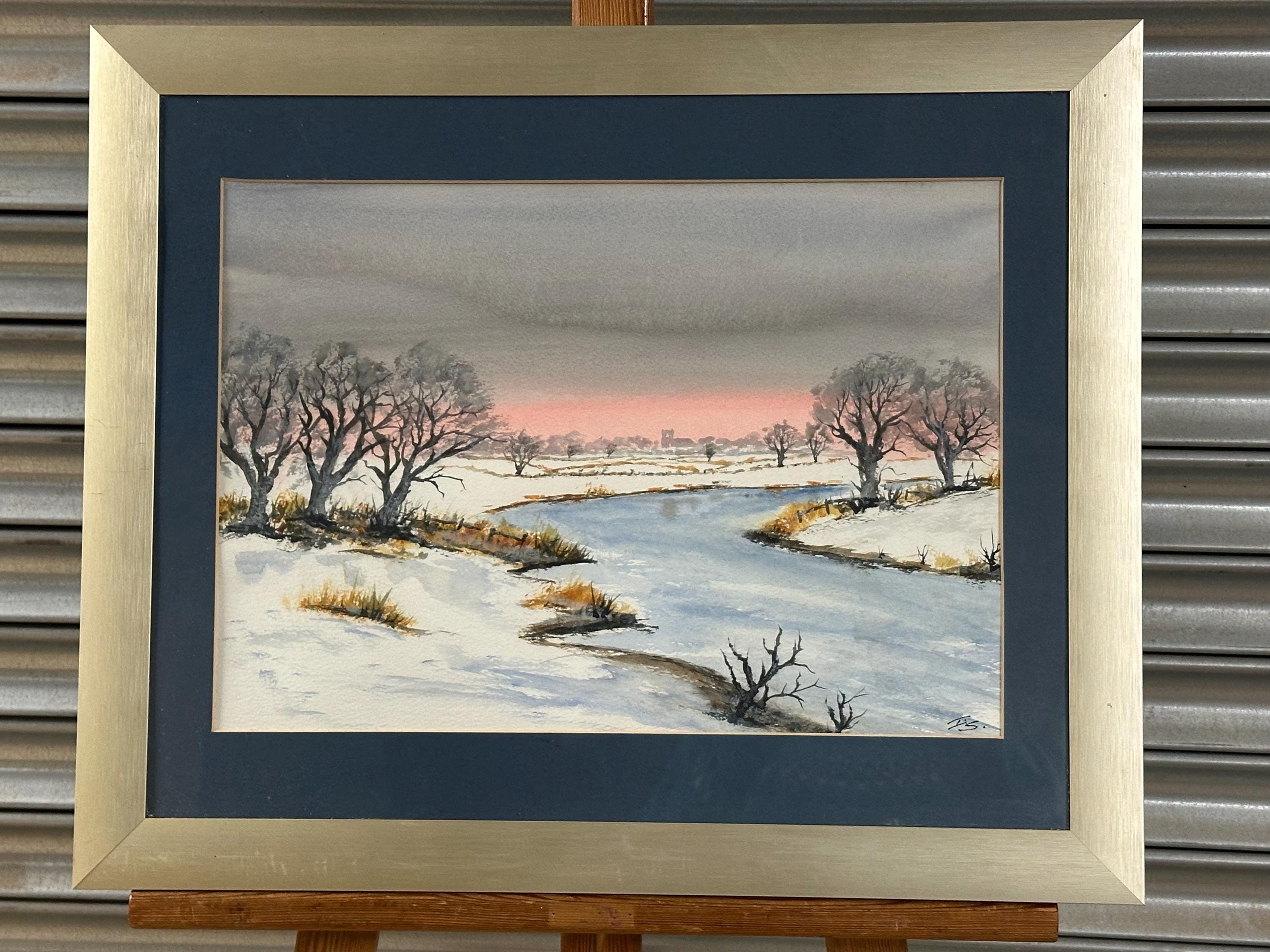 Lovely Original Watercolour Painting Depicting A Winter Landscape Scene Signed