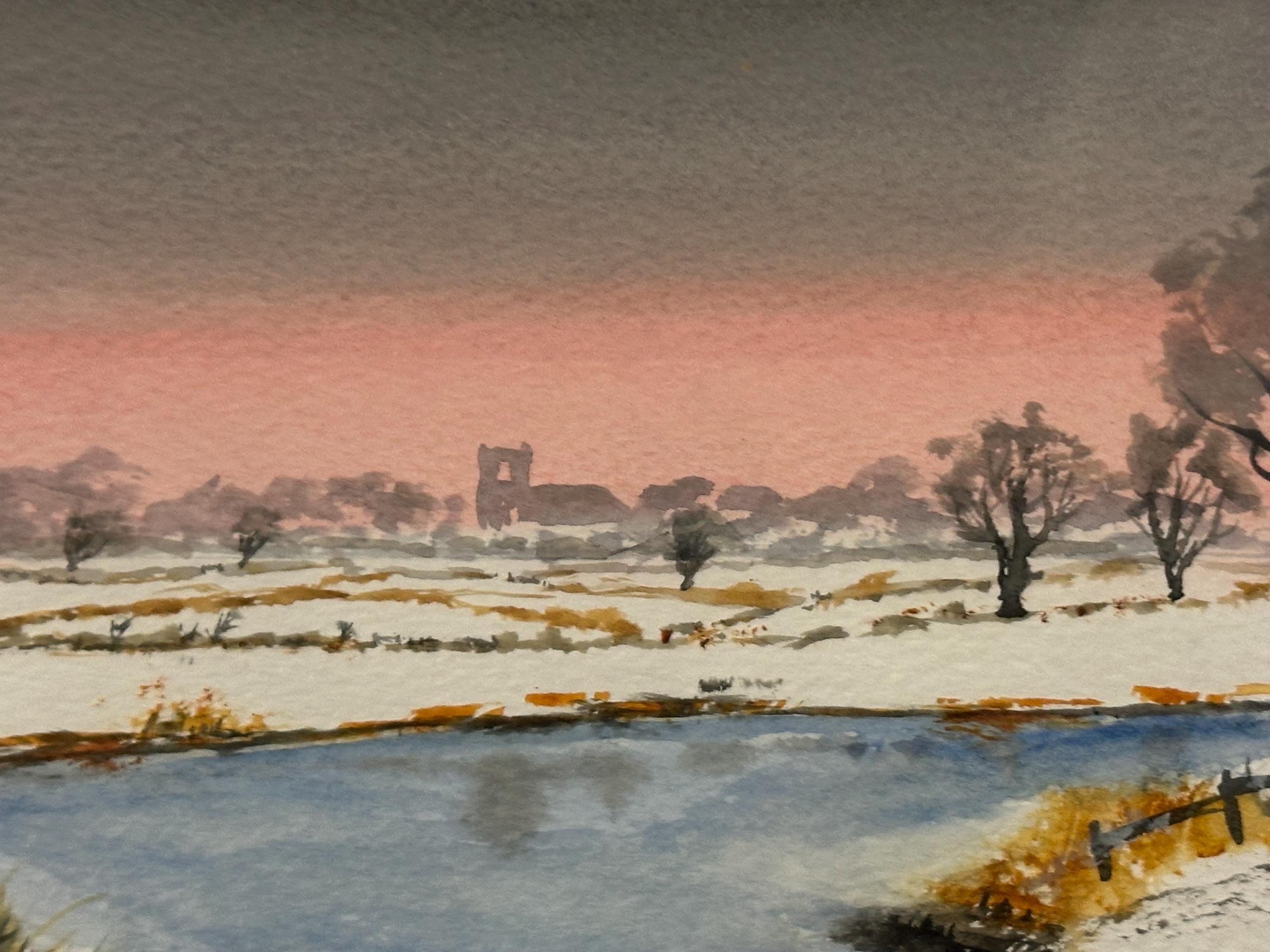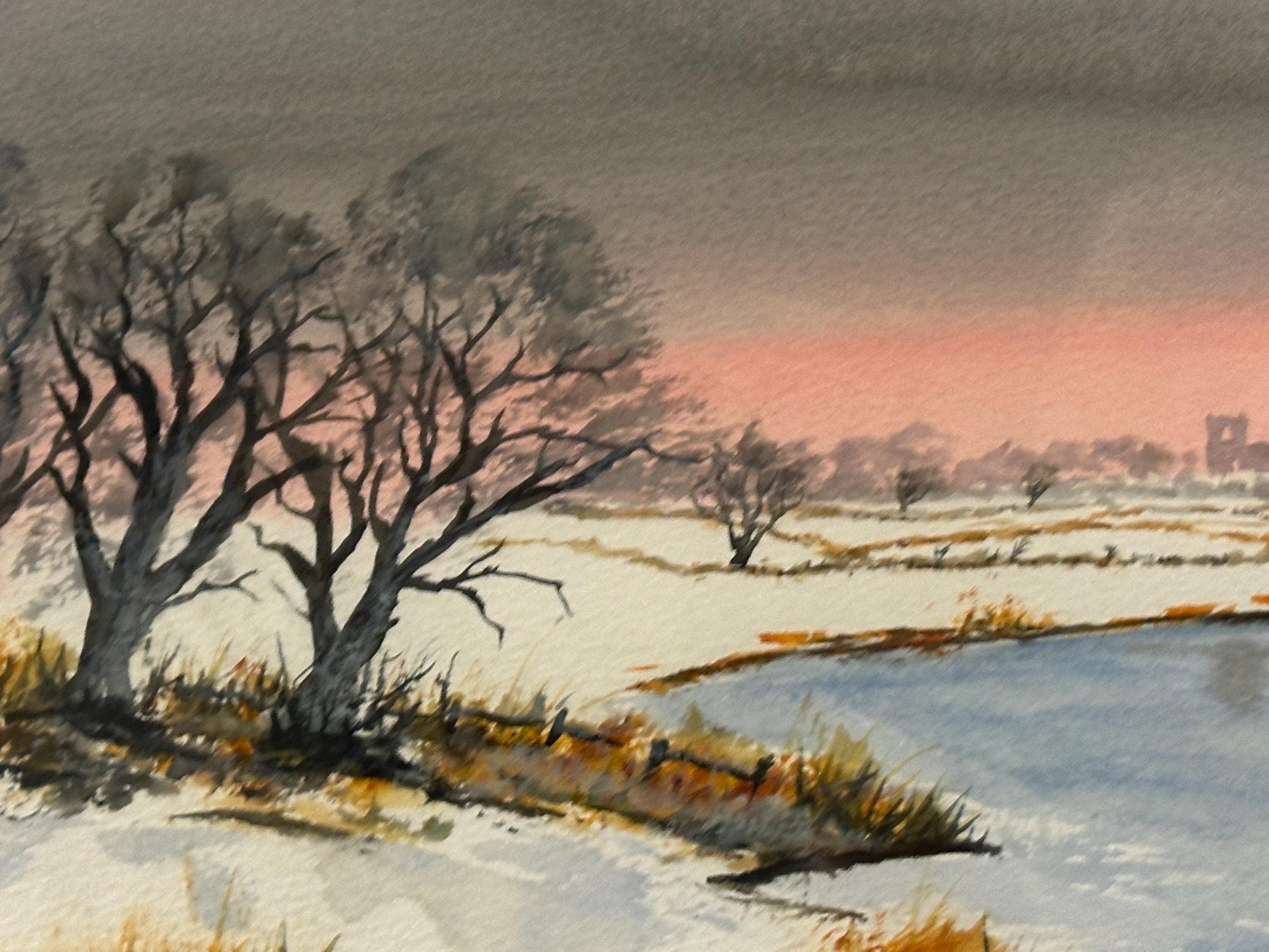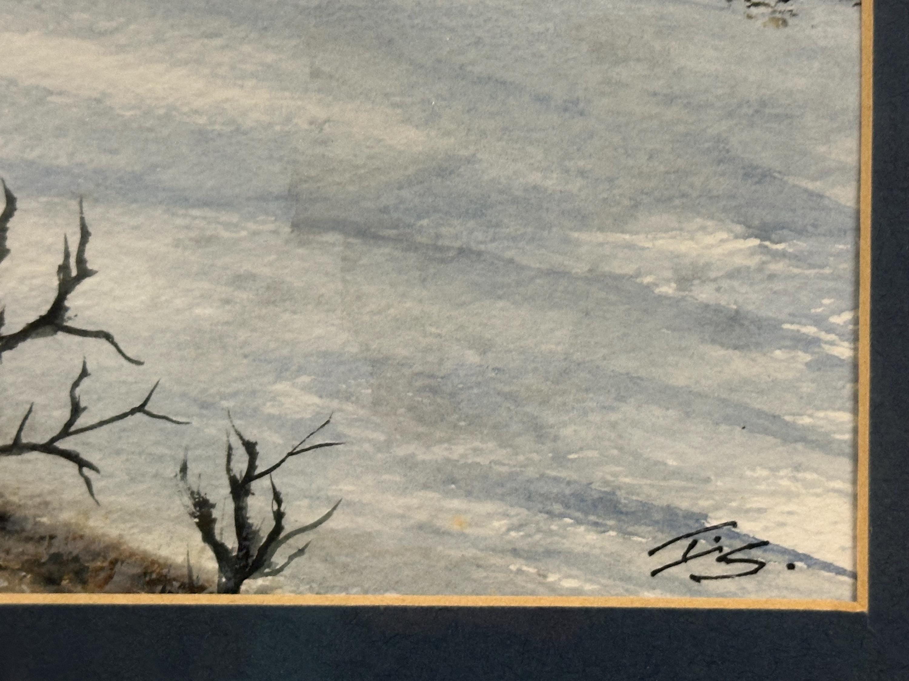 Lovely Original Watercolour Painting Depicting A Winter Landscape Scene Signed