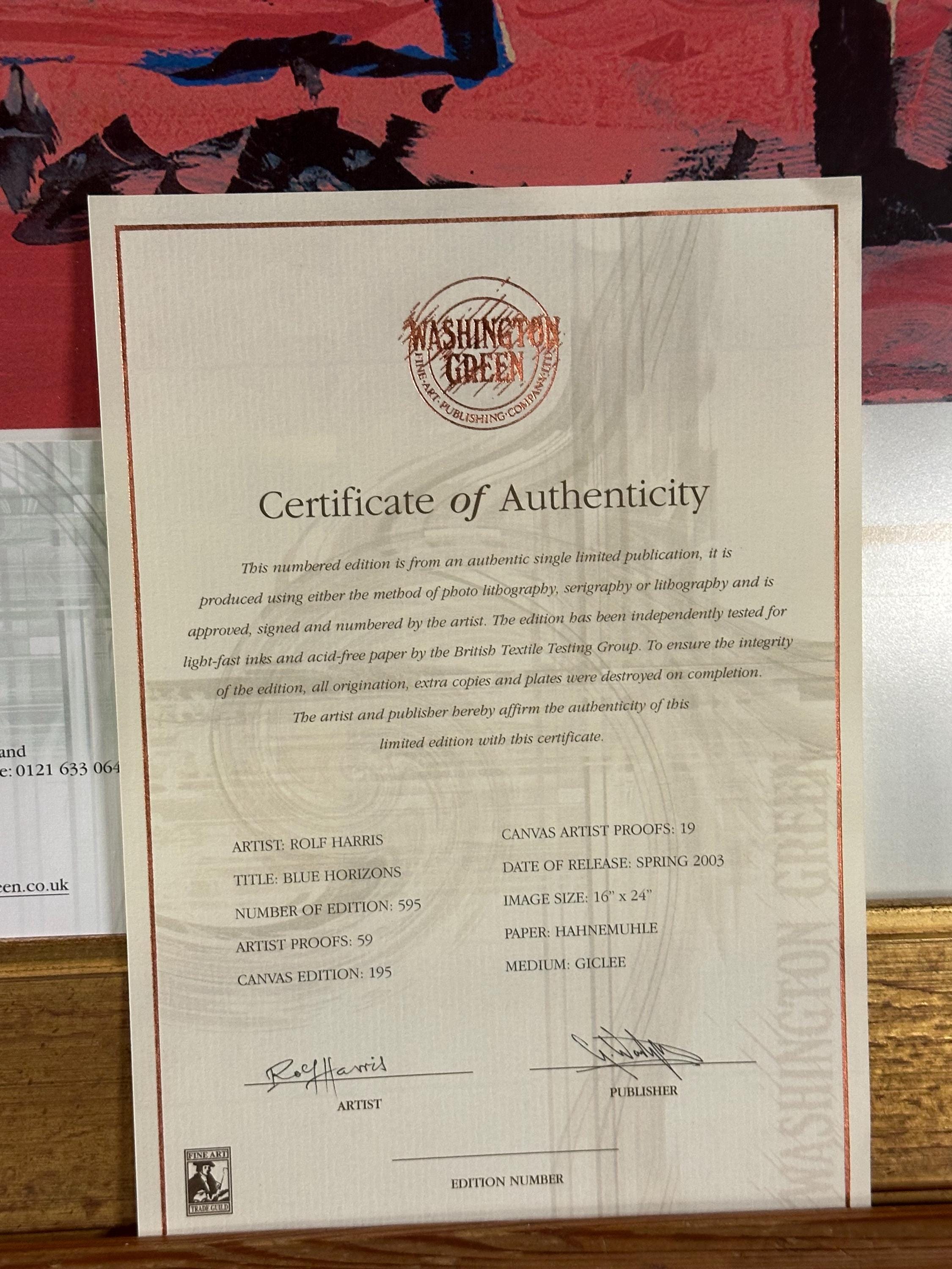 Rolf Harris – ‘Blue Horizons’ Signed Limited Edition Print 59/595 with Certificate of Authenticity