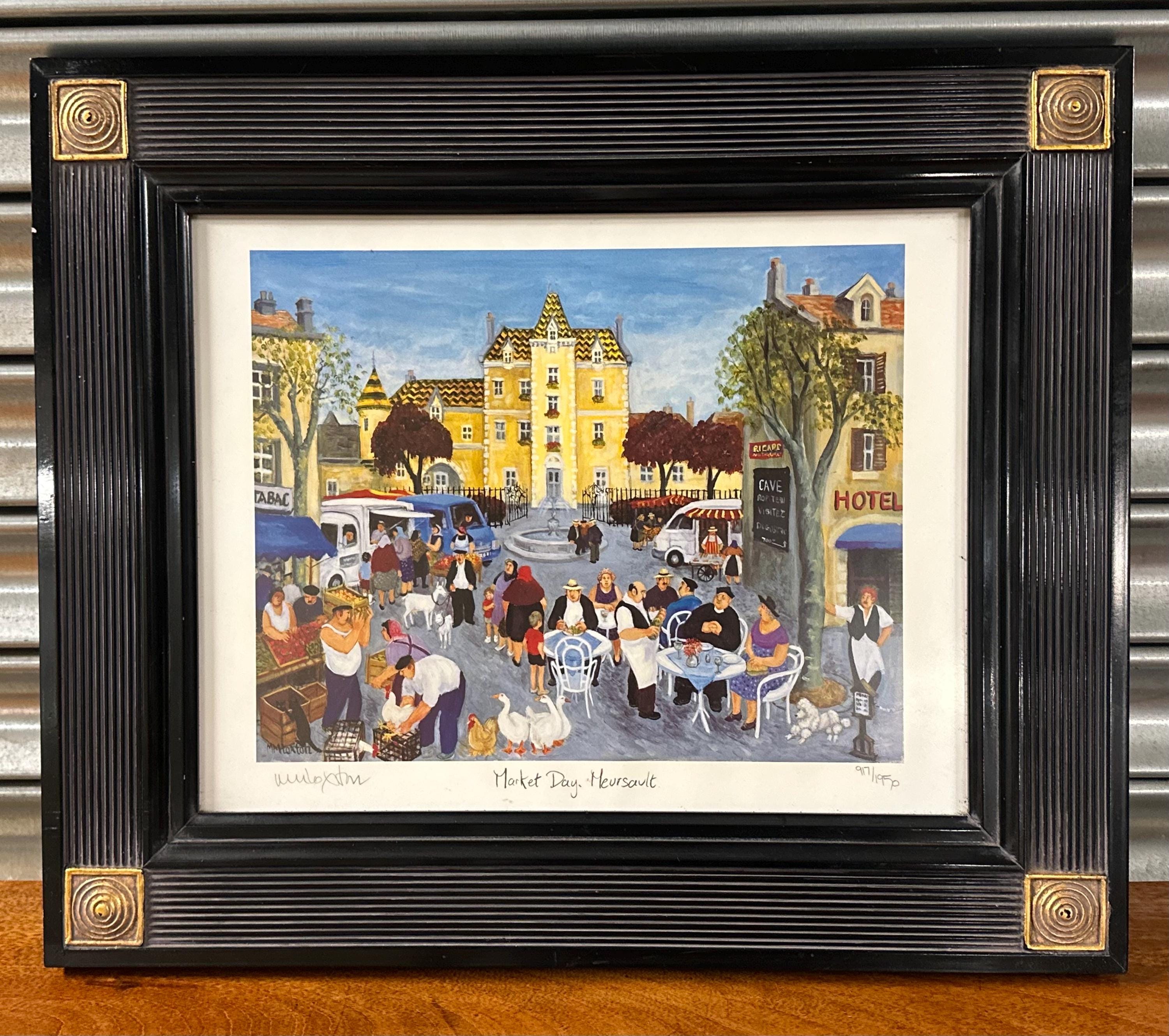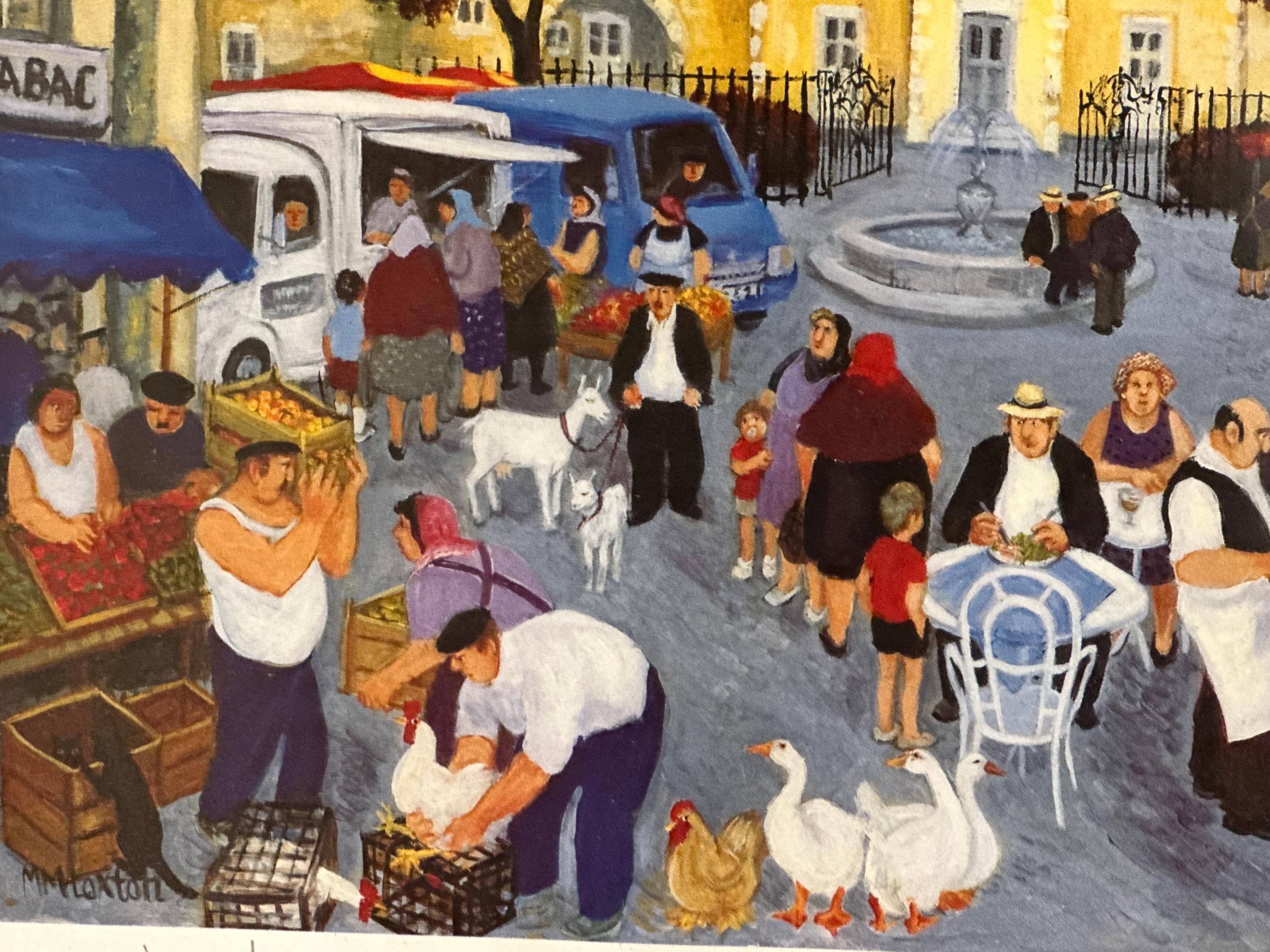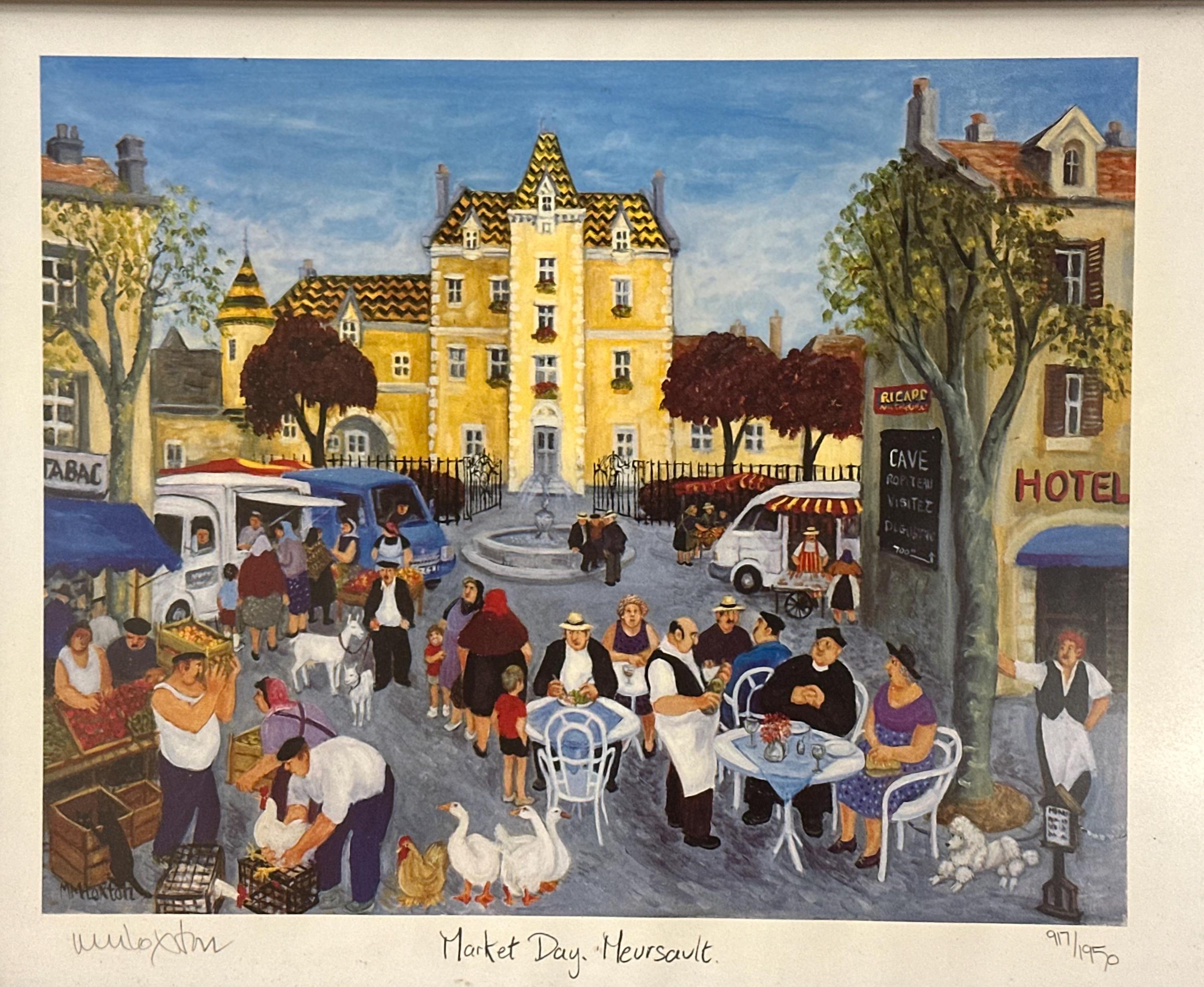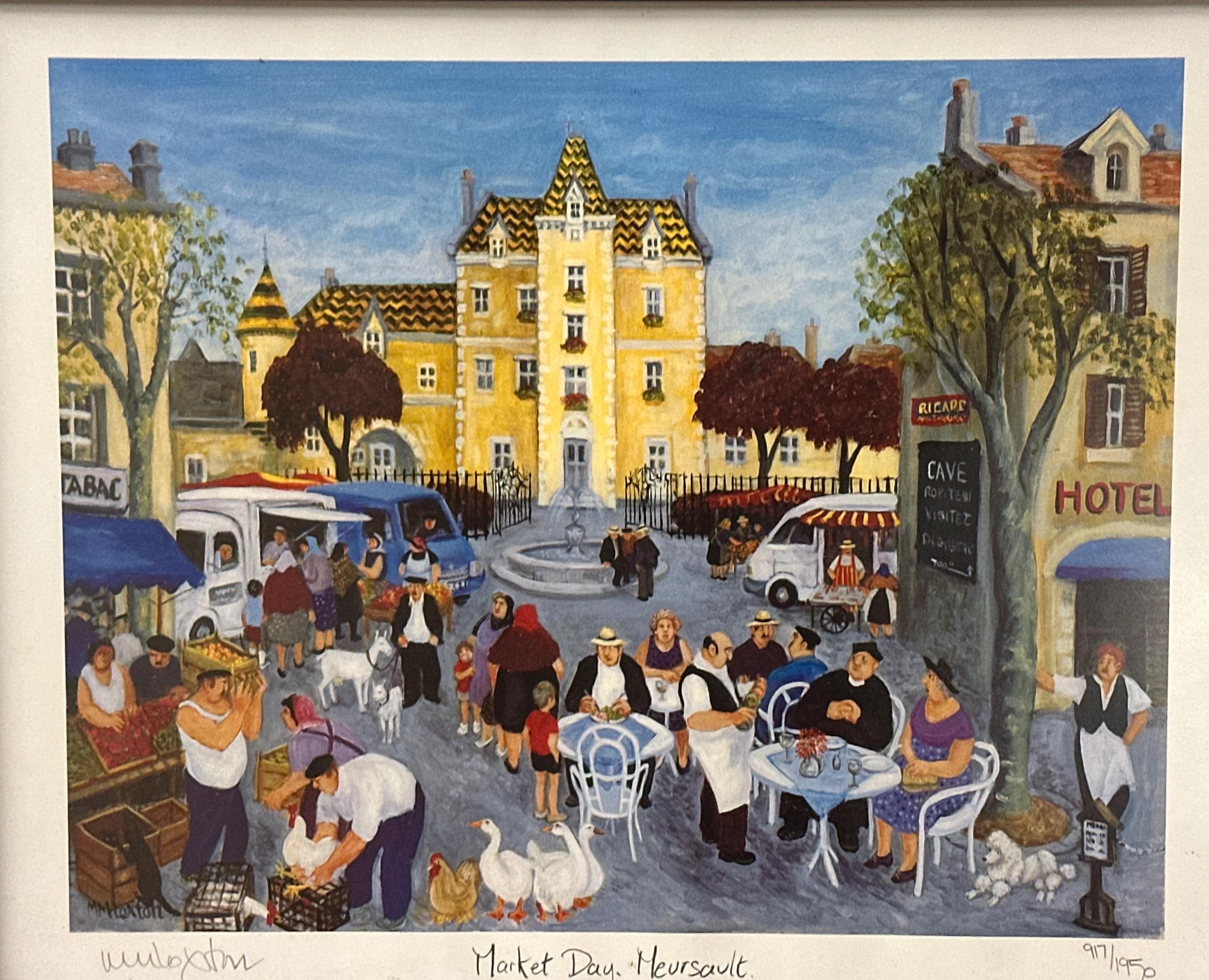 Charming limited edition colour print after Margaret Loxton, titled “Market Day, Meursault”, from her popular Burgundy Villages series.
