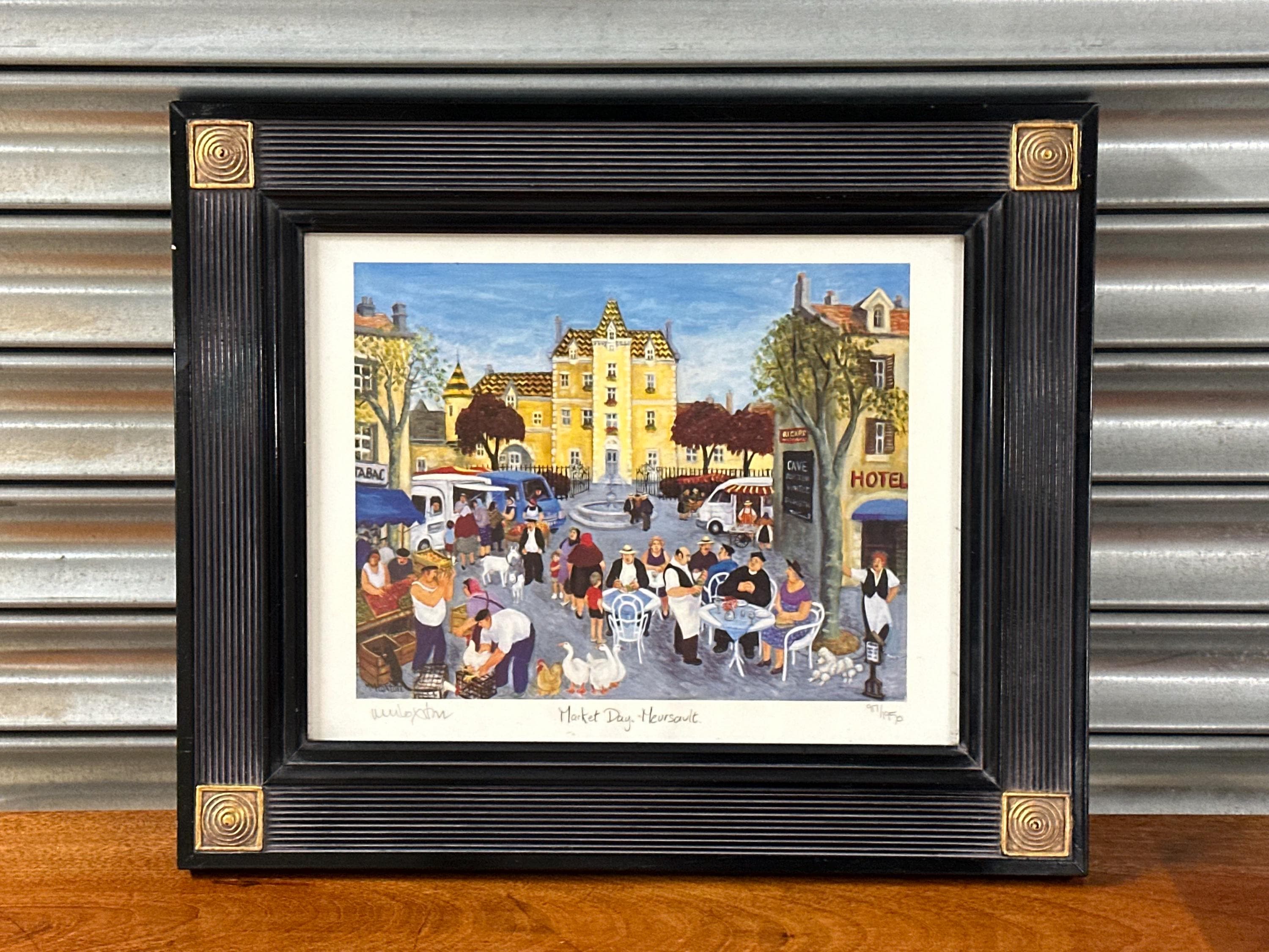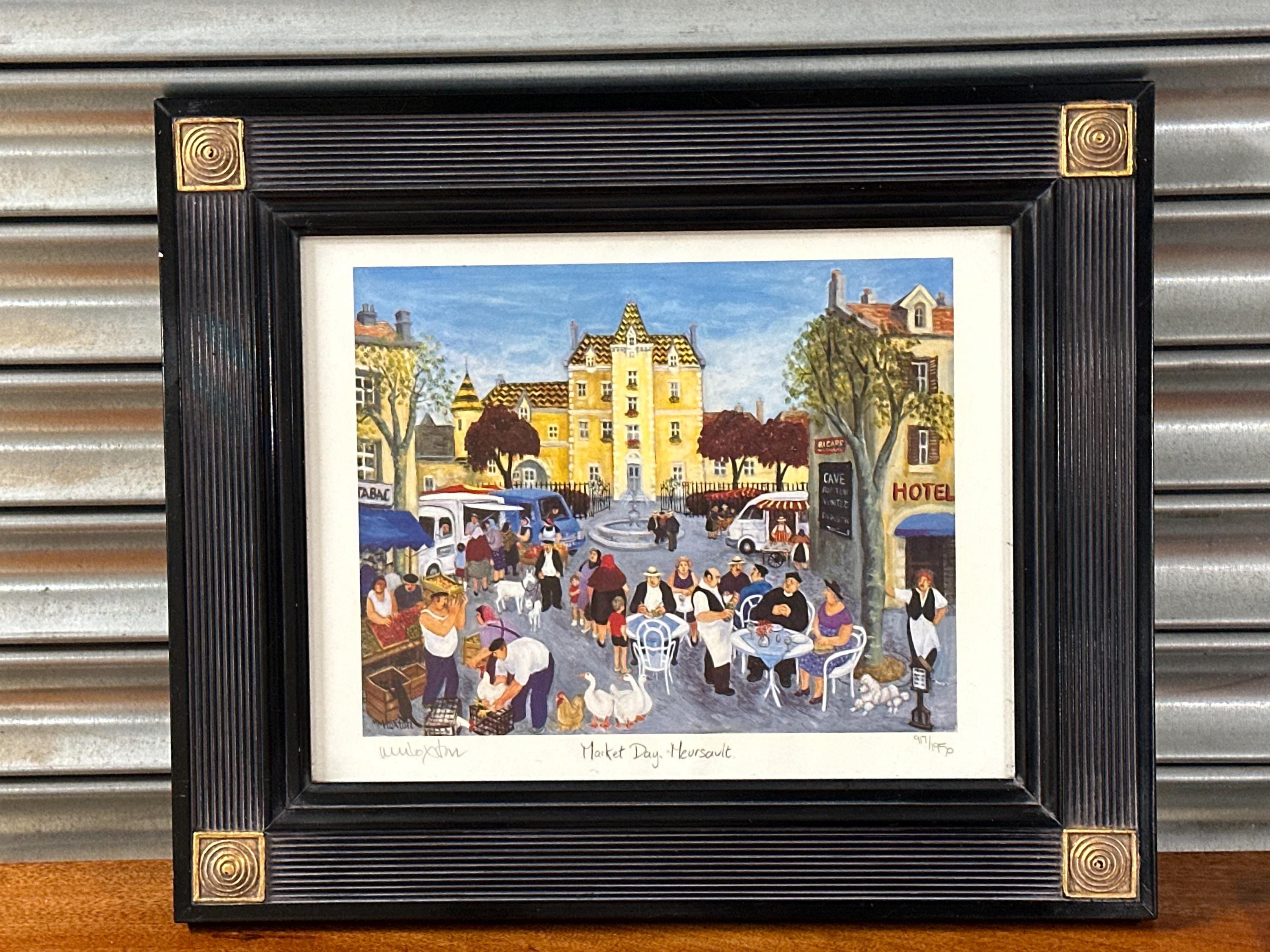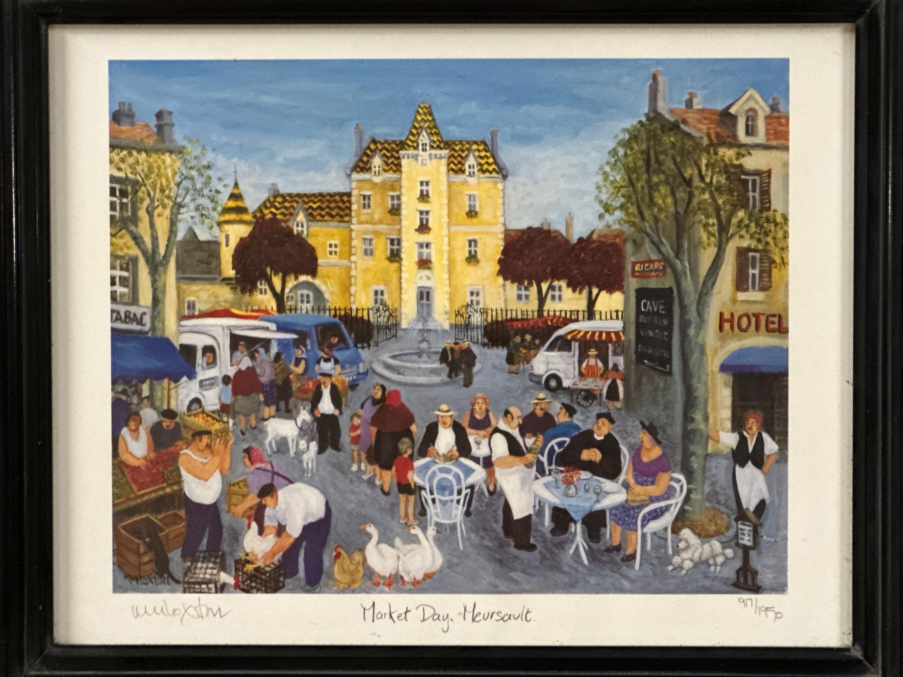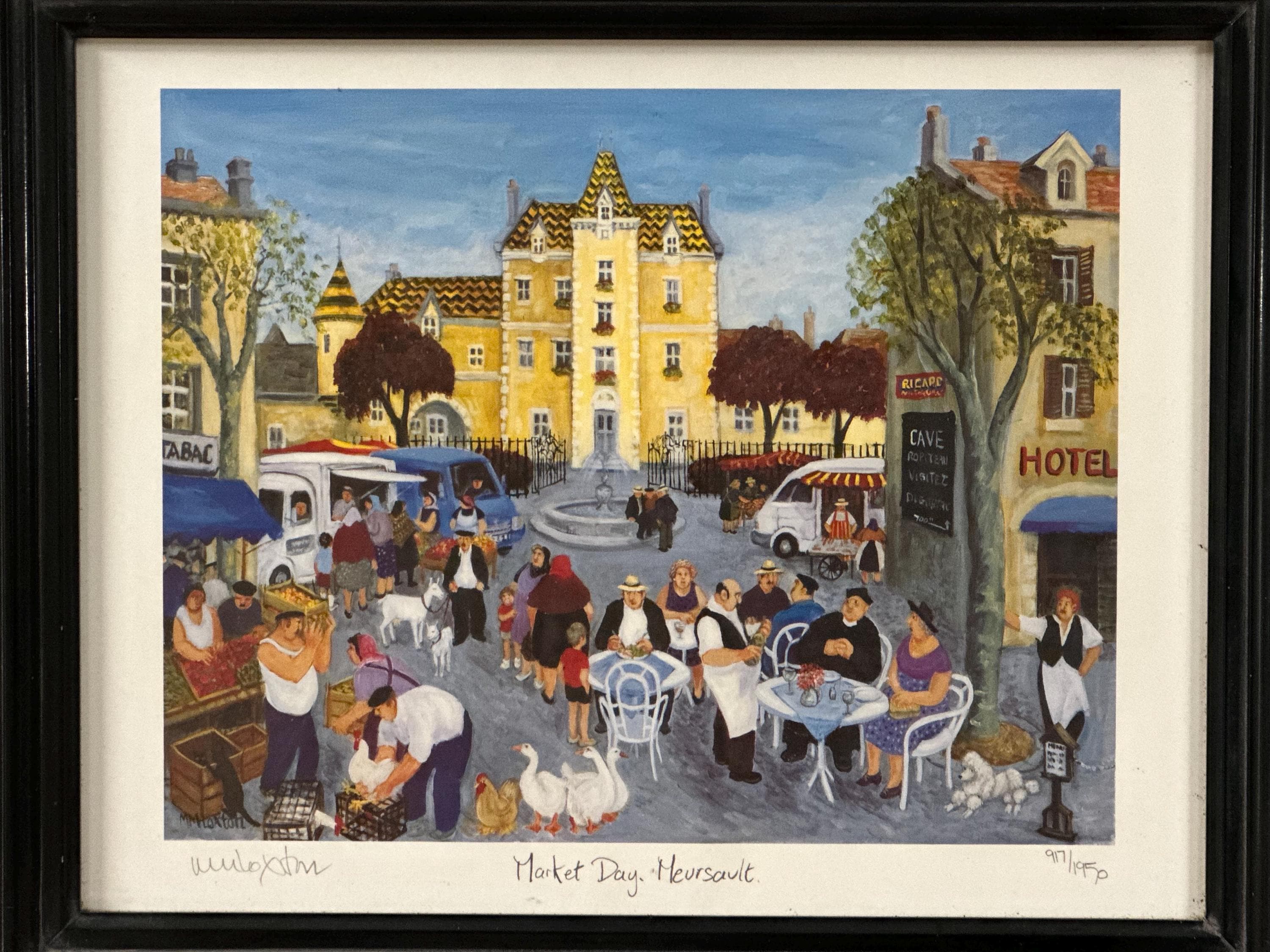 Charming limited edition colour print after Margaret Loxton, titled “Market Day, Meursault”, from her popular Burgundy Villages series.