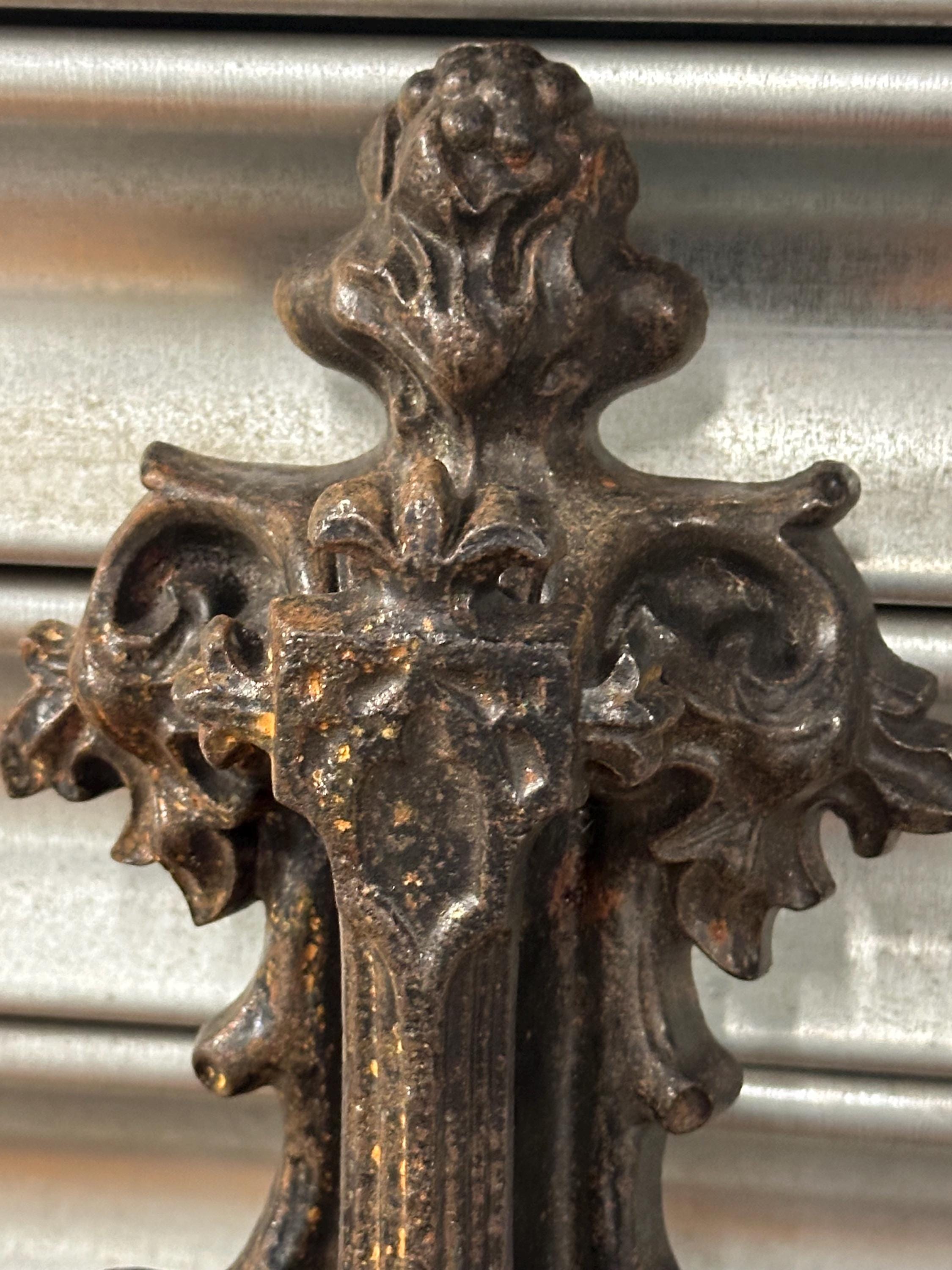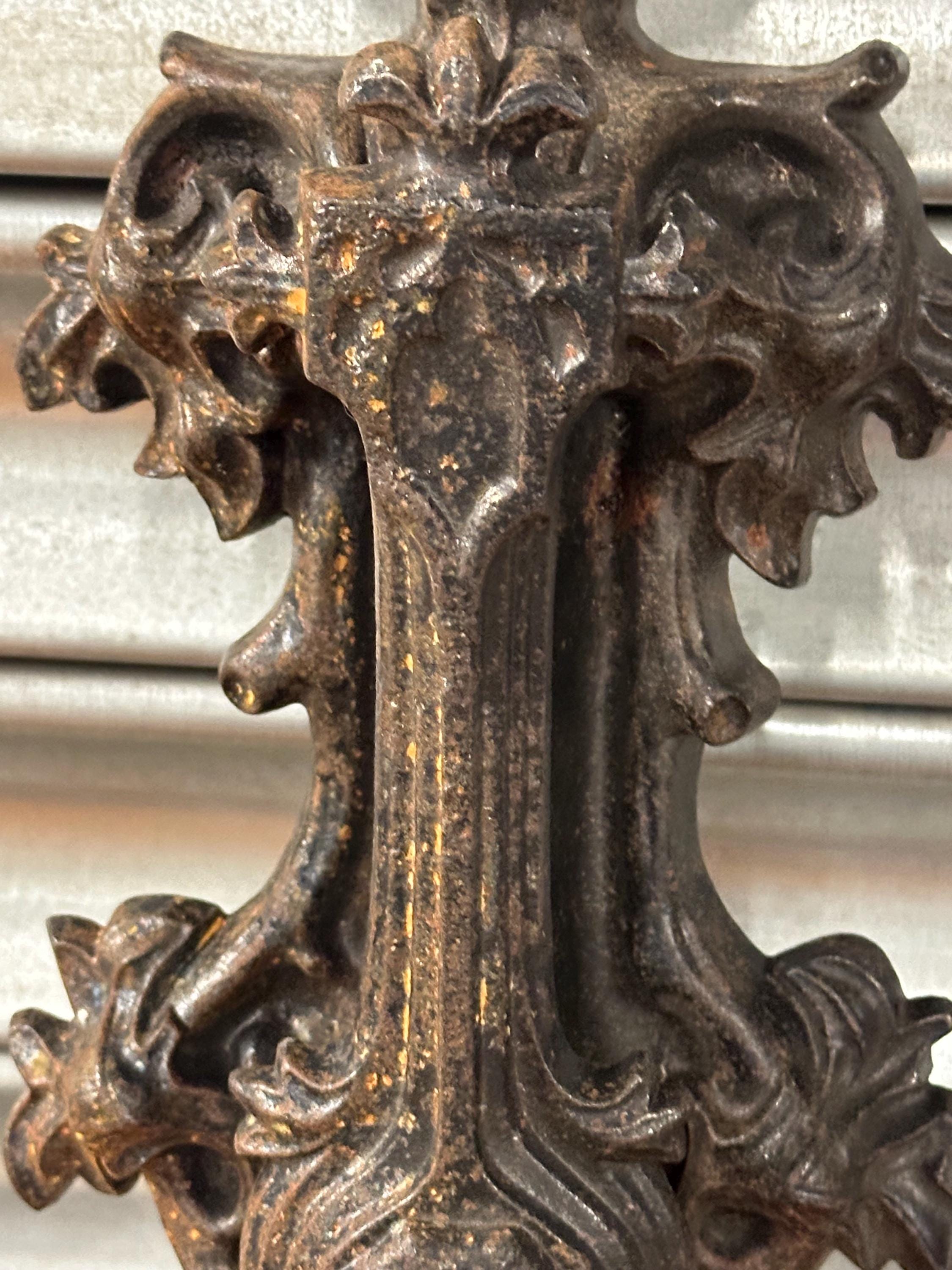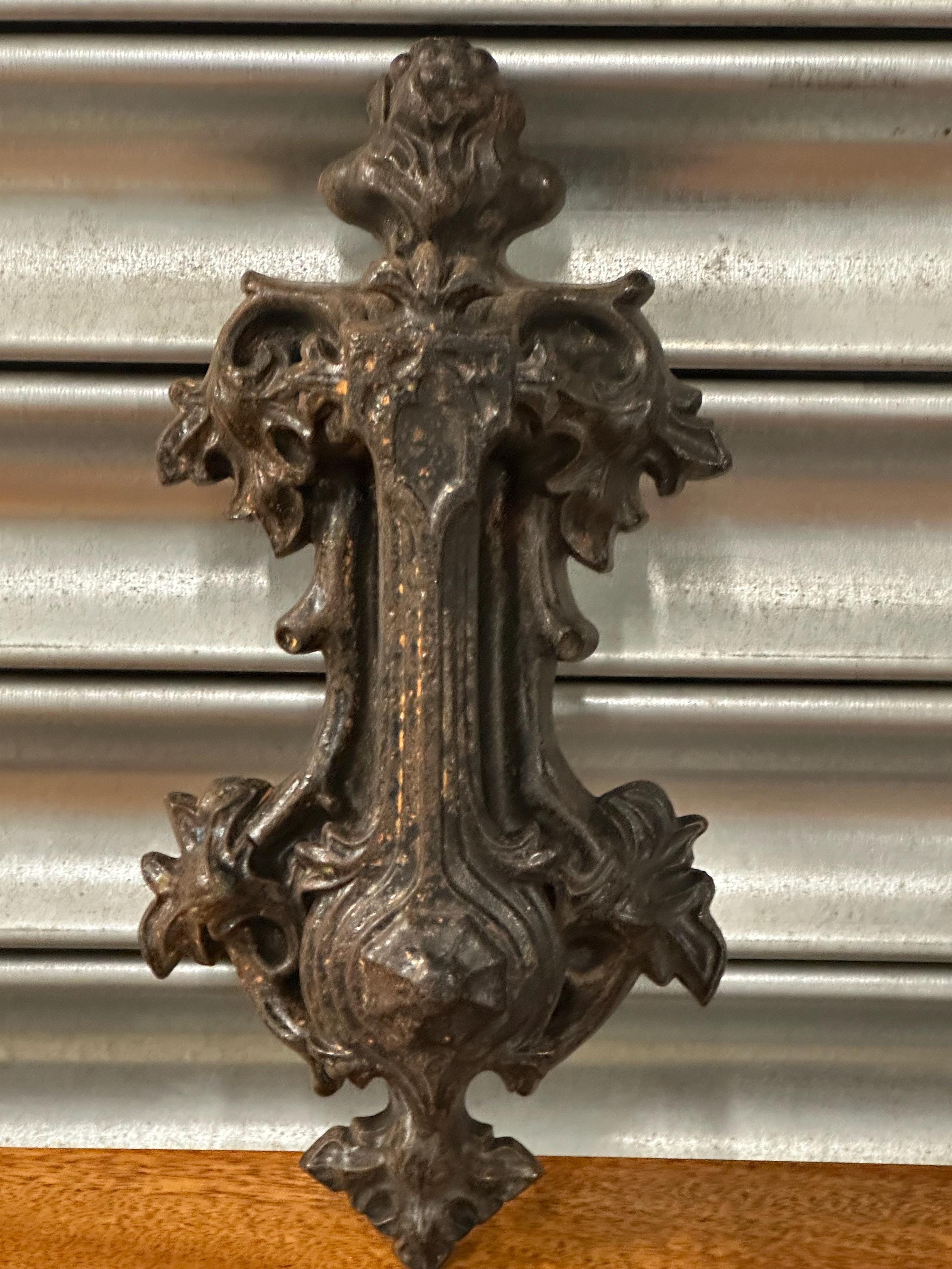 This is a substantial, well-cast example with lovely age-darkened patina, ideal for restoring or enhancing a period front door, hallway project, or architectural salvage collection.