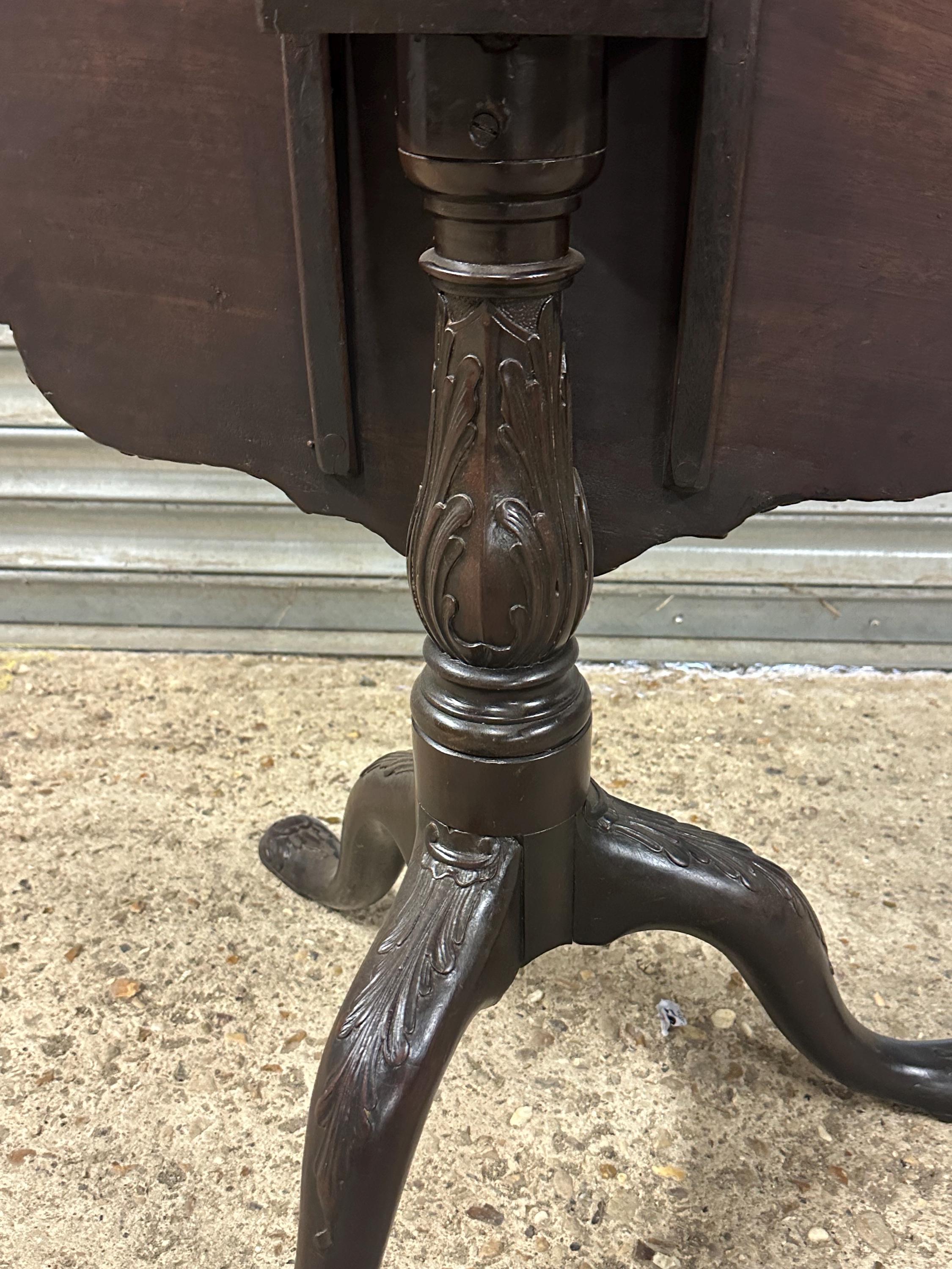 Supported on a turned central column leading to three graceful cabriole legs with carved detail to the knees and feet, giving the table real presence and period character.