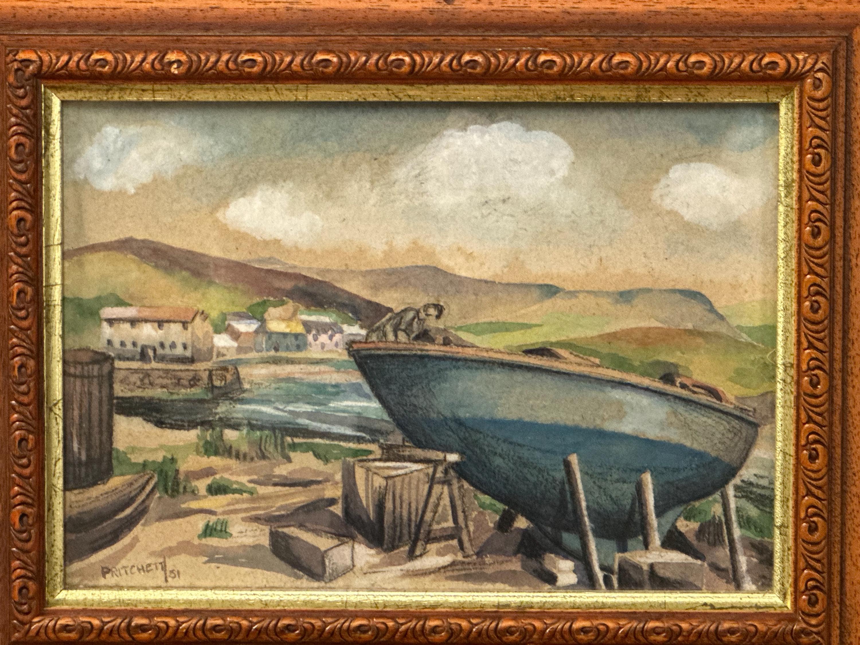 🎨 Vintage Watercolour Harbour Scene – Signed Pritchett 1951 – Framed