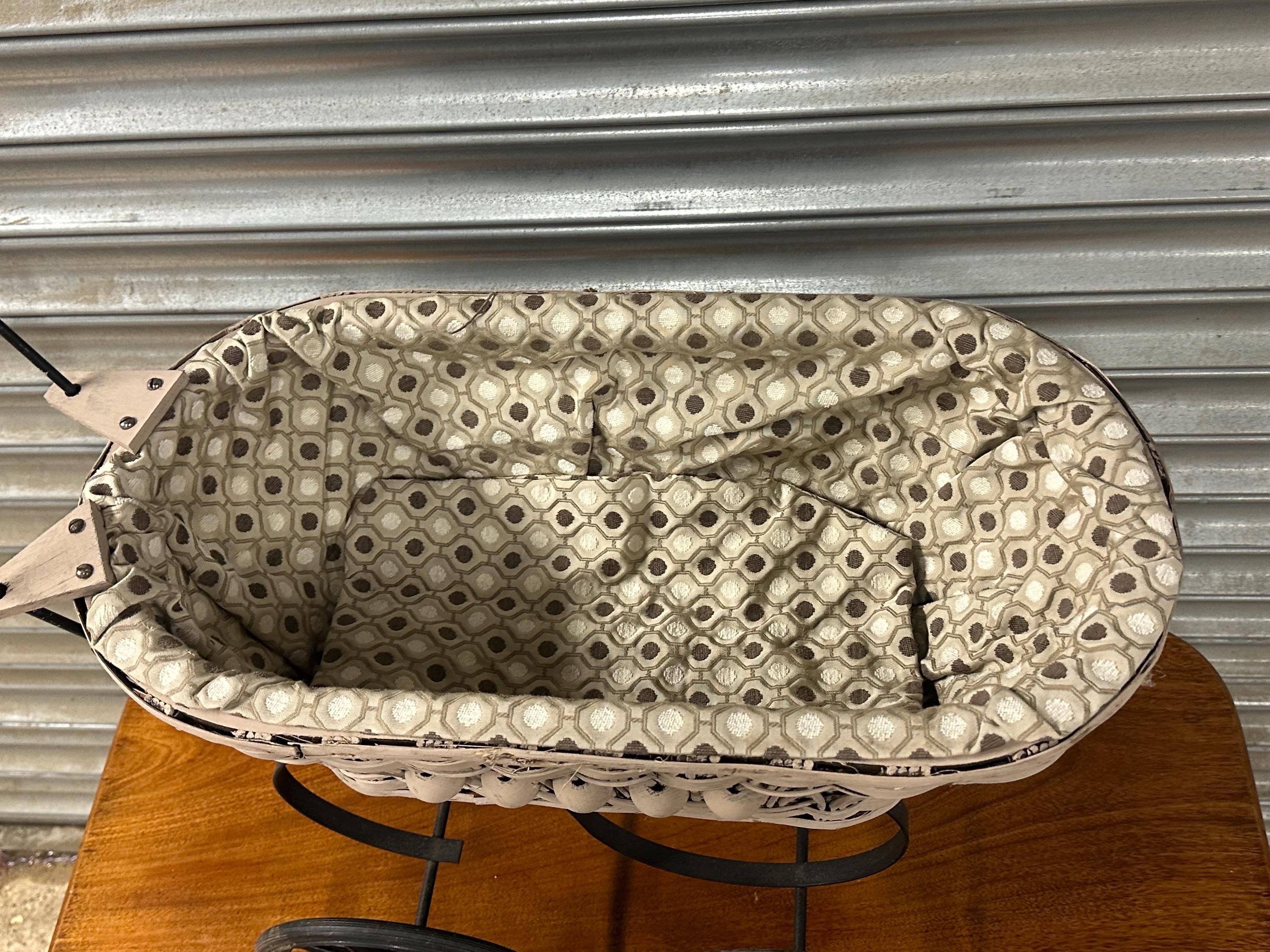 Vintage Style Wicker Dolls Pram / Decorative Pushchair Basket on Wheels