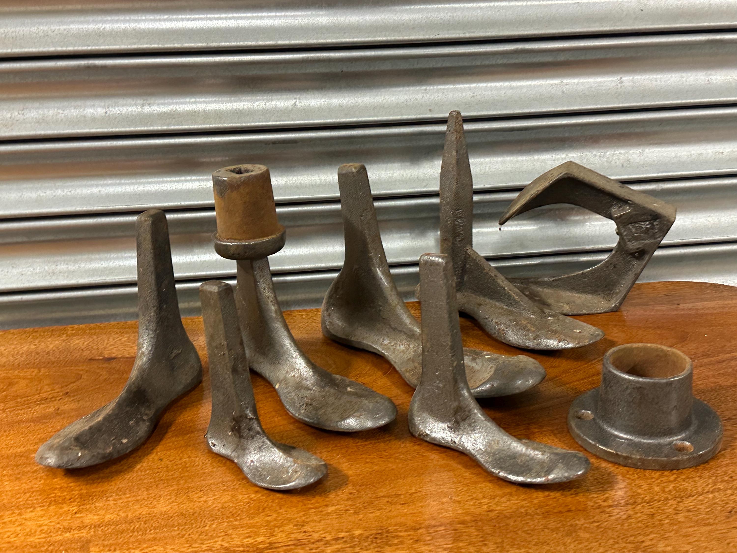 This varied group includes several different foot-shaped and specialty forms, each designed for shaping, lasting, stretching and finishing footwear. Heavy, solid pieces with great tactile appeal and authentic workshop patina.