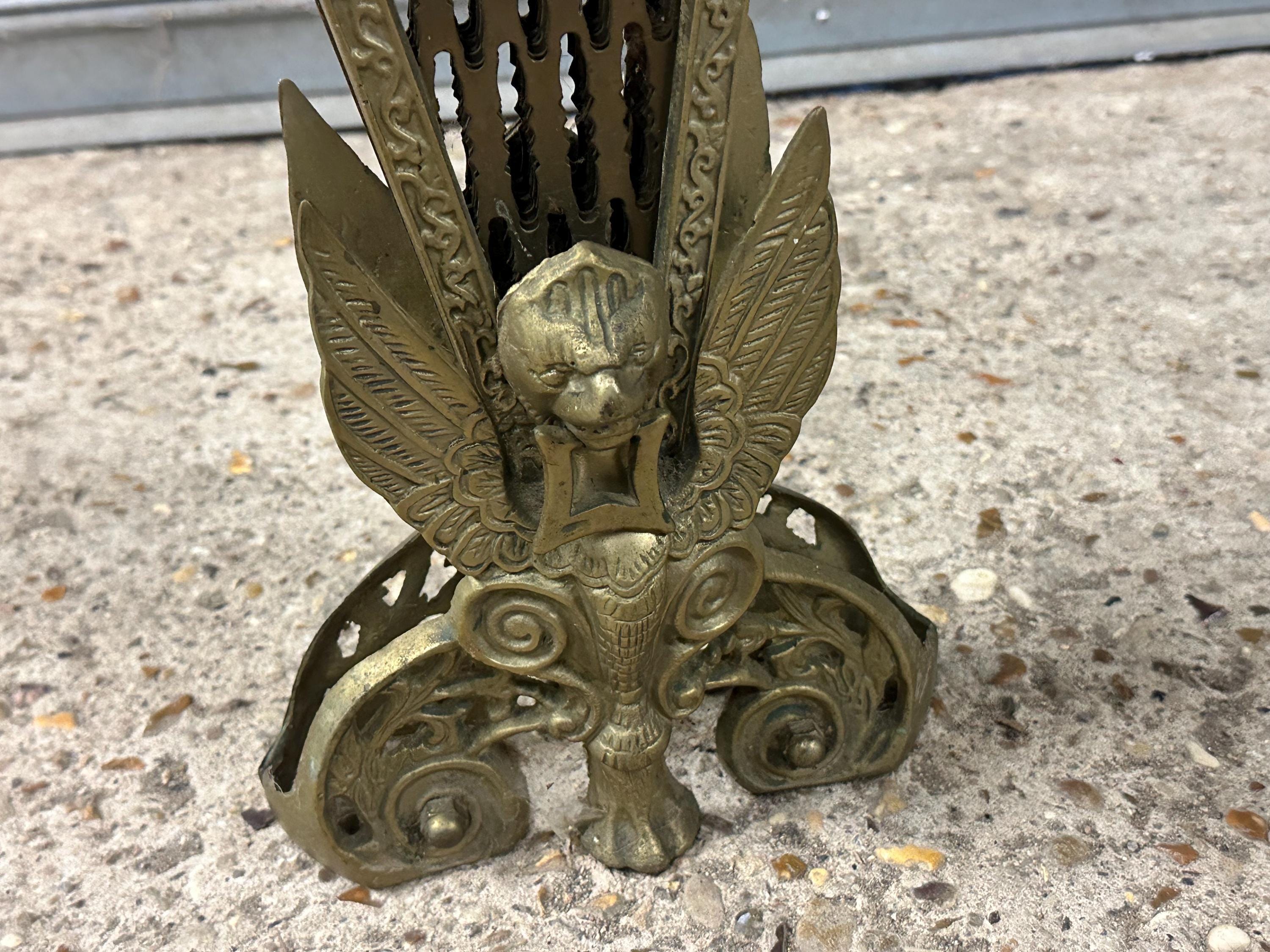 ✨ Vintage 1920s Decorative Brass Peacock Fireplace Screen / Fire Guard