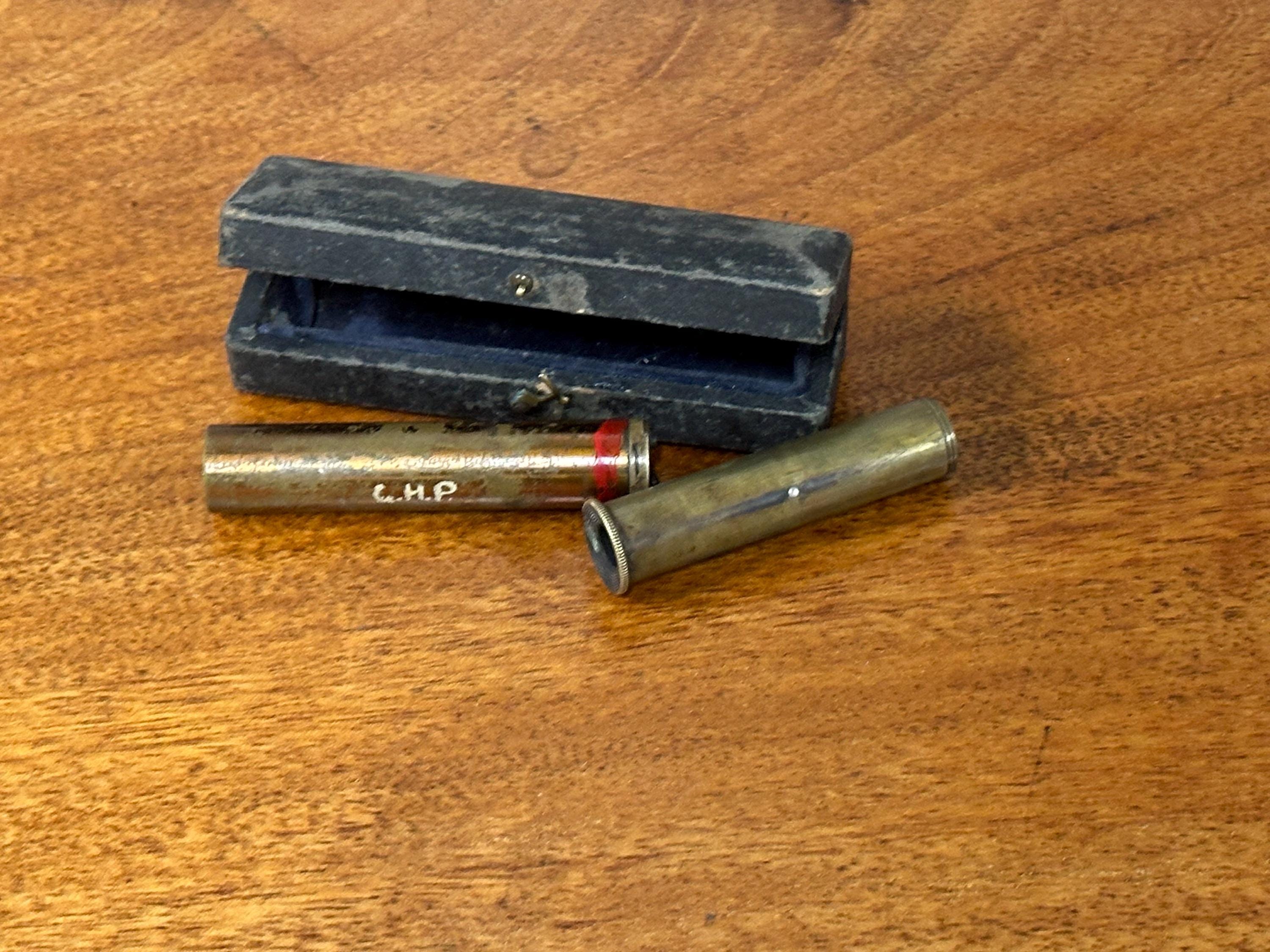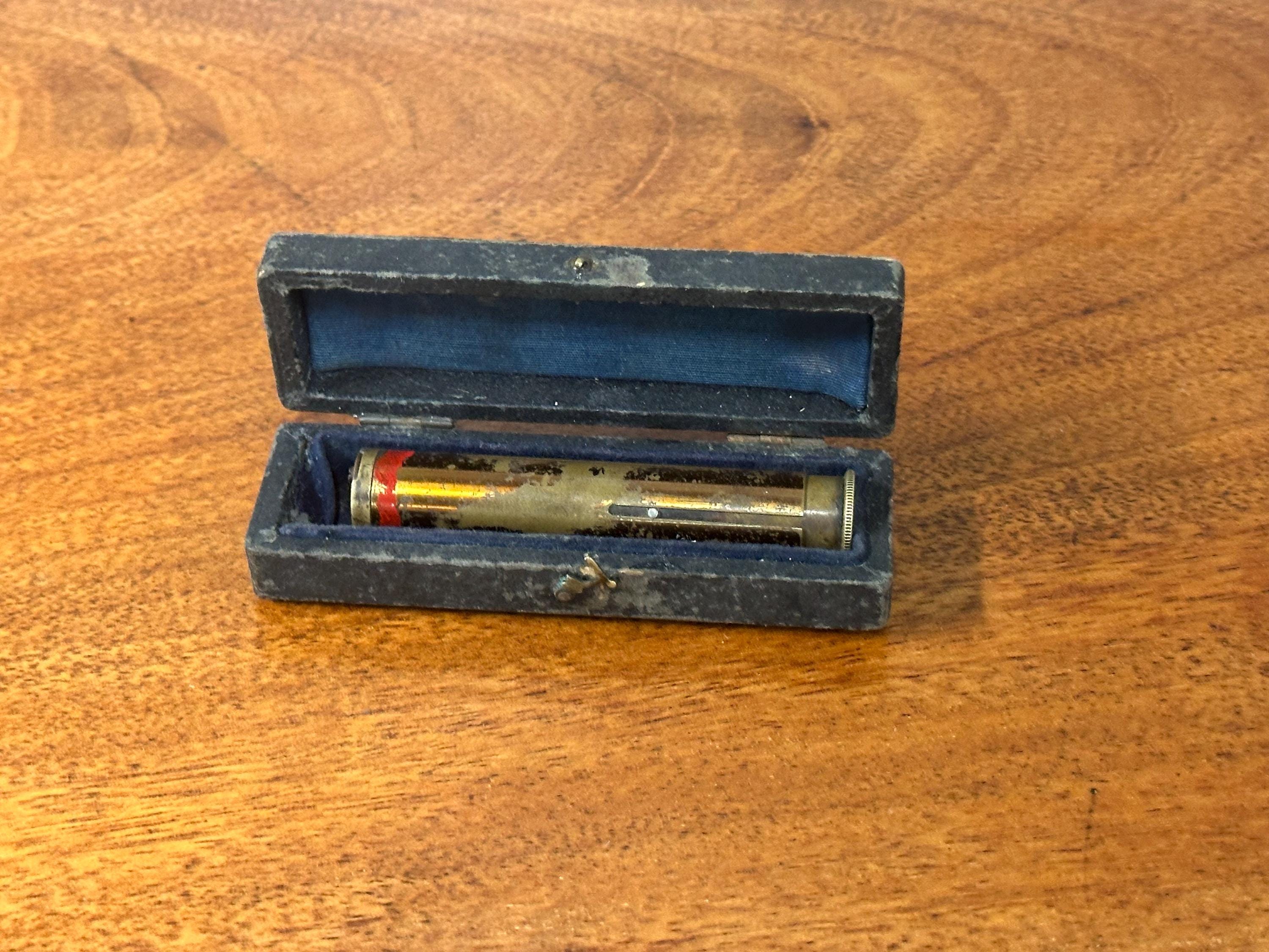 Charming vintage handheld spectroscope in brass, complete with its original fitted presentation case.