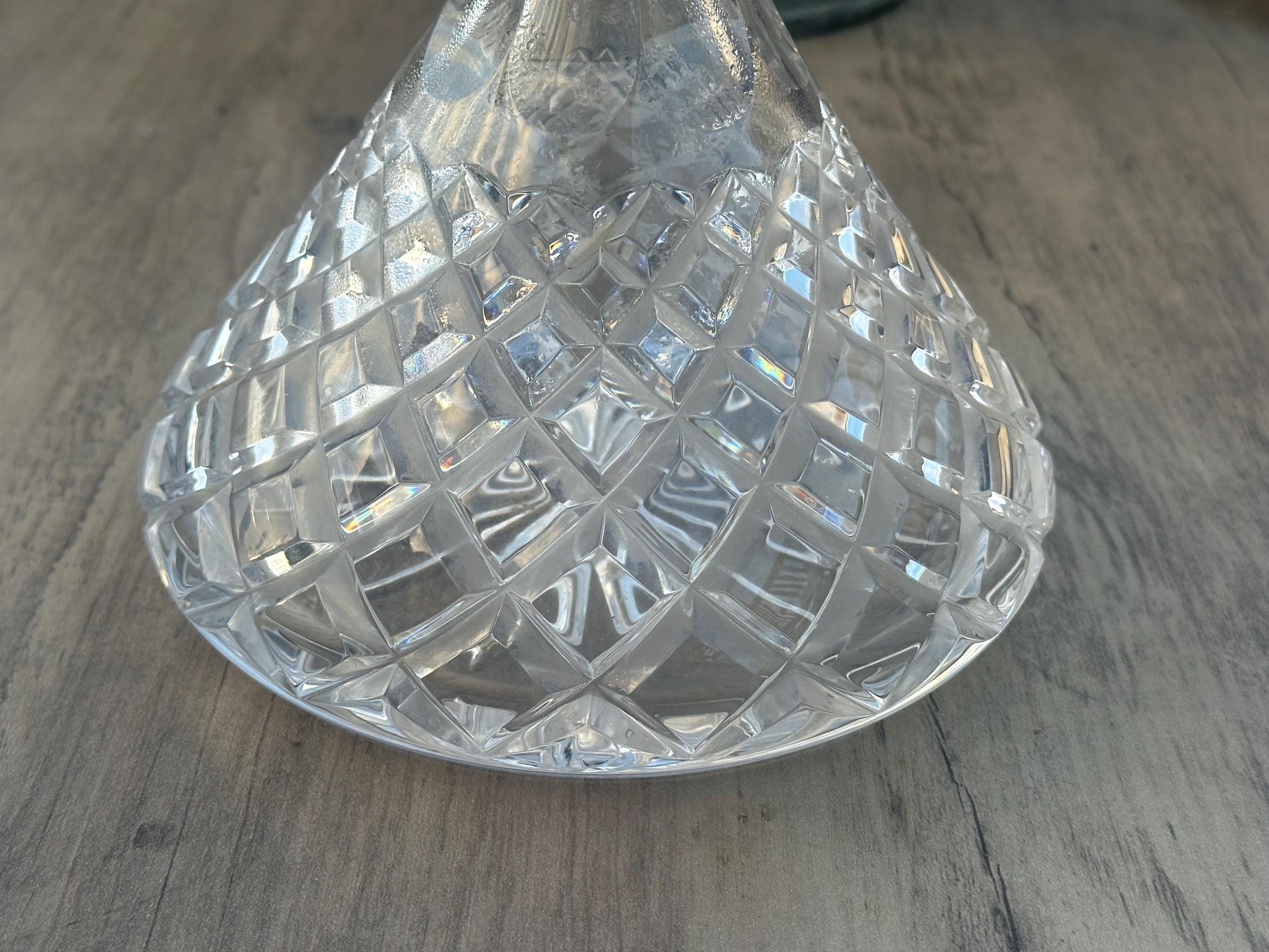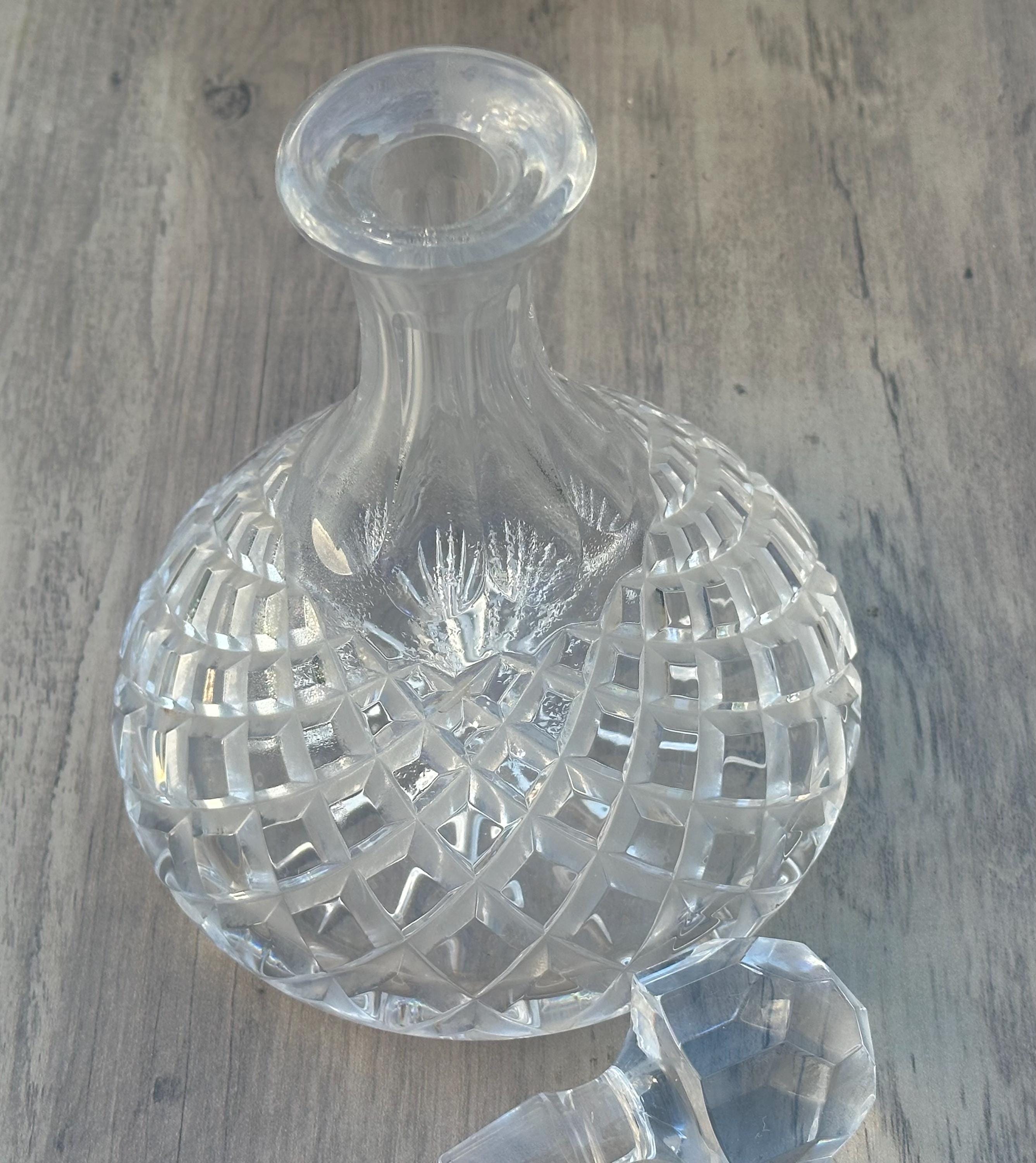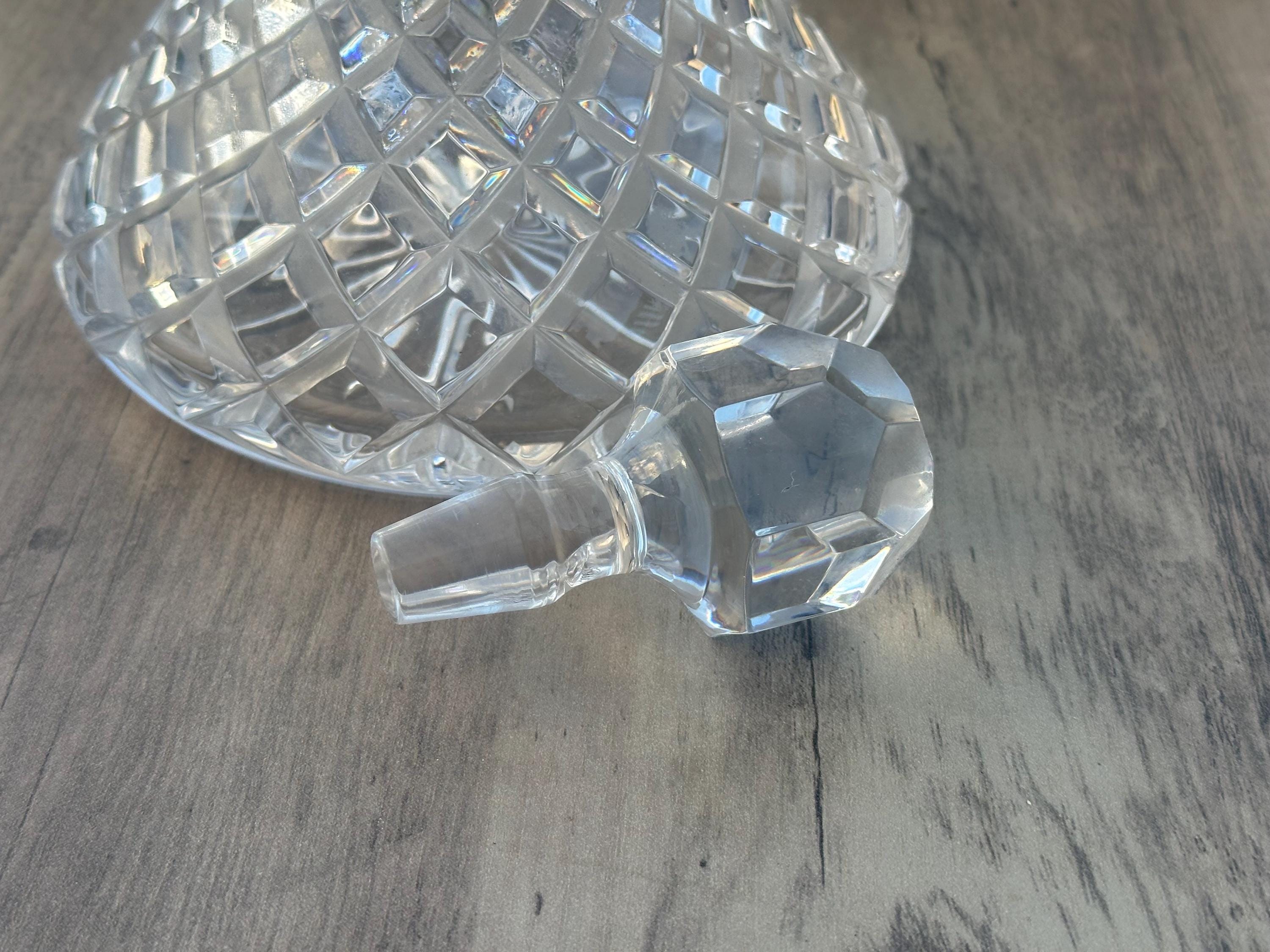Lovely Vintage Cut Glass Crystal Ships Decanter – Diamond Cut – Faceted Stopper