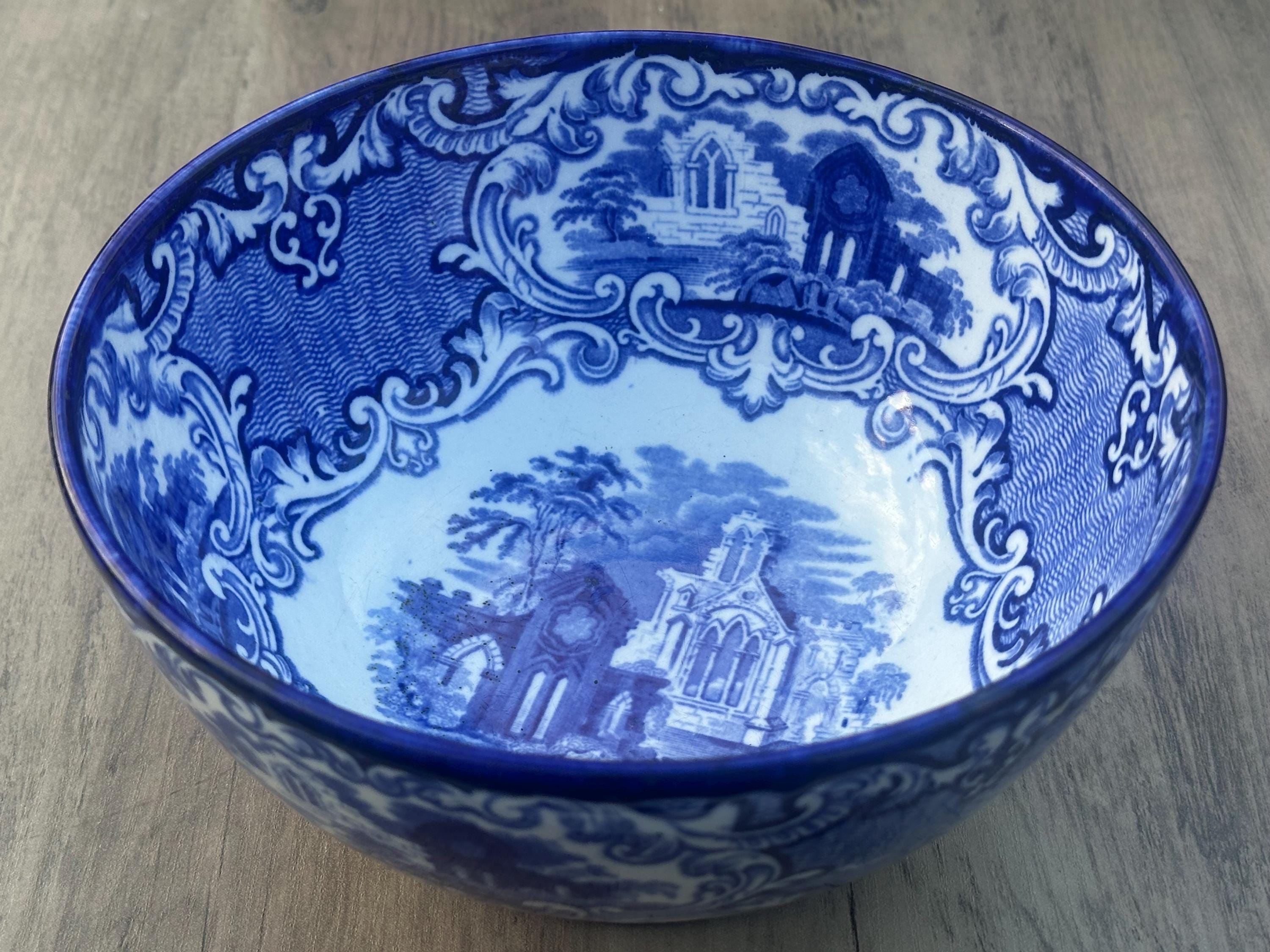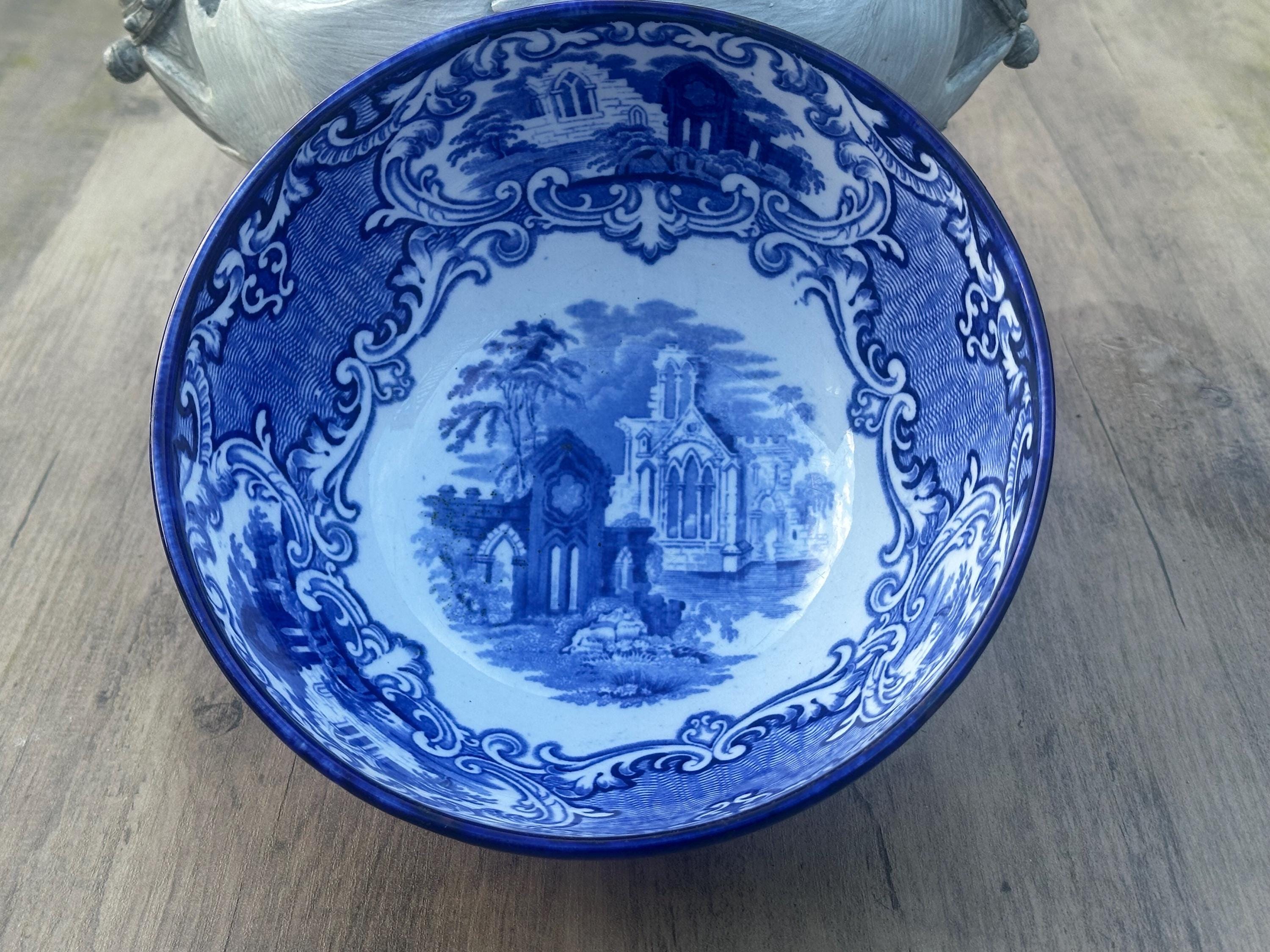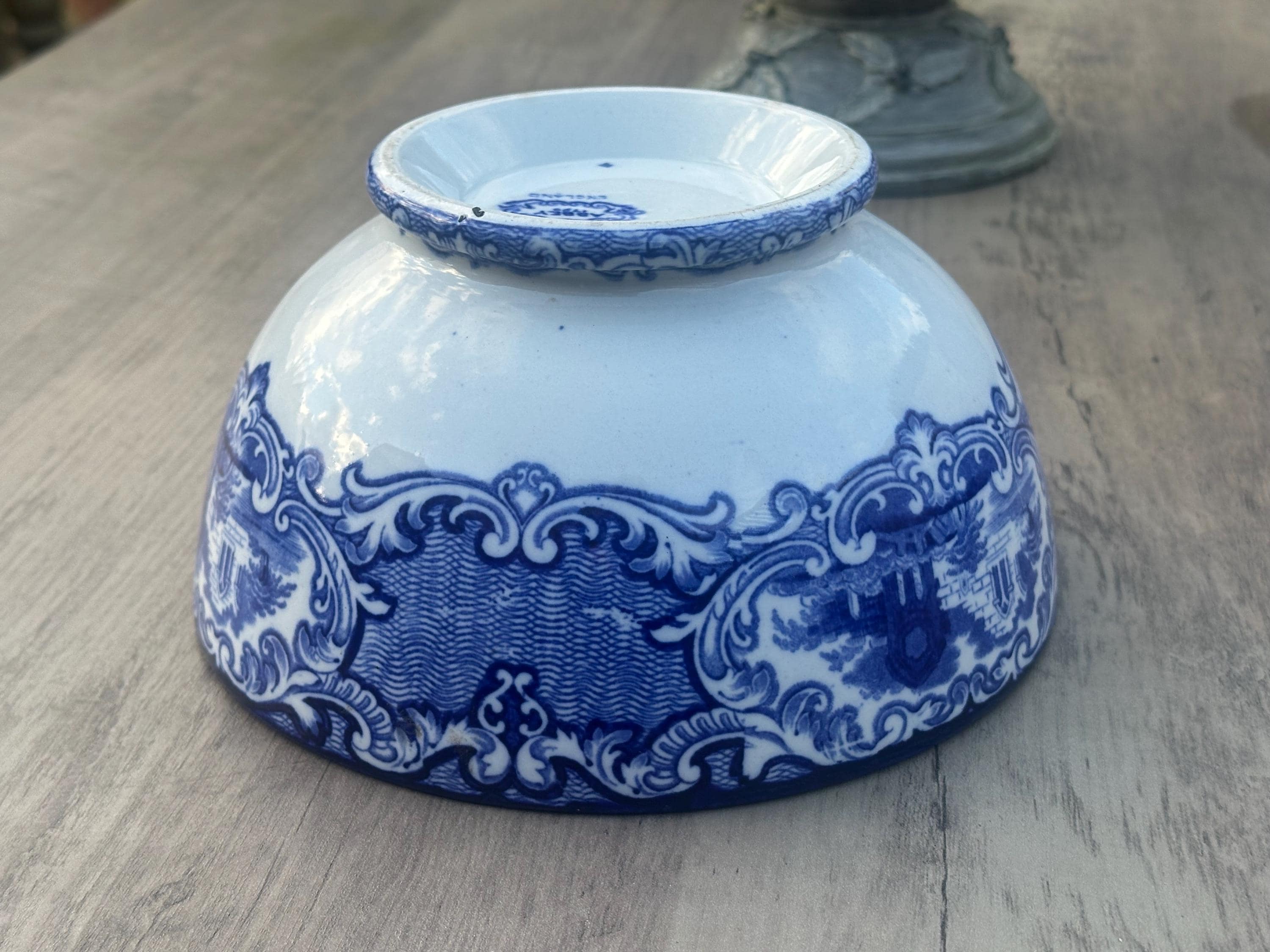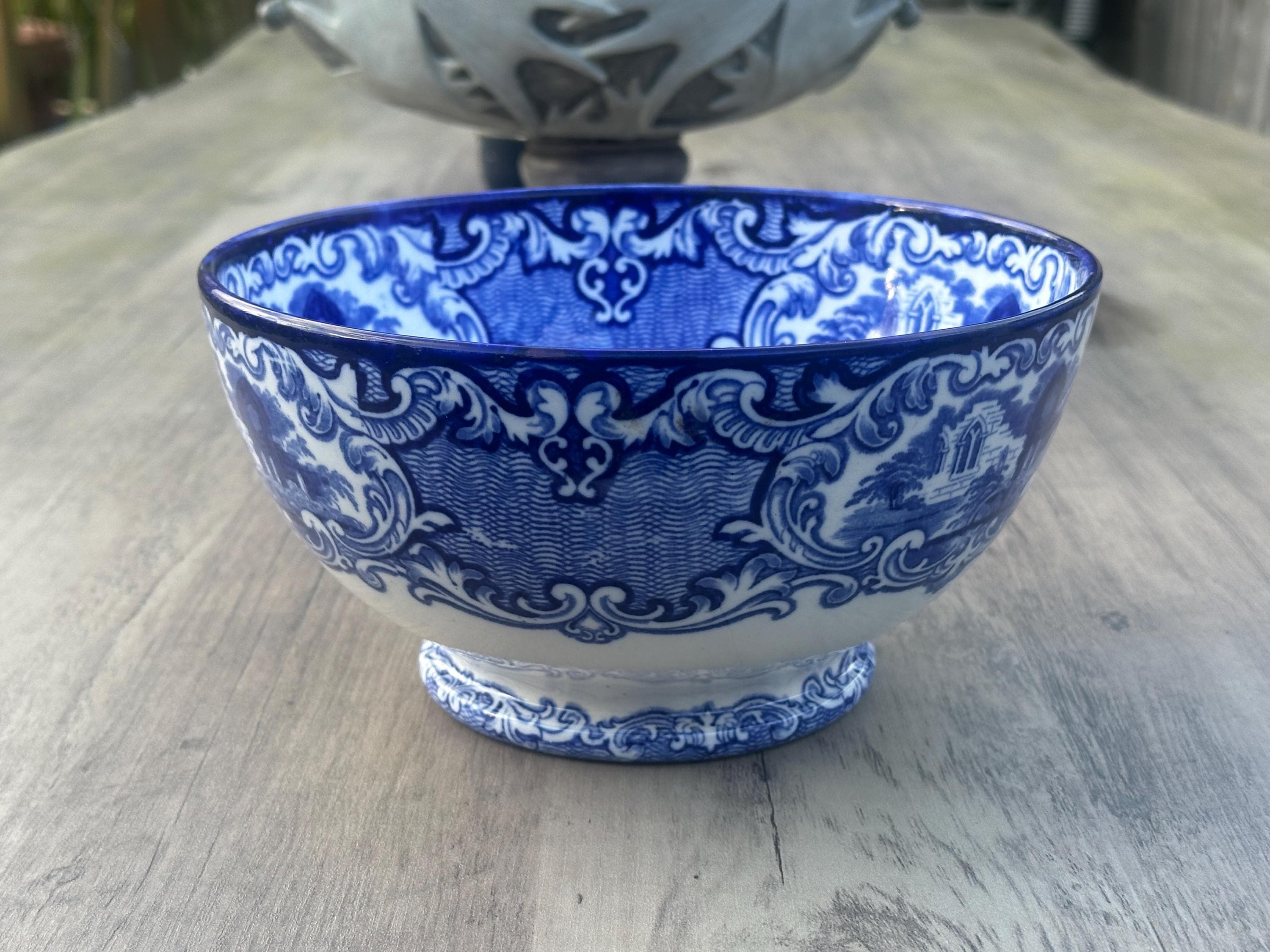 Antique George Jones & Sons “Abbey 1790” Blue Transferware Large Footed Bowl c.1910