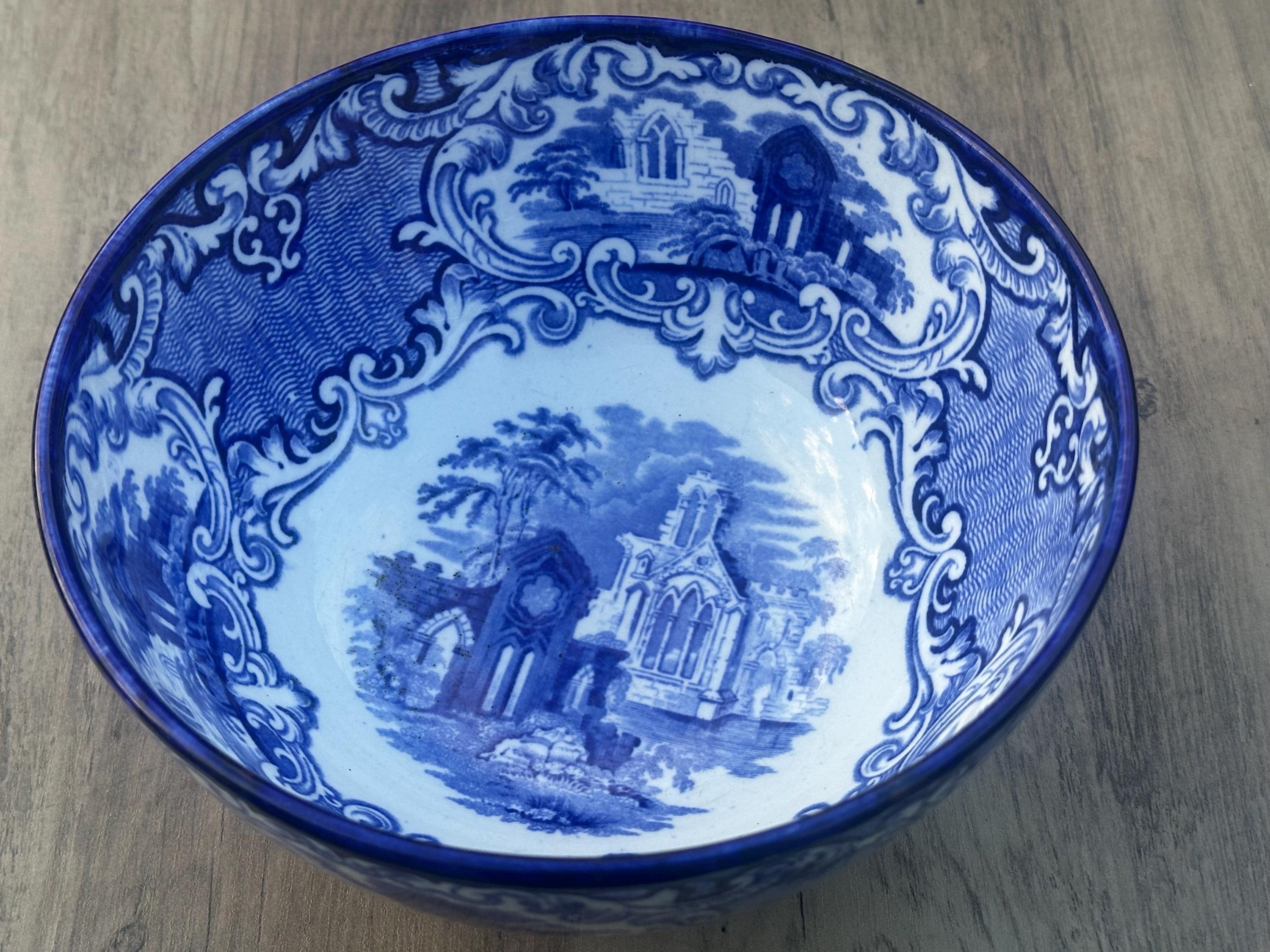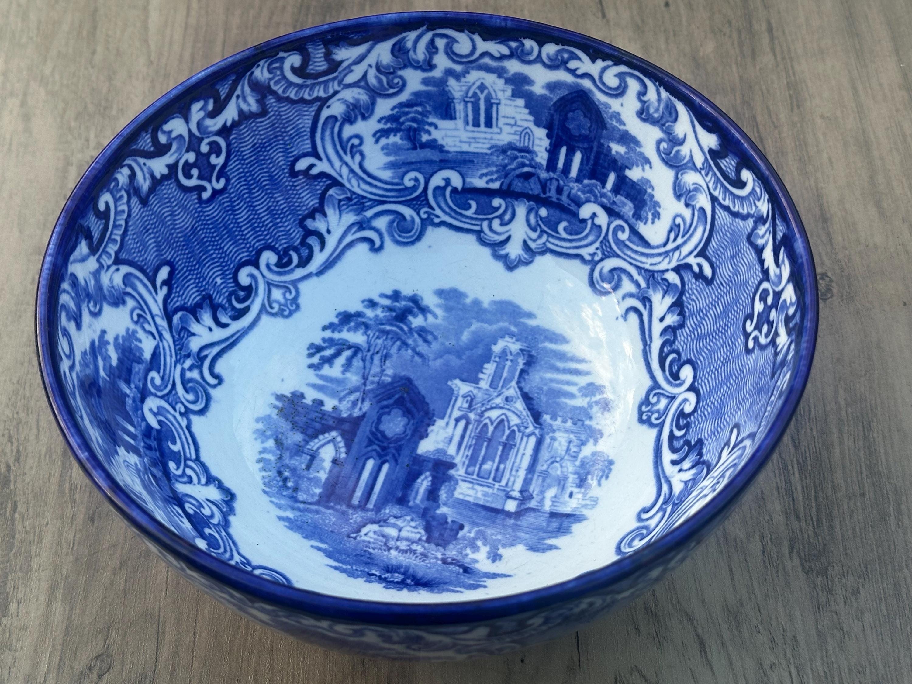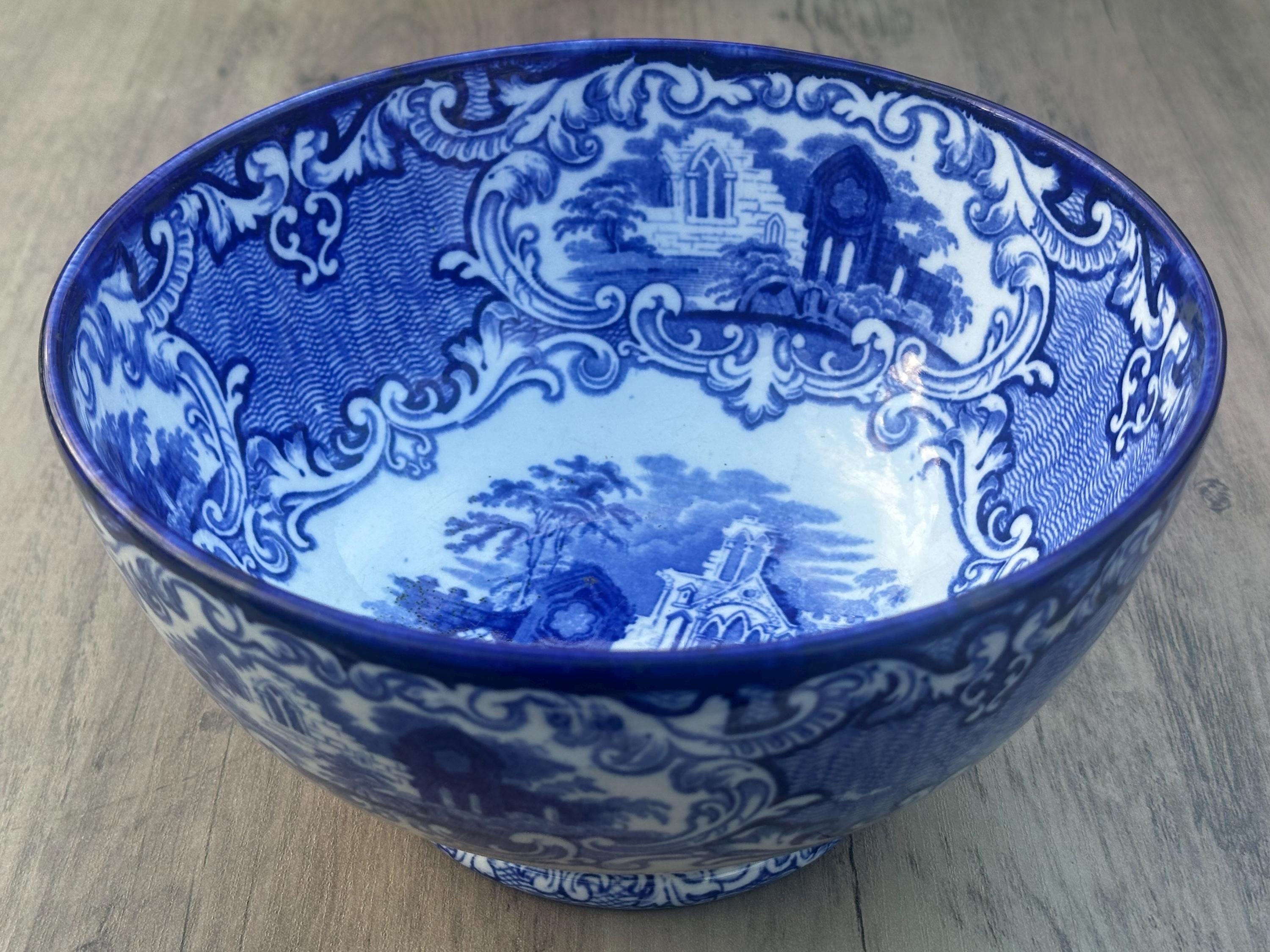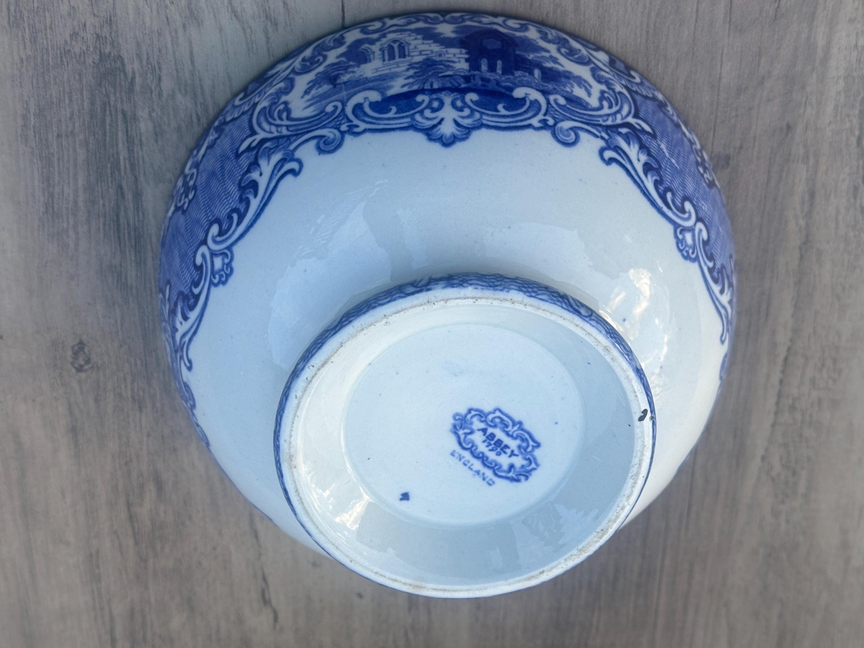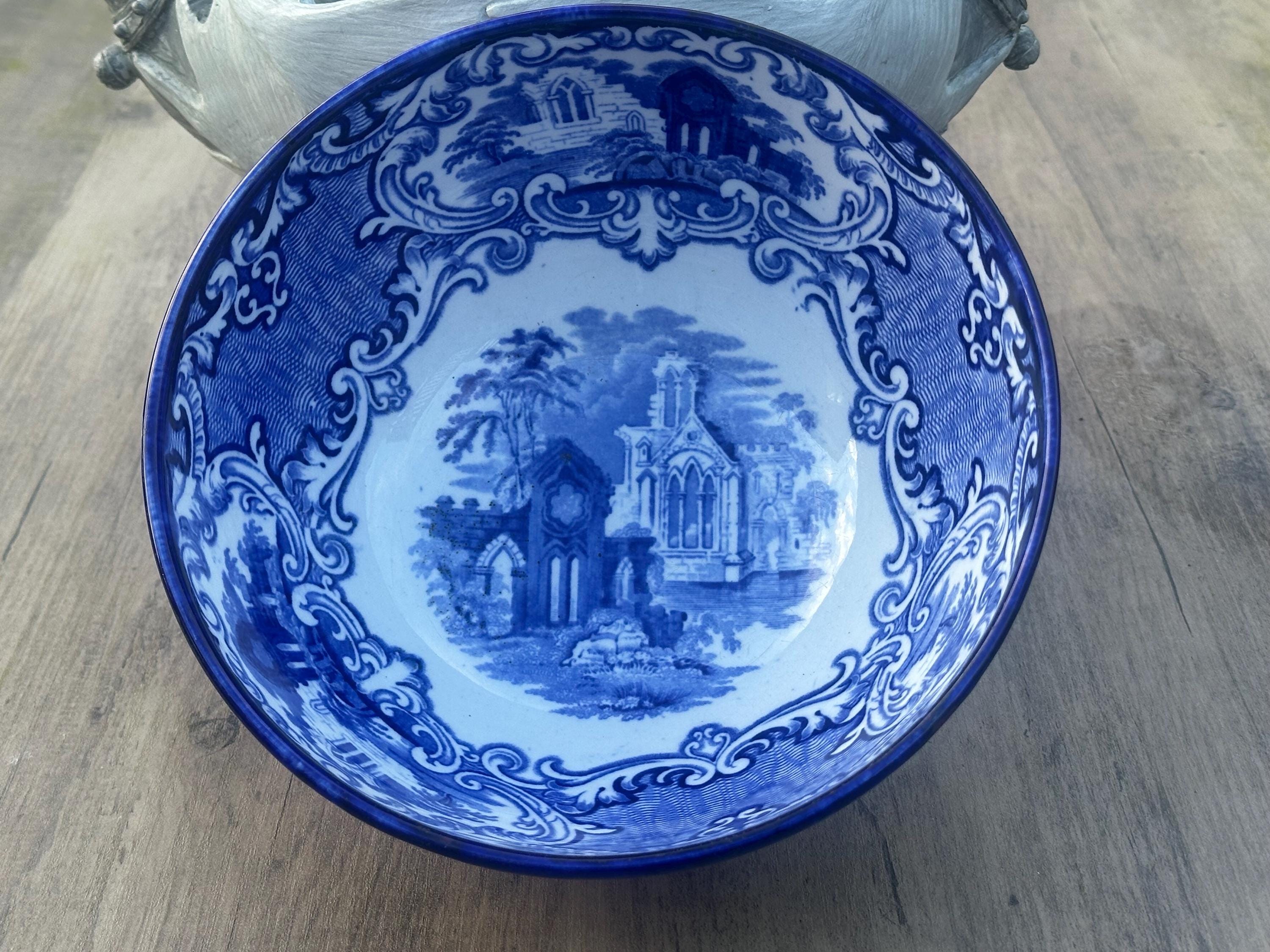 Antique George Jones & Sons “Abbey 1790” Blue Transferware Large Footed Bowl c.1910