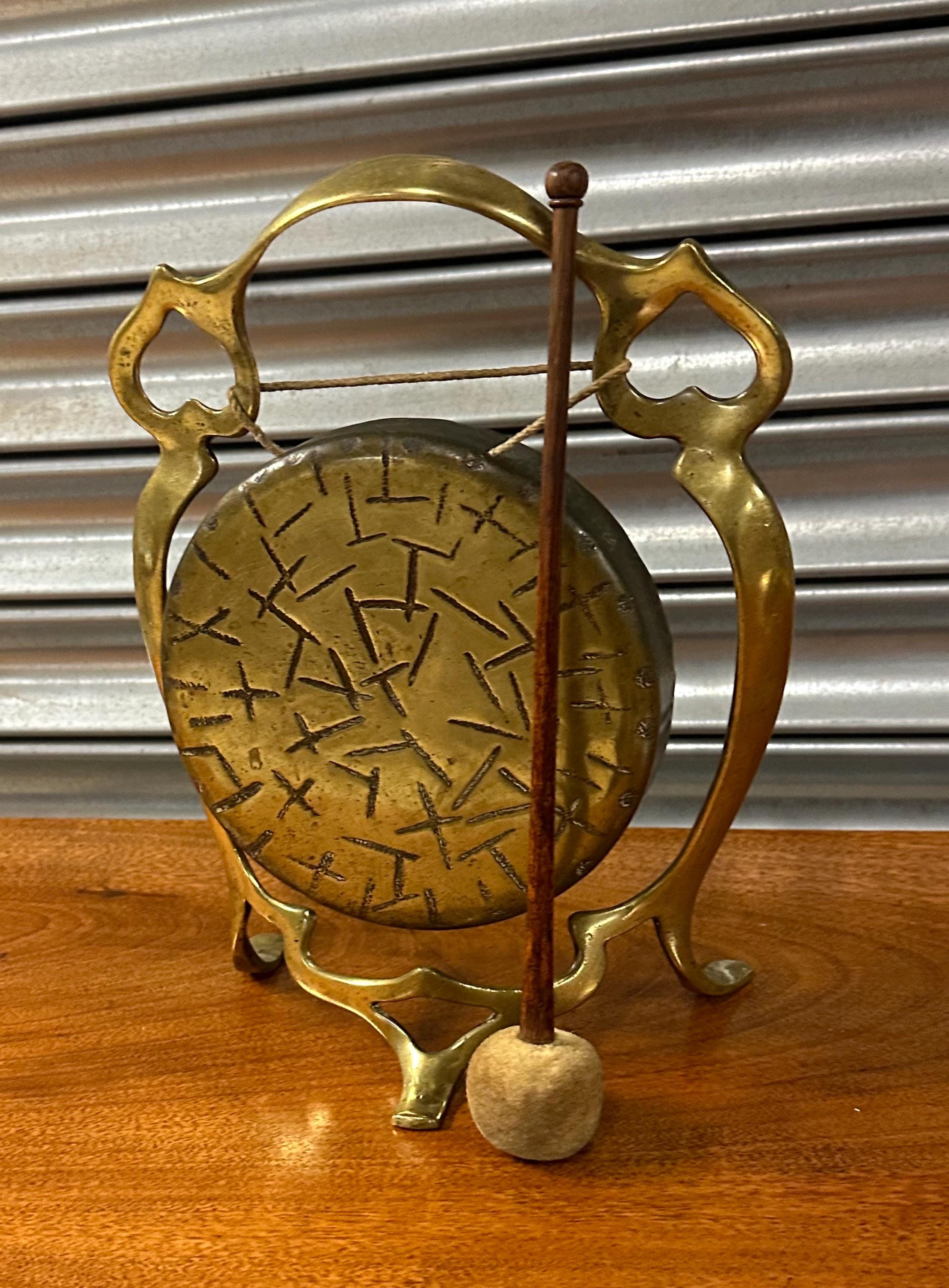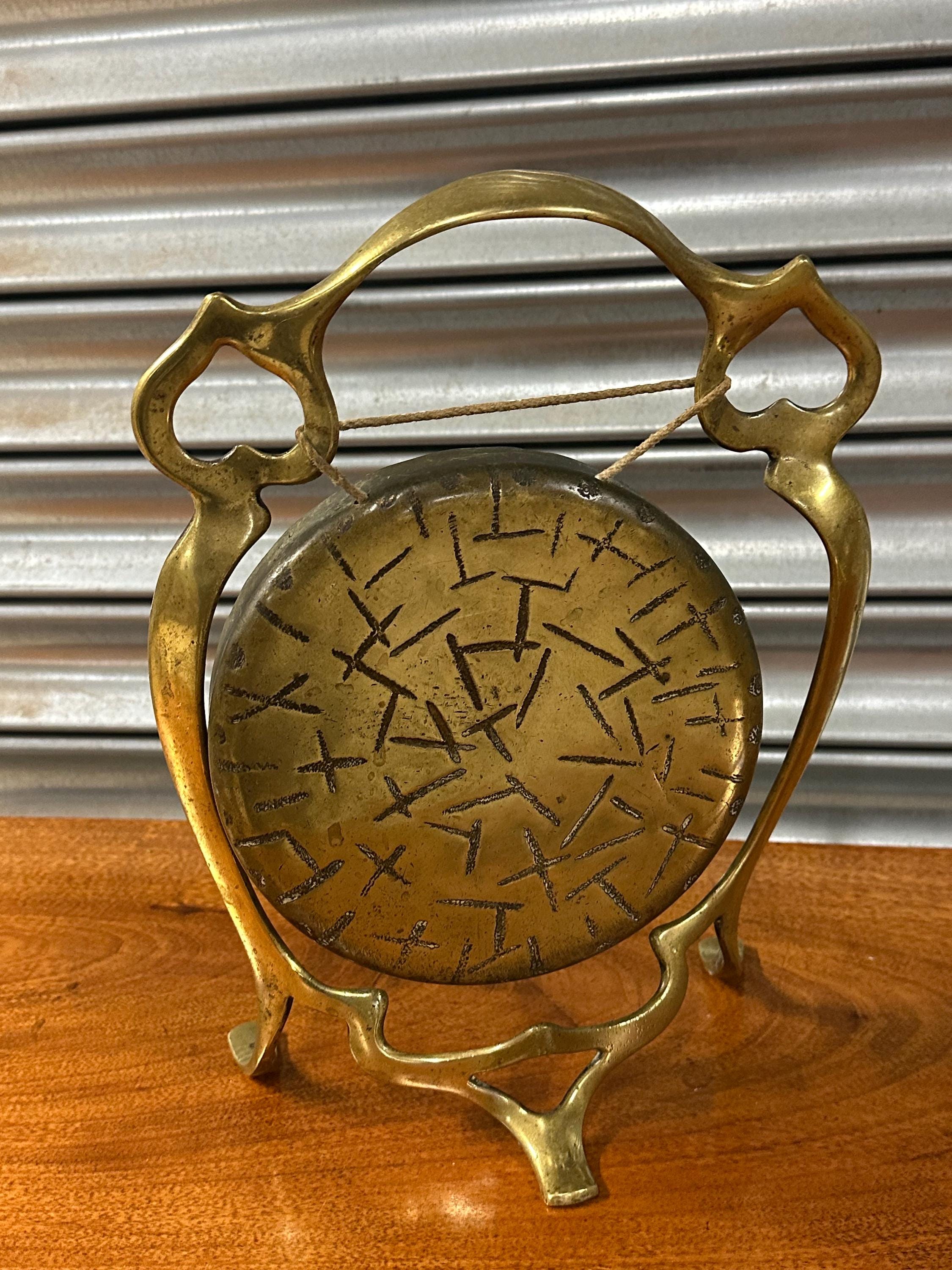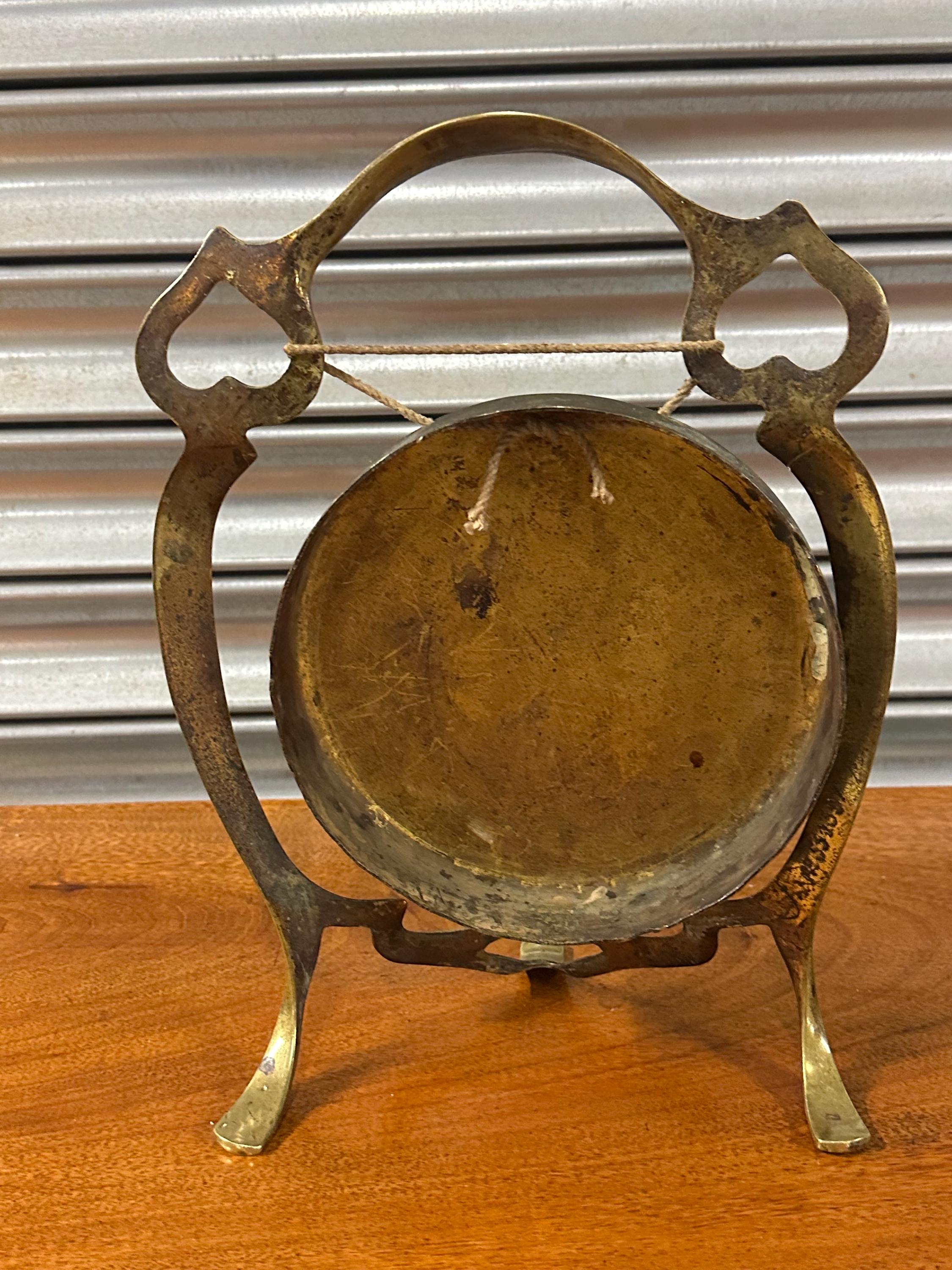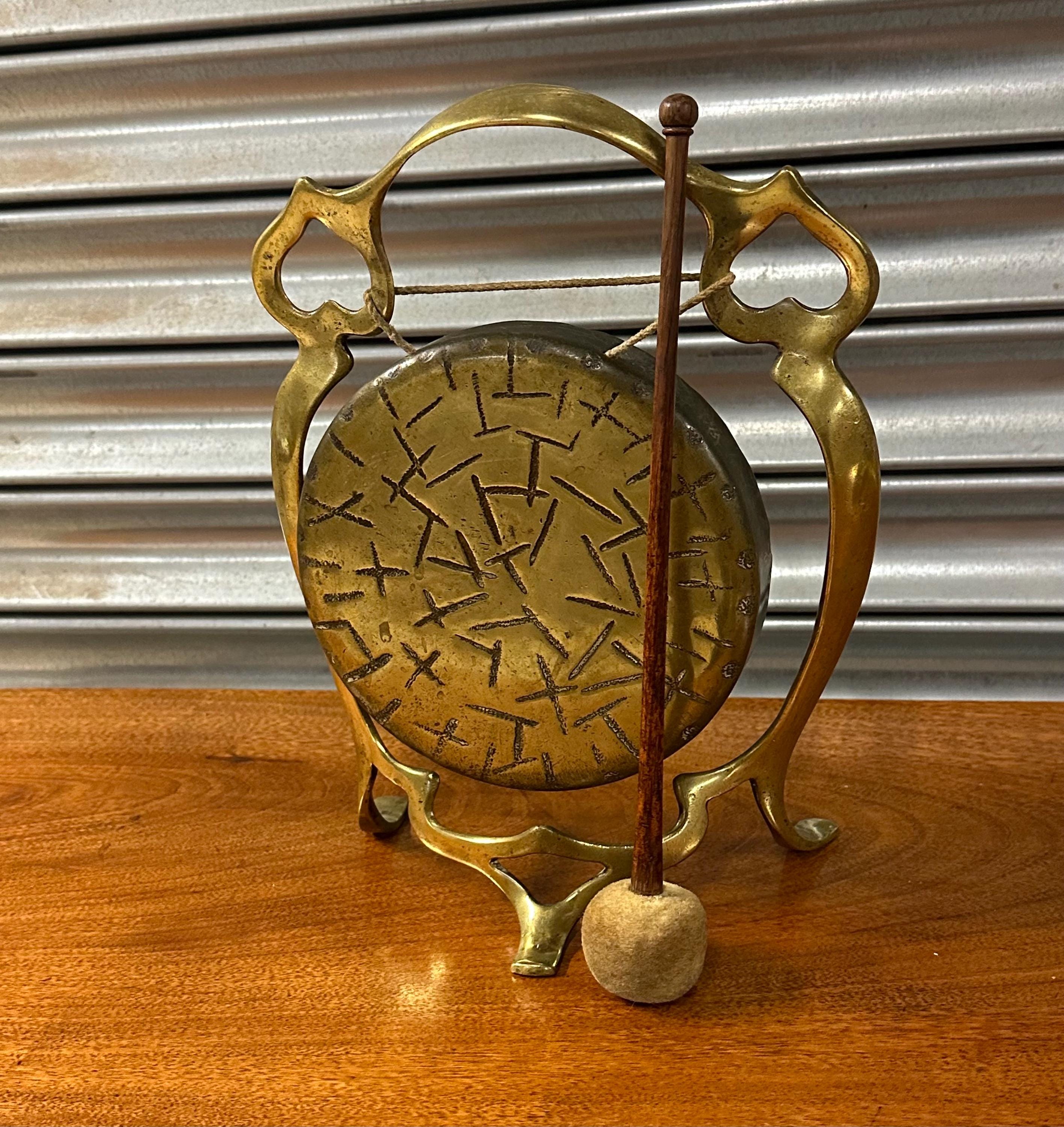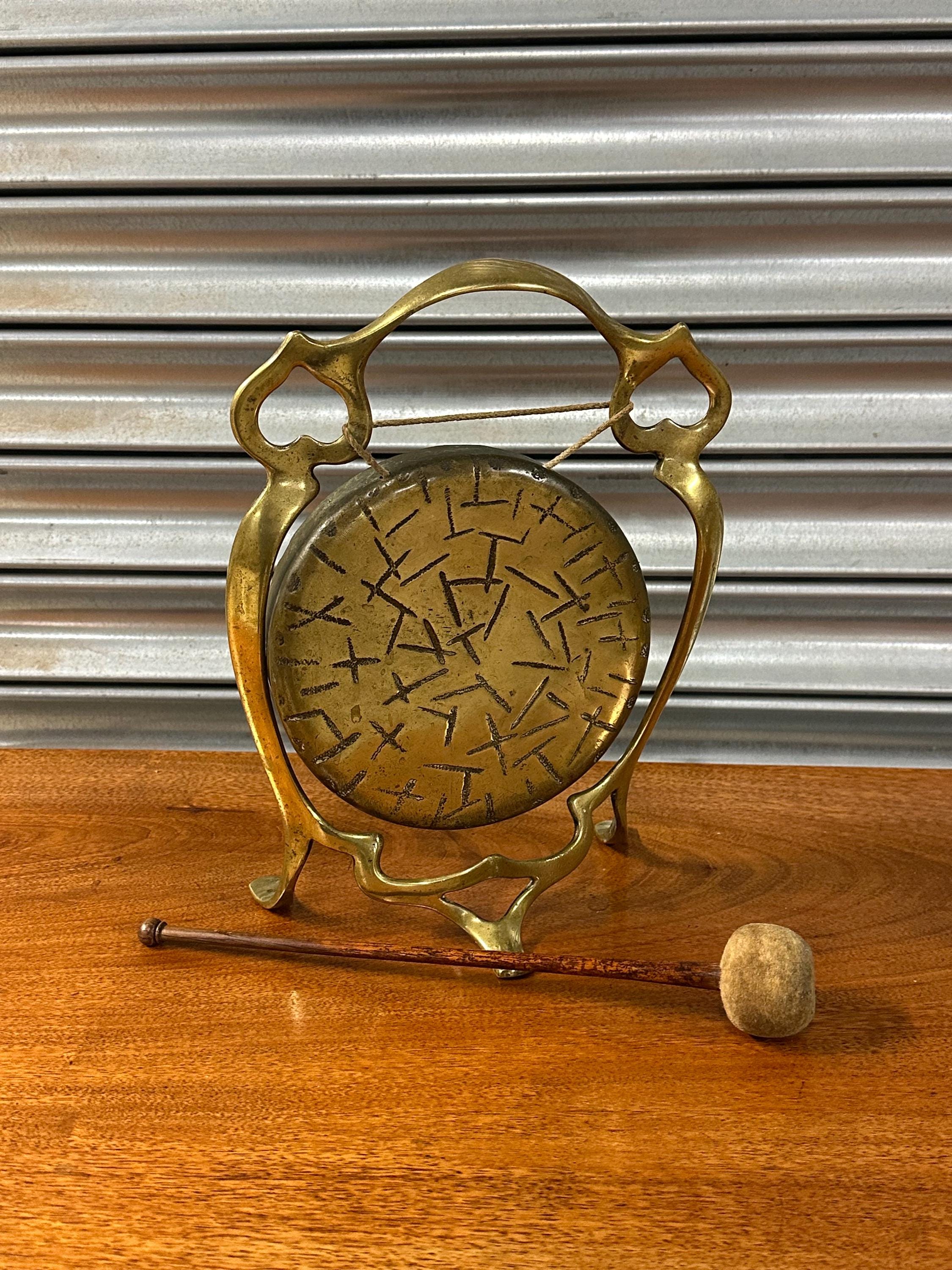 🔔 Vintage Brass Table Gong with Decorative Stand & Mallet - Art Nouvesu Period