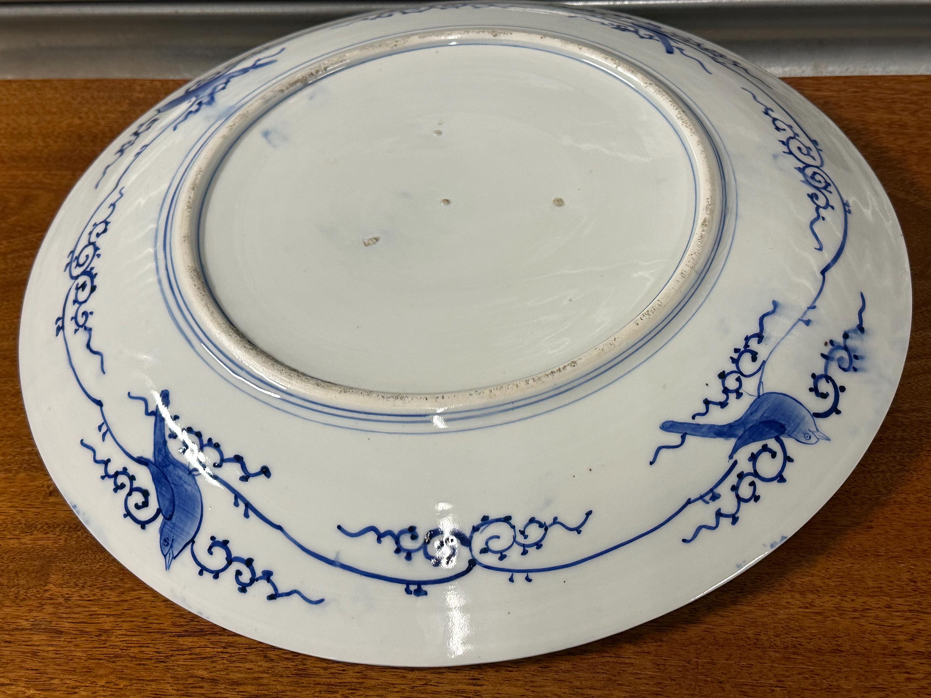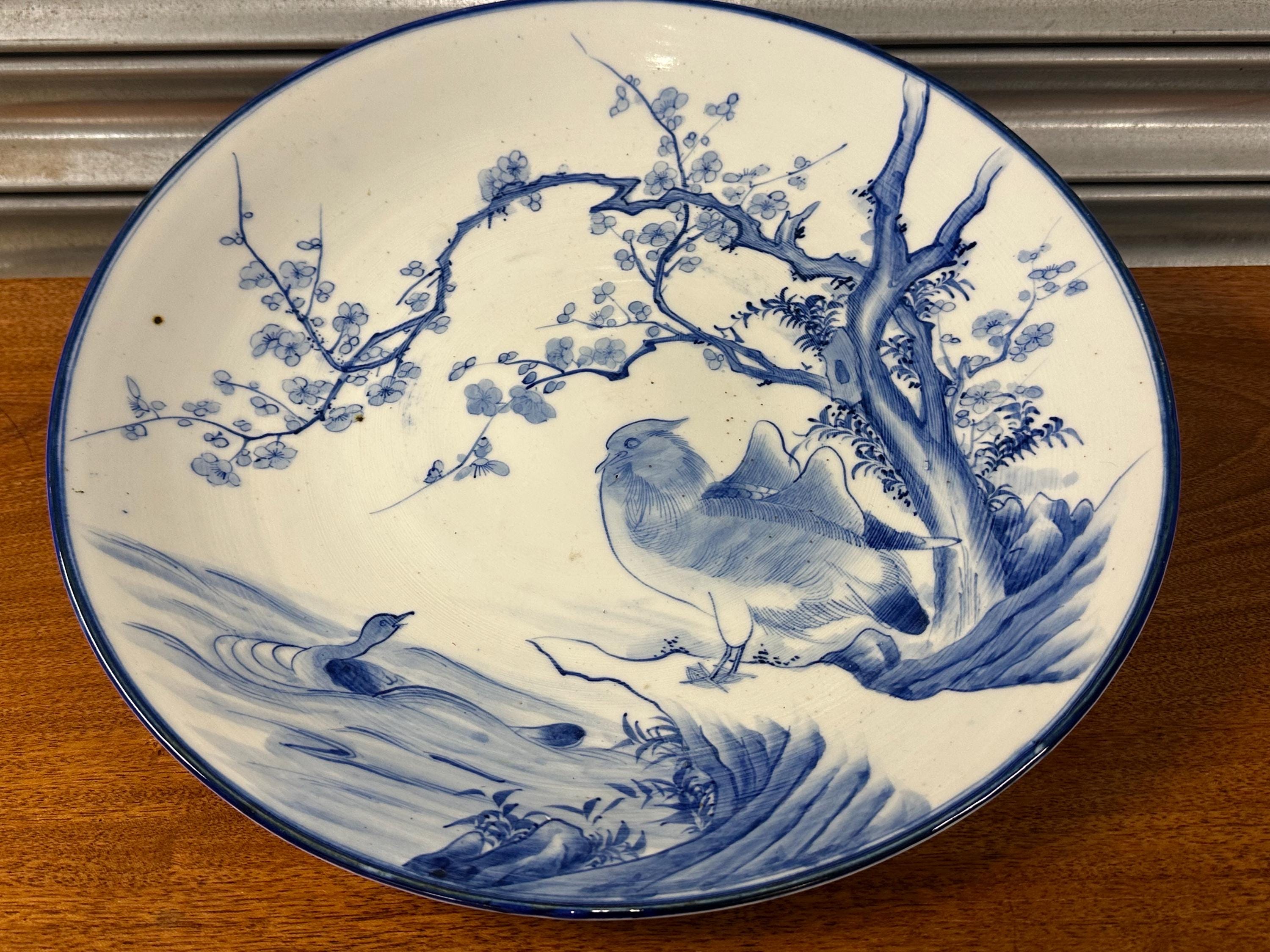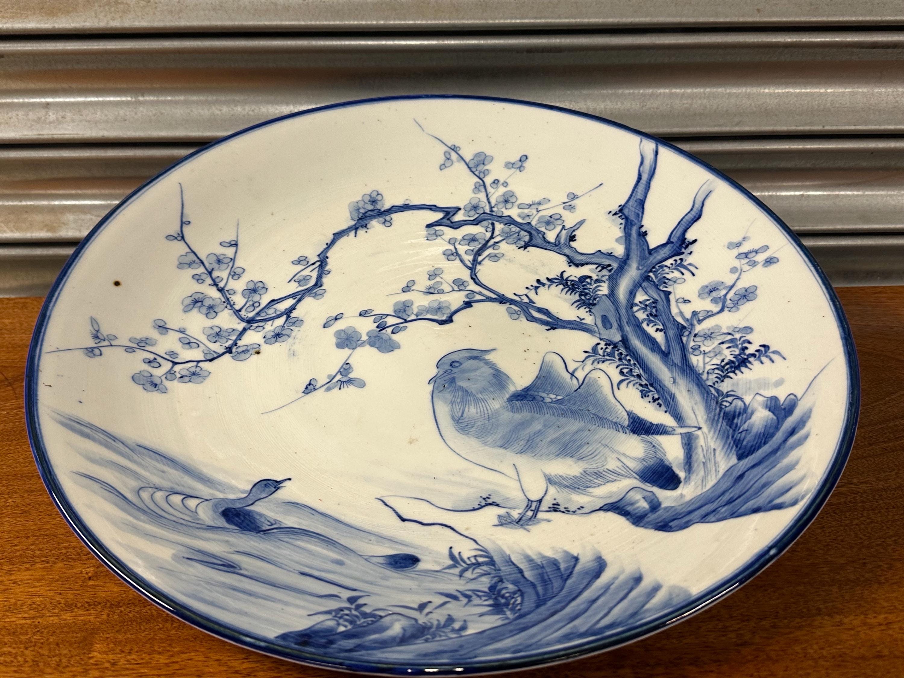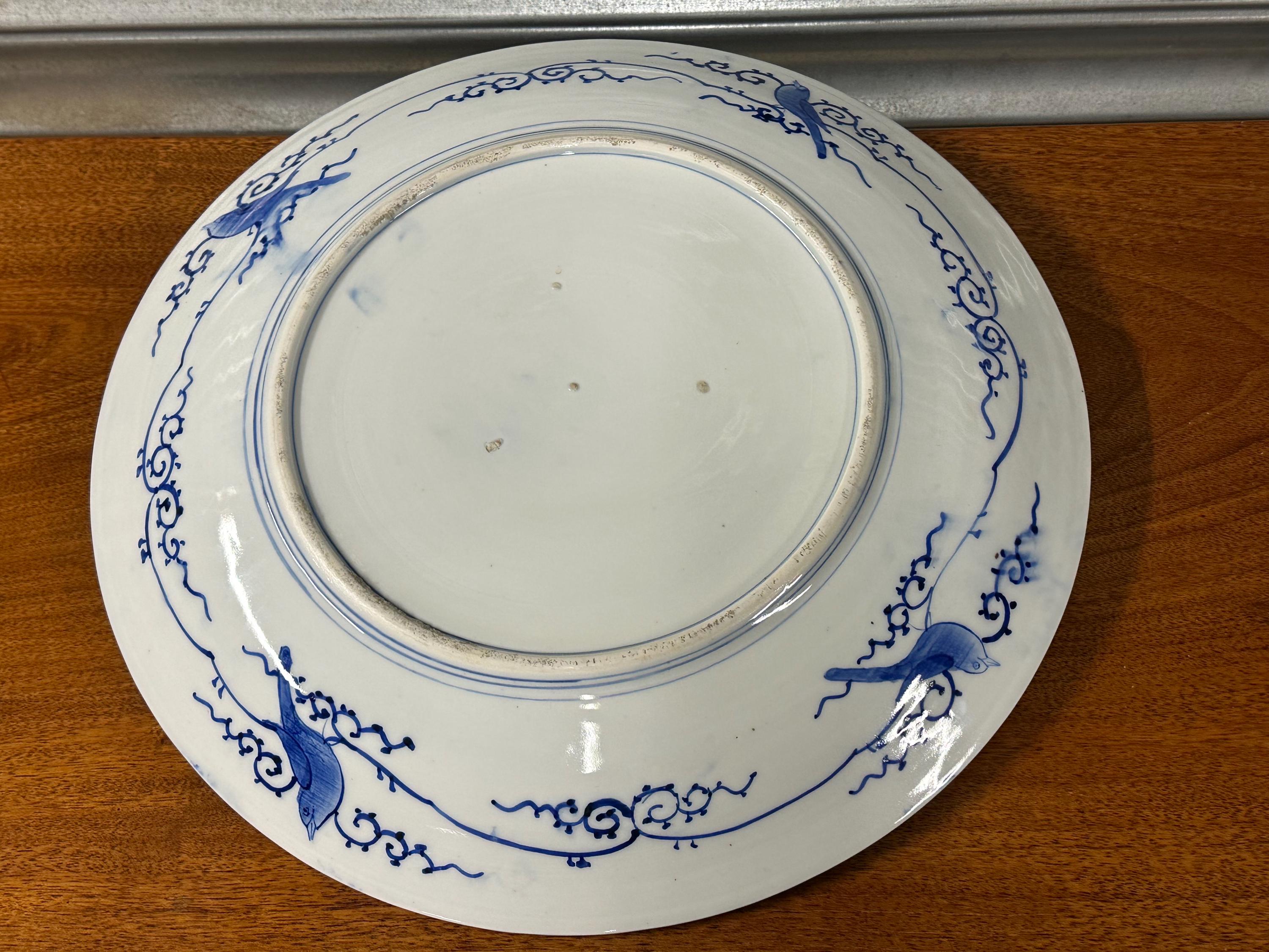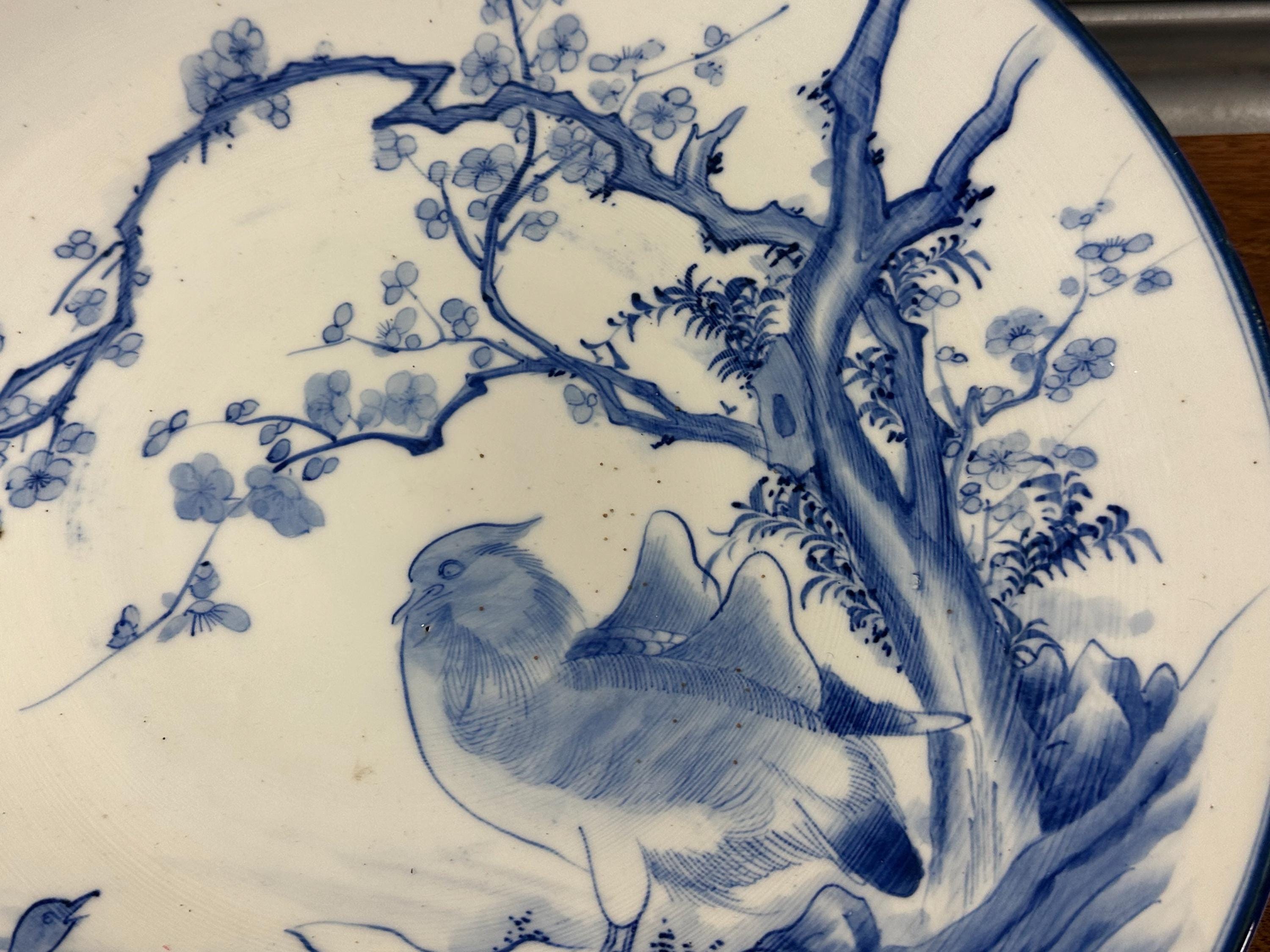 Japanese Arita Porcelain Charger – Sometsuke Blue & White – Bird & Blossom Design