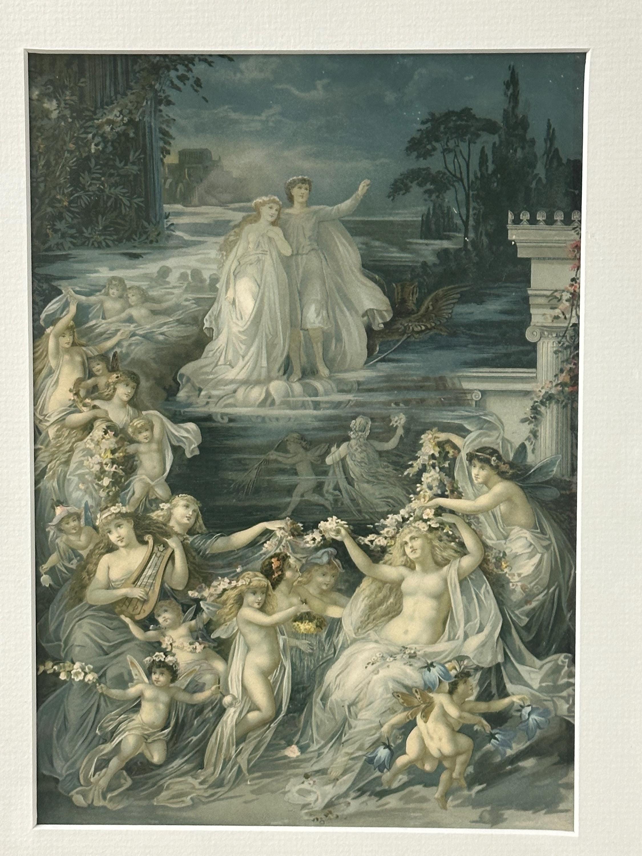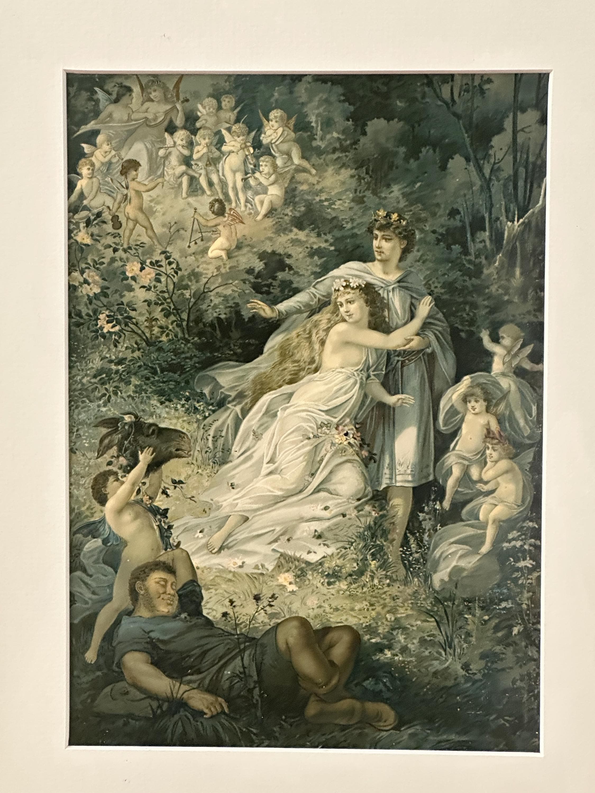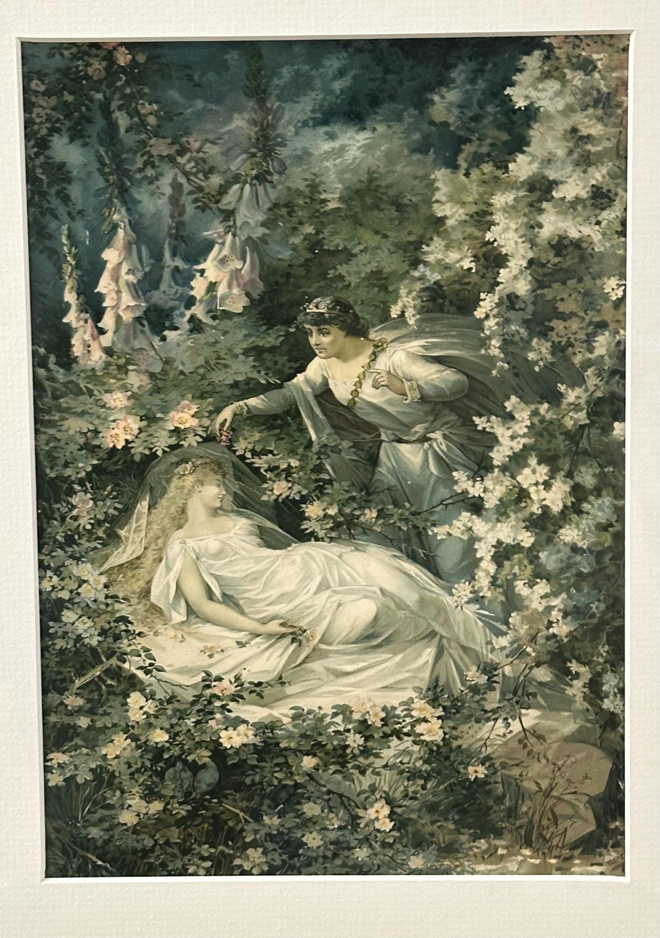 Each print is finely executed in the chromolithographic technique, a popular 19th-century printing process renowned for its rich colouring and painterly quality. The scenes are beautifully detailed, with soft tonal palettes and delicate highlights that bring the dreamlike atmosphere of the play to life.