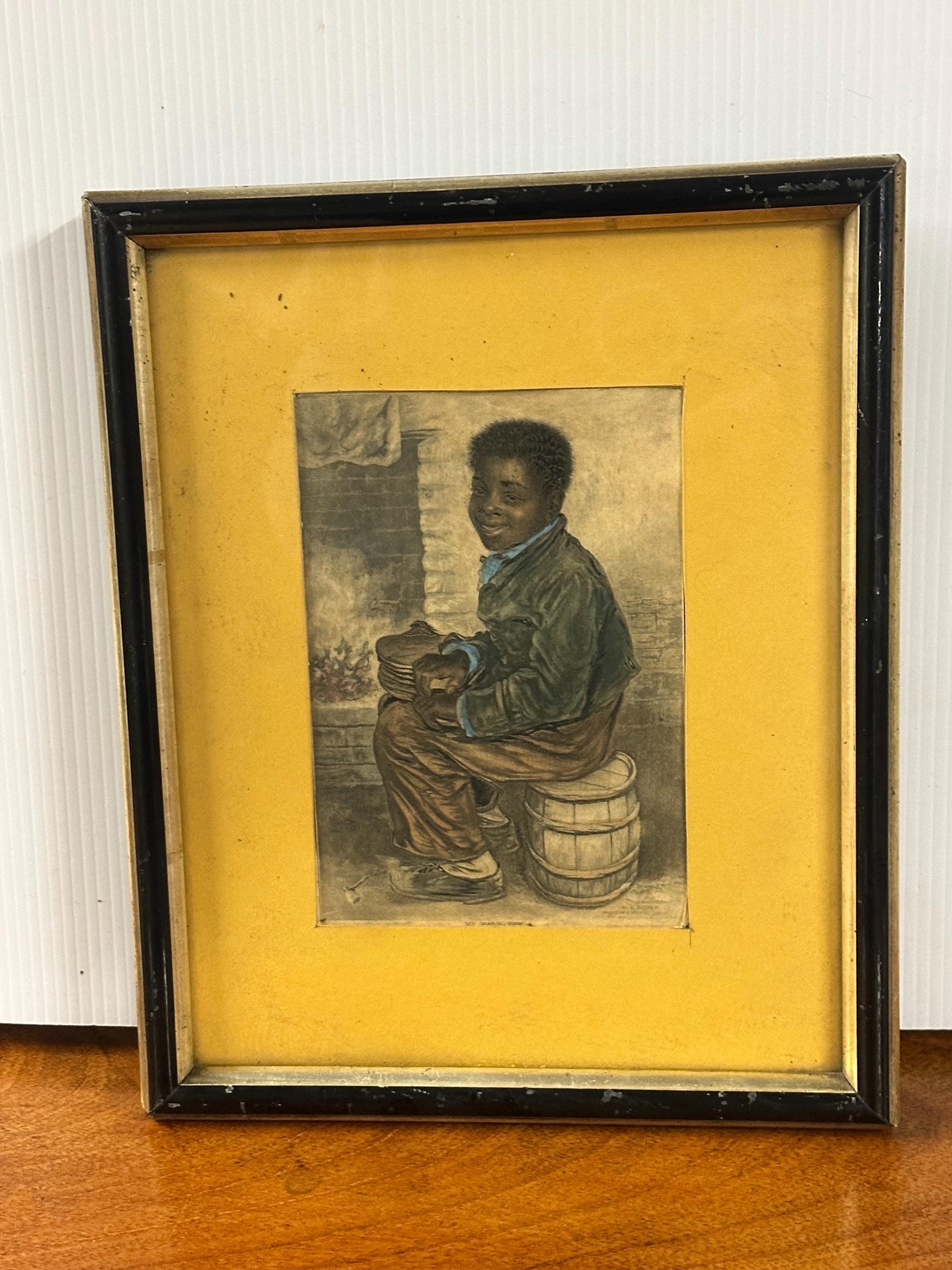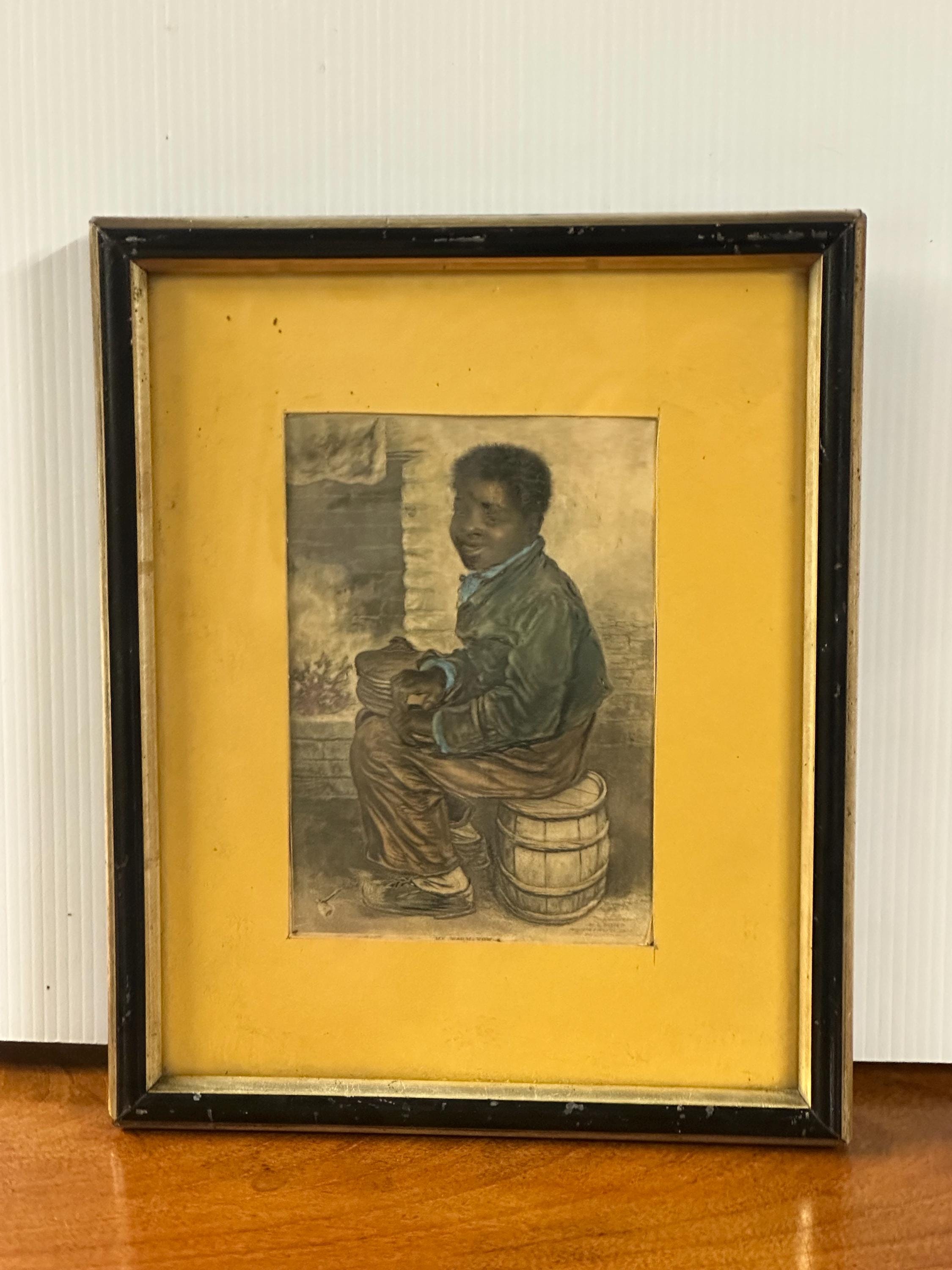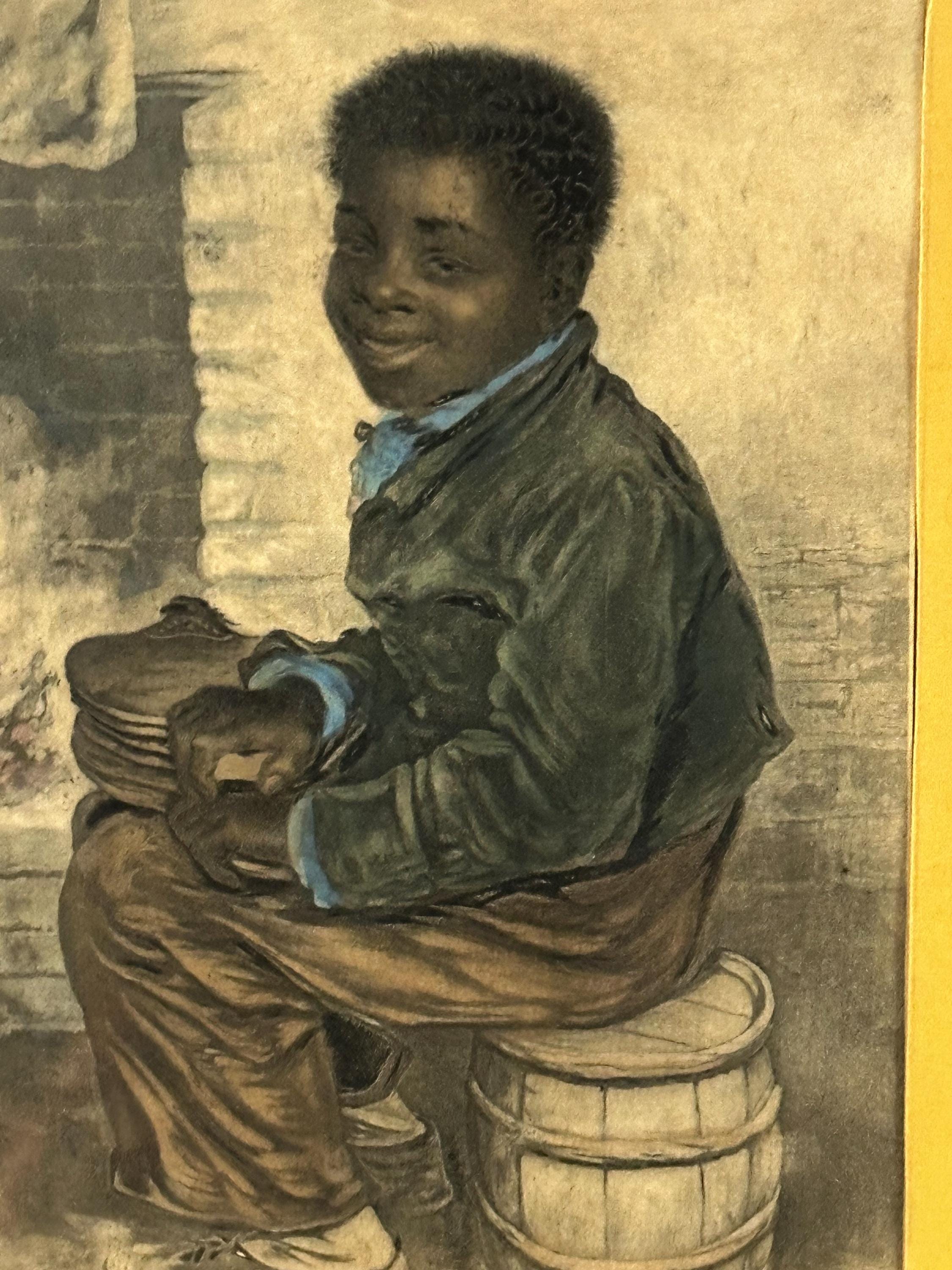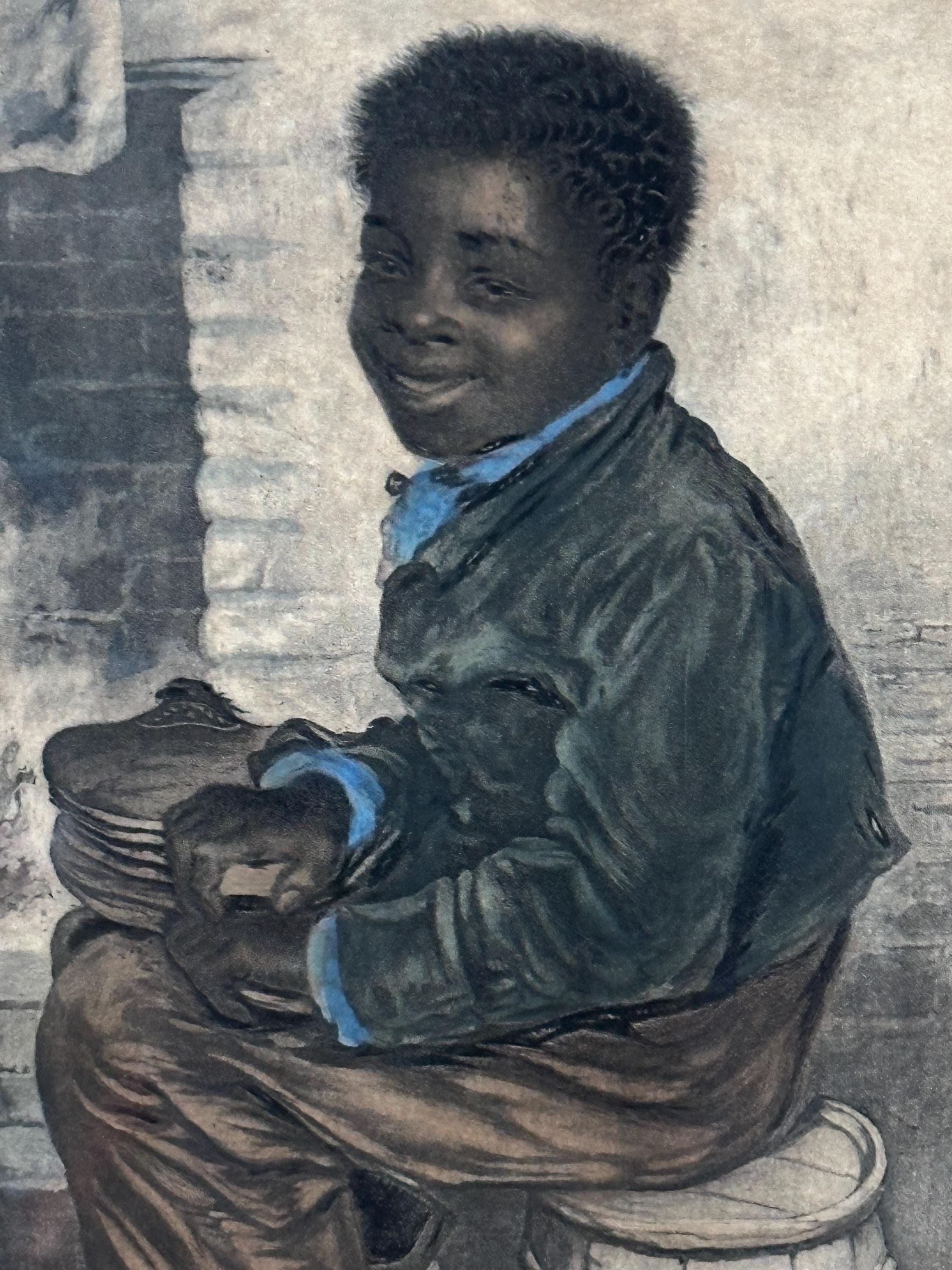 This touching scene depicts a young boy seated beside a hearth, rendered with Baxter’s characteristic warmth and detail, and hand coloured with pastels. The work is widely associated with imagery produced during the British and Foreign Anti-Slavery Society era, making it both a decorative and socially significant collectible.