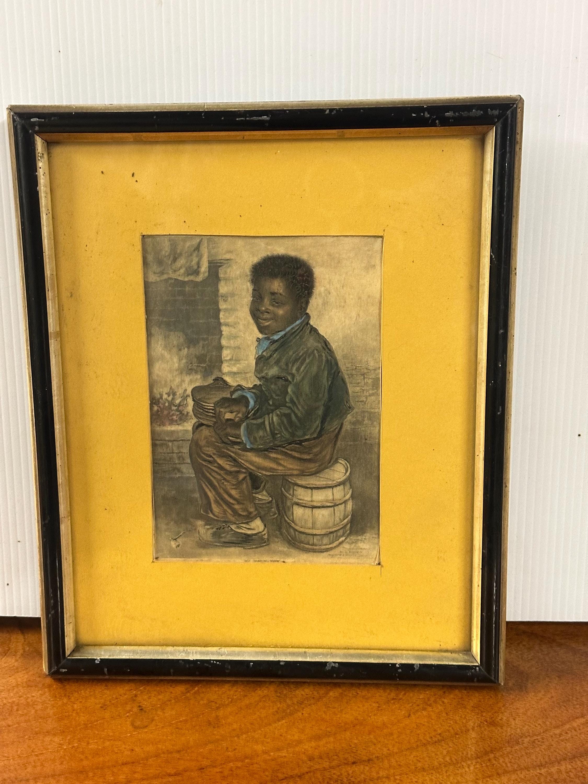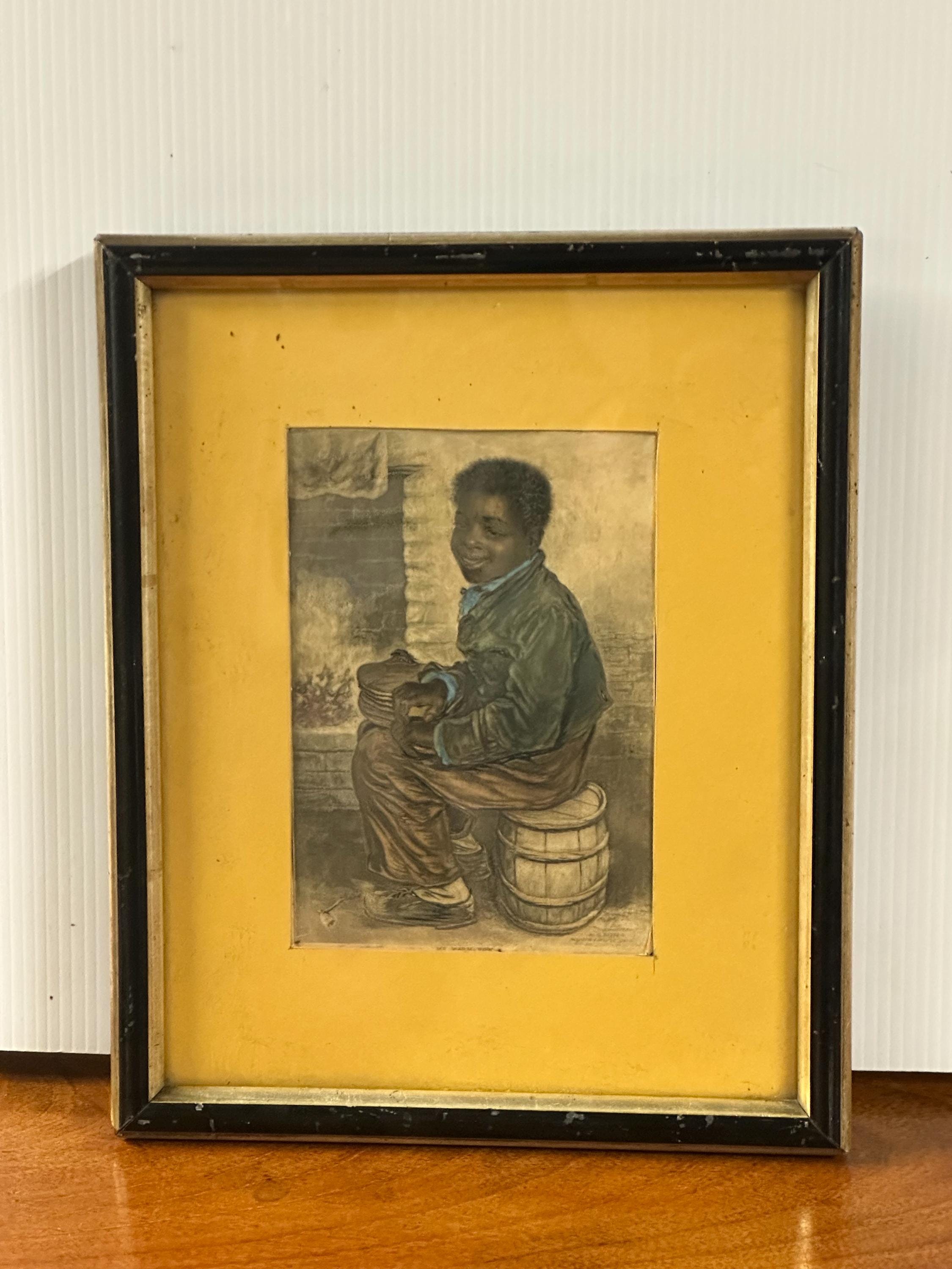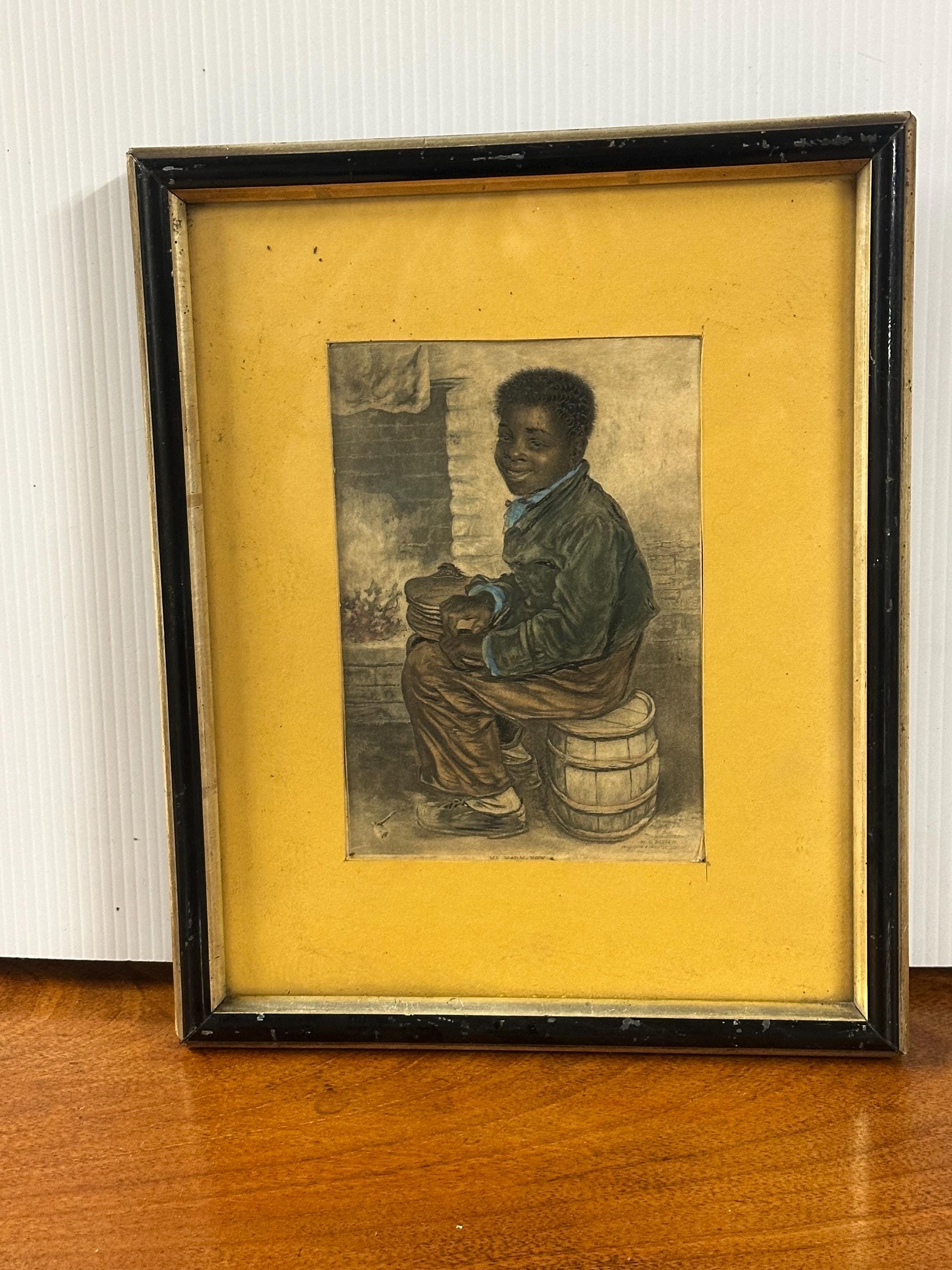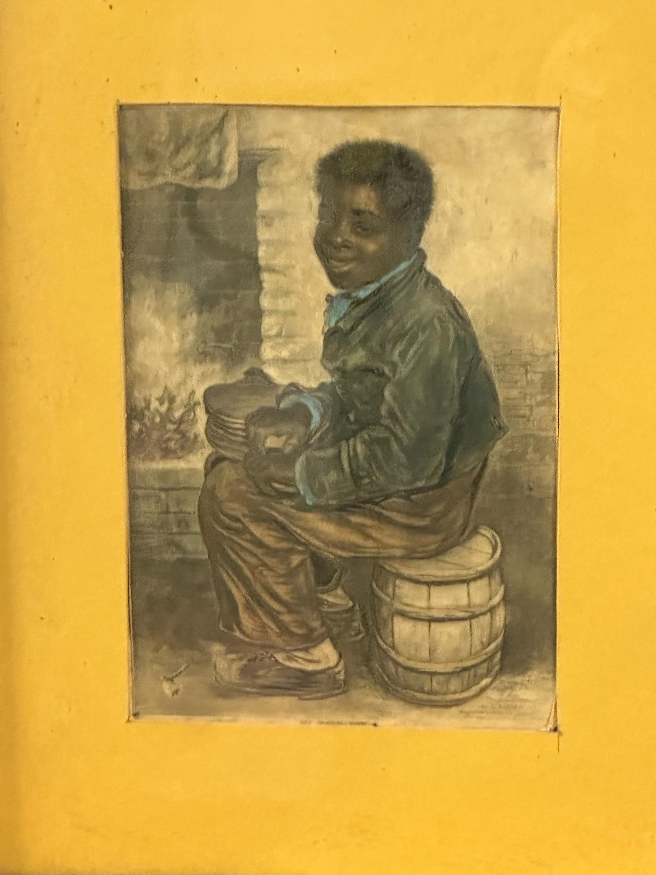 This touching scene depicts a young boy seated beside a hearth, rendered with Baxter’s characteristic warmth and detail, and hand coloured with pastels. The work is widely associated with imagery produced during the British and Foreign Anti-Slavery Society era, making it both a decorative and socially significant collectible.