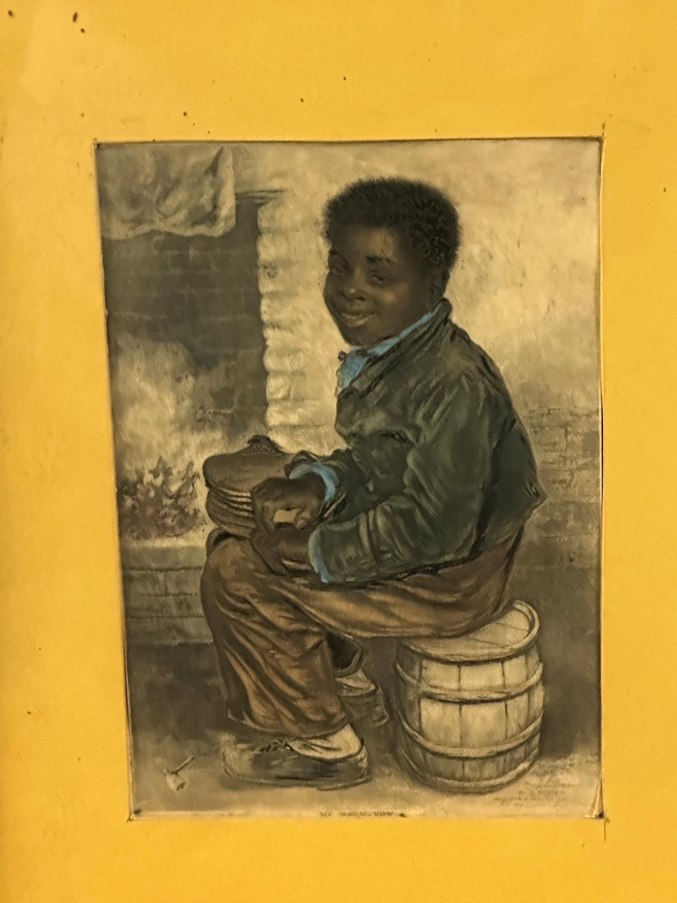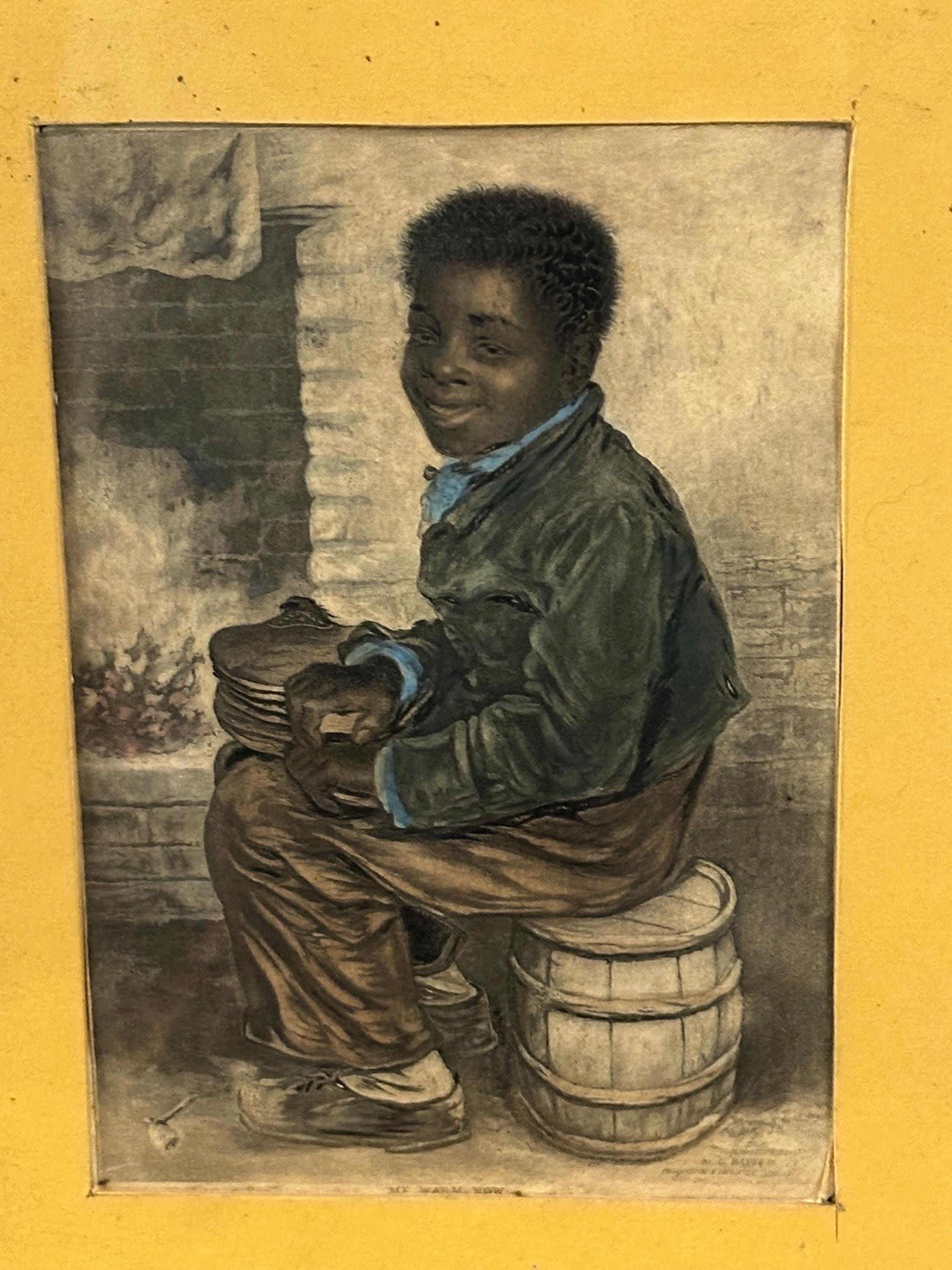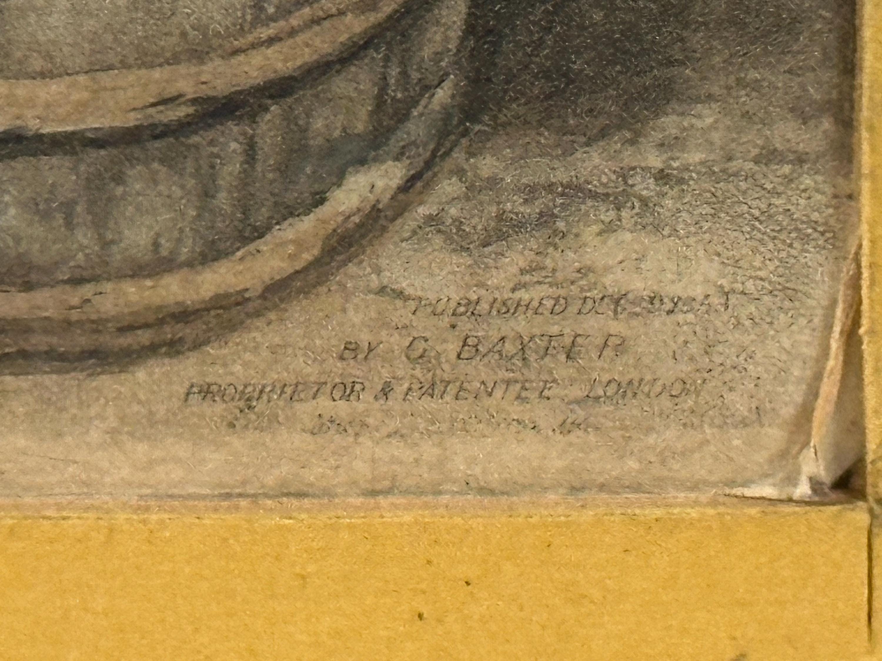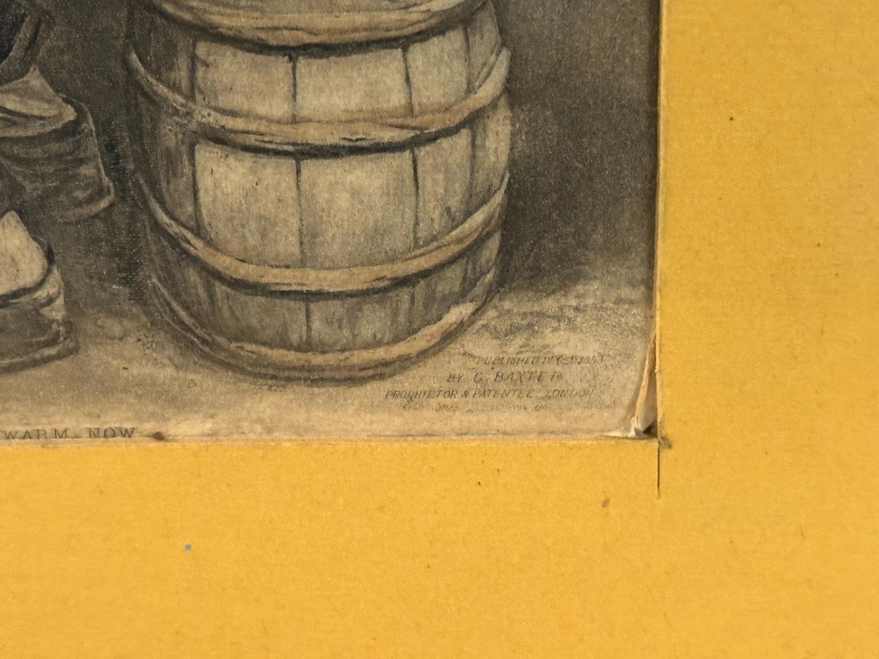 A rare and historically important original Victorian mezzotint by George Baxter, dated 1853 and titled “Me Warm Now.”