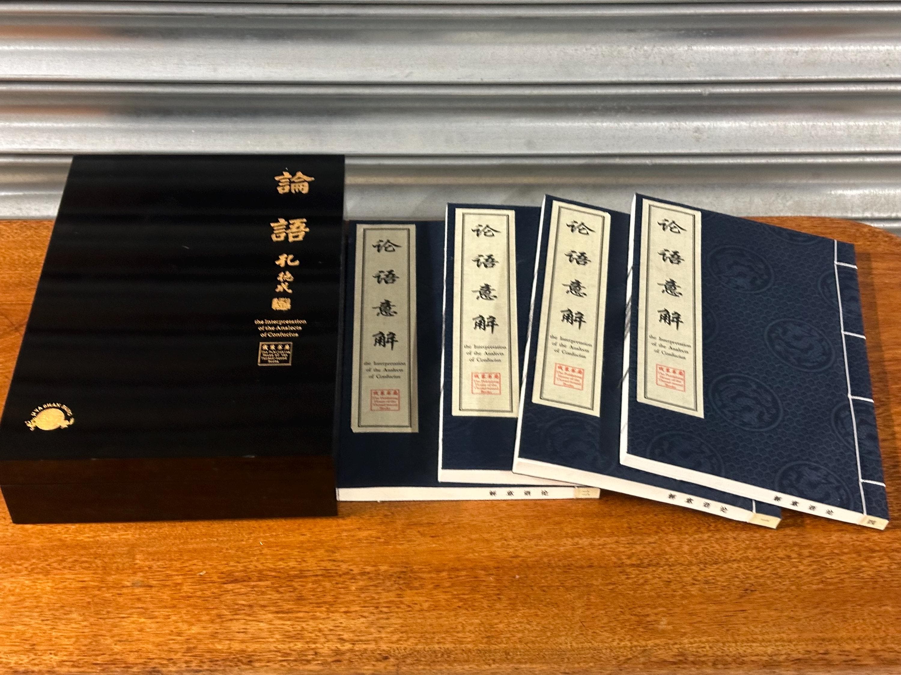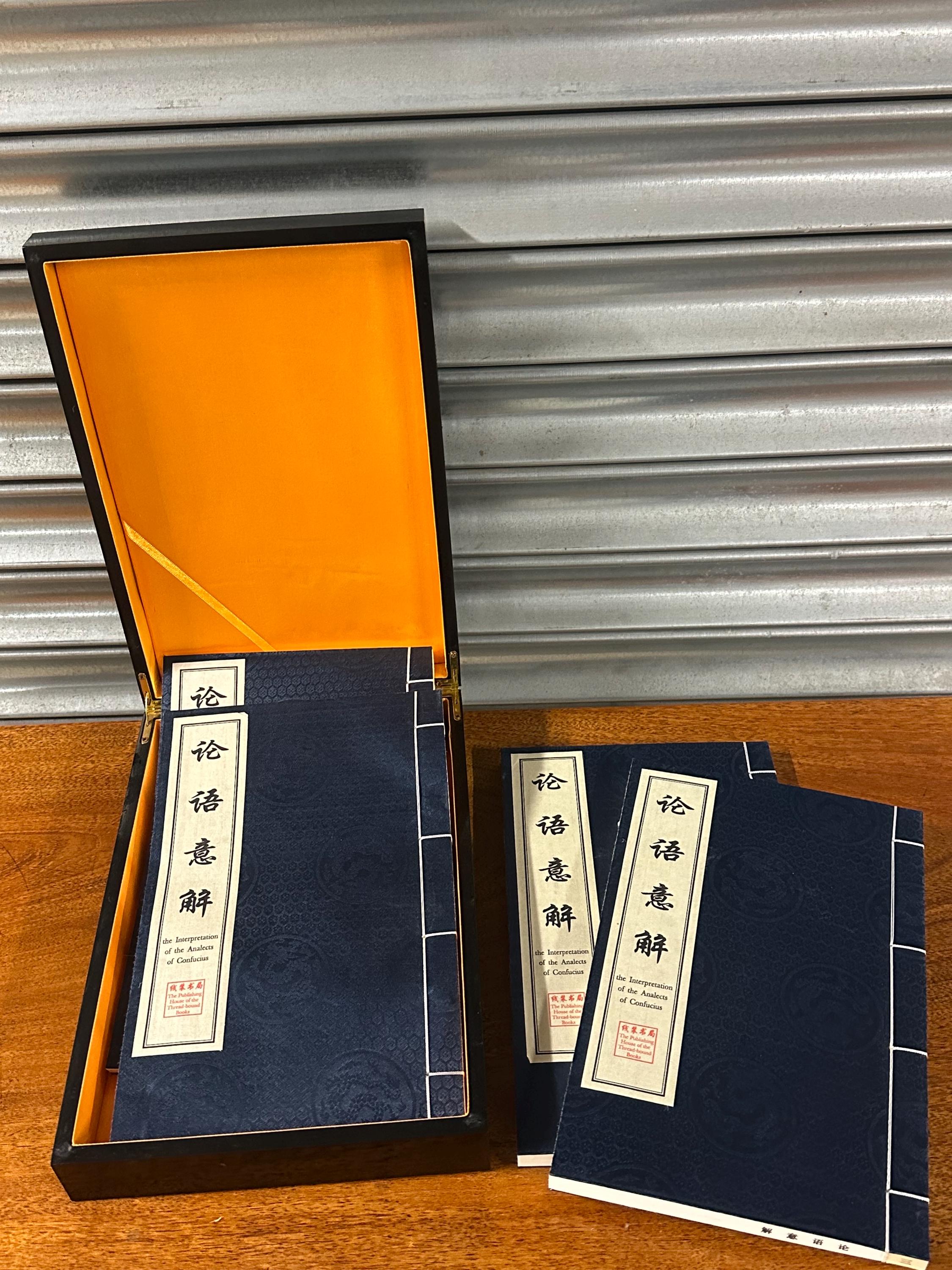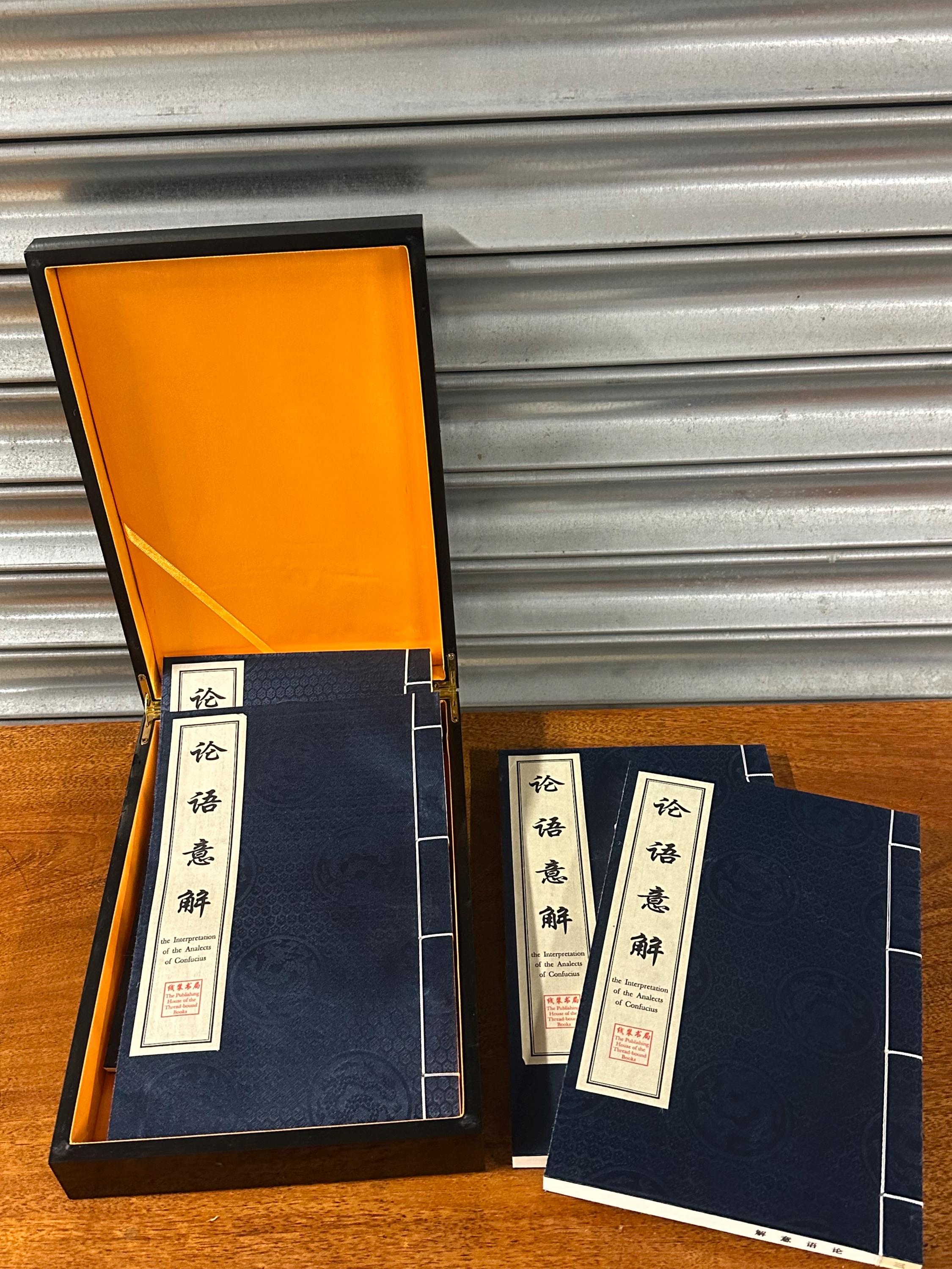 A beautiful modern Chinese thread-bound edition of The Interpretation of the Analects of Confucius, presented in an elegant black slipcase with gilt Chinese calligraphy.
